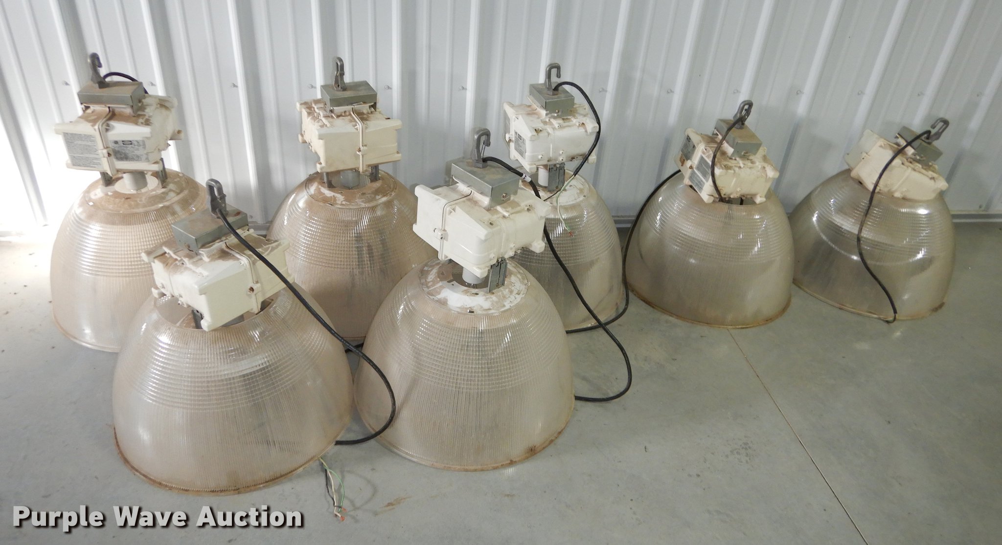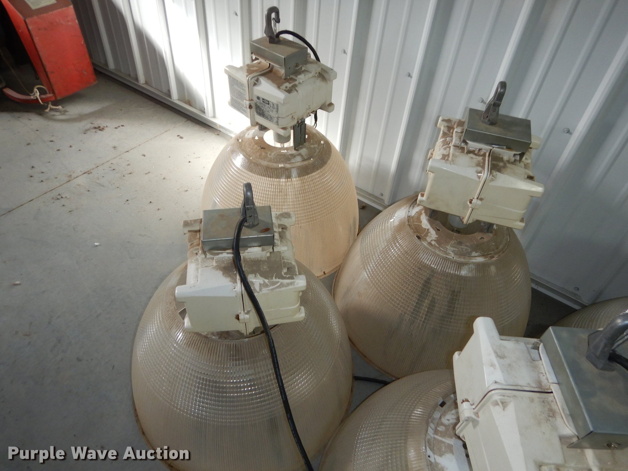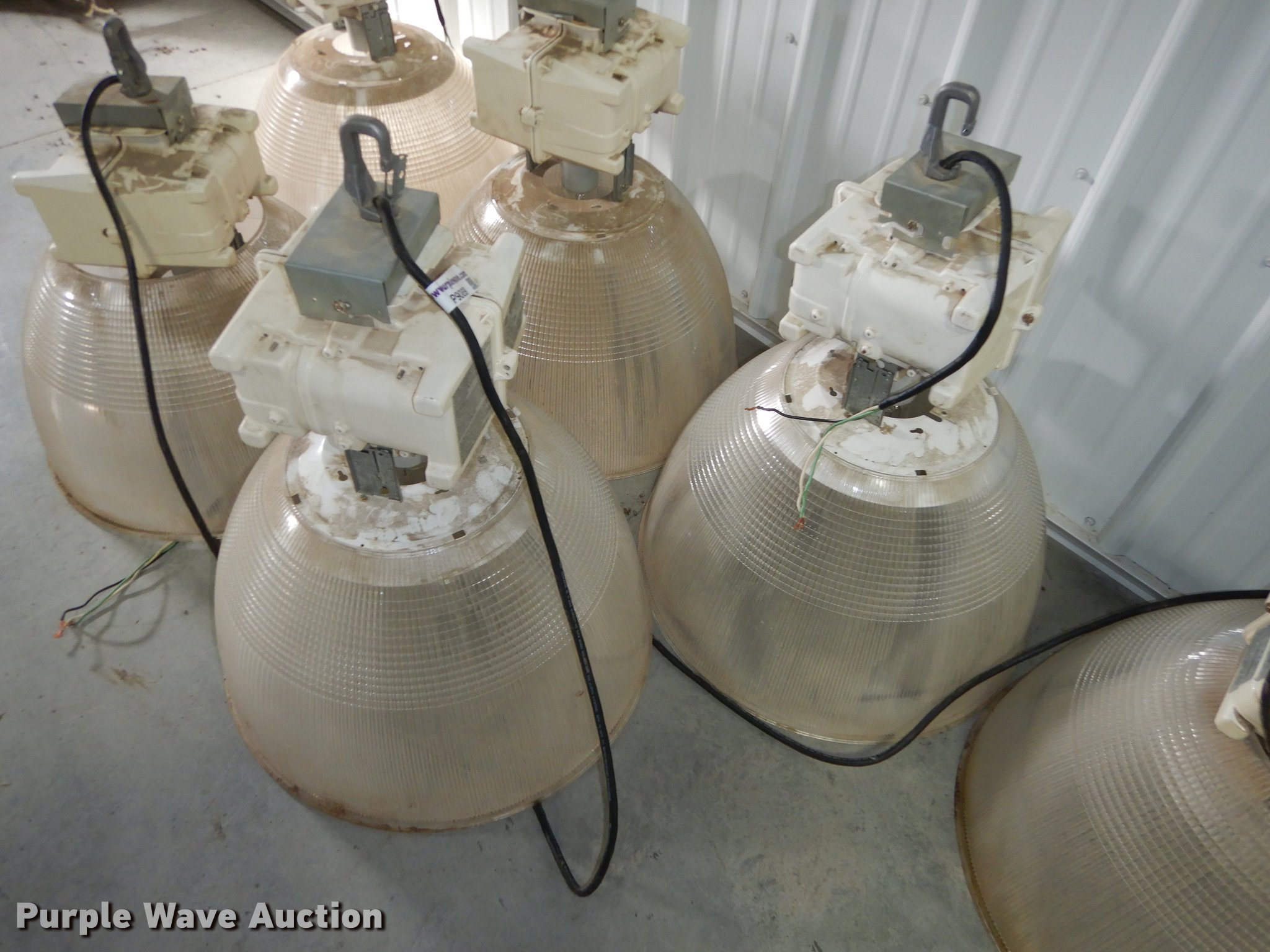 Purple Wave is selling a used Building Materials in Kansas. This item is a (9) Halide ceiling lights with the following: 400 watt, (2) without domes