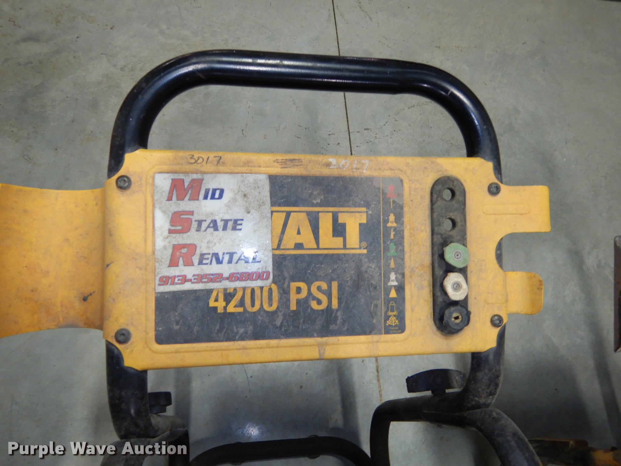 Purple Wave is selling a used Pressure Washer in Kansas. This item is a (2) DeWalt pressure washers with the following: Gas engines, 4,200 psi, 4 gpm, 3,750 psi, 4 gpm, No hoses or wands, Non-operational units