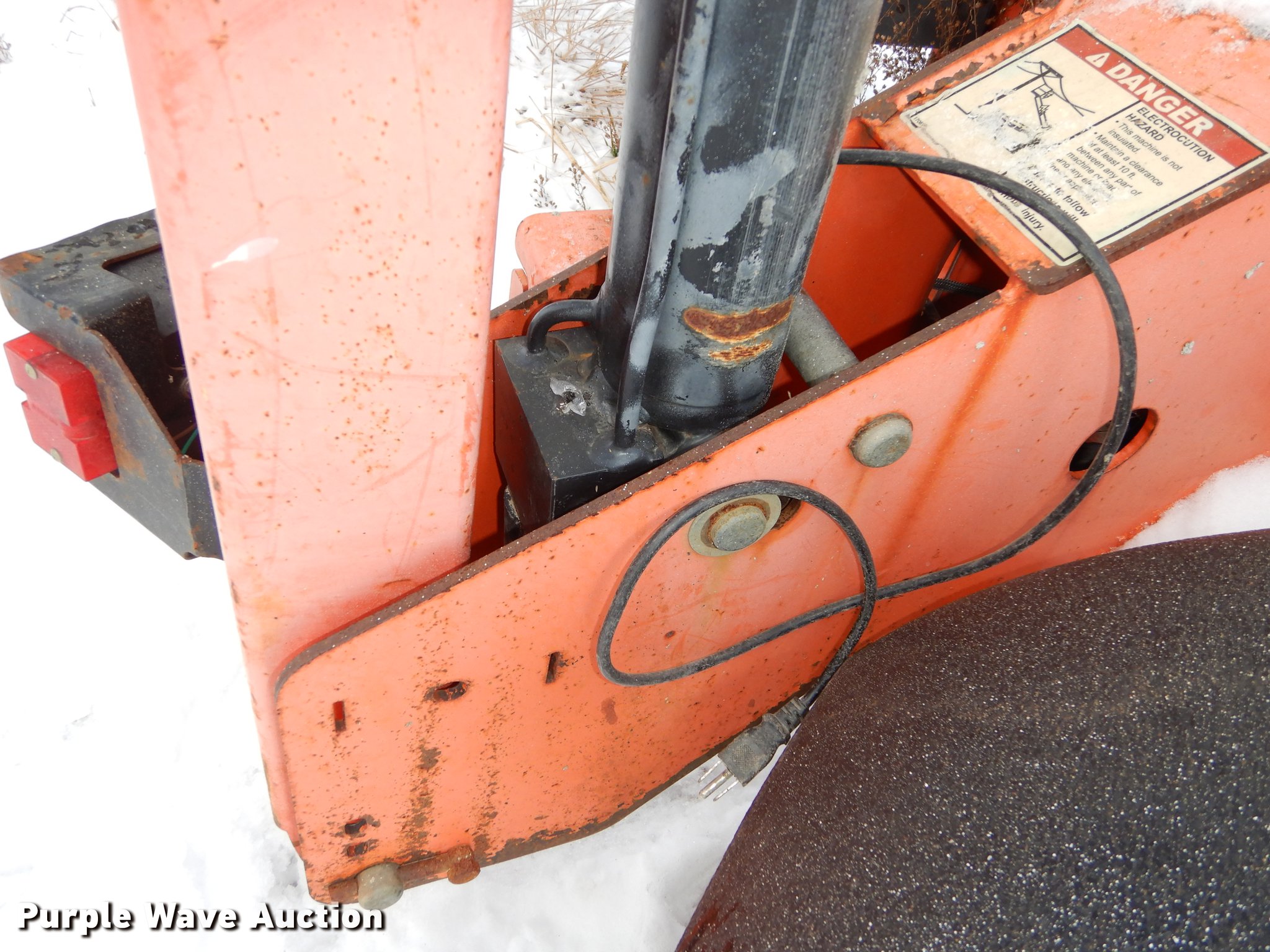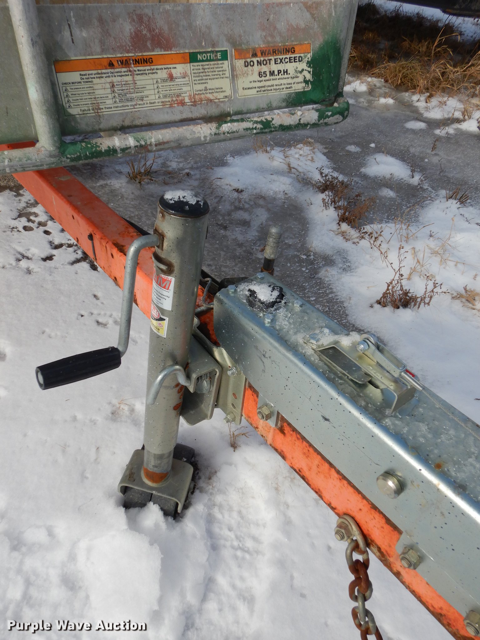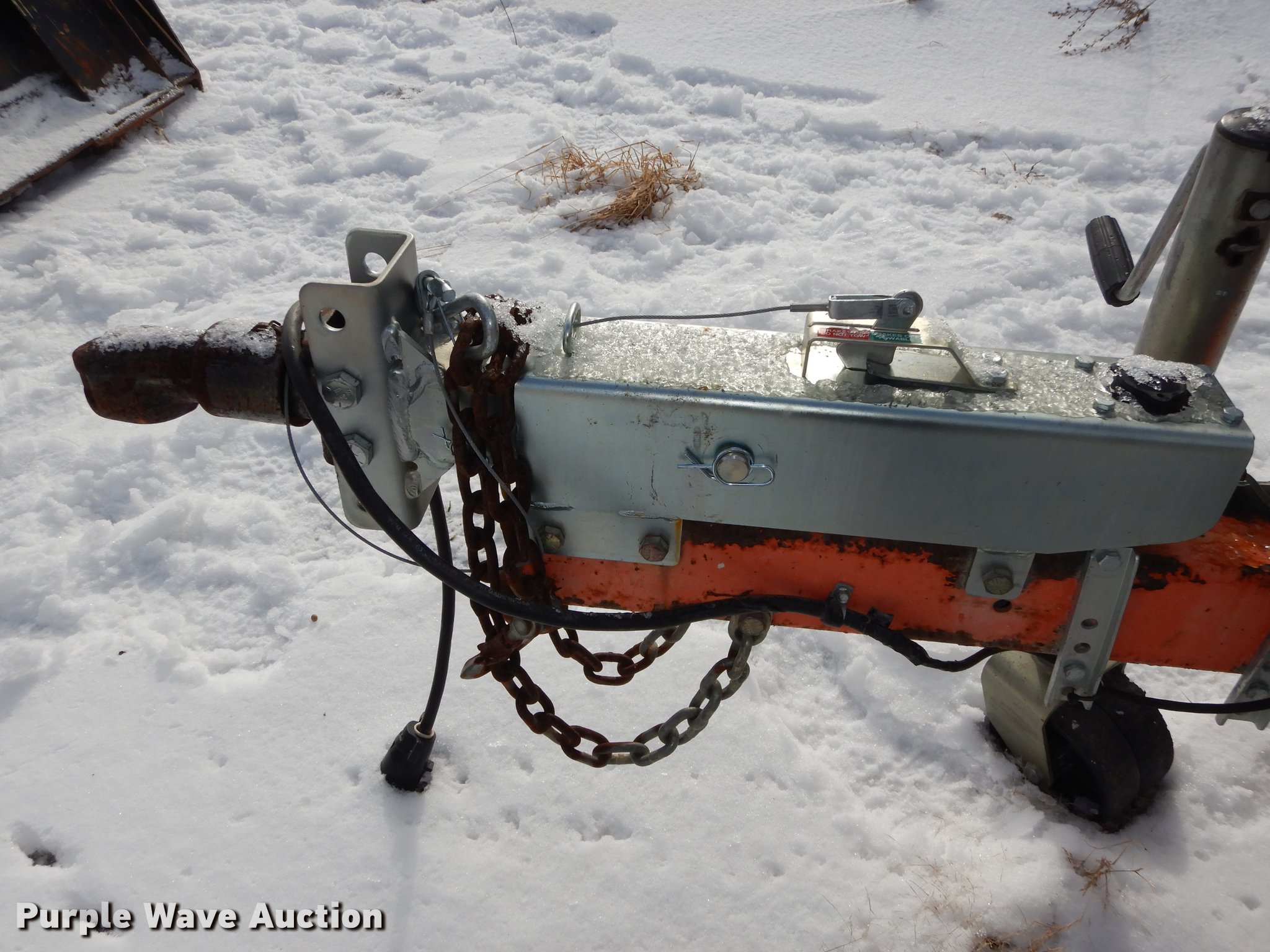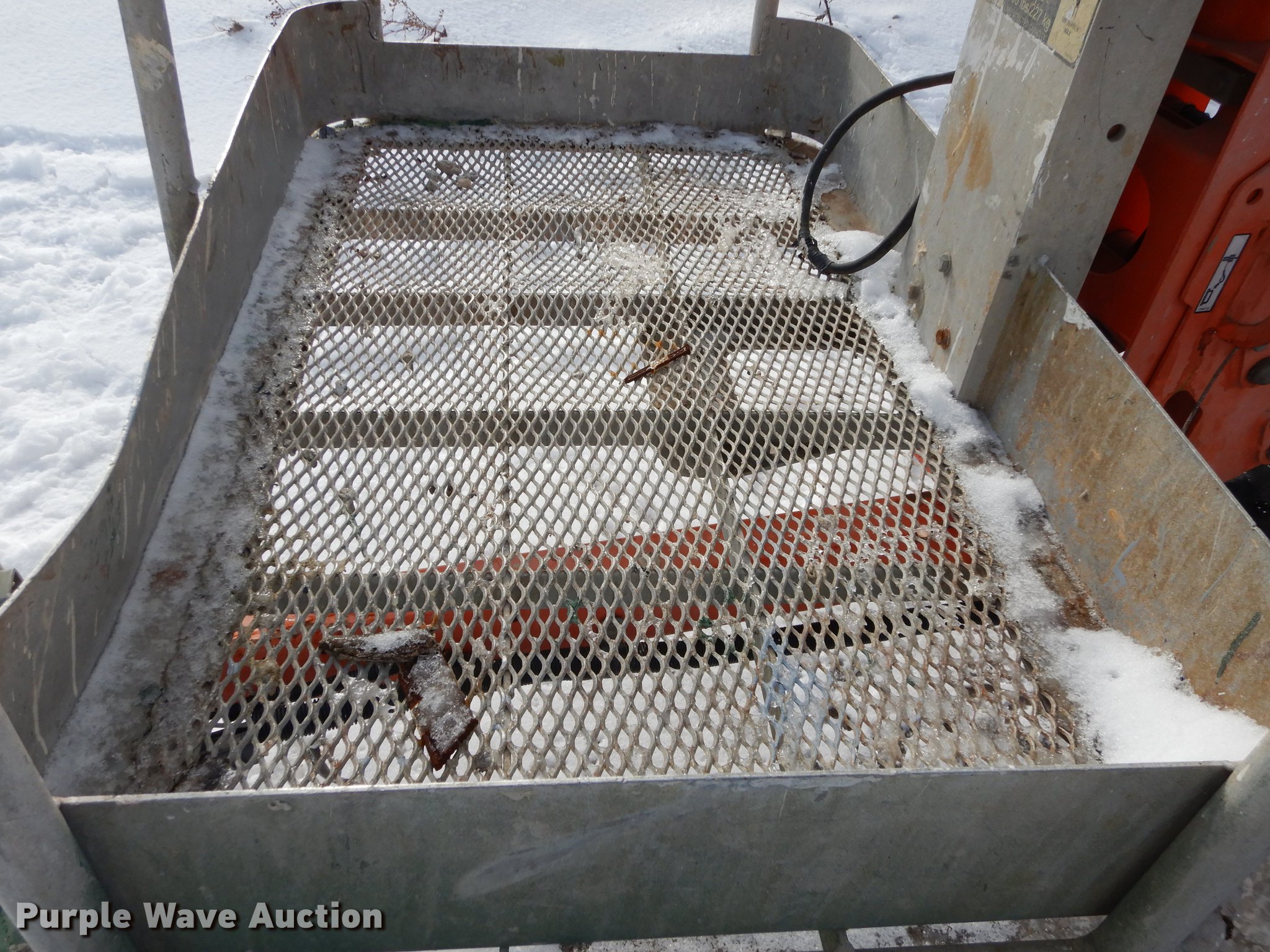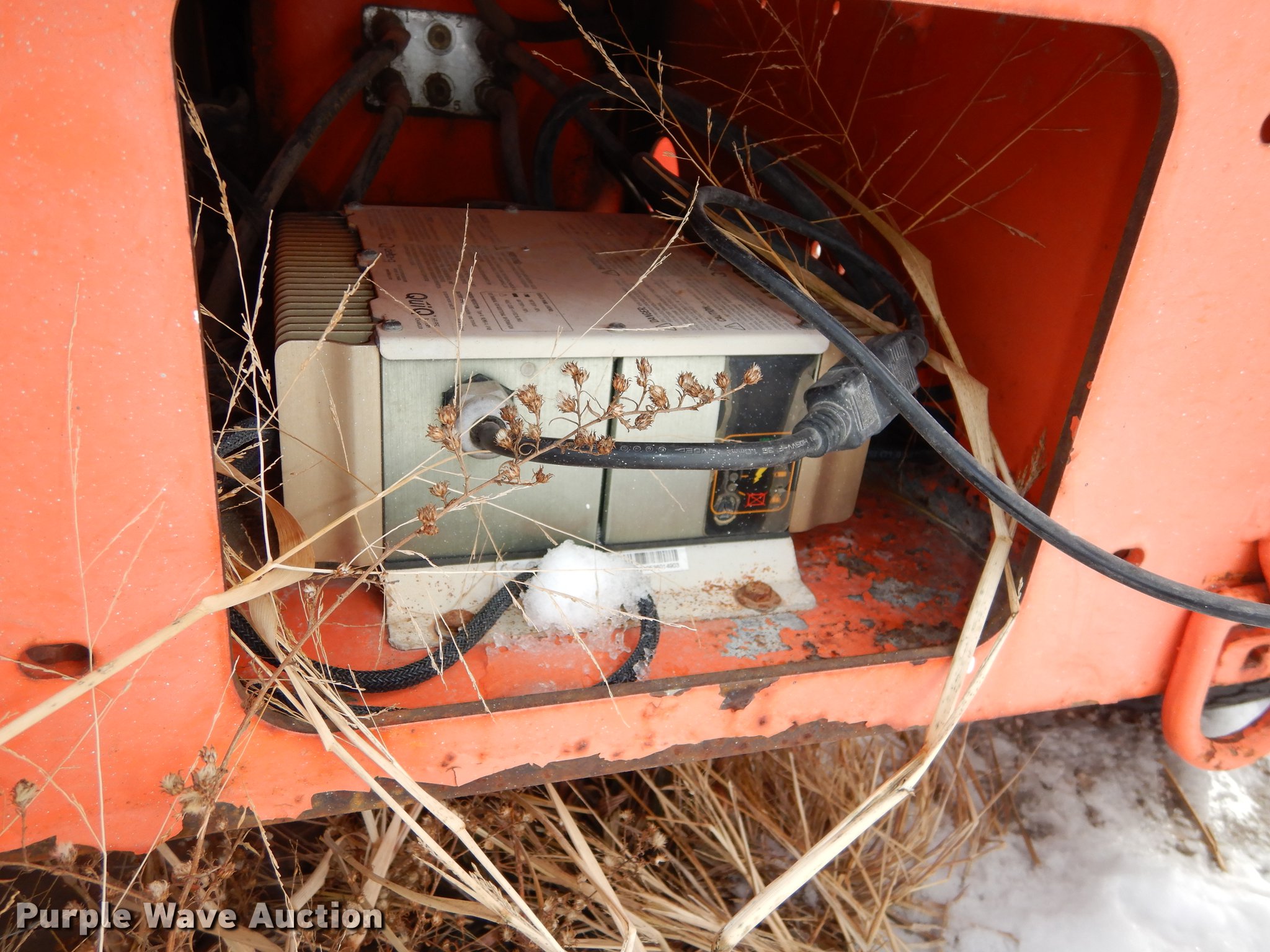 Purple Wave is selling a used Boom Lift in Kansas. This item is a JLG T350 boom lift with the following: 439 hours on meter, Model 7000 lift, 35' max reach length, 4' x 28" mast basket, 500 lbs capacity, Front and rear stabilizers, Lights, Safety chains, Break-away cable, 2" ball hitch, 205/75D14 tires, GVWR 3,825 lbs, Unknown operating condition