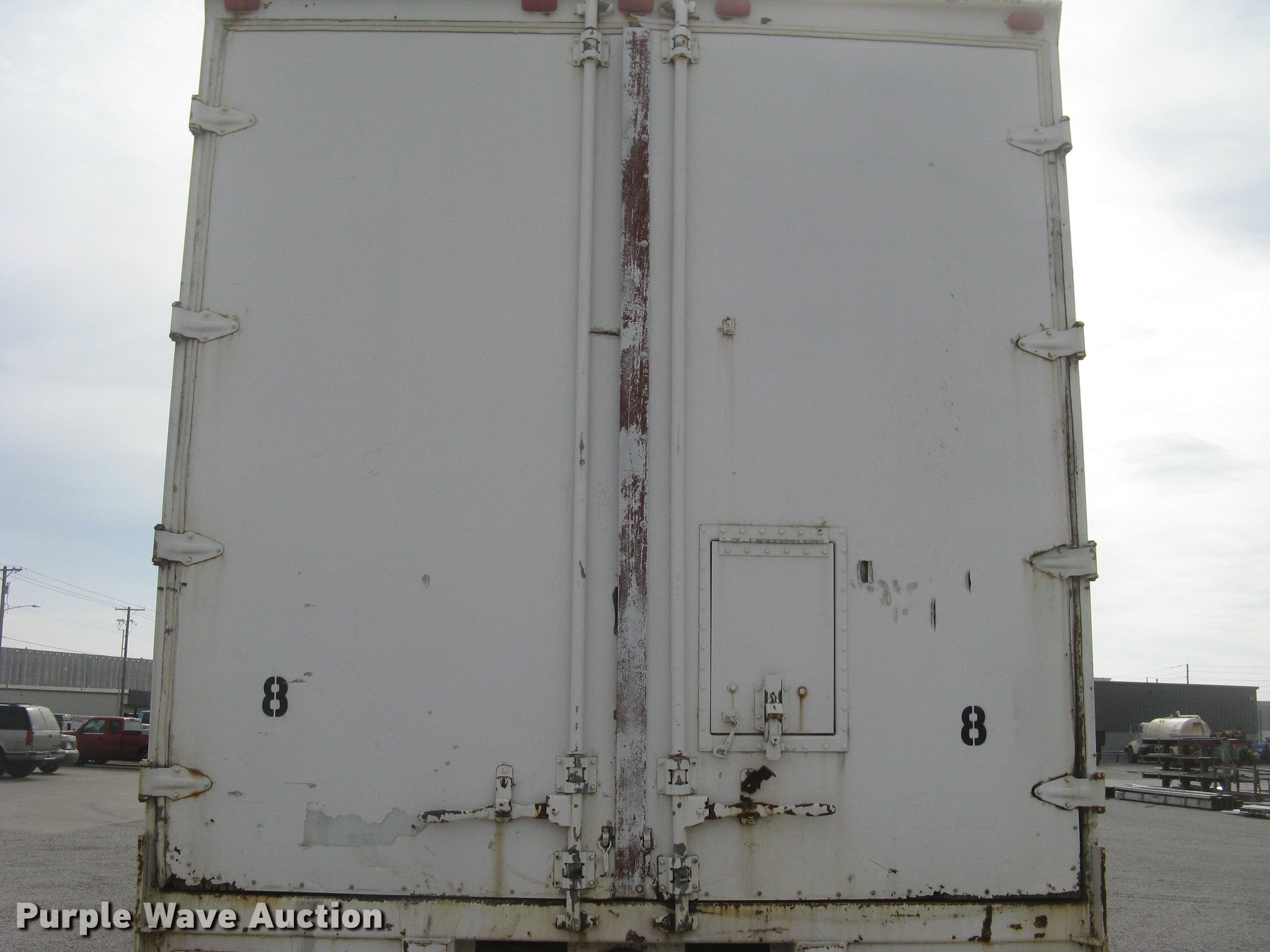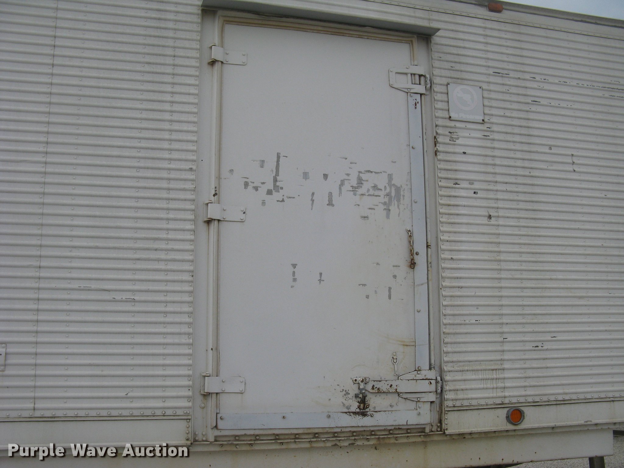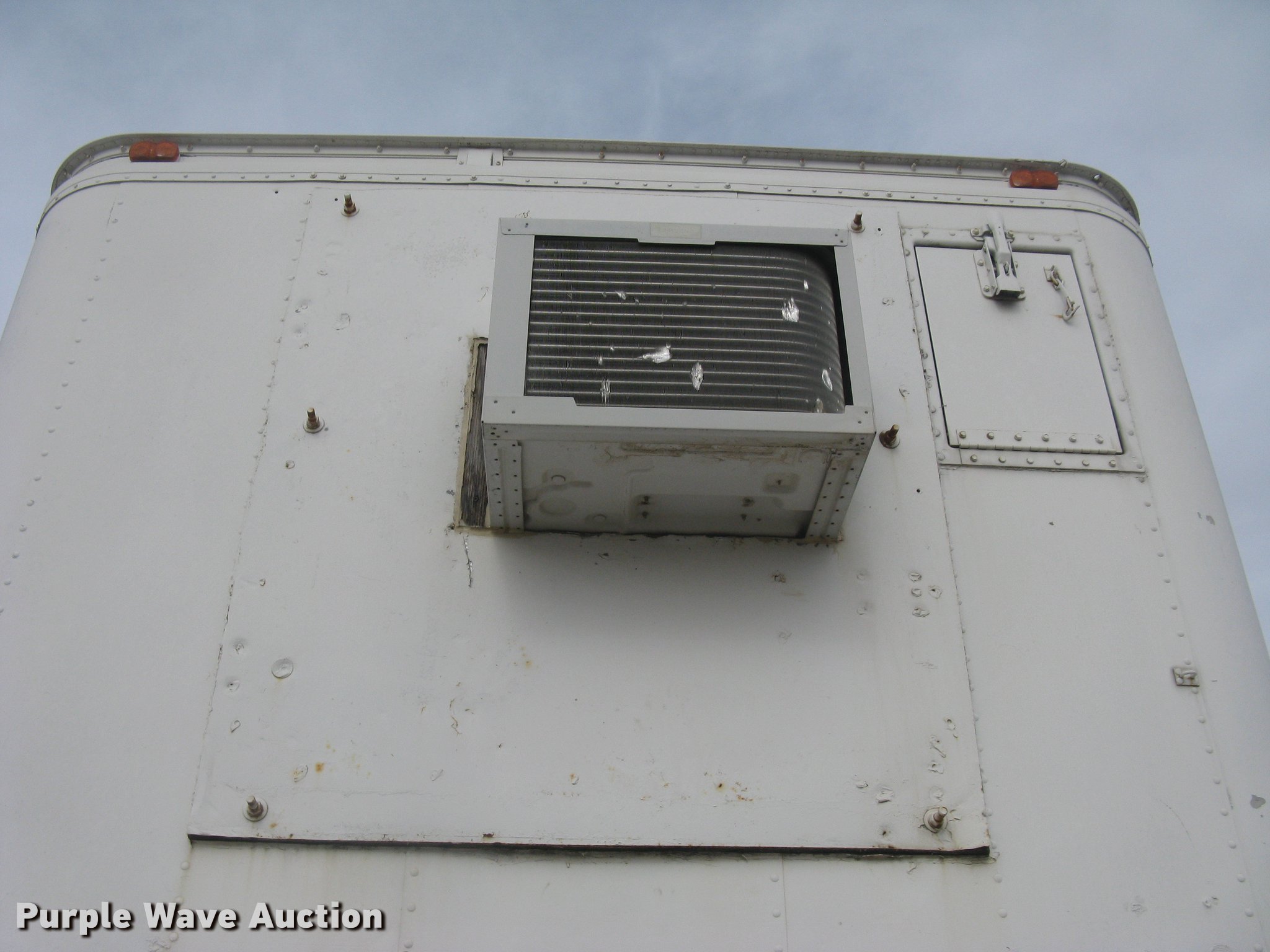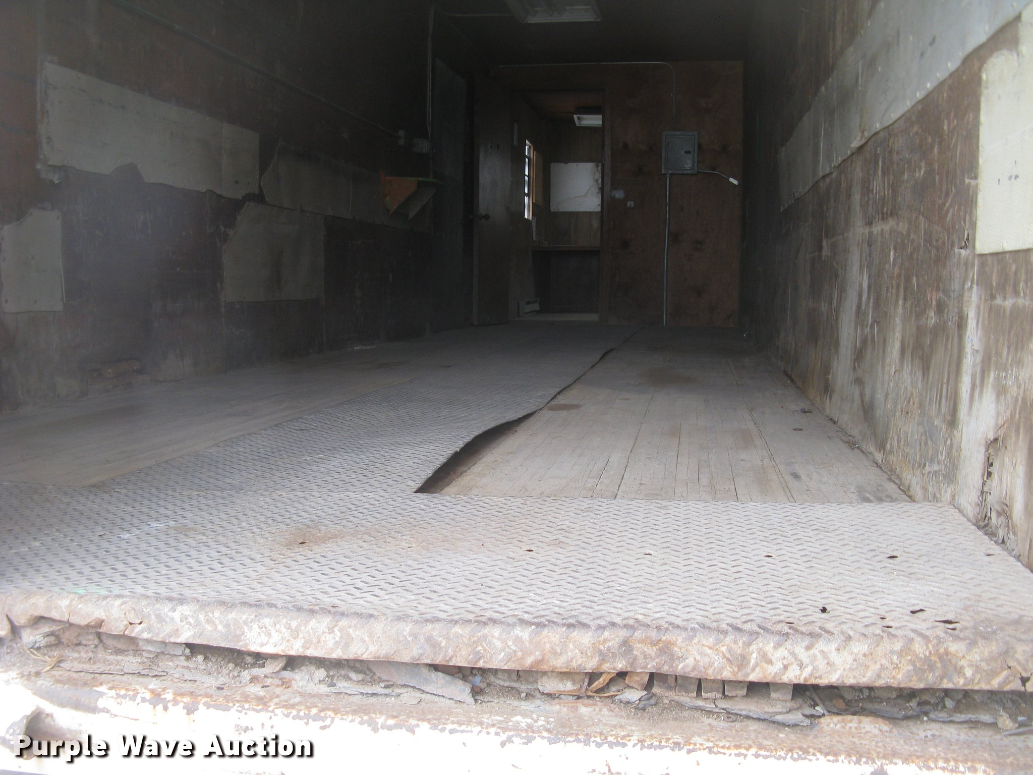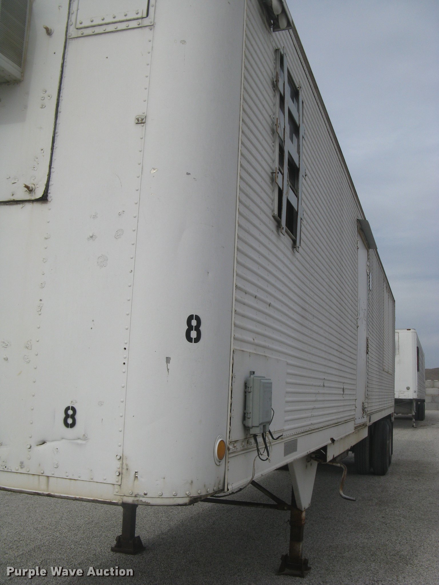 Purple Wave is selling a used Dry Van Trailer in Kansas. This item is a 1972 Trailmobile dry van jobsite trailer with the following: 41'L x 8'W, Interior office partition, 11'L, Work table, Blueprint table, Window AC unit, Lights, Baseboard heat, Side door, Swinging rear doors, Spare tire cradle, Fifth wheel plate, Dual leg landing gear, Spring suspension, Air brakes, Sliding tandem axle, Oil bath hubs, 10.00-20 tires, Unit# 8