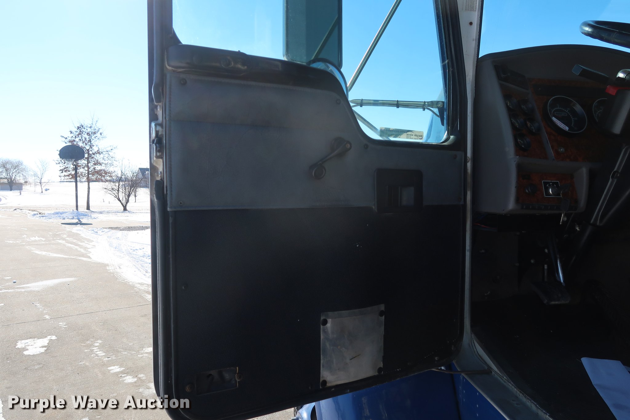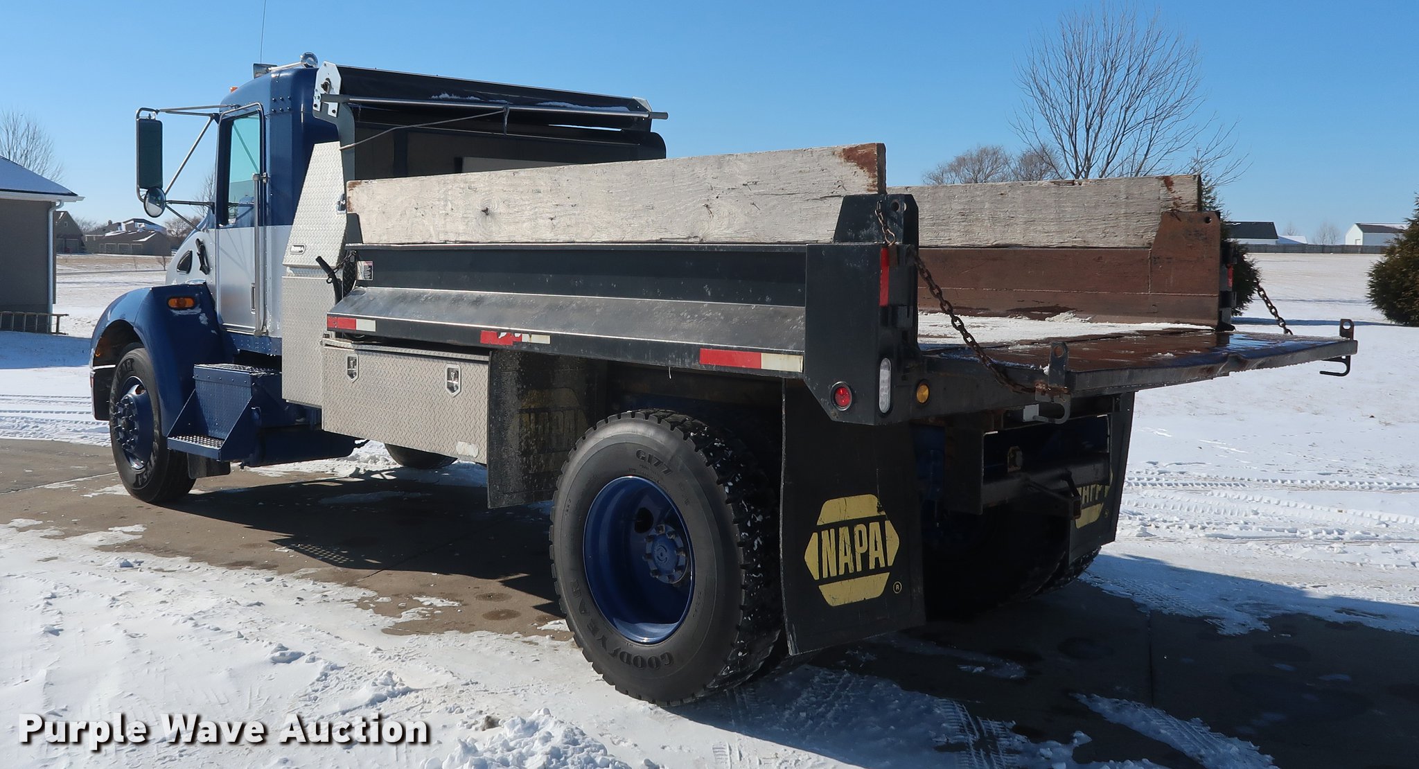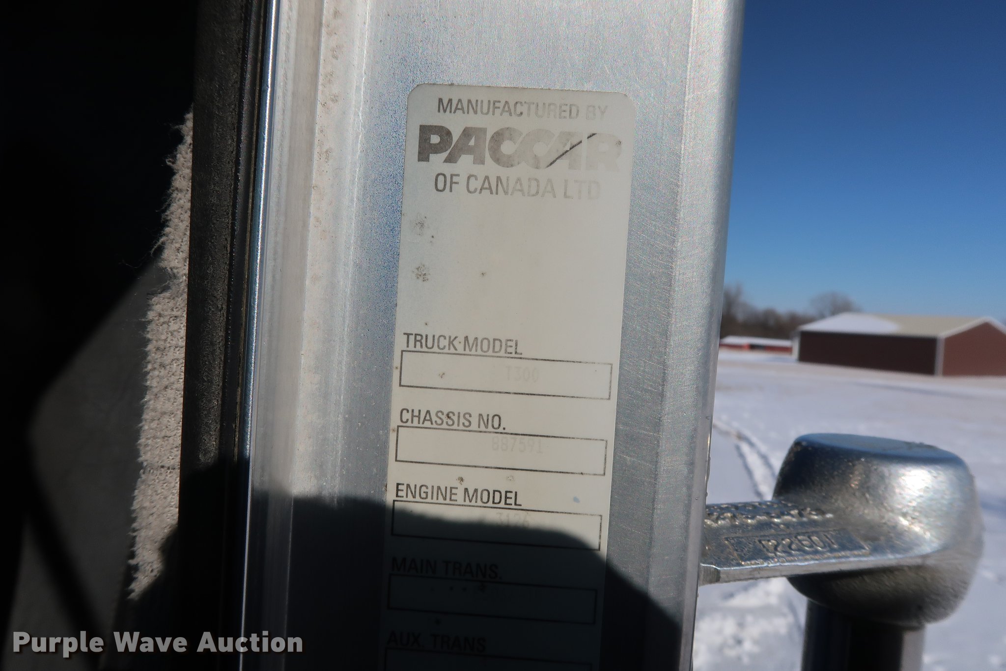 Purple Wave is selling a used Construction Dump Truck in Missouri. This item is a 2002 Kenworth T300 dump truck with the following: 243,258 miles on odometer, 11,775 hours on meter, Caterpillar 3126 7.2L L6 turbo diesel engine, Eaton Fuller 7 speed manual transmission, Single axle, AC and heat, Tilt, Cruise, AM/FM/Cassette, Heated mirrors, Air suspension seat, 11'L x 8'W dump bed, 14" side height, 12" side boards, Electric over hydraulic, Exhaust brake, Spring suspension, Air brakes, 11R22.5 tires