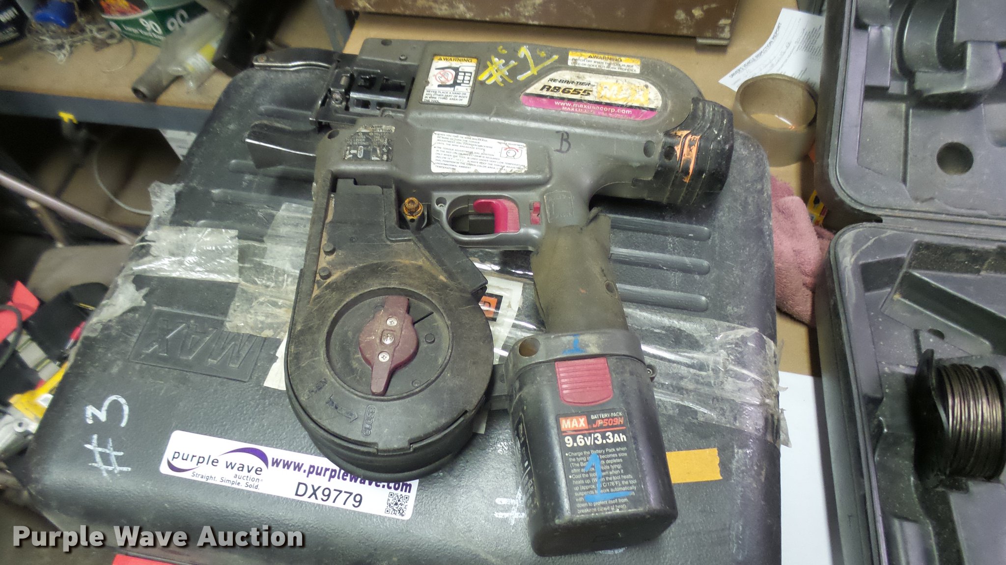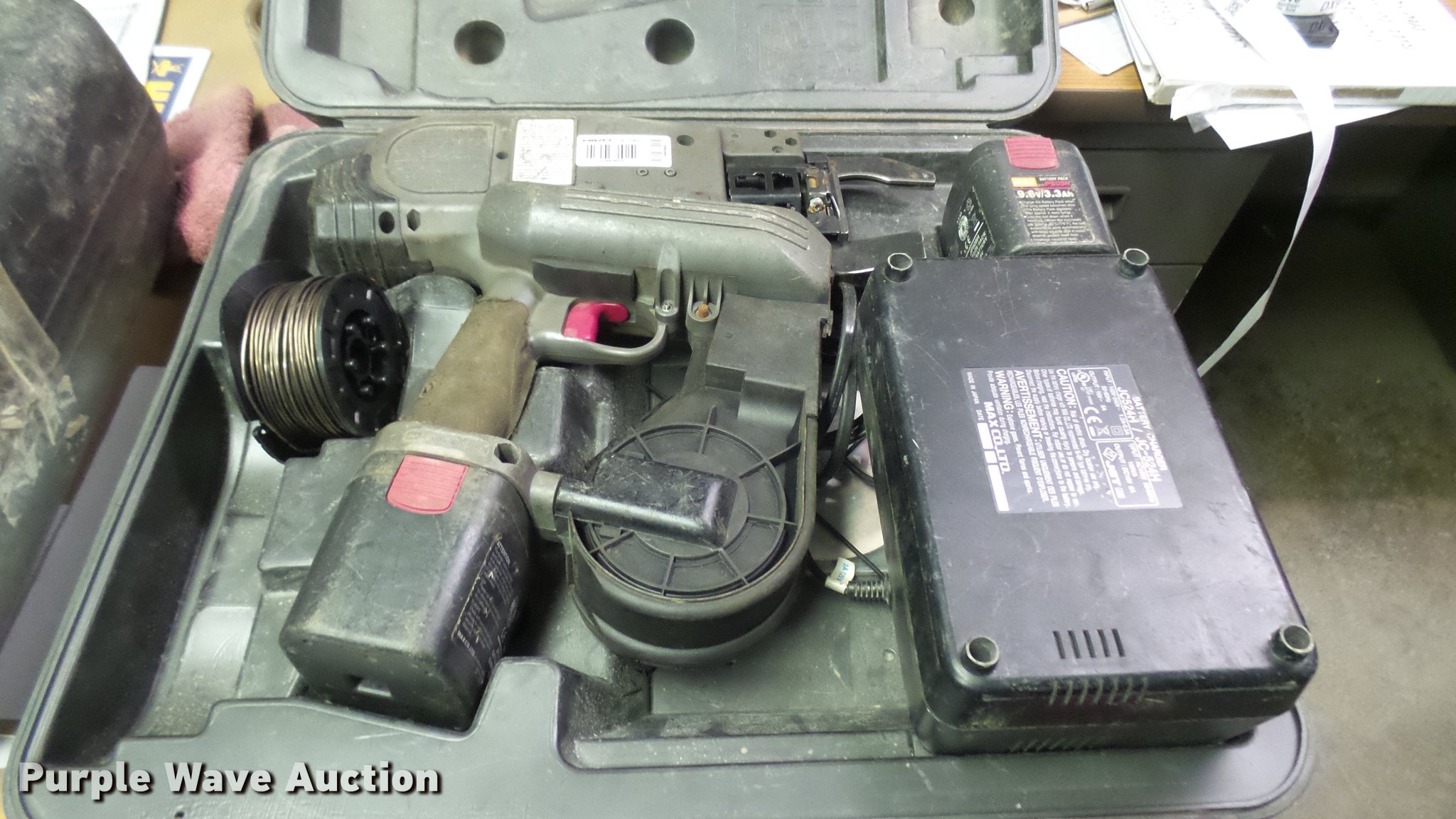 Purple Wave is selling a used Tools in Kansas. This item is a Max RB655 re-bar tier with the following: Wire, Charger, Battery, Case