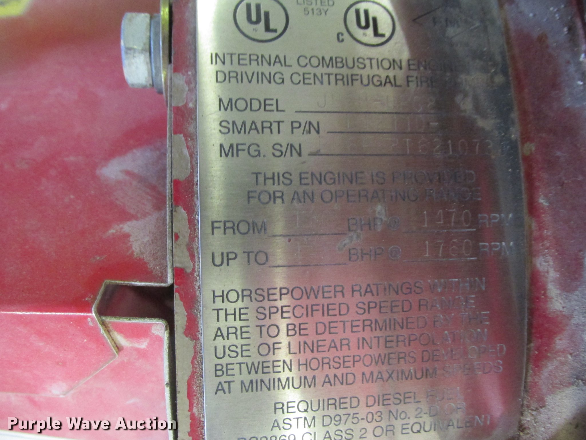 Purple Wave is selling a used Pump in Minnesota. This item is a Clarke fire water pump system with the following: 176 hours on meter, John Deere 6.8L six cylinder turbo diesel engine, 187 gallon fuel tank, Aurora cetrifugal fire pump, Jockey pump, 1.5 HP, 12.7 gallon per minute capacity, 1,500 gallon per minute capacity, 8" intake and discharge, Unit disassembled for transportation