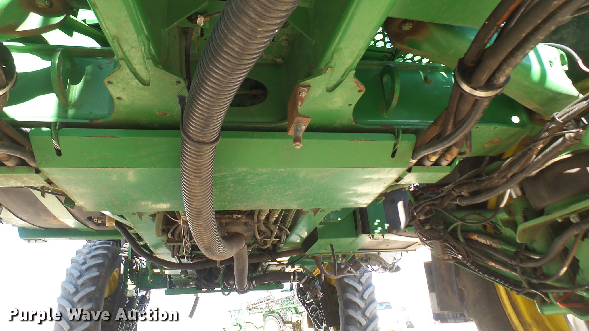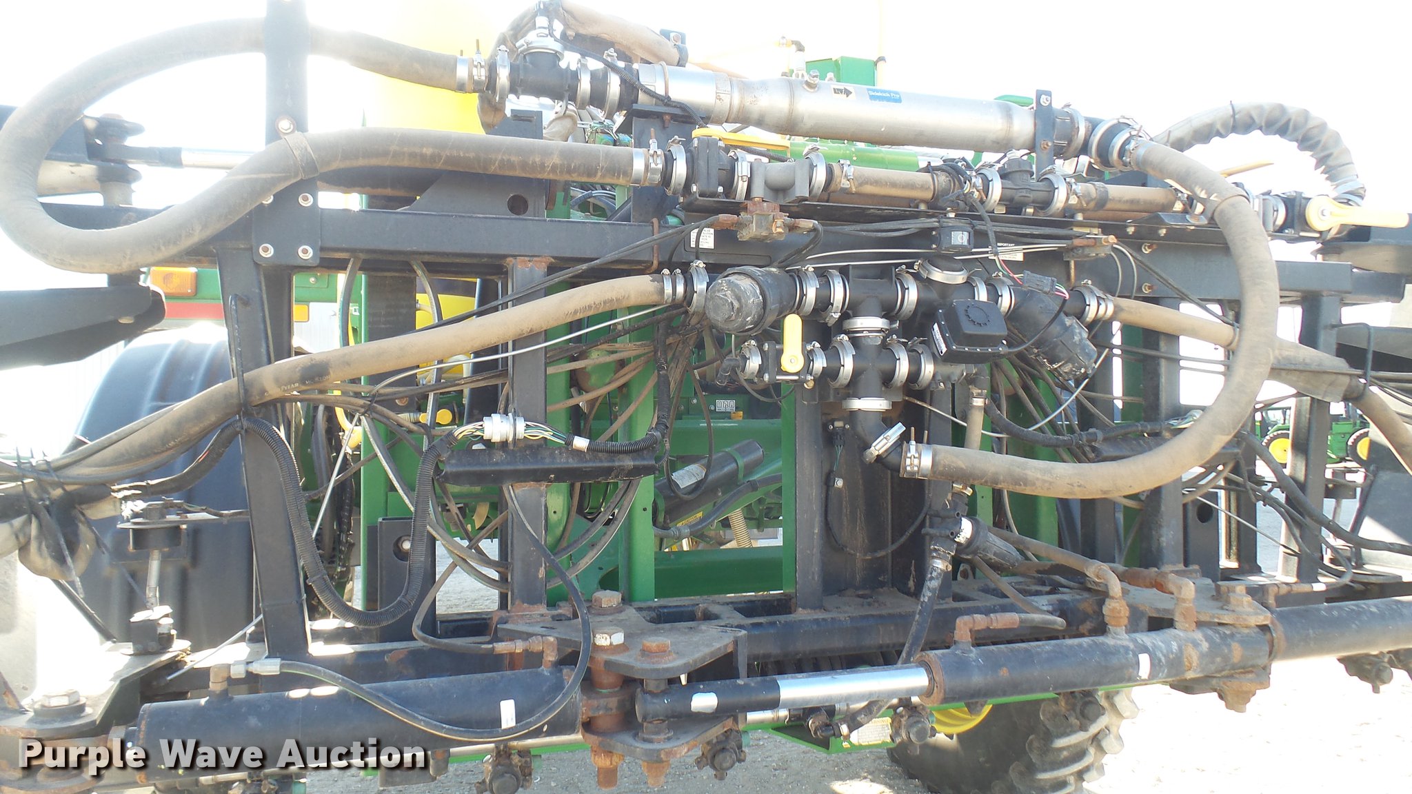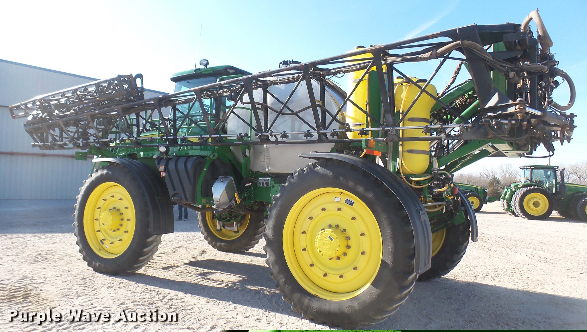 Purple Wave is selling a used Applicator Self Propelled in Kansas. This item is a 2013 John Deere 4940 self-propelled applicator with the following: 2,583 engine hours on meter, 856 spray hours on meter, 131,548 acres on meter, John Deere 6090HN004 six cylinder turbo diesel engine, Serial RG6090R037854, Hydrostatic transmission, Four wheel drive, 1,200 gallon stainless steel solution tank, Stainless steel chemical eductor tank, 120'W boom, Three boom sections, Hydraulic boom fold, Hydraulic height control, 15" nozzle spacing, John Deere five-way nozzle bodies, Fence row right side nozzle, Fence row left side plumbed, AC and heat, AM/FM/CD, Tilt, Air suspension seat, Worklights, Shades, John Deere 2630 GPS monitor, John Deere Star Fire 3000 GPS receiver, Fenders, Hydraulic axle width adjust, Firestone 380/105R50 row crop tires, Serial 1N04940XVC0023609