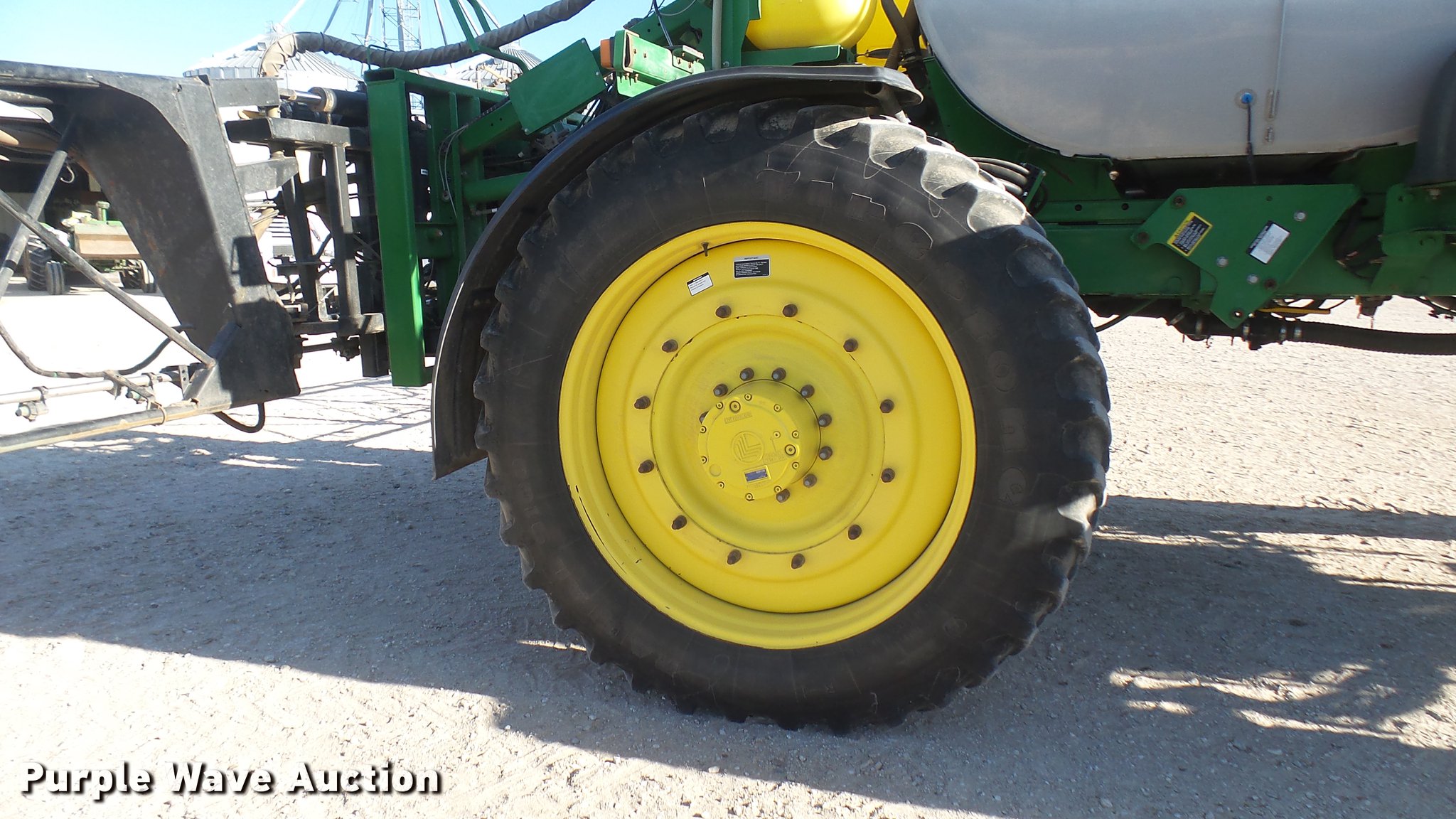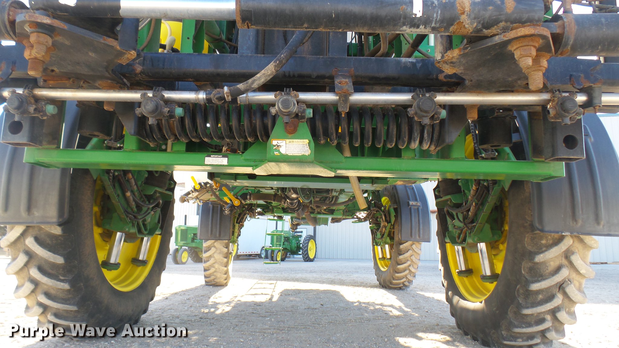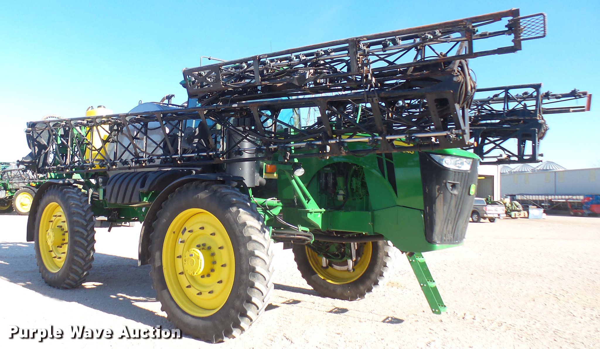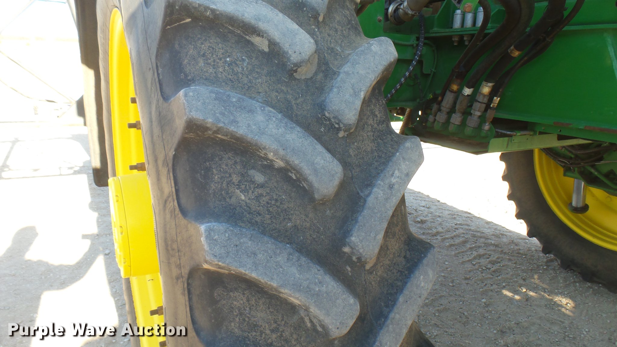 Purple Wave is selling a used Applicator Self Propelled in Kansas. This item is a 2013 John Deere 4940 self-propelled applicator with the following: 2,583 engine hours on meter, 856 spray hours on meter, 131,548 acres on meter, John Deere 6090HN004 six cylinder turbo diesel engine, Serial RG6090R037854, Hydrostatic transmission, Four wheel drive, 1,200 gallon stainless steel solution tank, Stainless steel chemical eductor tank, 120'W boom, Three boom sections, Hydraulic boom fold, Hydraulic height control, 15" nozzle spacing, John Deere five-way nozzle bodies, Fence row right side nozzle, Fence row left side plumbed, AC and heat, AM/FM/CD, Tilt, Air suspension seat, Worklights, Shades, John Deere 2630 GPS monitor, John Deere Star Fire 3000 GPS receiver, Fenders, Hydraulic axle width adjust, Firestone 380/105R50 row crop tires, Serial 1N04940XVC0023609