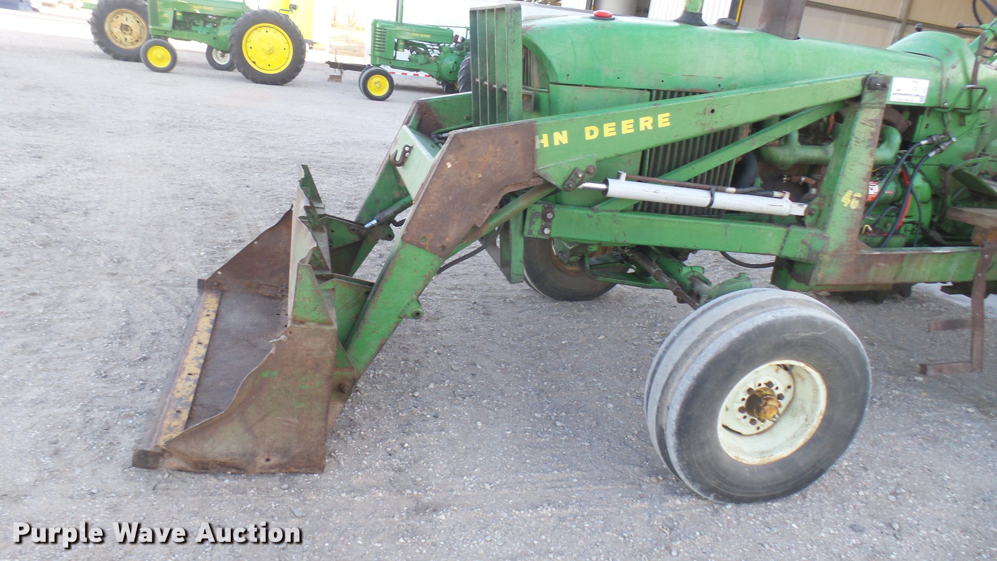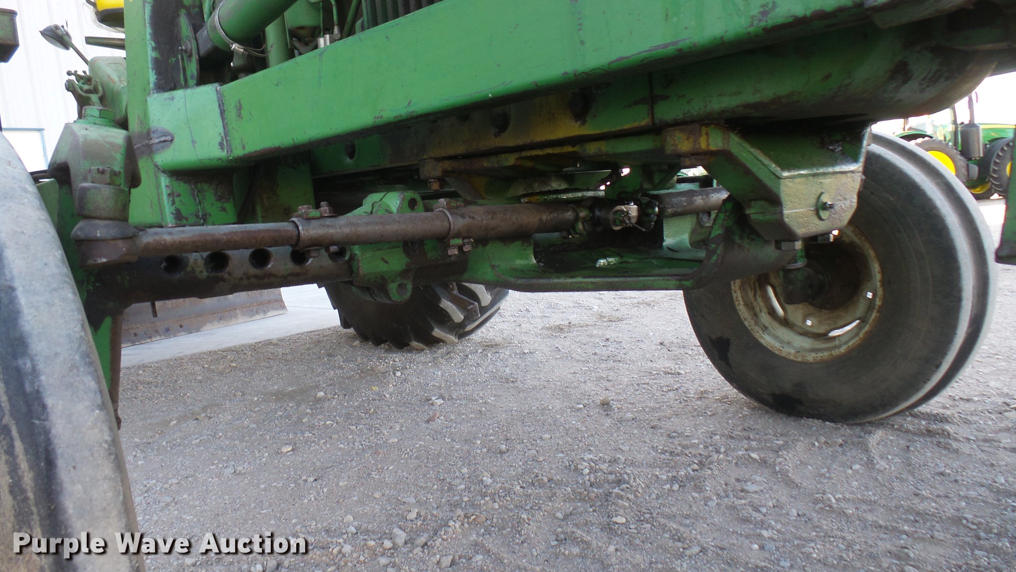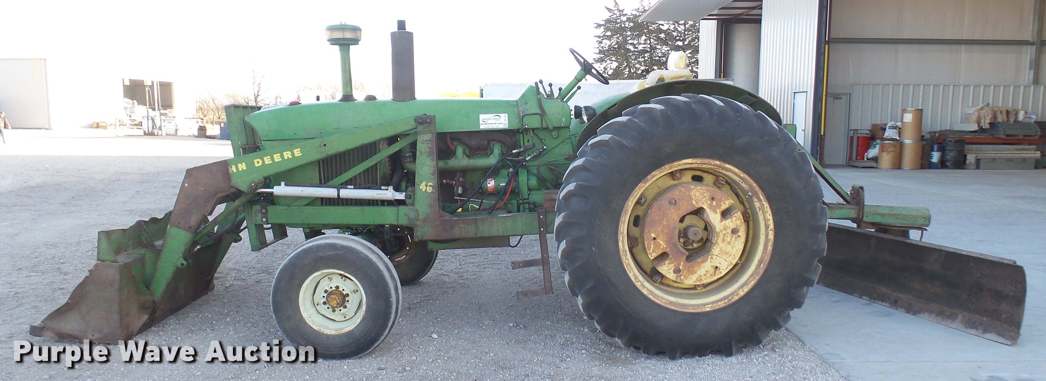 Purple Wave is selling a used Tractor in Kansas. This item is a John Deere 4010 tractor with the following: 7,490 hours on meter, John Deere 6.2L six cylinder diesel engine, Partial synchronized transmission, 8F-3R gears, Work lights, John Deere 46 loader, 60"W bucket, Three point, 540 PTO, Rear hydraulic remote set, 11L-15 front tires, 18.4-34 rear tires, Blade not included, Serial 401022T16881