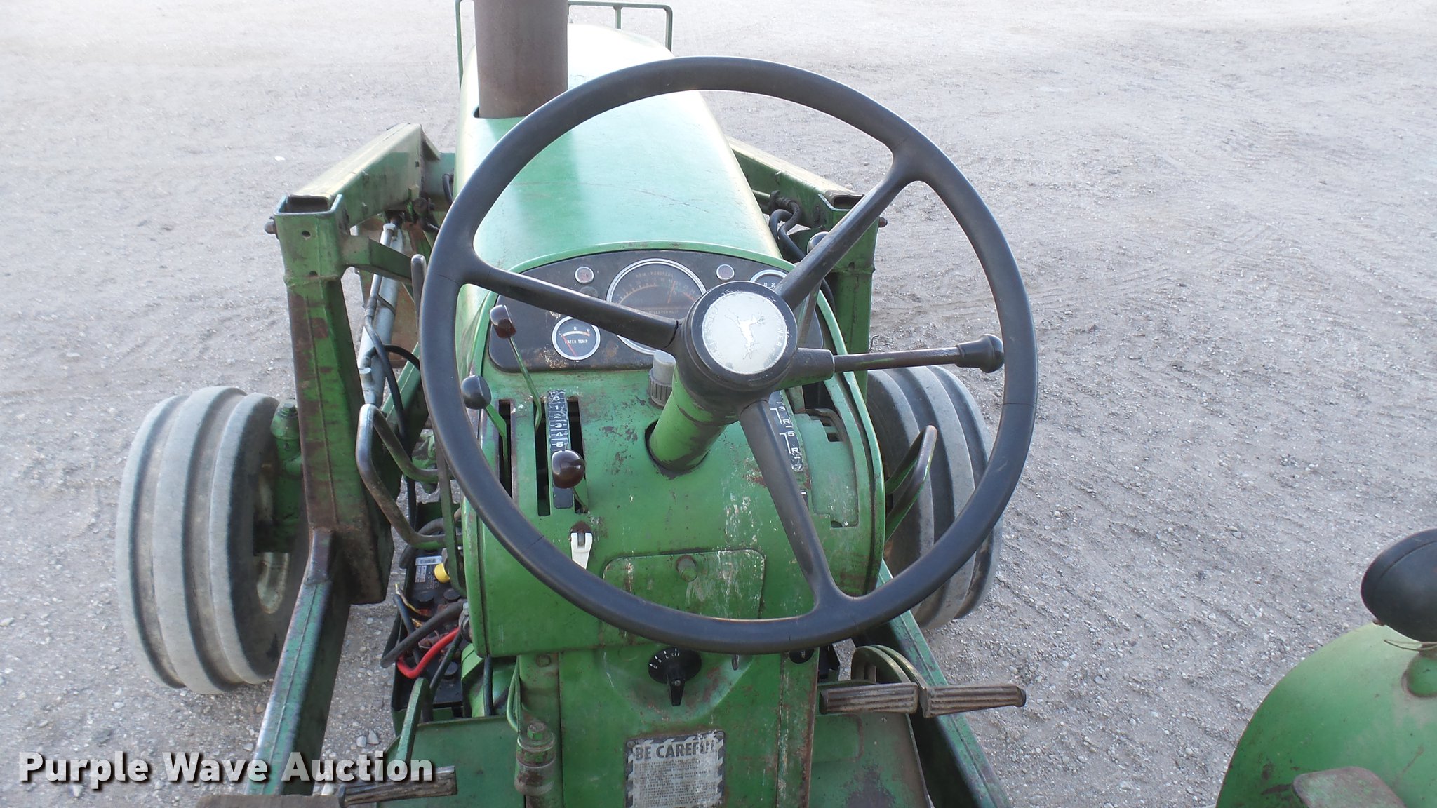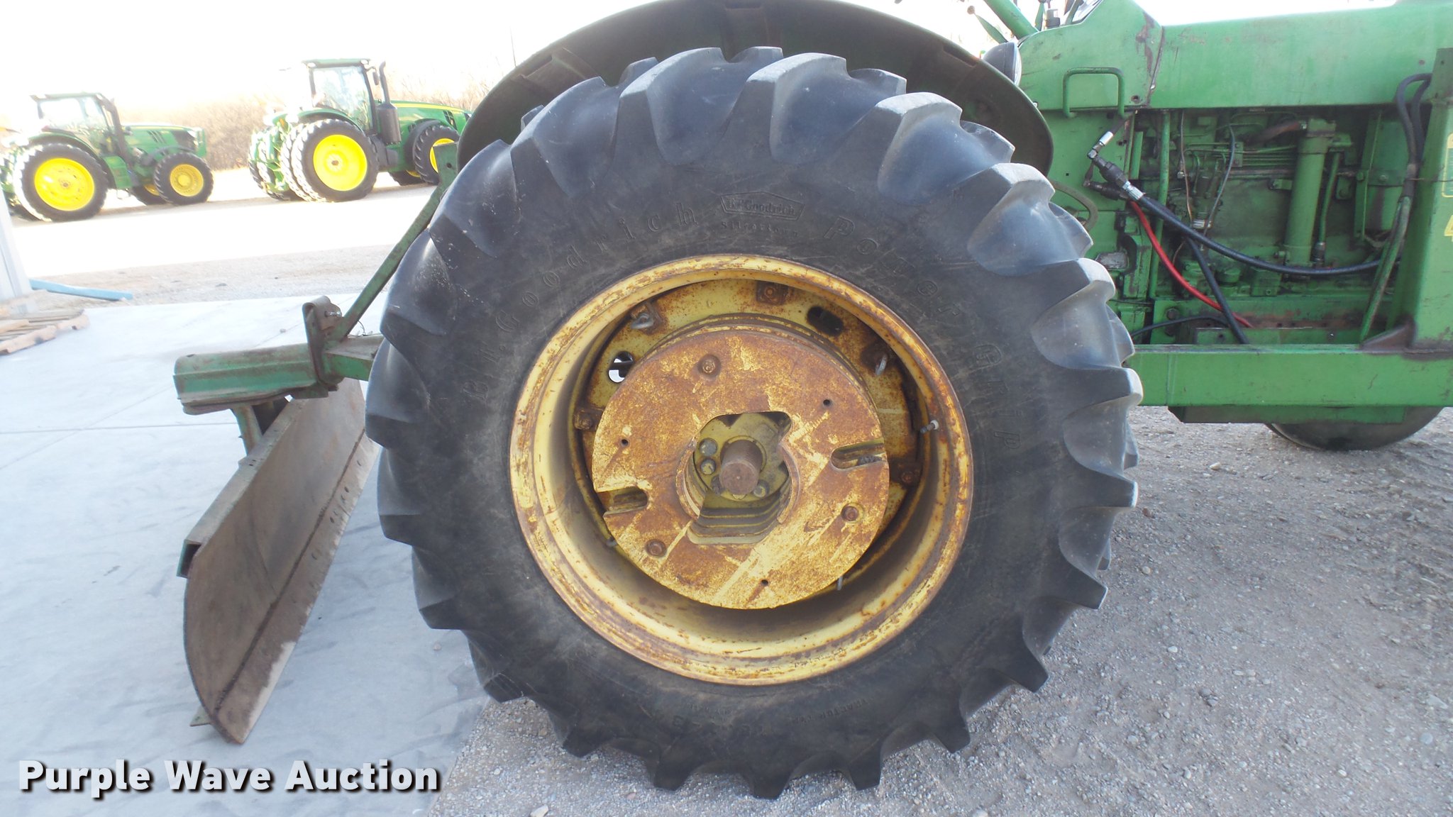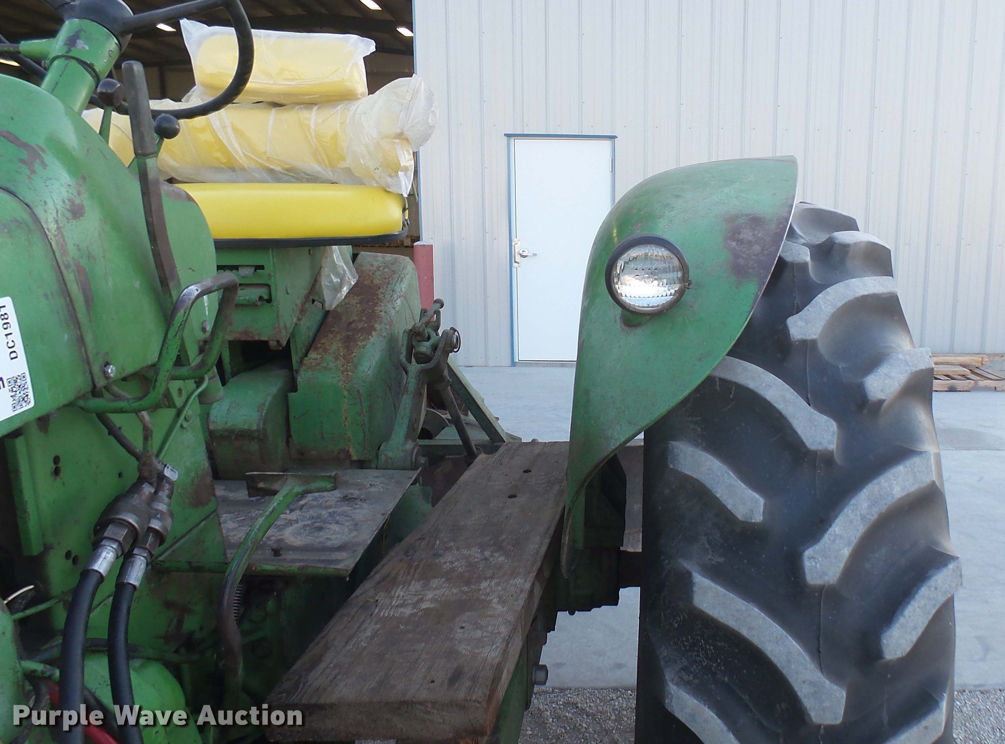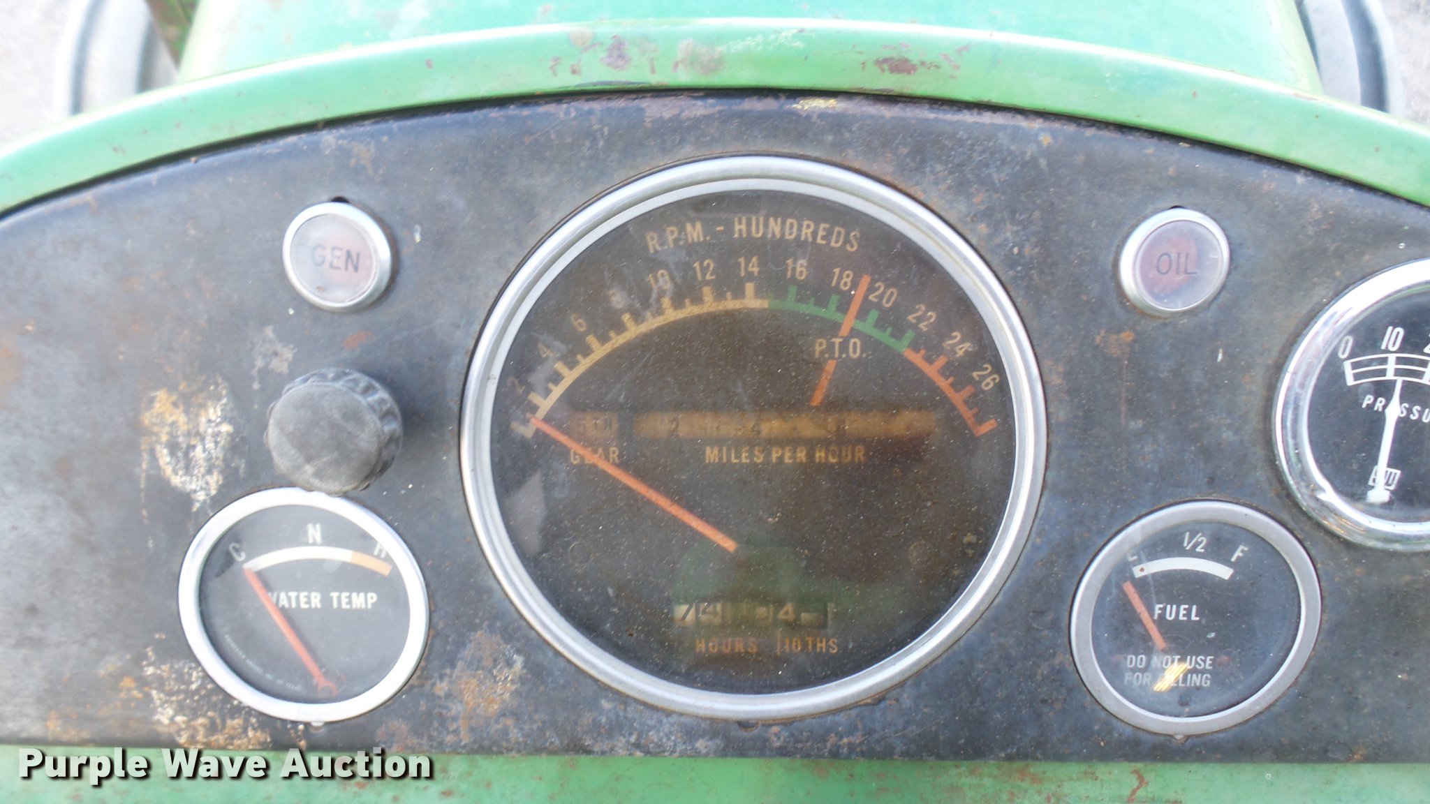 Purple Wave is selling a used Tractor in Kansas. This item is a John Deere 4010 tractor with the following: 7,490 hours on meter, John Deere 6.2L six cylinder diesel engine, Partial synchronized transmission, 8F-3R gears, Work lights, John Deere 46 loader, 60"W bucket, Three point, 540 PTO, Rear hydraulic remote set, 11L-15 front tires, 18.4-34 rear tires, Blade not included, Serial 401022T16881