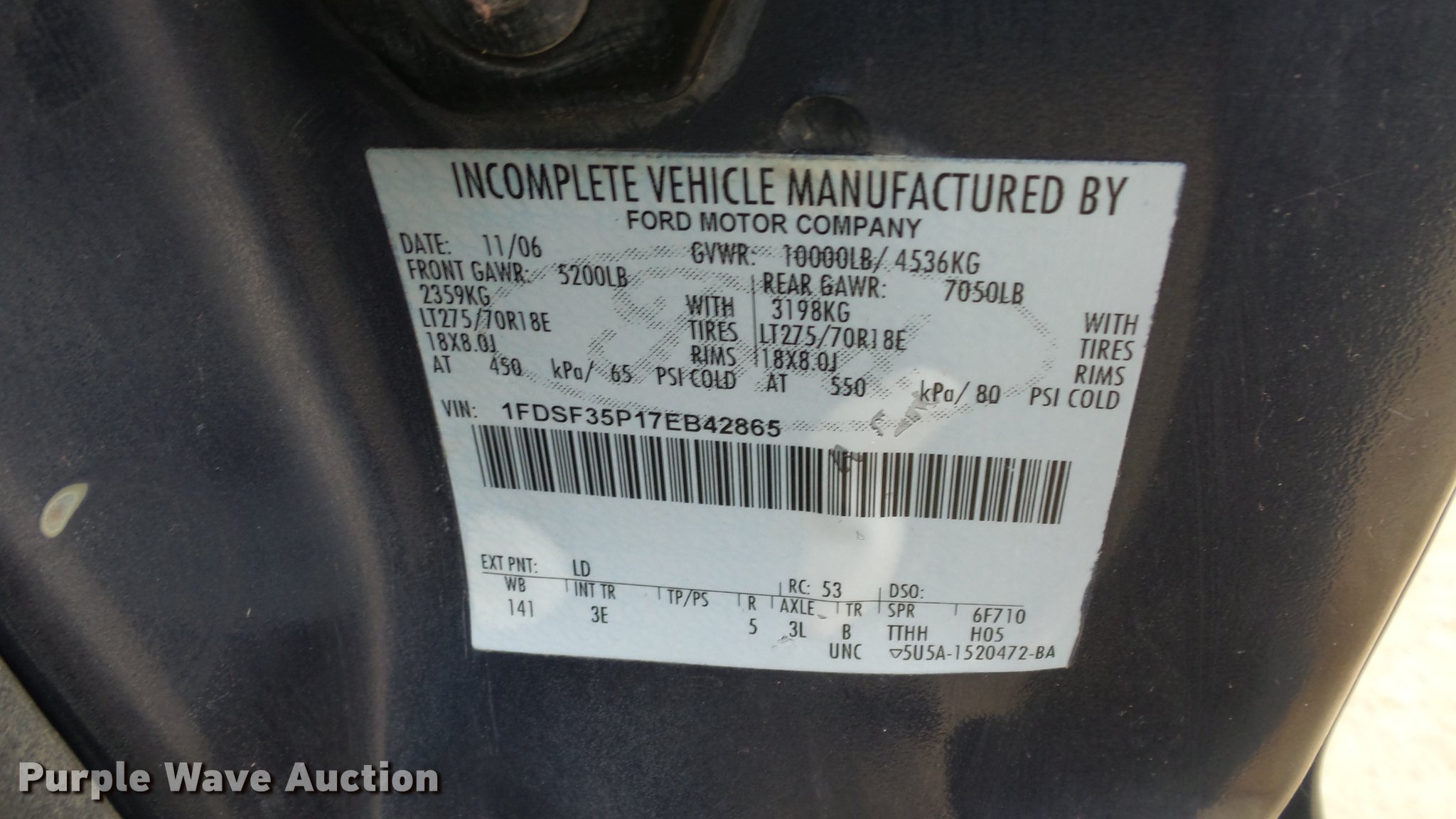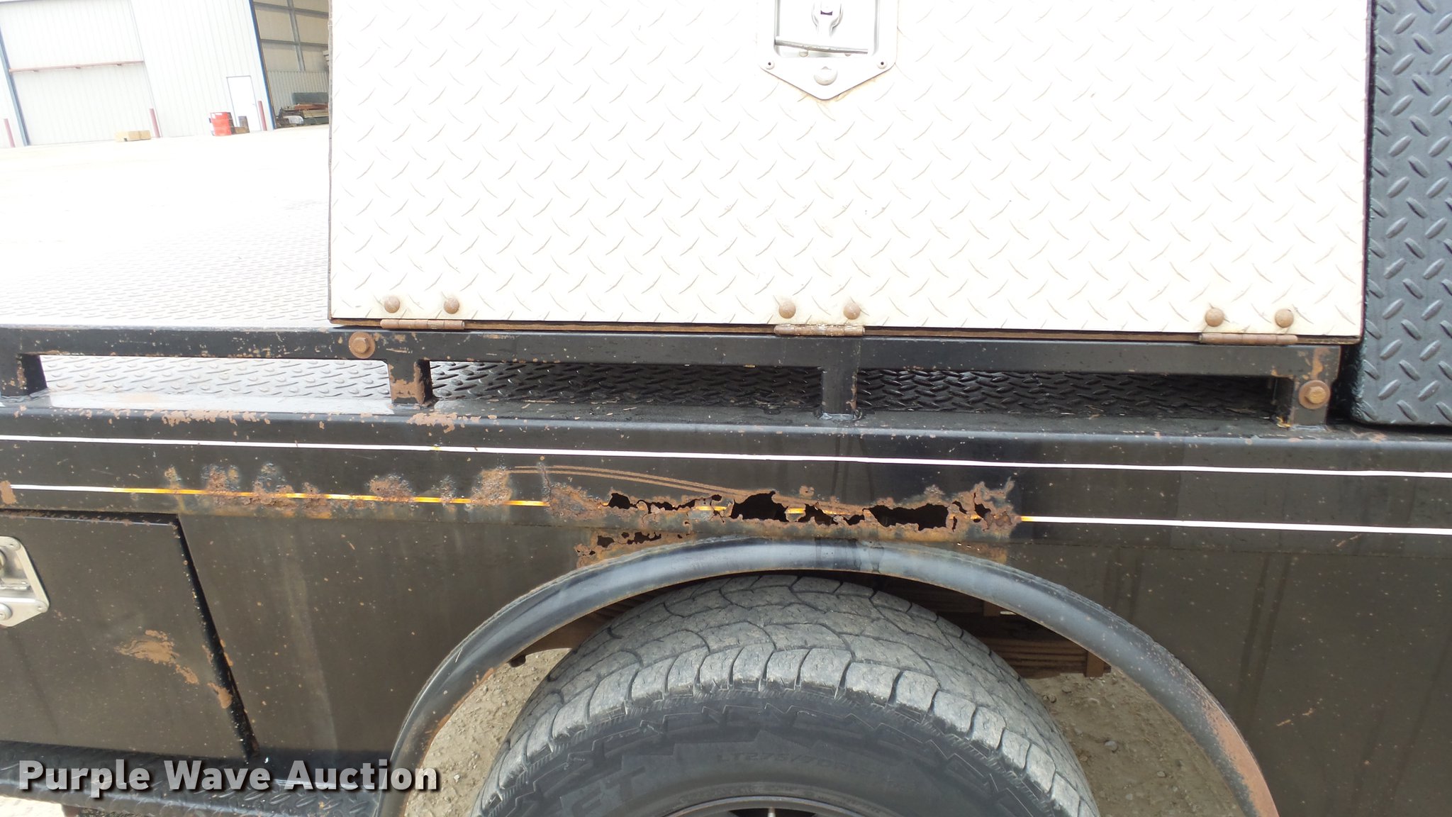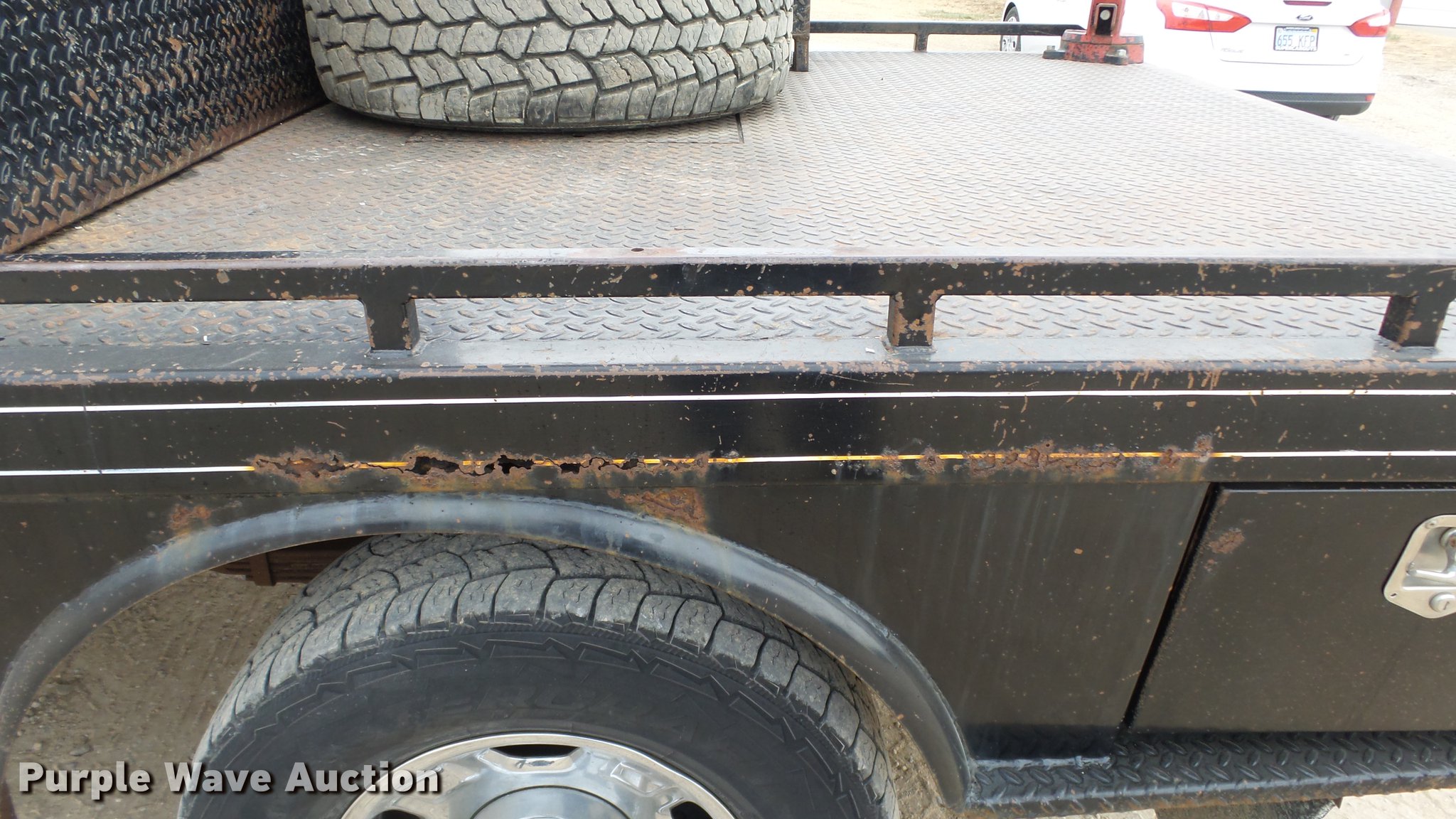 Purple Wave is selling a used 3/4 or 1 Ton Pickup or Van in Kansas. This item is a 2007 Ford F350 Super Duty XLT flatbed pickup truck with the following: 152,658 miles on odometer, 6.0L V8 OHV 32V turbo diesel engine, Automatic transmission, Four wheel drive, AC and heat, Tilt, Cruise, Power windows, locks, and mirrors, AM/FM/CD, Cloth interior, Trailer brake controller, B&W flatbed, 9'3"L x 7'W, Toolbox, 6" vise, Auxiliary fuel tank, 12V fuel pump, Hose, Nozzle,, Ranch Hand bumper replacement, Front tow hooks, Running boards, Trailer wiring, Receiver hitch, LT275/70R18 tires, Check engine light on, ABS light on, Windshield chipped
