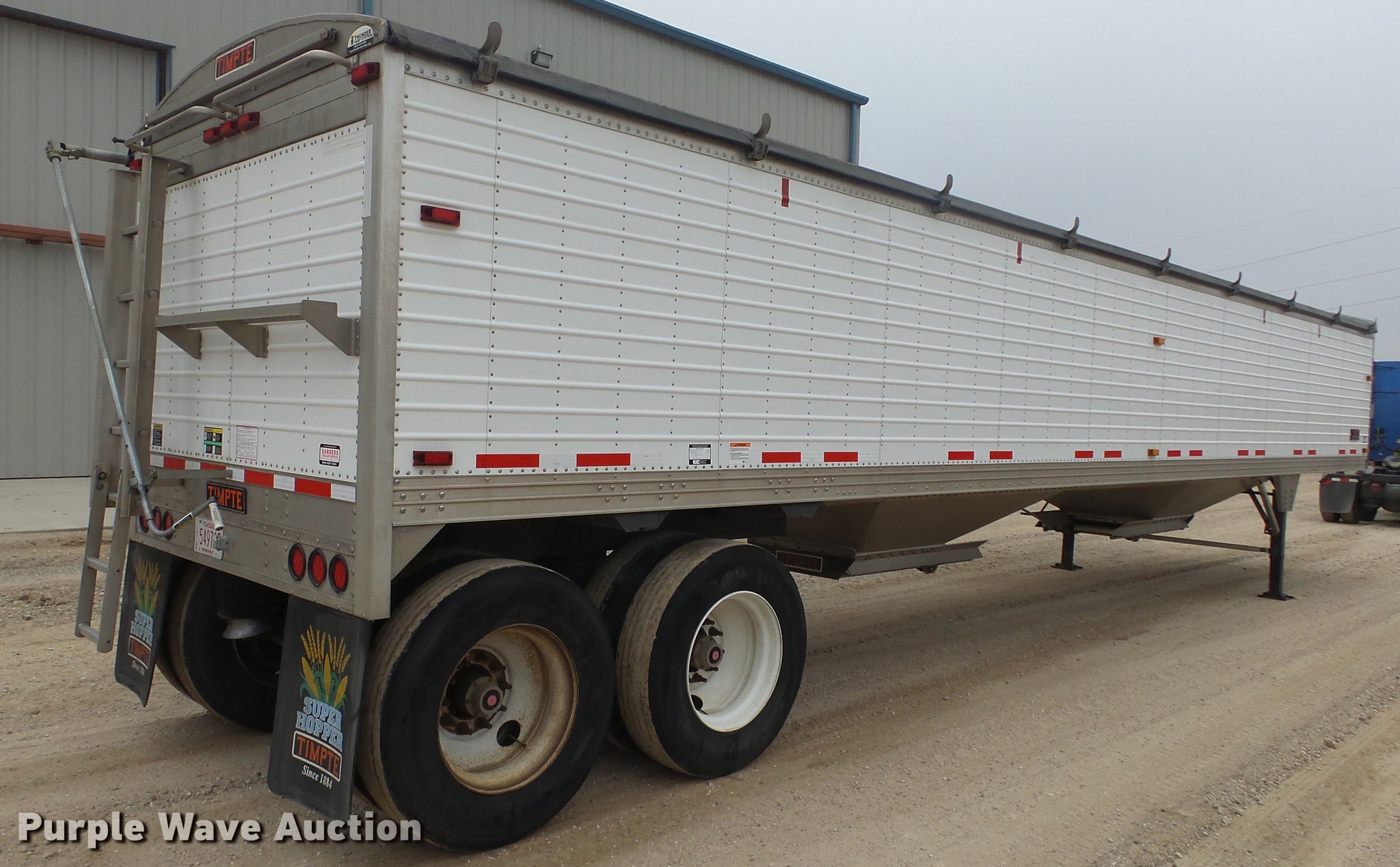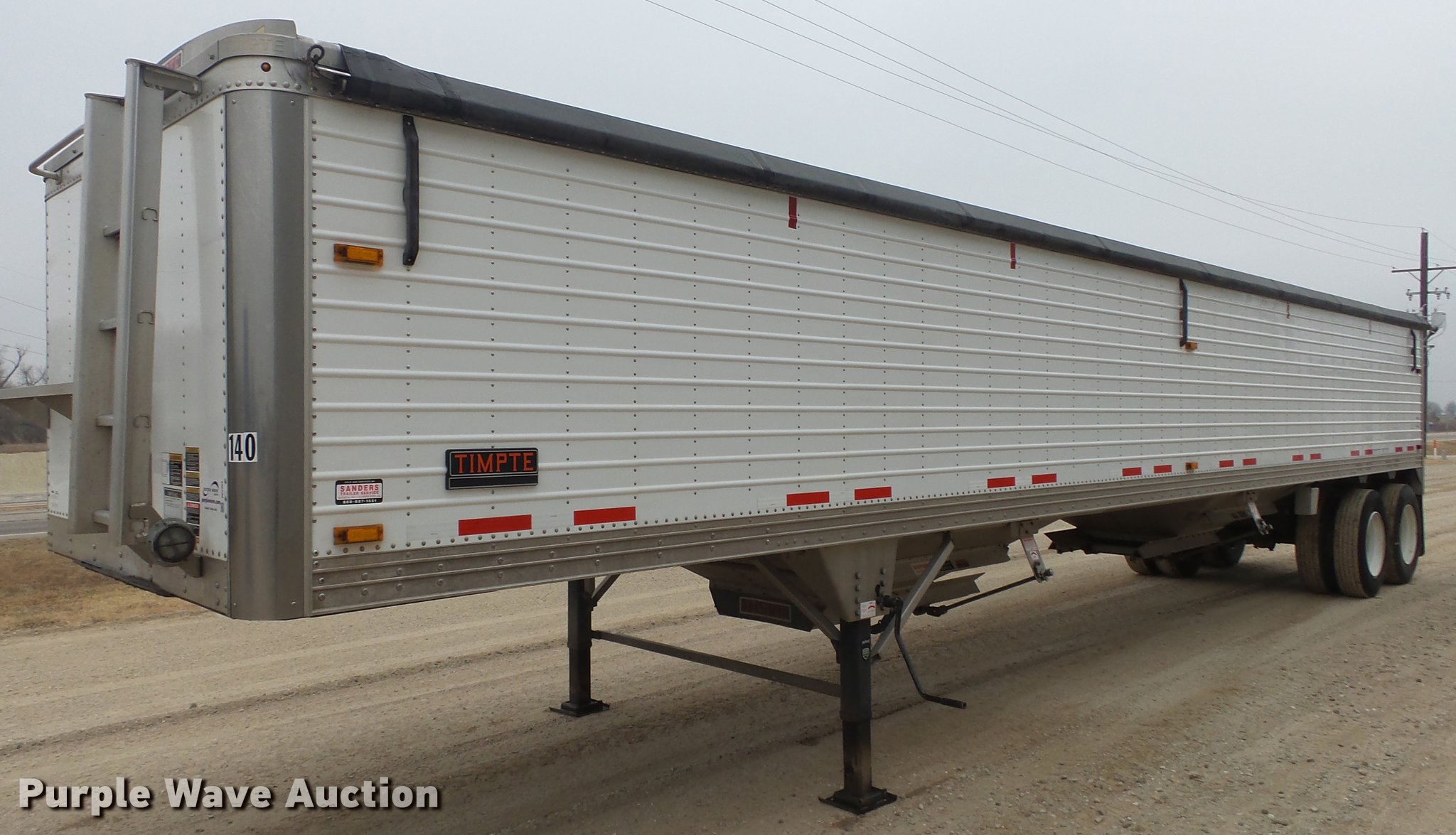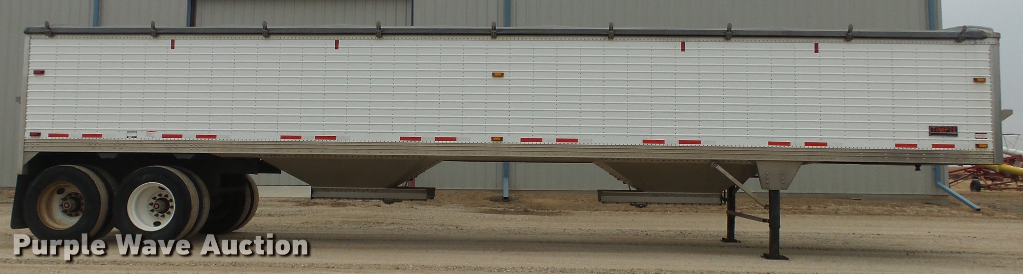 Purple Wave is selling a used Grain or Commodity Trailer in Kansas. This item is a 2015 Timpte double hopper bottom grain trailer with the following: 42'L x 8'W, 60" side height, Roll tarp, Fifth wheel plate, Holland dual leg landing gear, Mud flaps, Air suspension, Air brakes, Tandem axle, Oil bath hubs, 11R24.5 tires, GVWR 65,000 lbs, Unit# 140