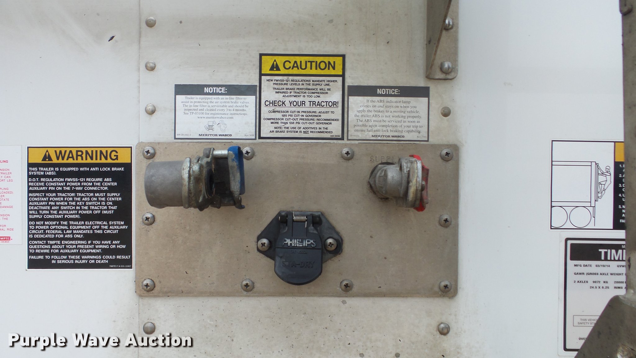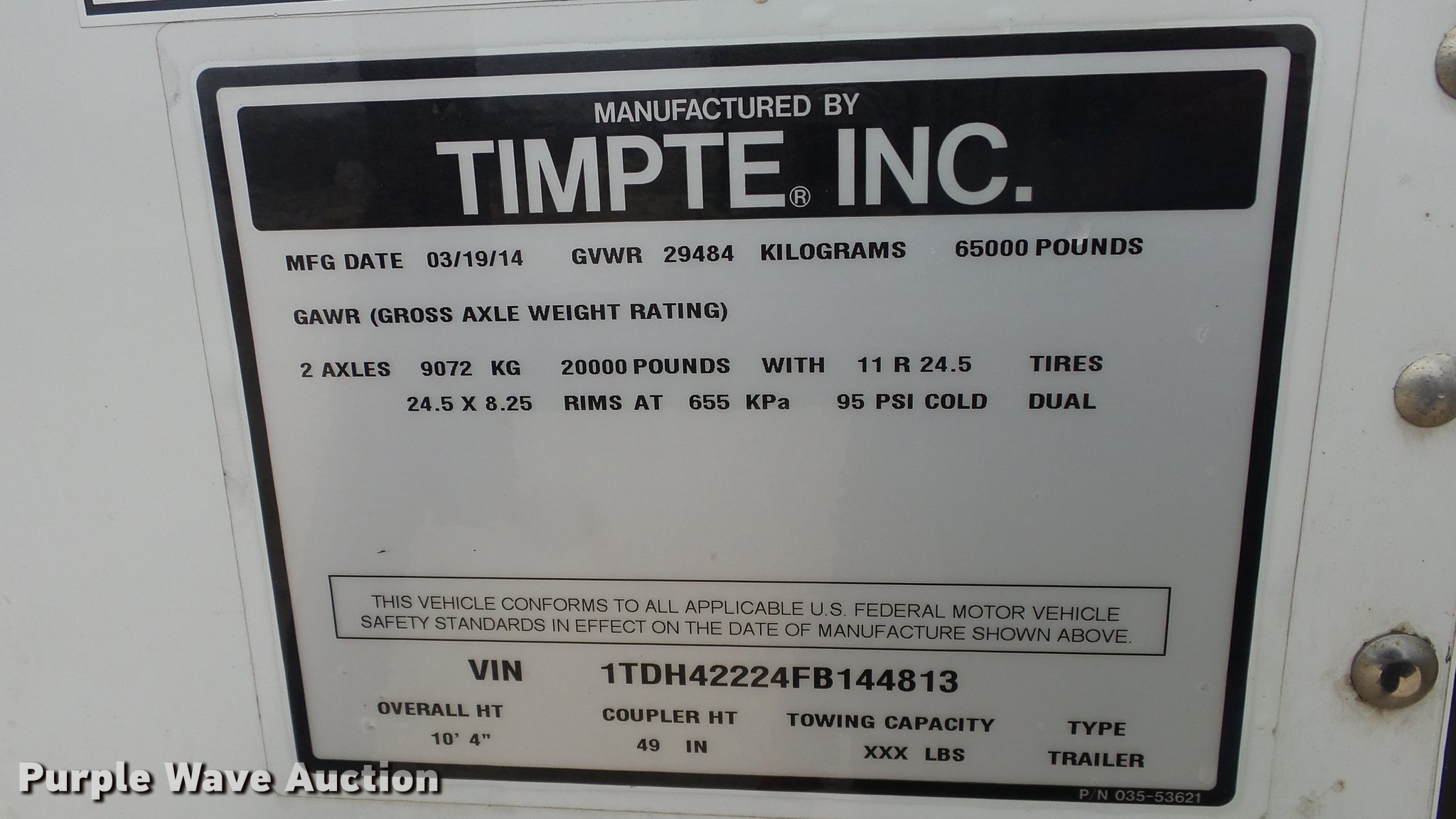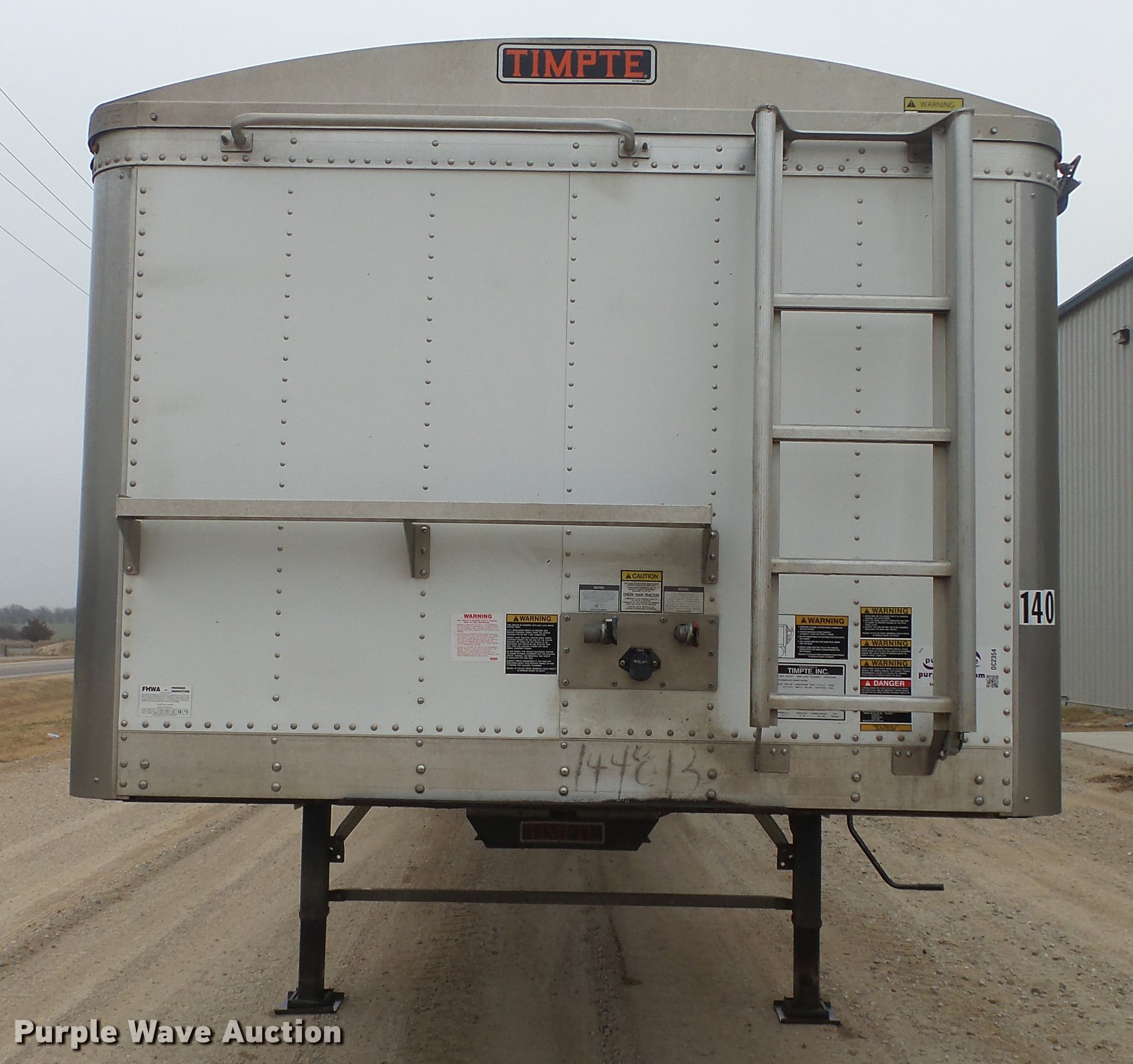 Purple Wave is selling a used Grain or Commodity Trailer in Kansas. This item is a 2015 Timpte double hopper bottom grain trailer with the following: 42'L x 8'W, 60" side height, Roll tarp, Fifth wheel plate, Holland dual leg landing gear, Mud flaps, Air suspension, Air brakes, Tandem axle, Oil bath hubs, 11R24.5 tires, GVWR 65,000 lbs, Unit# 140