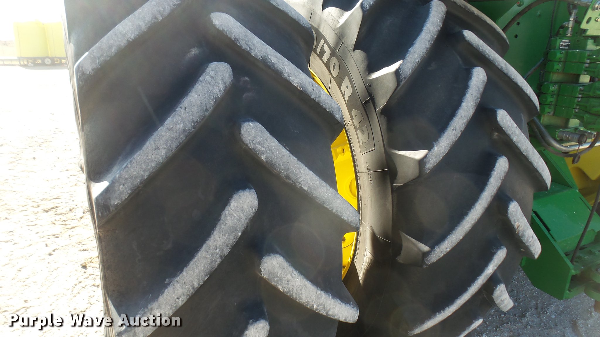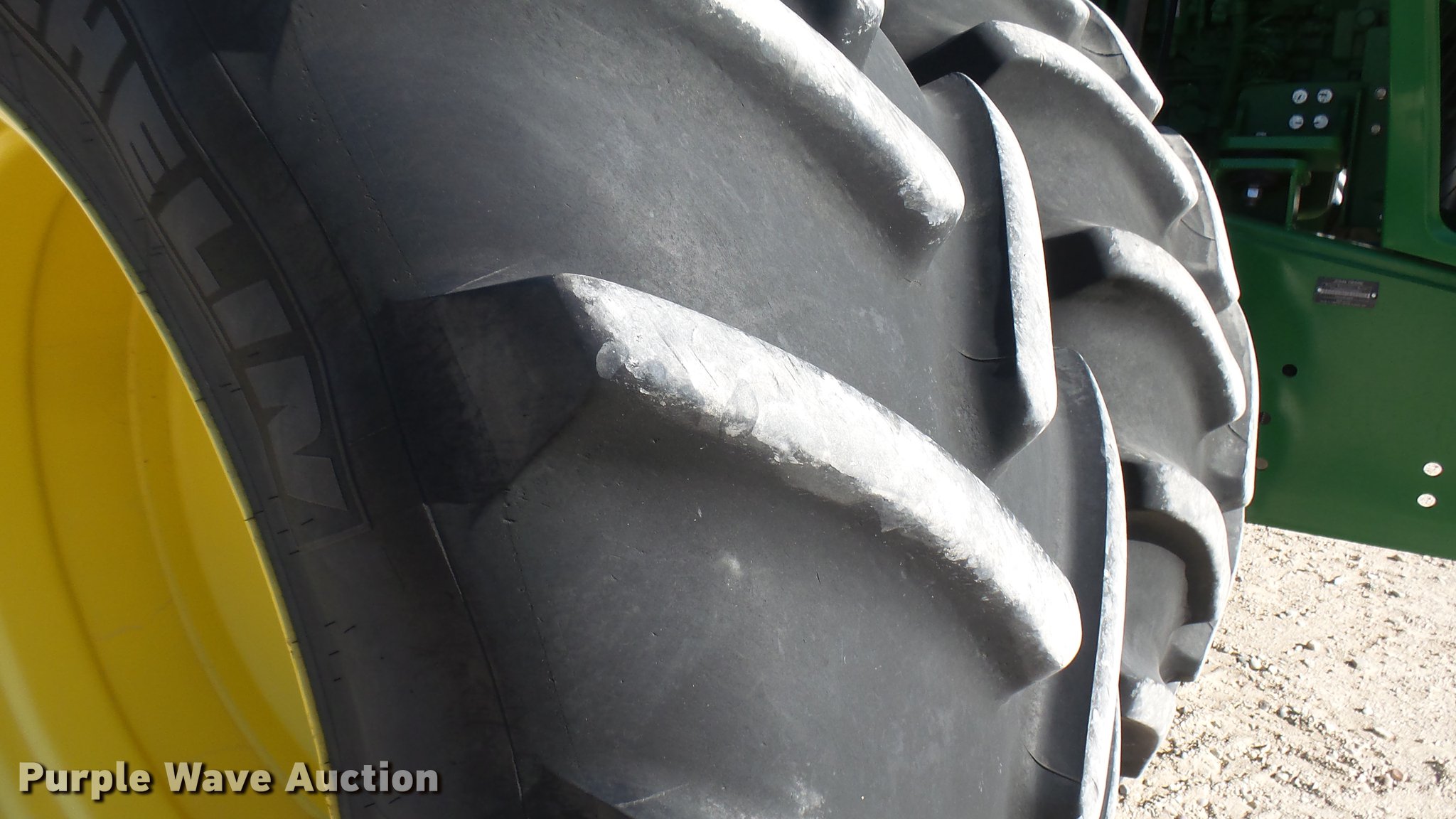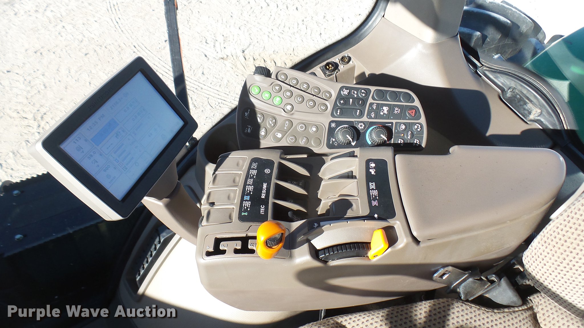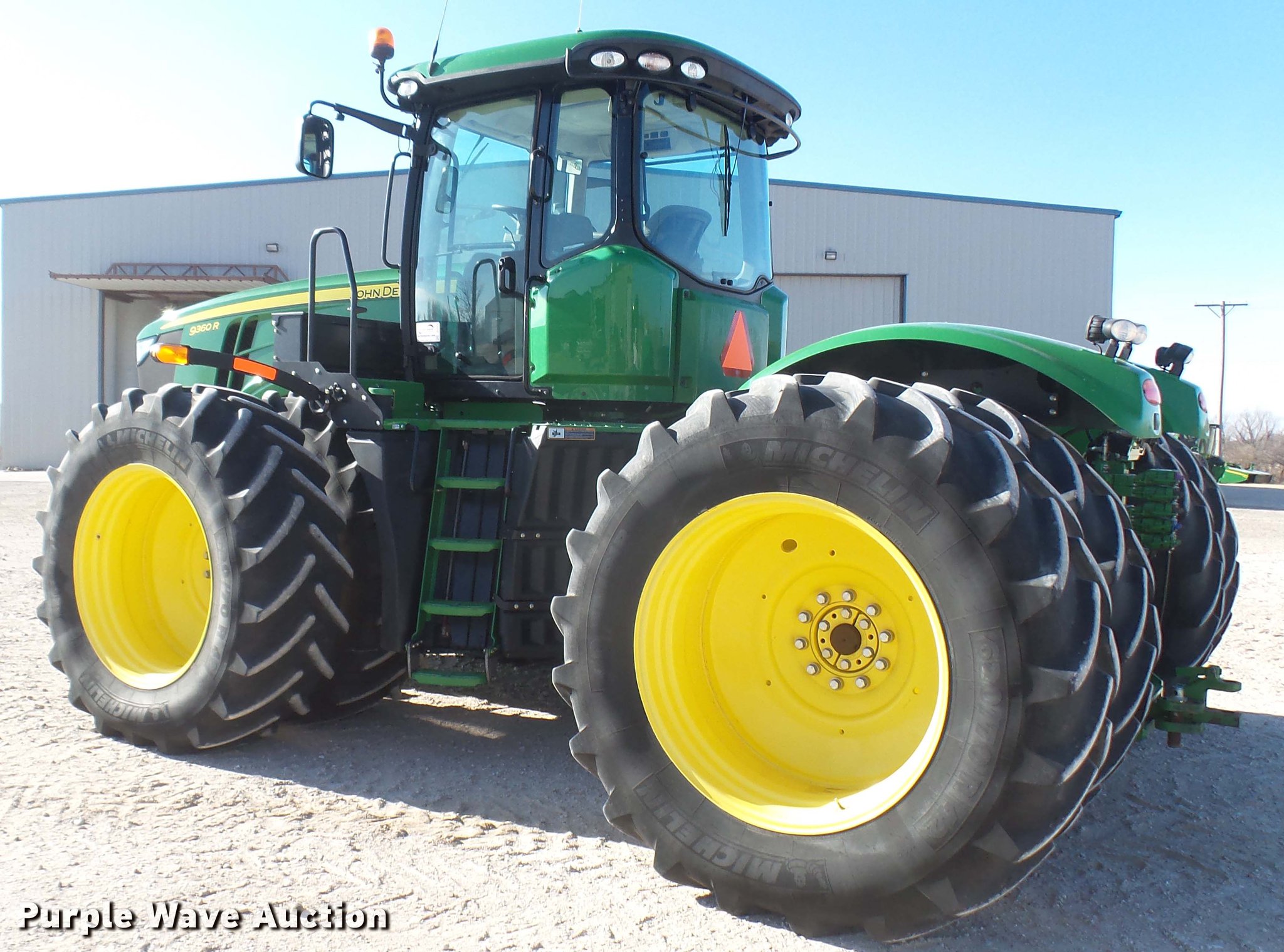 2013 John Deere 9360R 4WD tractor. 2,156 hours on meter, John Deere 6090RW403 9.0L six cylinder turbo diesel engine Serial RG6090R053815, John Deere Powershift transmission 18F-6R gears, Differential lock, AC and heat, AM/FM/CD, Power mirrors, Air suspension seat, Instructor's seat, Tilt steering wheel, Shades, Block heater, Seven pin outlet, ISO electrical outlet, (5) rear hydraulic remote sets, Power beyond hydraulics, (1) inner rear wheel weights, 620/70R42 dual tires, Manuals, Serial 1RW9360RCDP008355. Knight Farms Retirement - Open inspection Feb. 7 and 12. 1750 US-56. Lyons, KS 67554