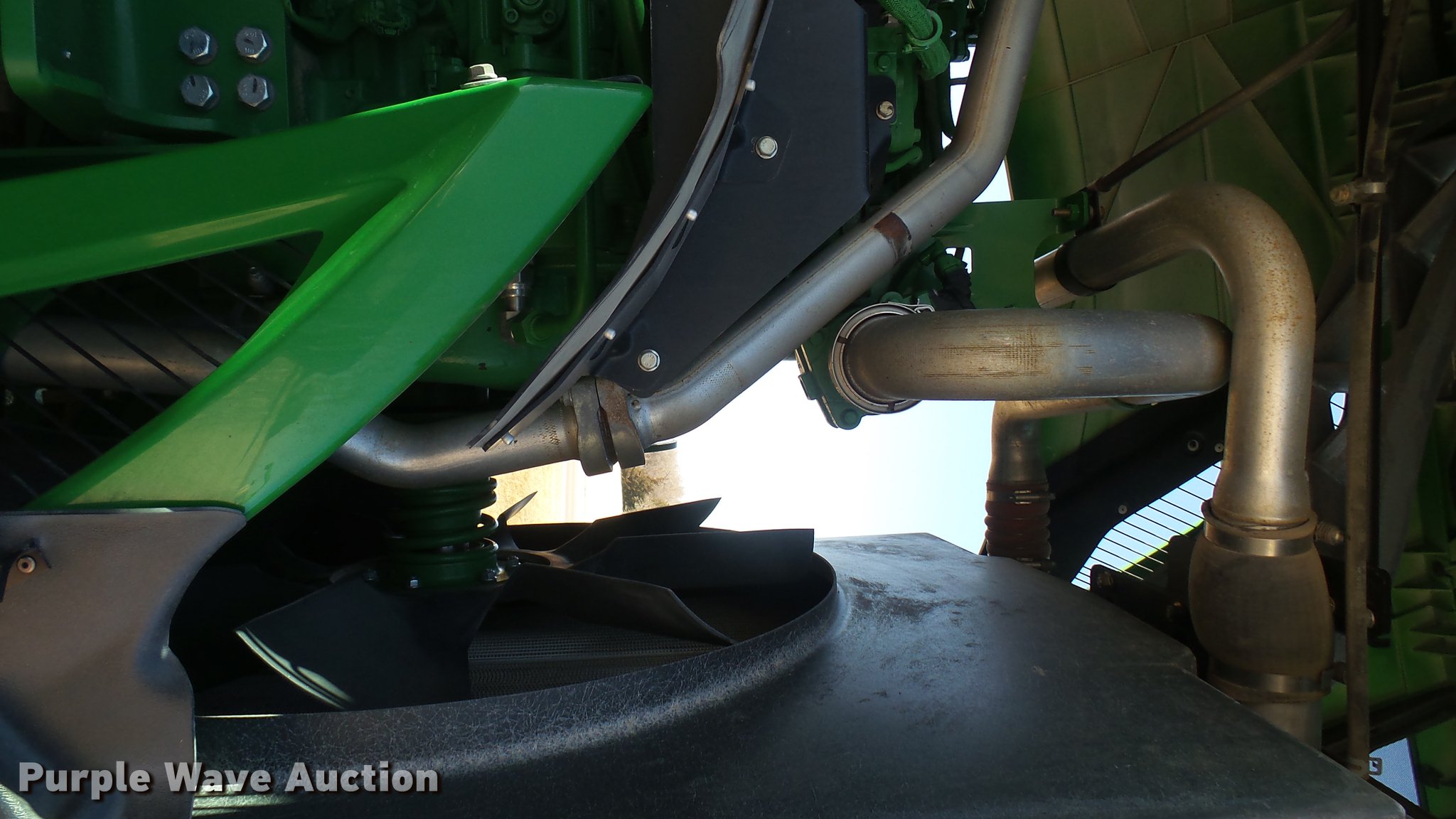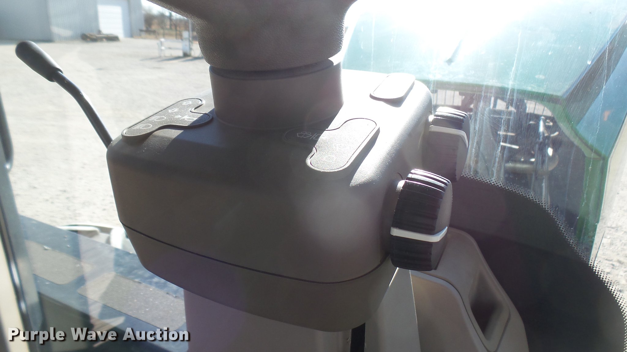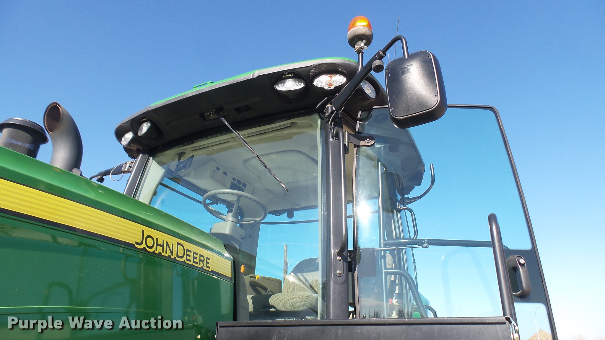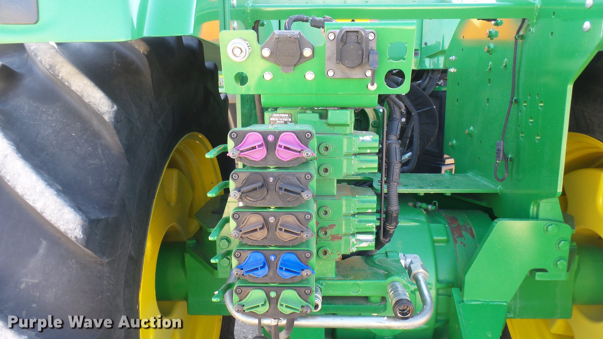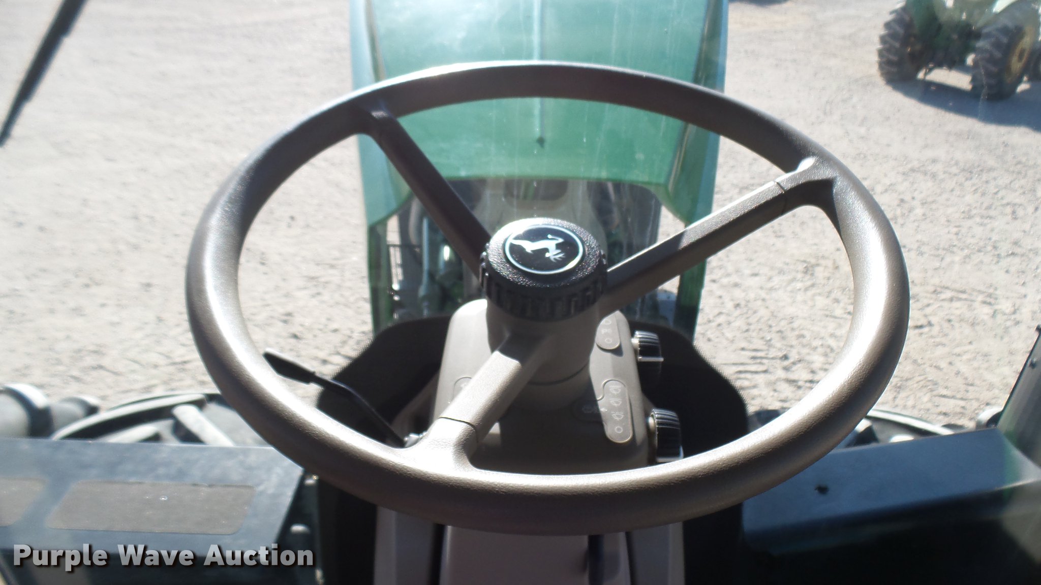 Purple Wave is selling a used Articulated 4-Wheel Drive Tractor in Kansas. This item is a 2013 John Deere 9360R 4WD tractor with the following: 2,156 hours on meter, John Deere 6090RW403 9.0L six cylinder turbo diesel engine, Serial RG6090R053815, John Deere Powershift transmission, 18F-6R gears, Differential lock, AC and heat, AM/FM/CD, Power mirrors, Air suspension seat, Instructor's seat, Tilt steering wheel, Shades, Block heater, Seven pin outlet, ISO electrical outlet, (5) rear hydraulic remote sets, Power beyond hydraulics, (1) inner rear wheel weights, 620/70R42 dual tires, Manuals, Serial 1RW9360RCDP008355