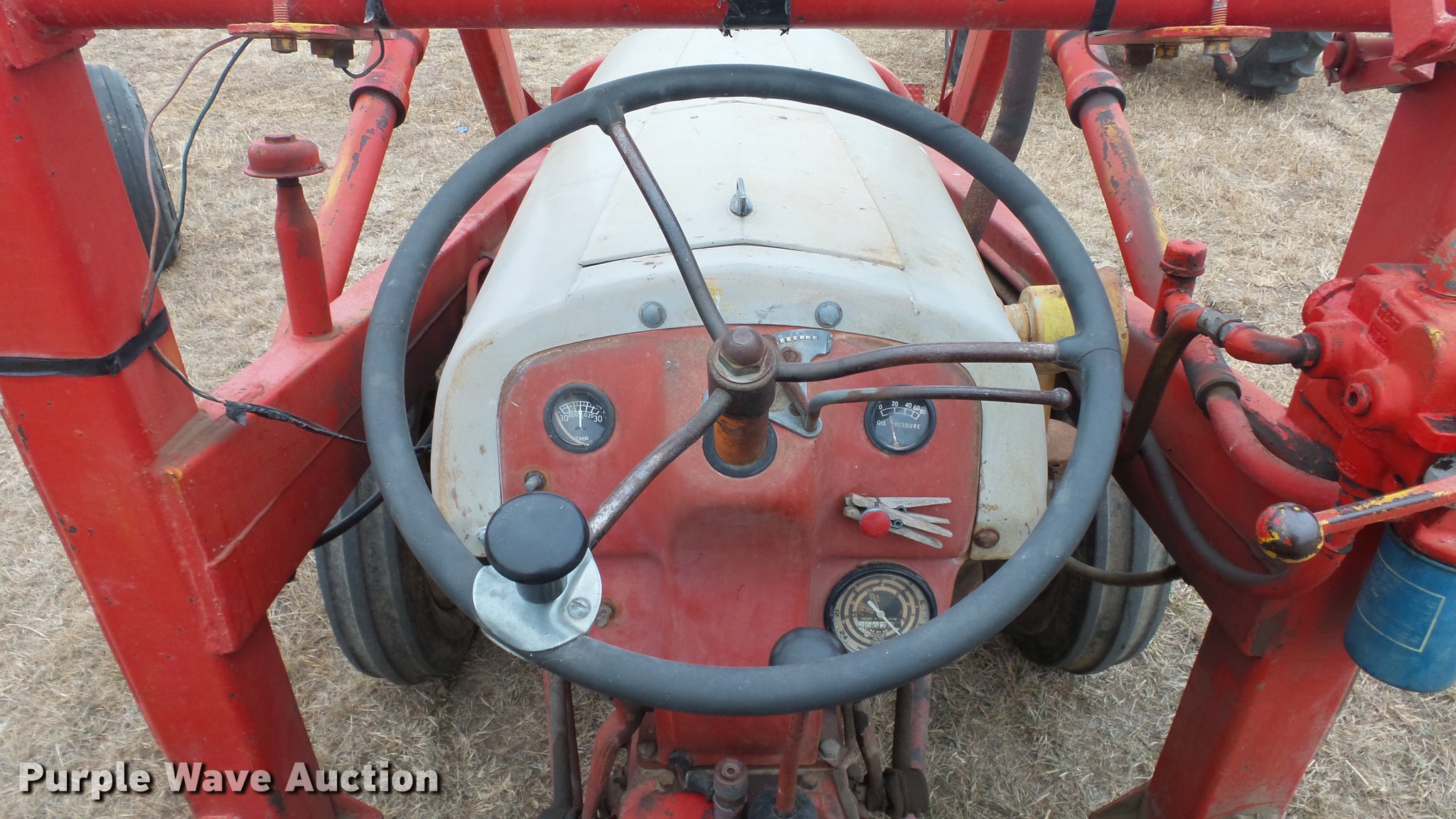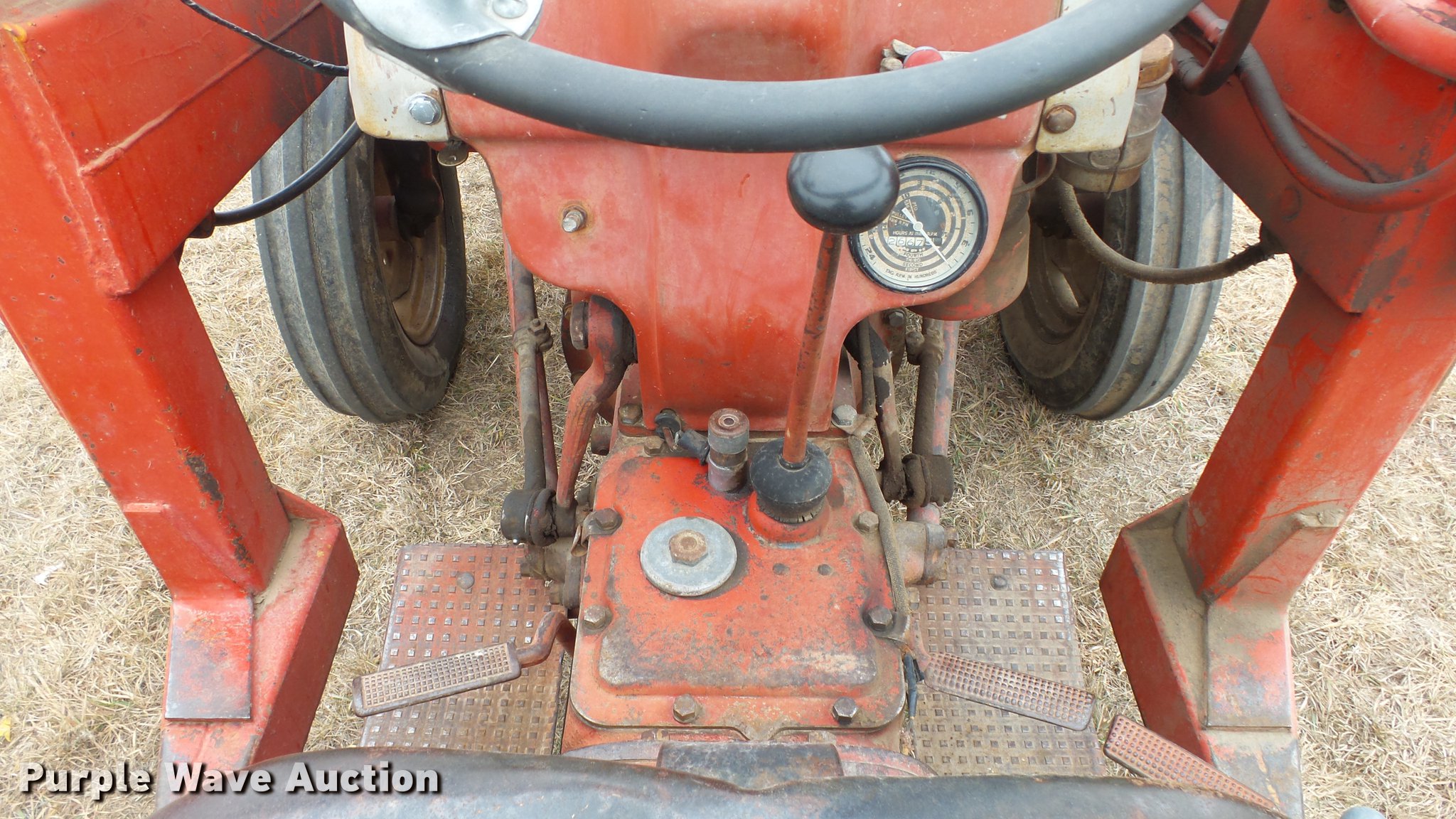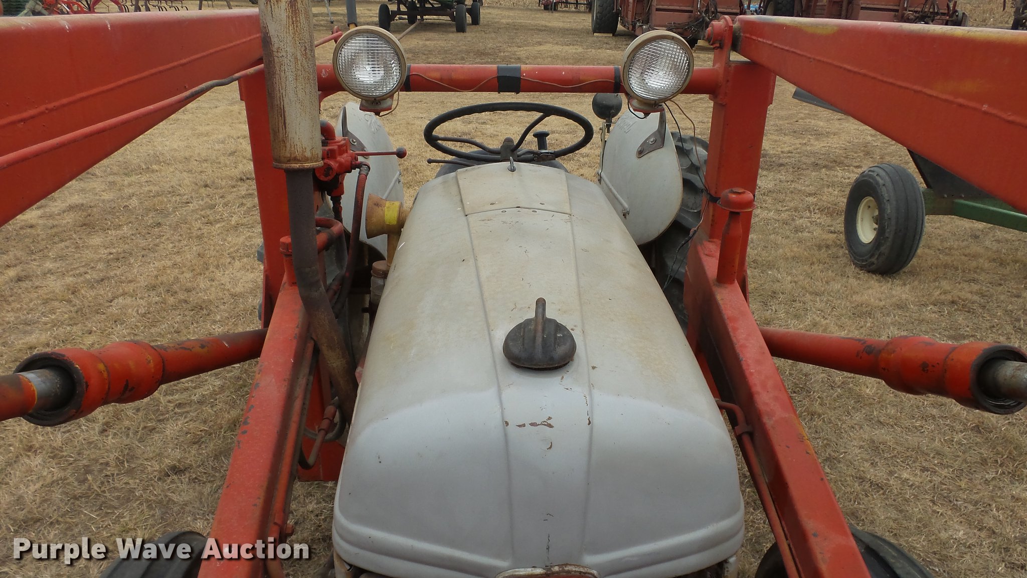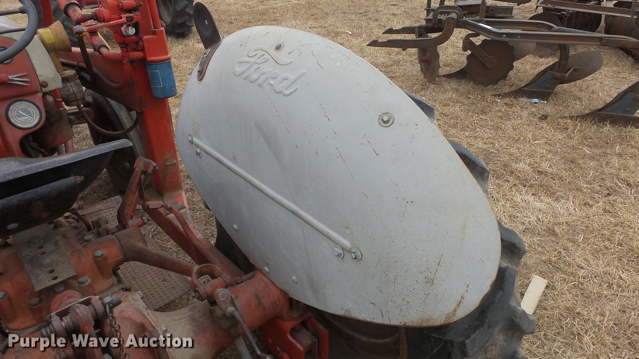 Purple Wave is selling a used Tractor in Kansas. This item is a Ford tractor with the following: 2,667 hours on meter, Four cylinder gas engine, Four speed manual transmission, Work lights, Loader, 40"W bucket, 540 PTO, 6.00-16 front tires, 11.2-28 rear tires
