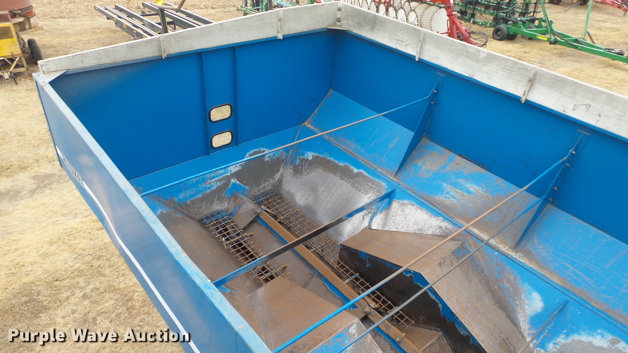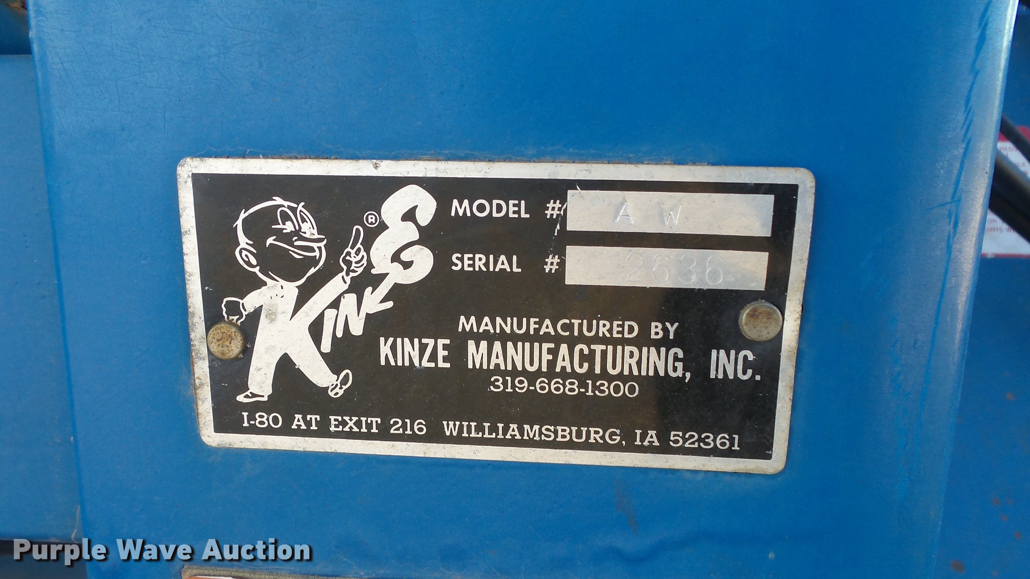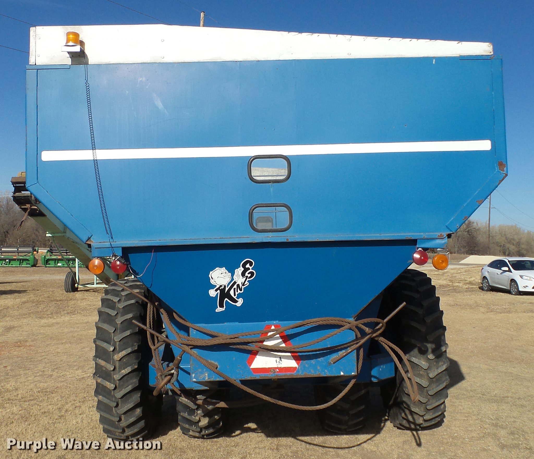 Purple Wave is selling a used Grain Cart or Gravity Wagon in Kansas. This item is a Kinze AW1040 row crop grain cart with the following: 1,000 bushel capacity, Approx. 12'L x 16" diameter unloading auger, Beacon light, Lights, Sight glass, Tip-top boards, Snatch cable, Large 1000 PTO, Pin hitch, Walking tandem axle, 480/80R38 tires, Serial 2636