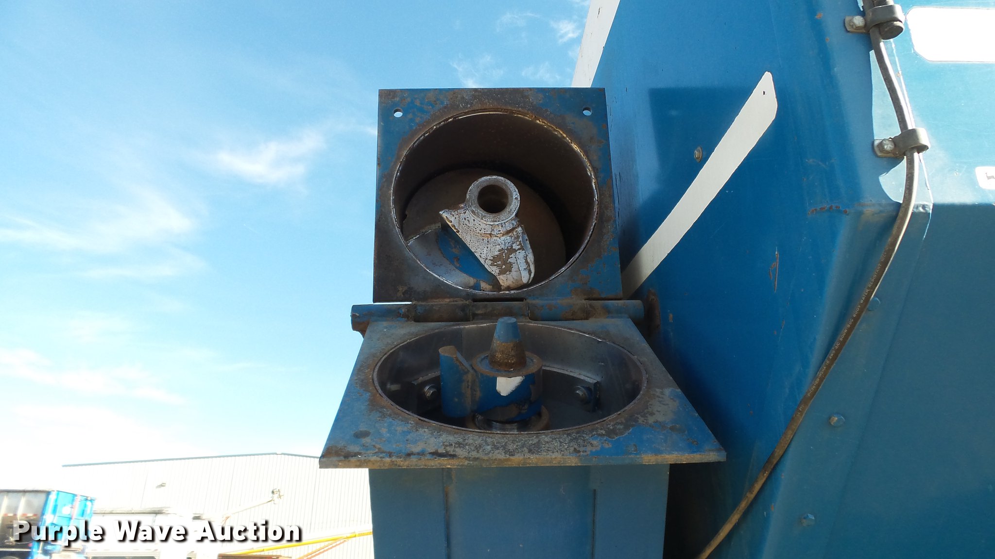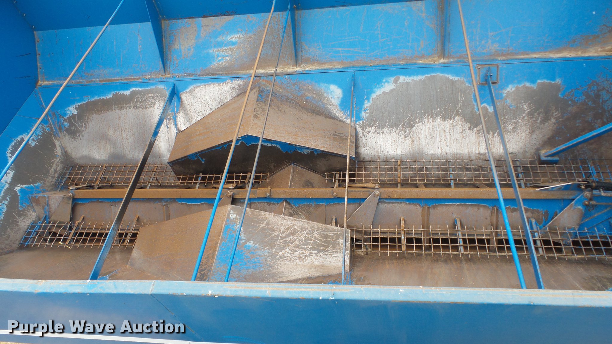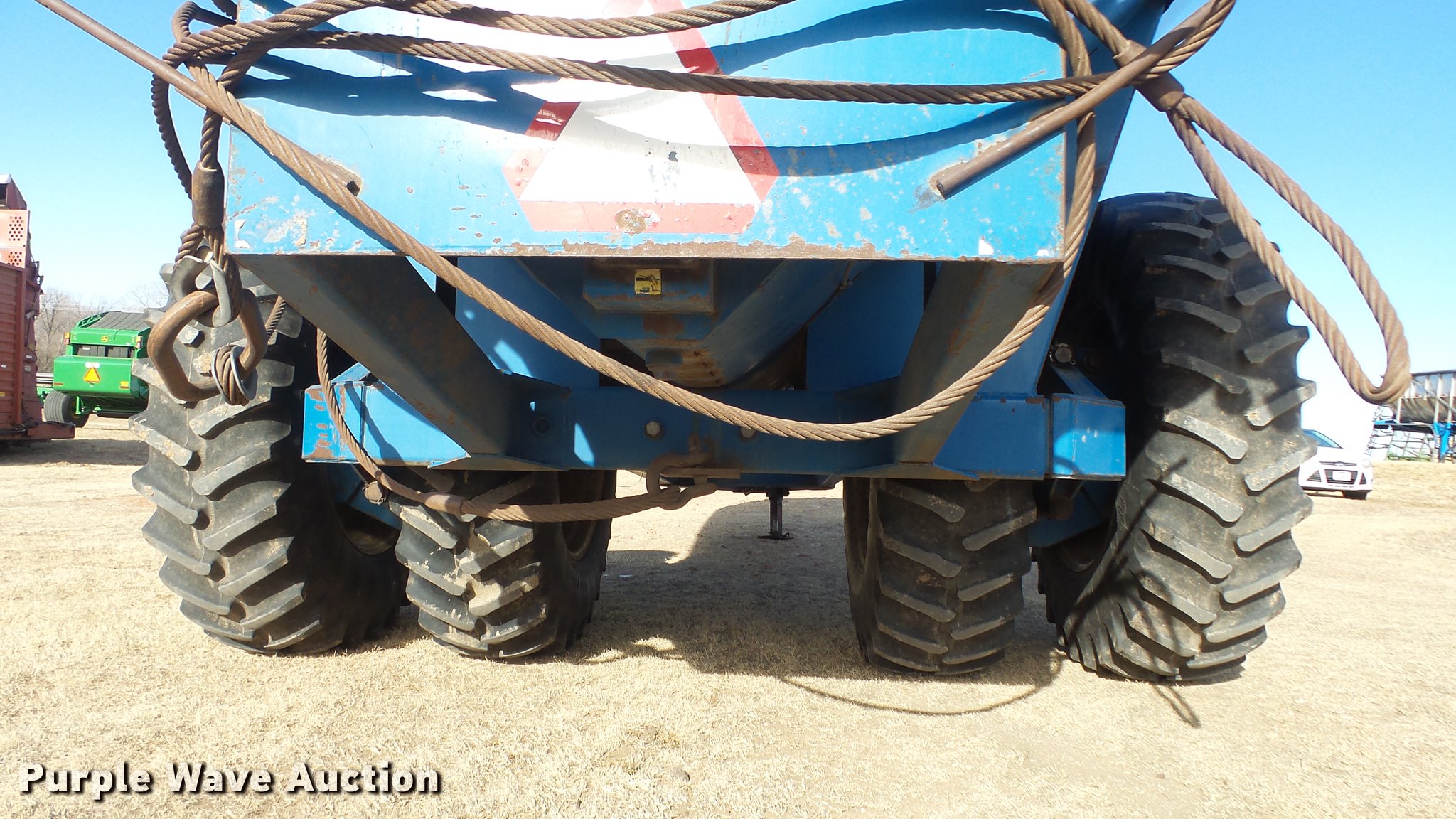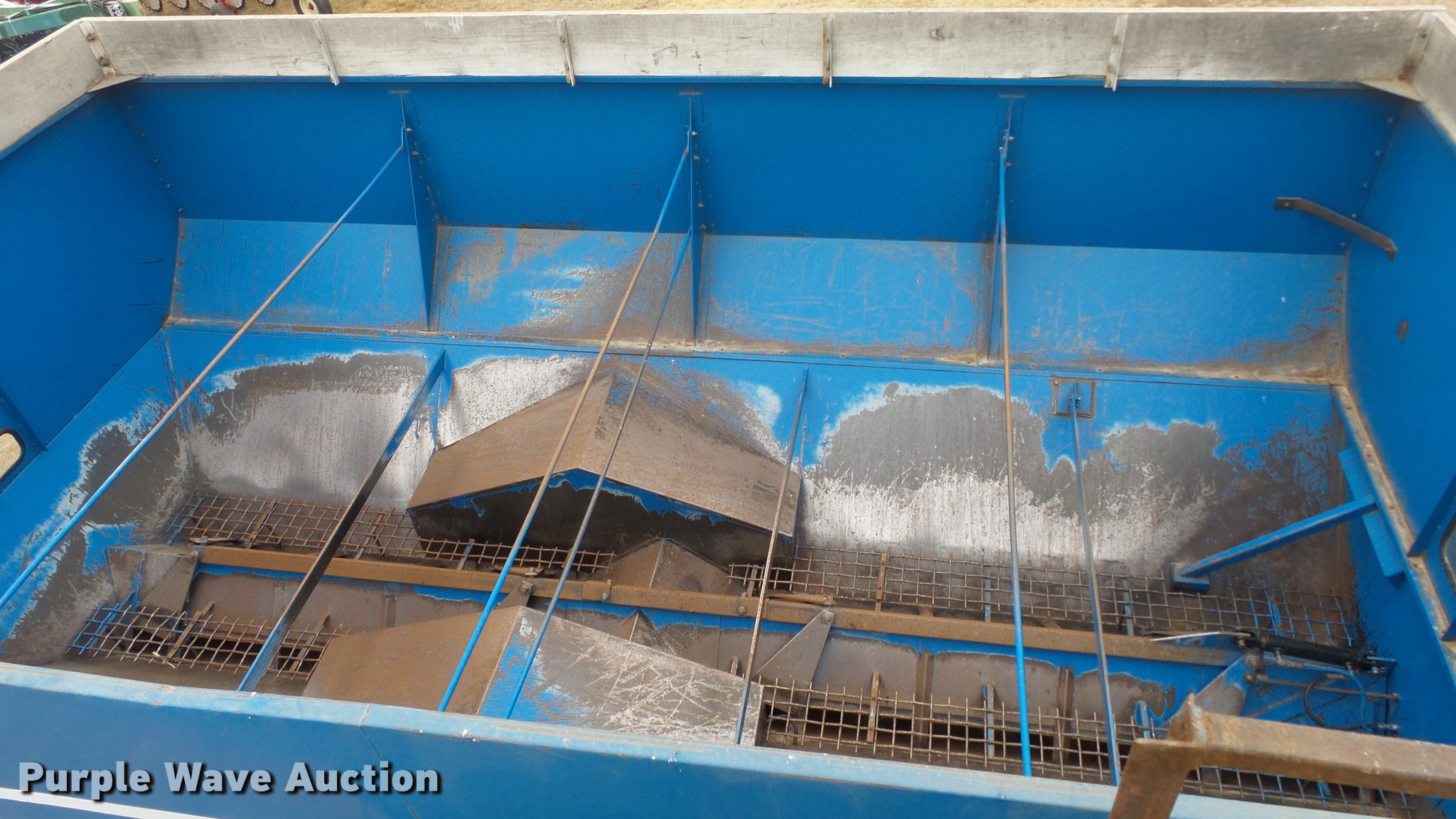 Purple Wave is selling a used Grain Cart or Gravity Wagon in Kansas. This item is a Kinze AW1040 row crop grain cart with the following: 1,000 bushel capacity, Approx. 12'L x 16" diameter unloading auger, Beacon light, Lights, Sight glass, Tip-top boards, Snatch cable, Large 1000 PTO, Pin hitch, Walking tandem axle, 480/80R38 tires, Serial 2636