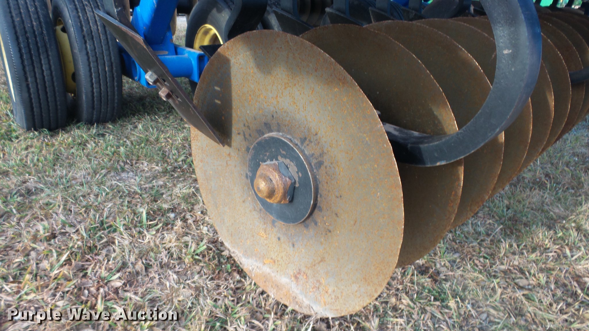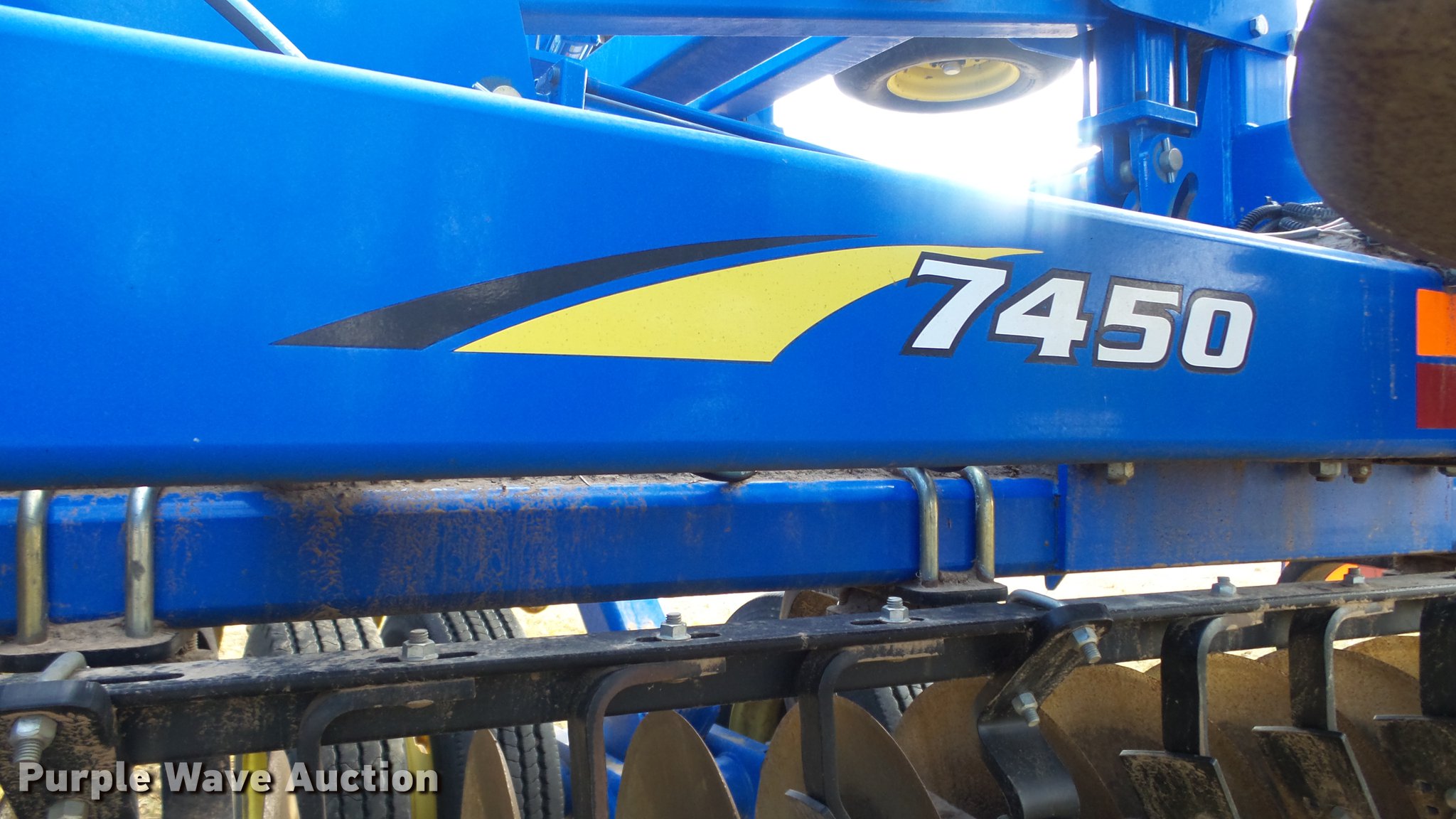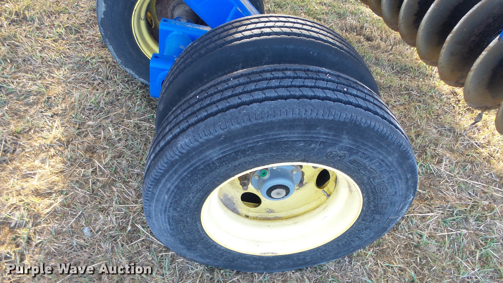 Purple Wave is selling a used Vertical Tillage in Kansas. This item is a 2013 Landoll 7450-39 VT Plus vertical tillage with the following: Appox. 28'W overall, 19" front blade diameter, 20" rear blade diameter, 7" spacing, Disk scrapers, Round bar rolling basket, Hydraulic lift and fold, Transport lights, Hydraulic leveler, Pin/clevis hitch, Double walking tandem axle, (8) 235/75R17.5 main tires, (8) 12.5L-15 wing tires, (4) 20.5x8.0-10 gauge wheels, Serial 74E1304609