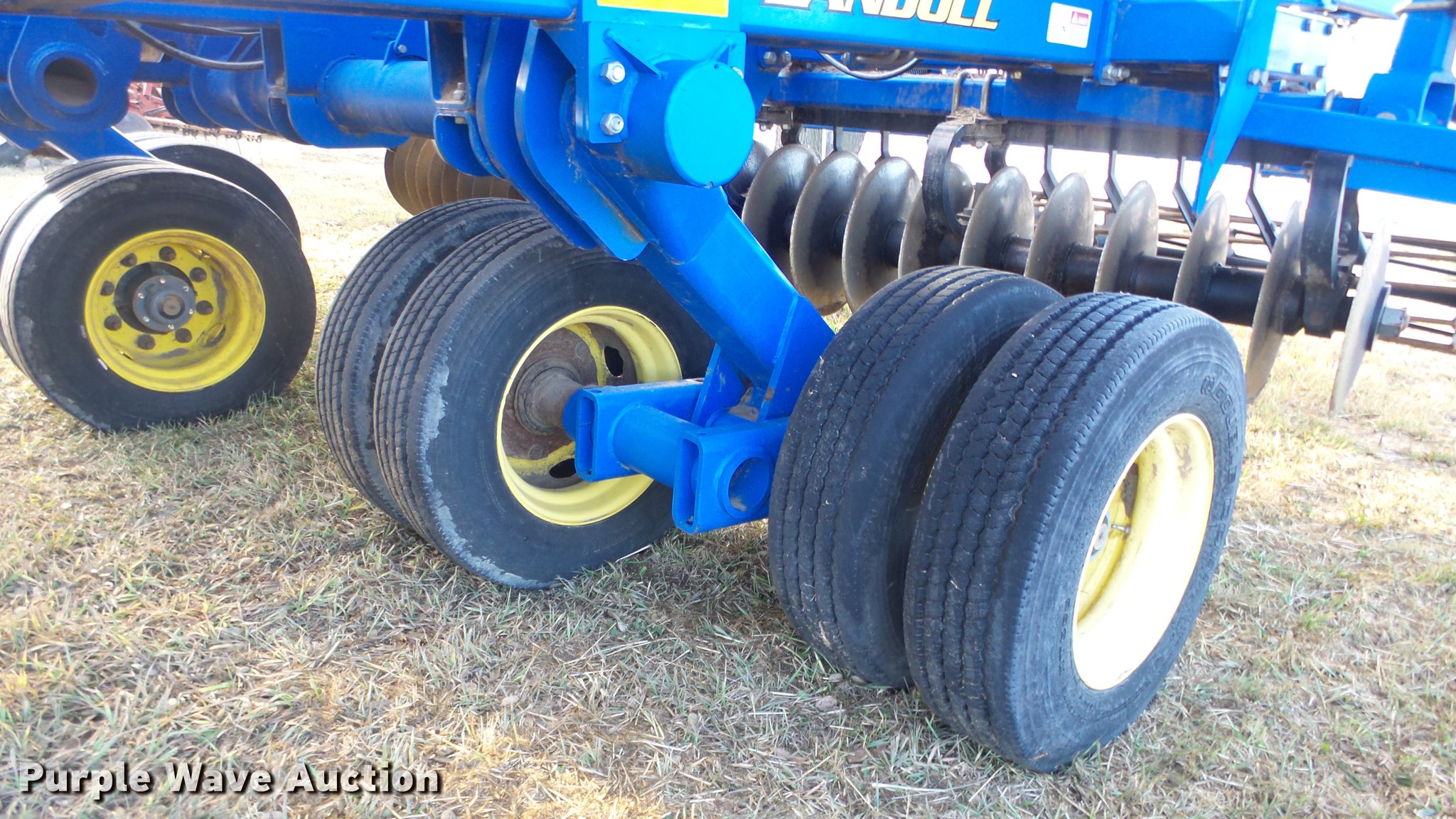 2013 Landoll 7450-39 VT Plus vertical tillage. Appox. 28'W overall, 19" front blade diameter, 20" rear blade diameter, 7" spacing, Disk scrapers, Round bar rolling basket, Hydraulic lift and fold, Transport lights, Hydraulic leveler, Pin/clevis hitch, Double walking tandem axle, (8) 235/75R17.5 main tires, (8) 12.5L-15 wing tires , (4) 20.5x8.0-10 gauge wheels, Serial 74E1304609. Knight Farms Retirement - Open inspection Feb. 7 and 12. 1750 US-56. Lyons, KS 67554