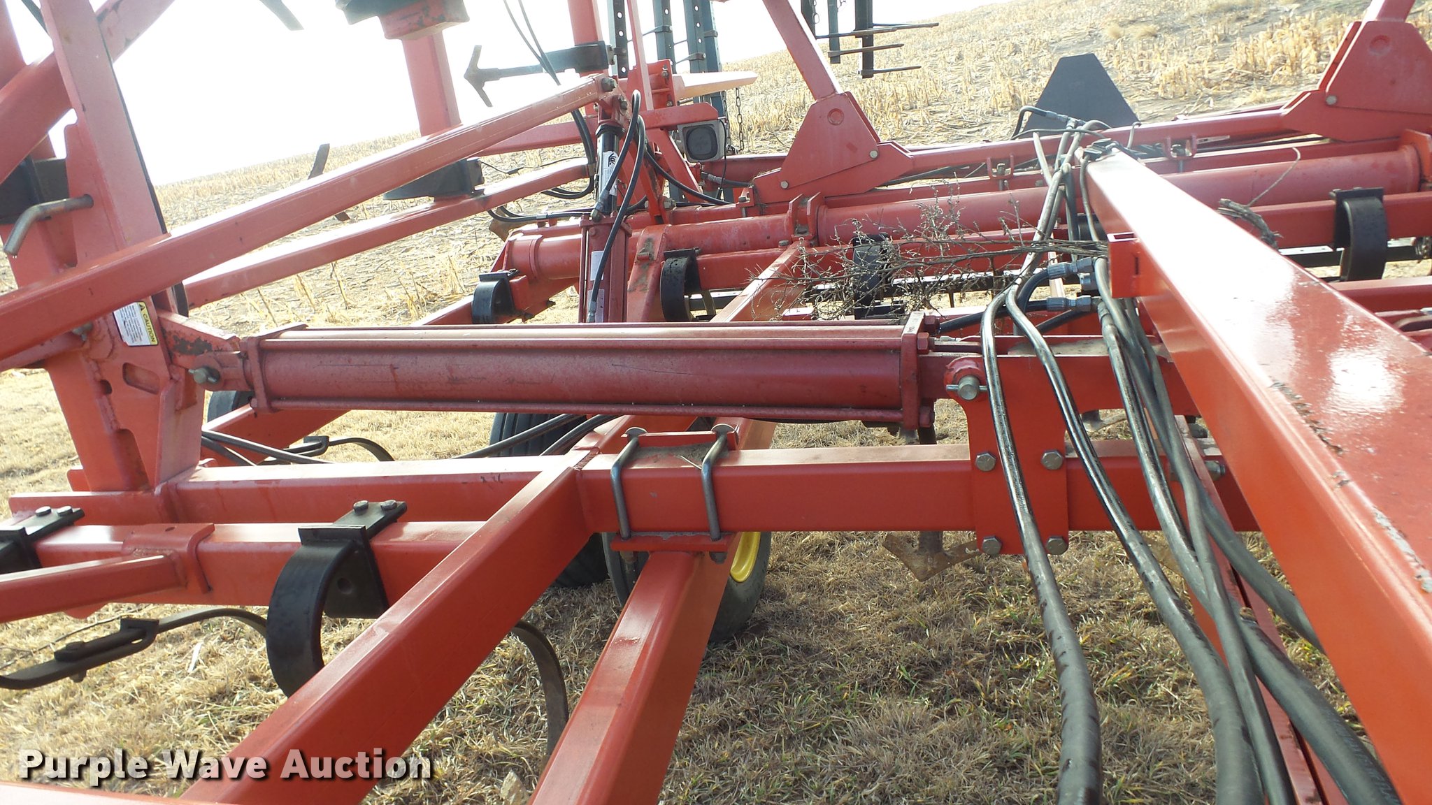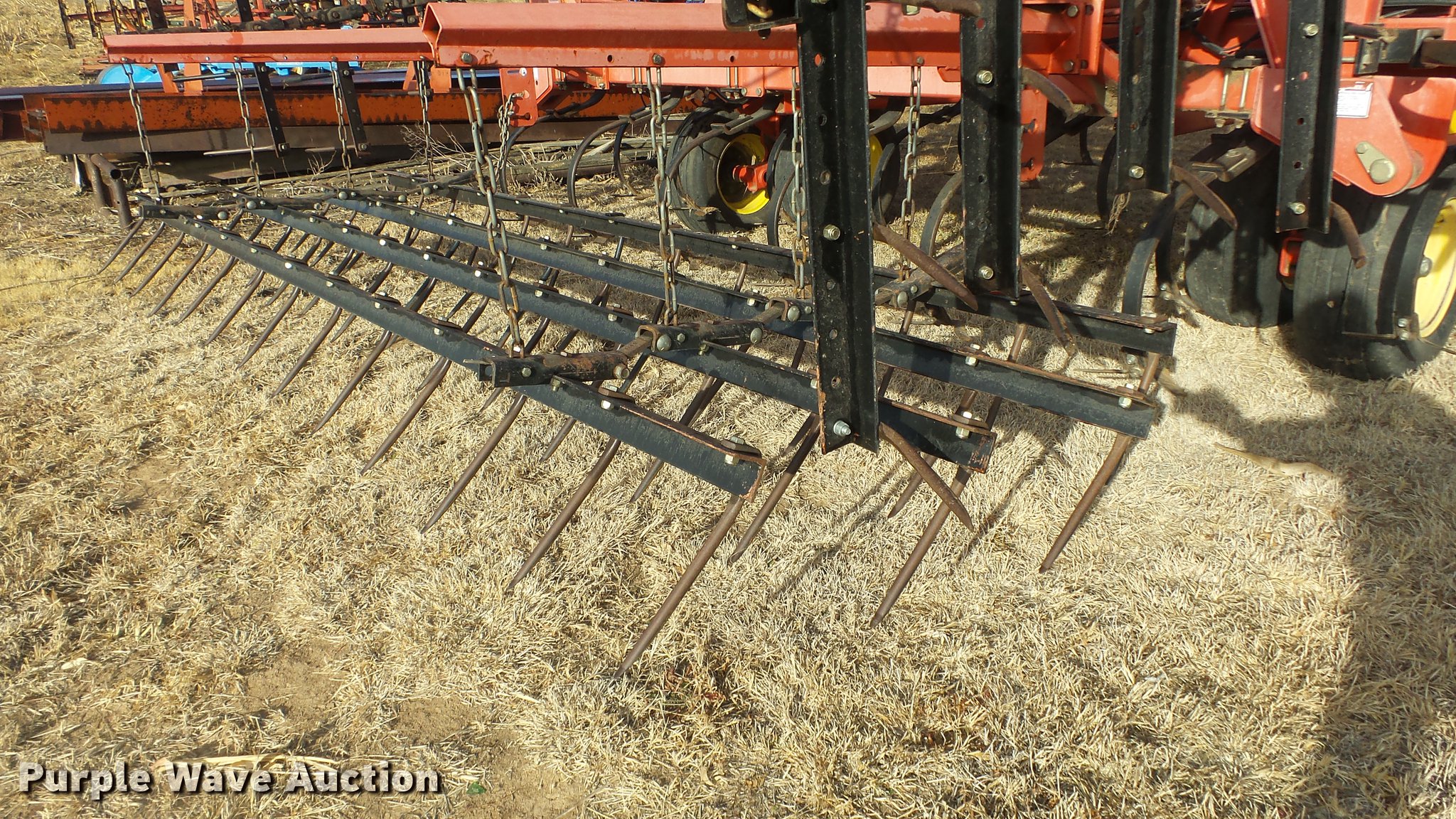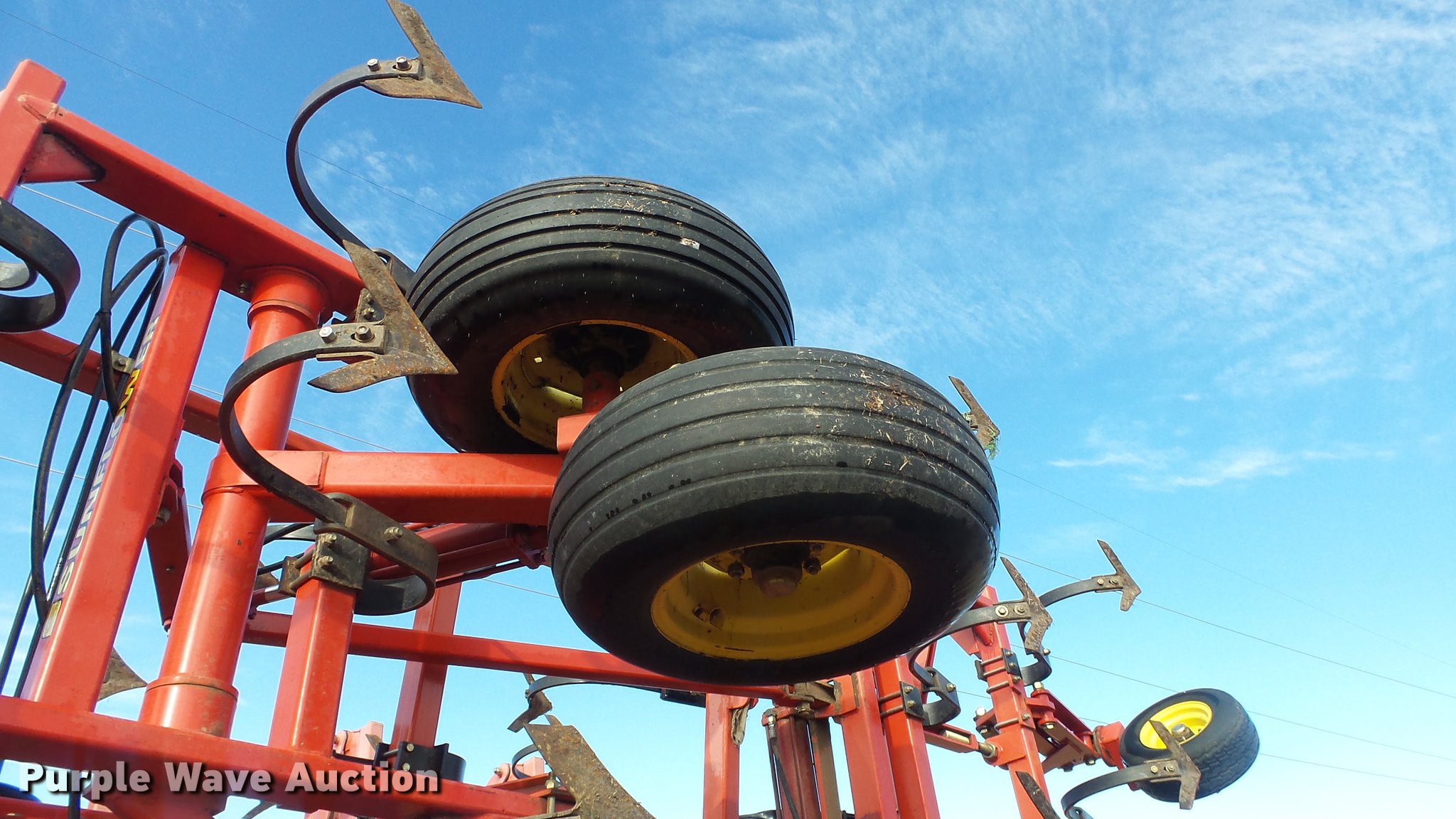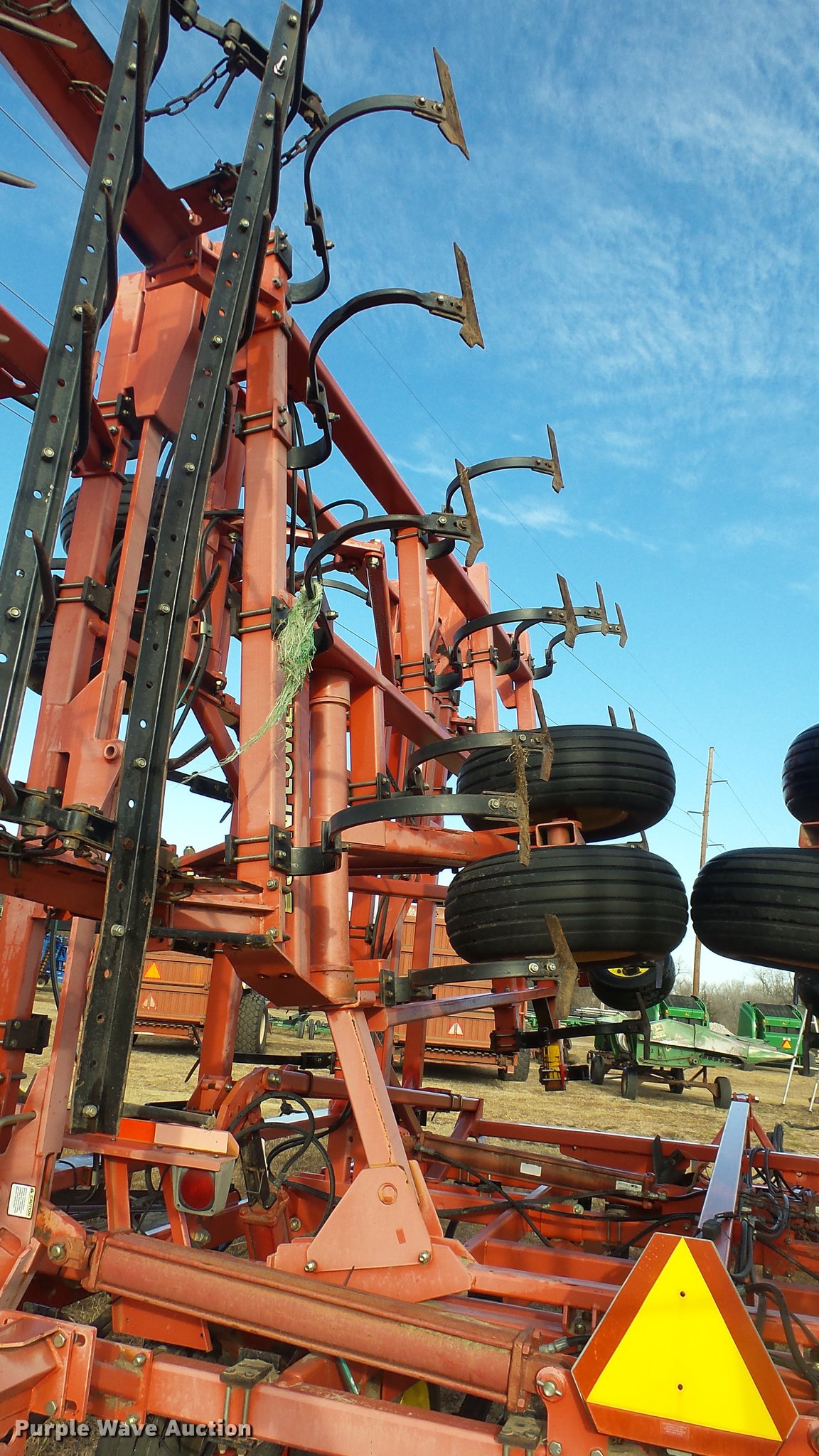 Purple Wave is selling a used Field Cultivator or Sweep Plow in Kansas. This item is a 2006 Sunflower 5055-50 field cultivator with the following: Approx. 50'W, 10" sweep width, 6" spacing, Four bar spike tooth harrow, Manual leveler, Hydraulic lift and fold, Transport lights, Pin/clevis hitch, Walking tandem axle, (4) gauge wheels, (12) 11L-15 tires, Serial 5055H06025