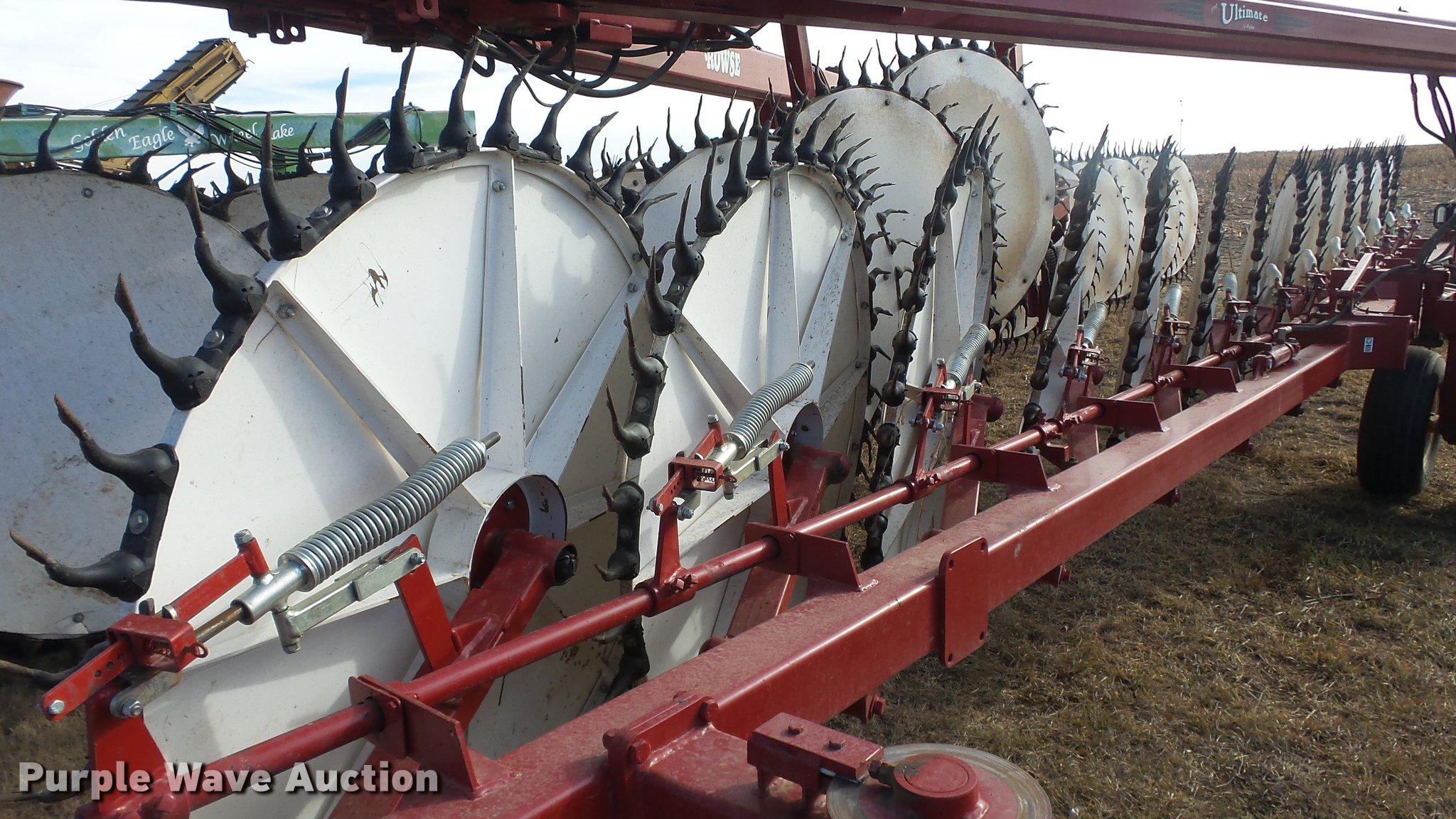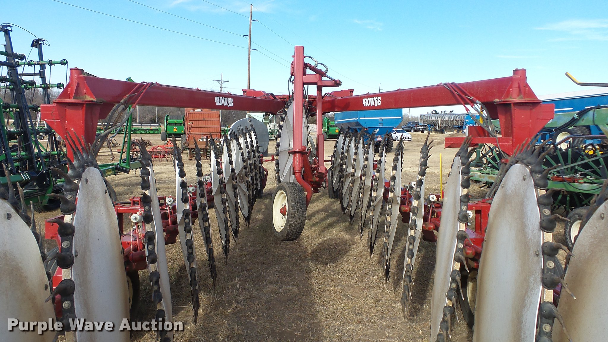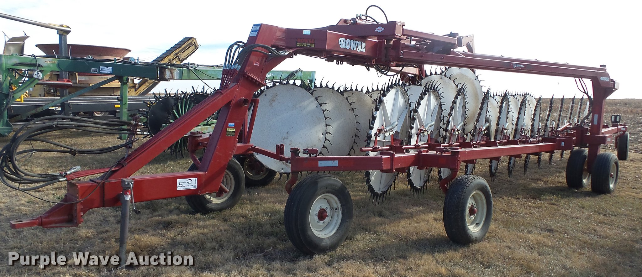 Purple Wave is selling a used Hay Rake in Kansas. This item is a 2011 Rowse ULT27 hay rake with the following: (31) 48" diameter wheels, (14) per side, (3) center, Hydraulic fold, Transport lights, Pin hitch, (4) front/rear caster wheels, 9.5L-15 tires, 225/75R15 tires, (2) 11L-15 transport tires, Serial SS-U27-35