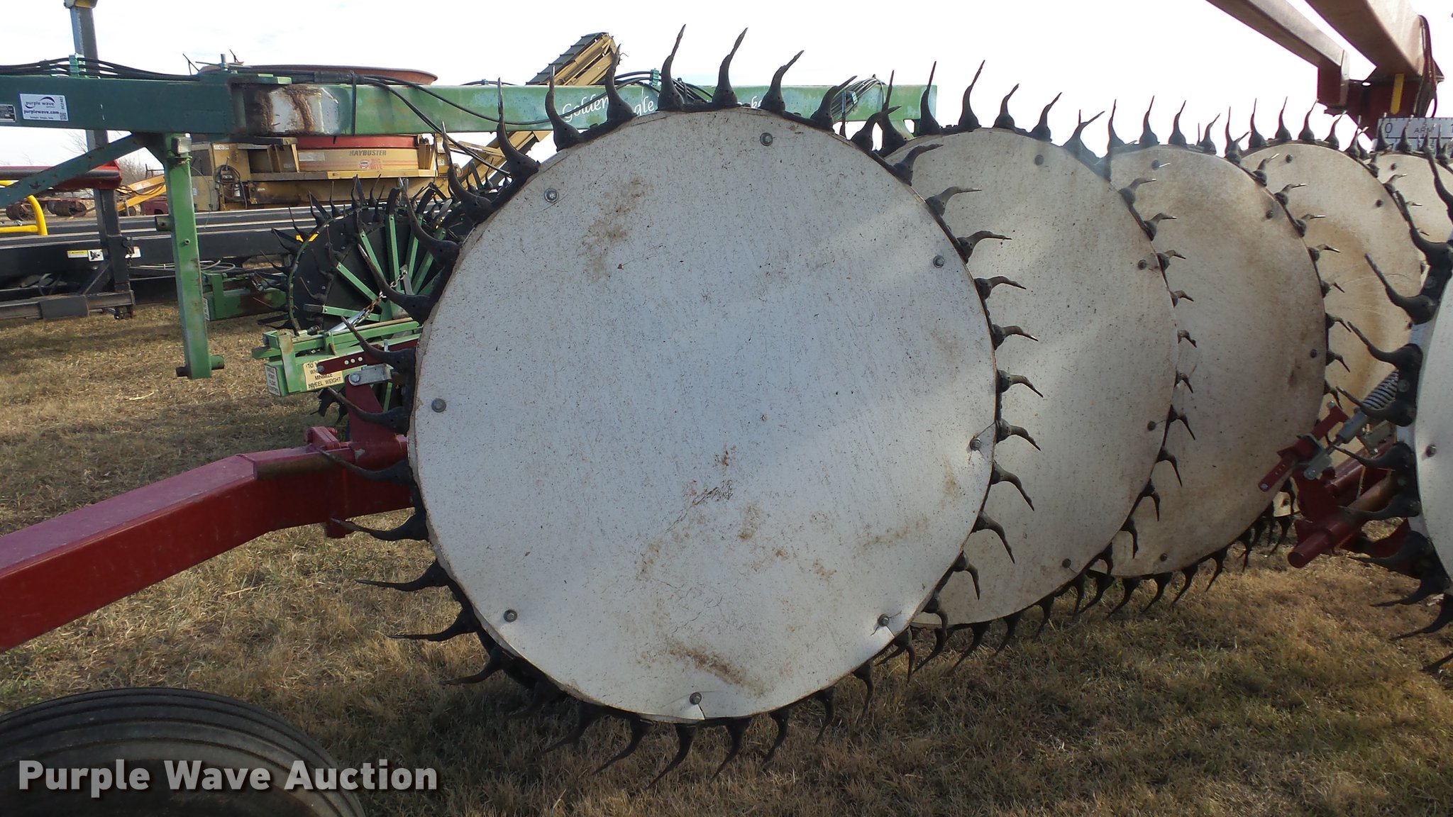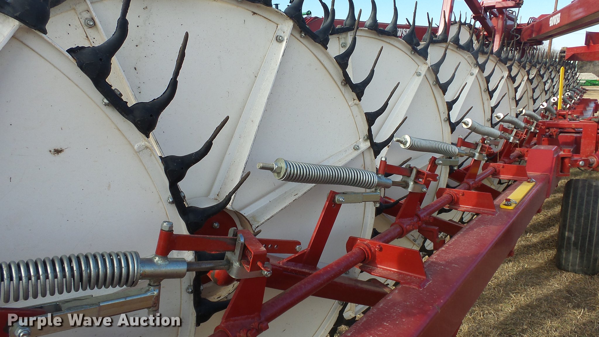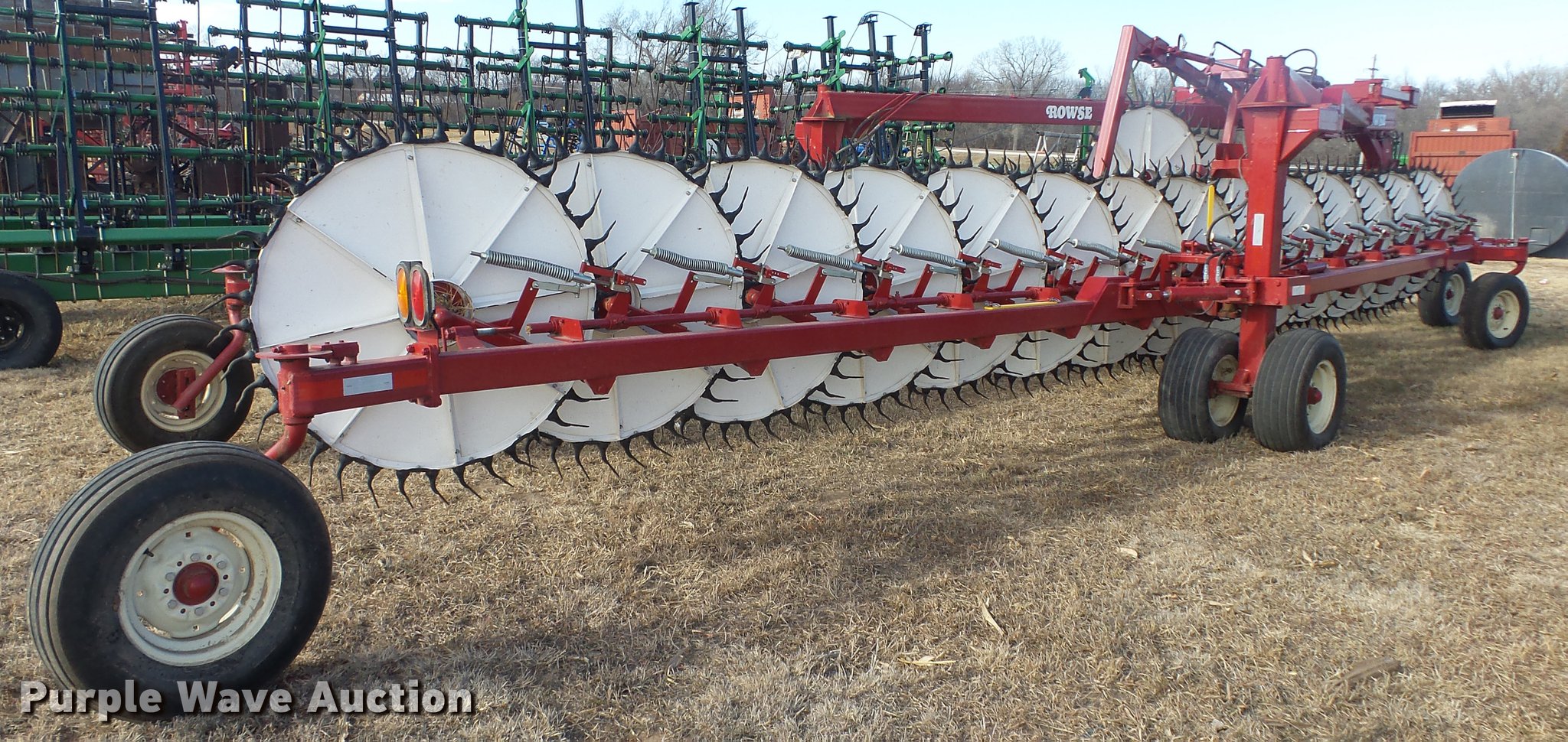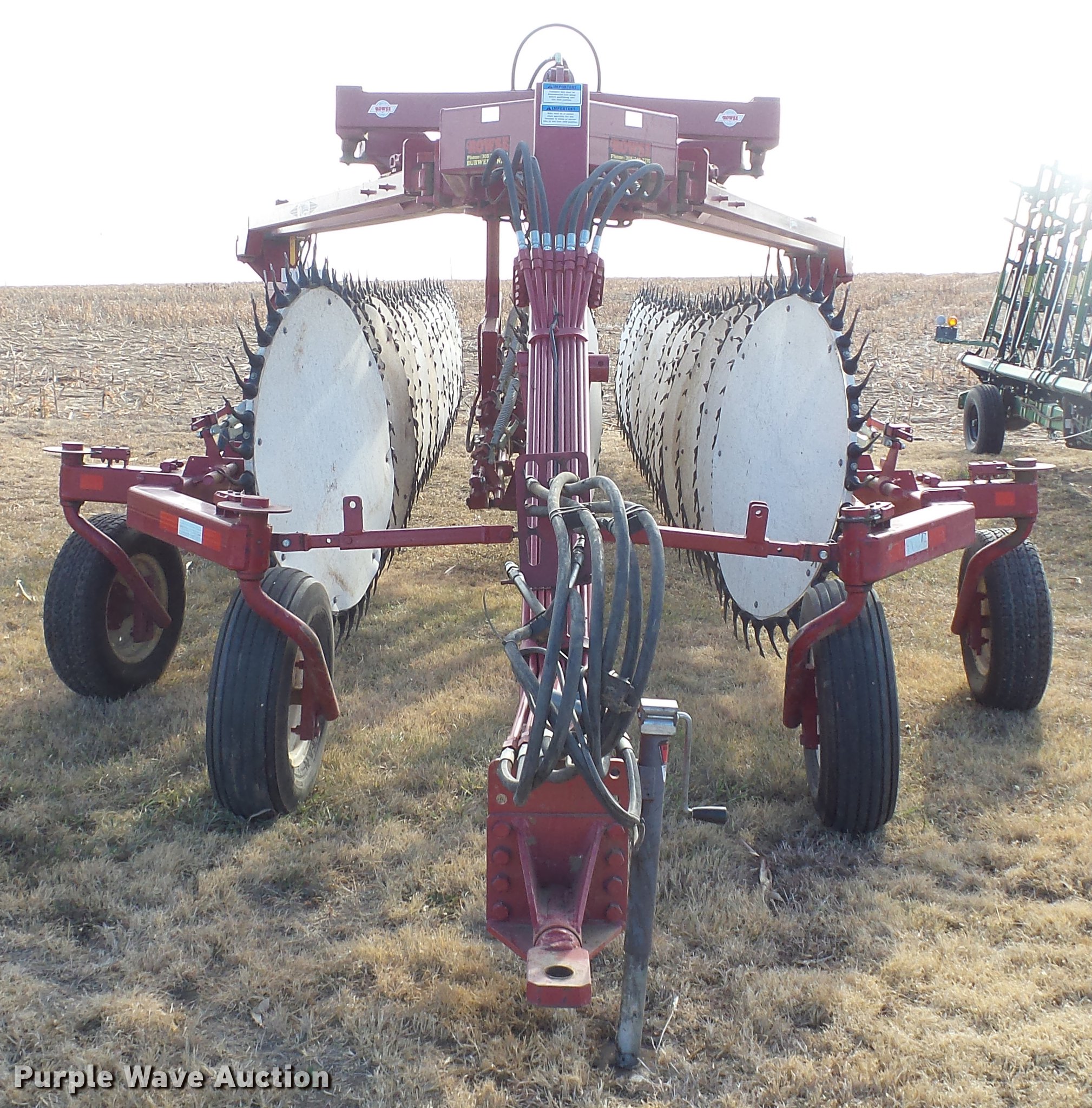 Purple Wave is selling a used Hay Rake in Kansas. This item is a 2011 Rowse ULT27 hay rake with the following: (31) 48" diameter wheels, (14) per side, (3) center, Hydraulic fold, Transport lights, Pin hitch, (4) front/rear caster wheels, 9.5L-15 tires, 225/75R15 tires, (2) 11L-15 transport tires, Serial SS-U27-35