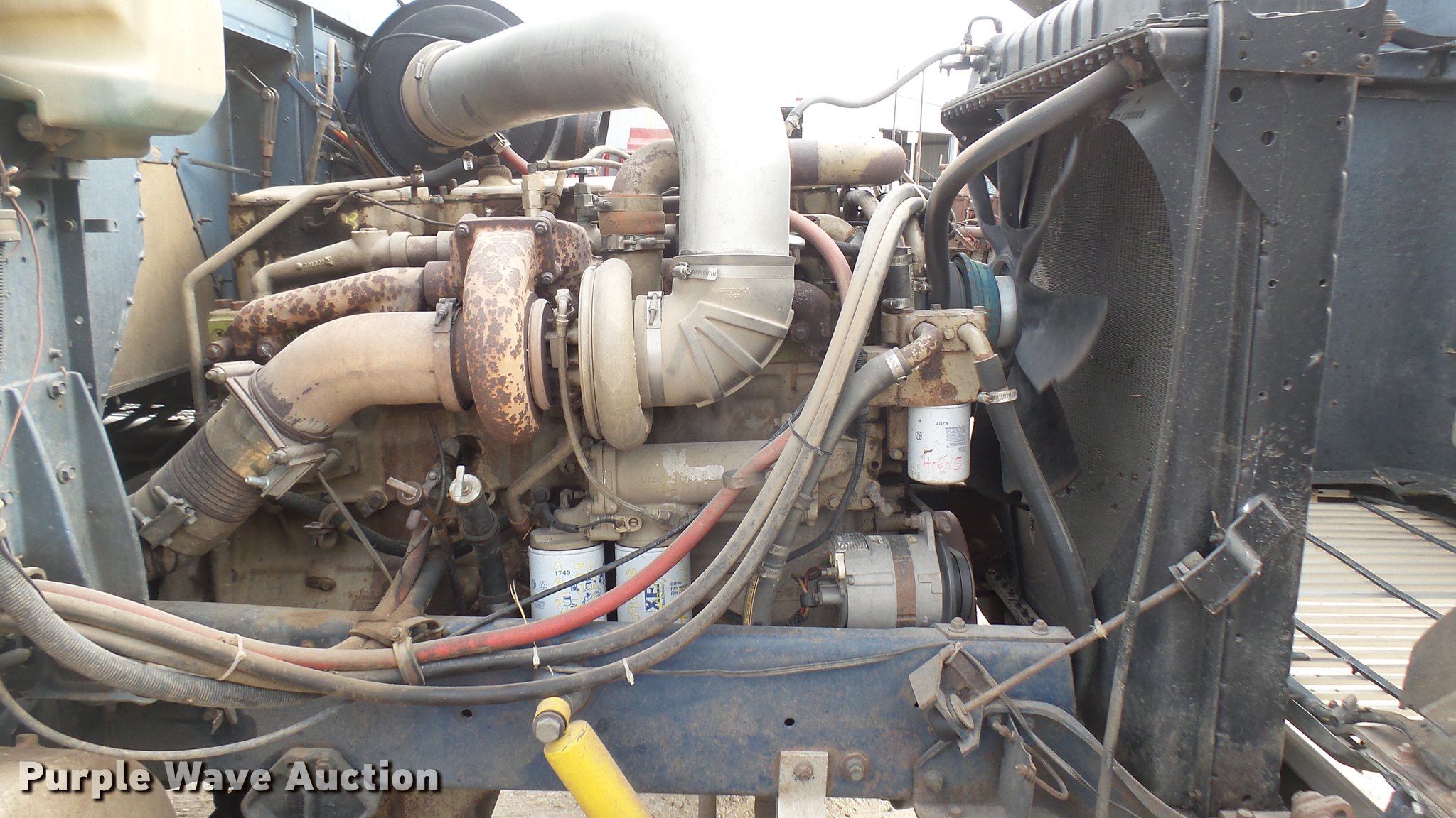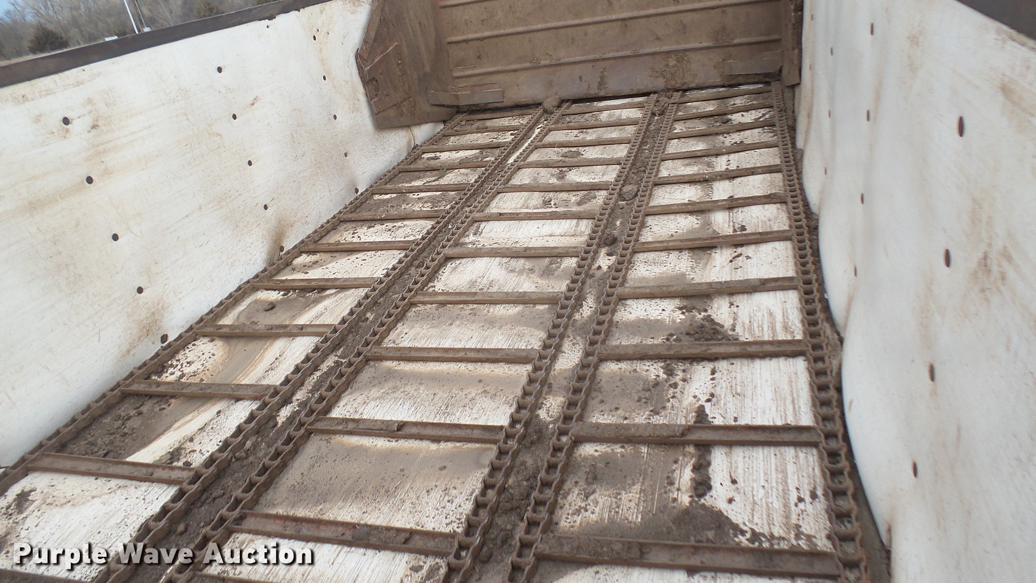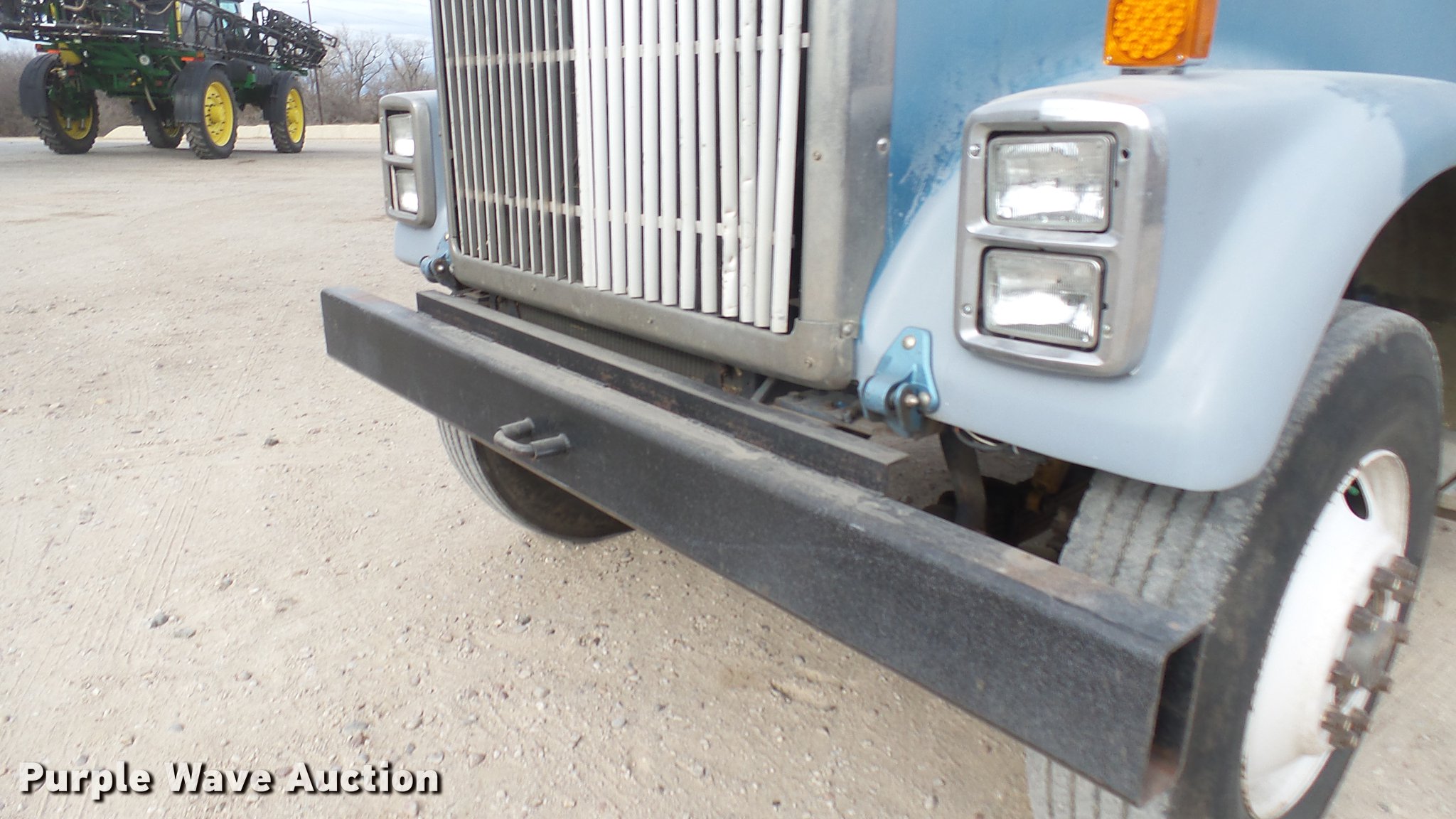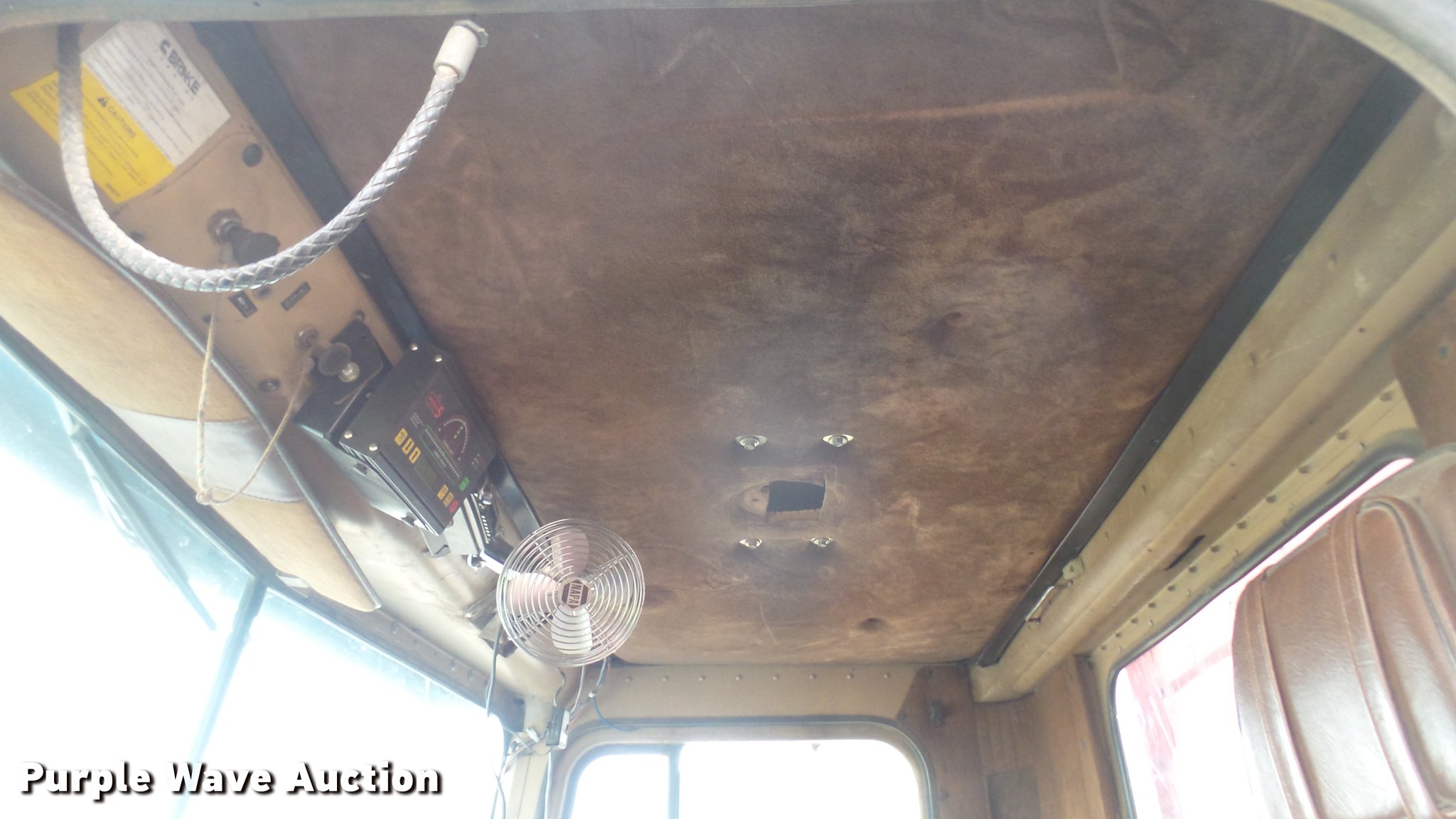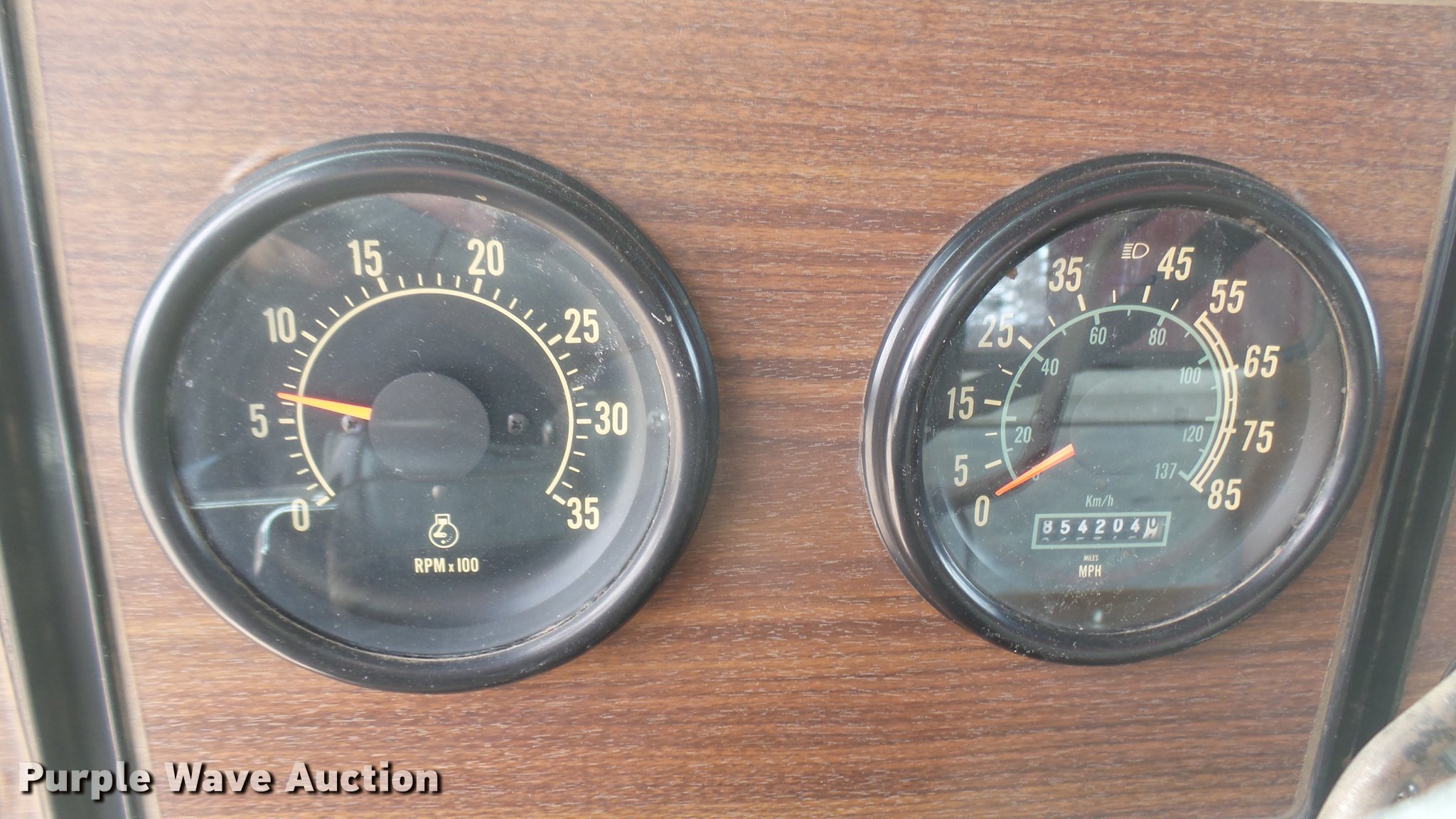 Purple Wave is selling a used Manure Spreader Truck in Kansas. This item is a 1986 International F9370 manure spreader truck with the following: 854,204 miles on odometer, 4,995 hours on meter, Hour meter has been replaced, Cummins NTC400 turbo diesel engine, 400 HP, Serial 11327459, Eaton Fuller Road Ranger 15 speed with deep reduction manual transmission, Tandem axle, Inter-axle differential lock, AC and heat, Red Dot AC power condensor, AM/FM/CD, Power passenger window, Air suspension seat, Outback steering guide controller, Block heater, PTO, Exterior visor, Front tow hook, Dual exhaust stack, Mohrlang XHD20 manure spreader box, 20'L, Horizontal beaters, Chain drive, Steel wall and floor, Serial 1614, Dual fuel tanks, Mud flaps, Double frame, Spring suspension, Air brakes, Engine brake, 11R24.5 tires, Passenger side fuel tank and step damage