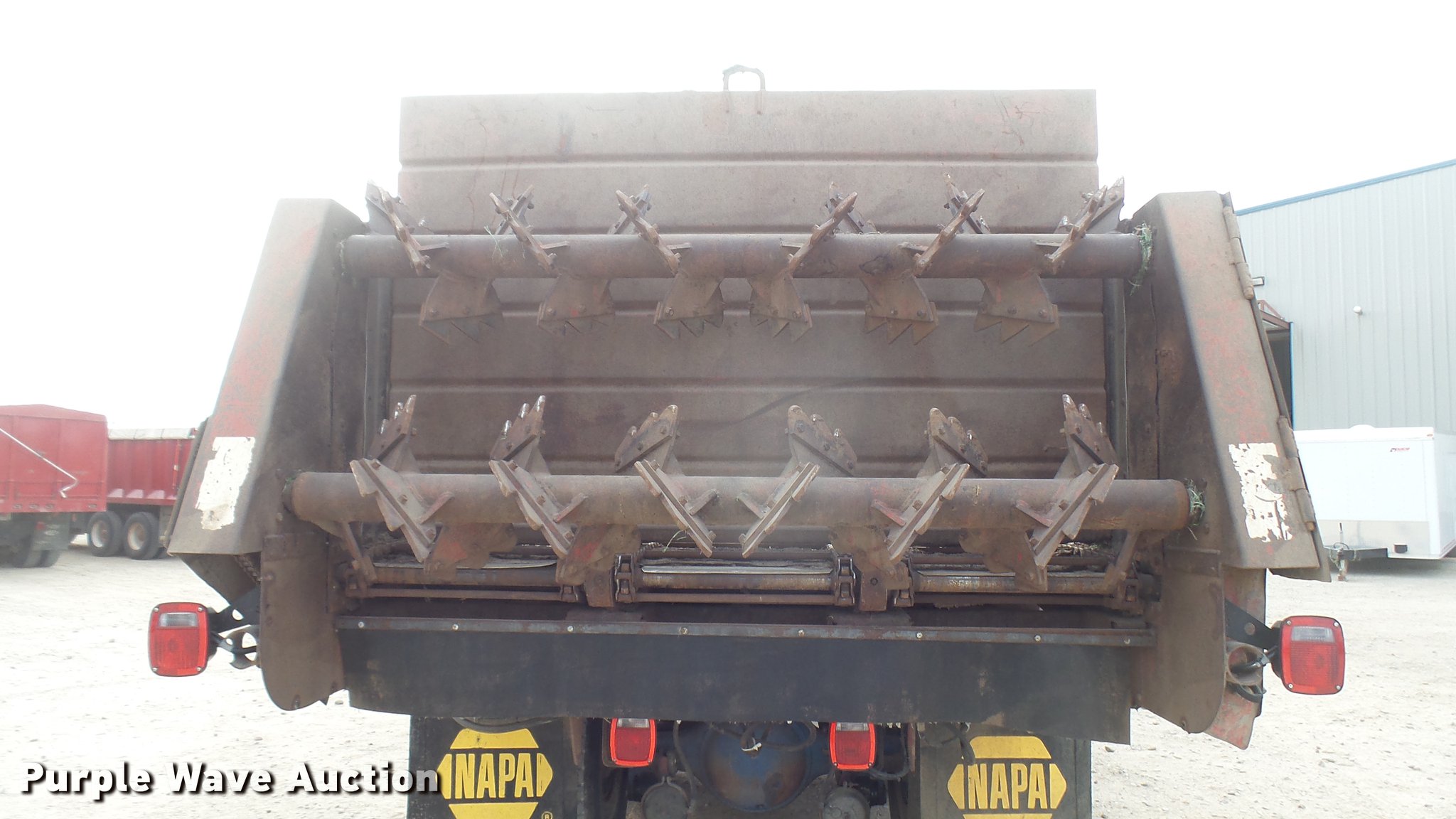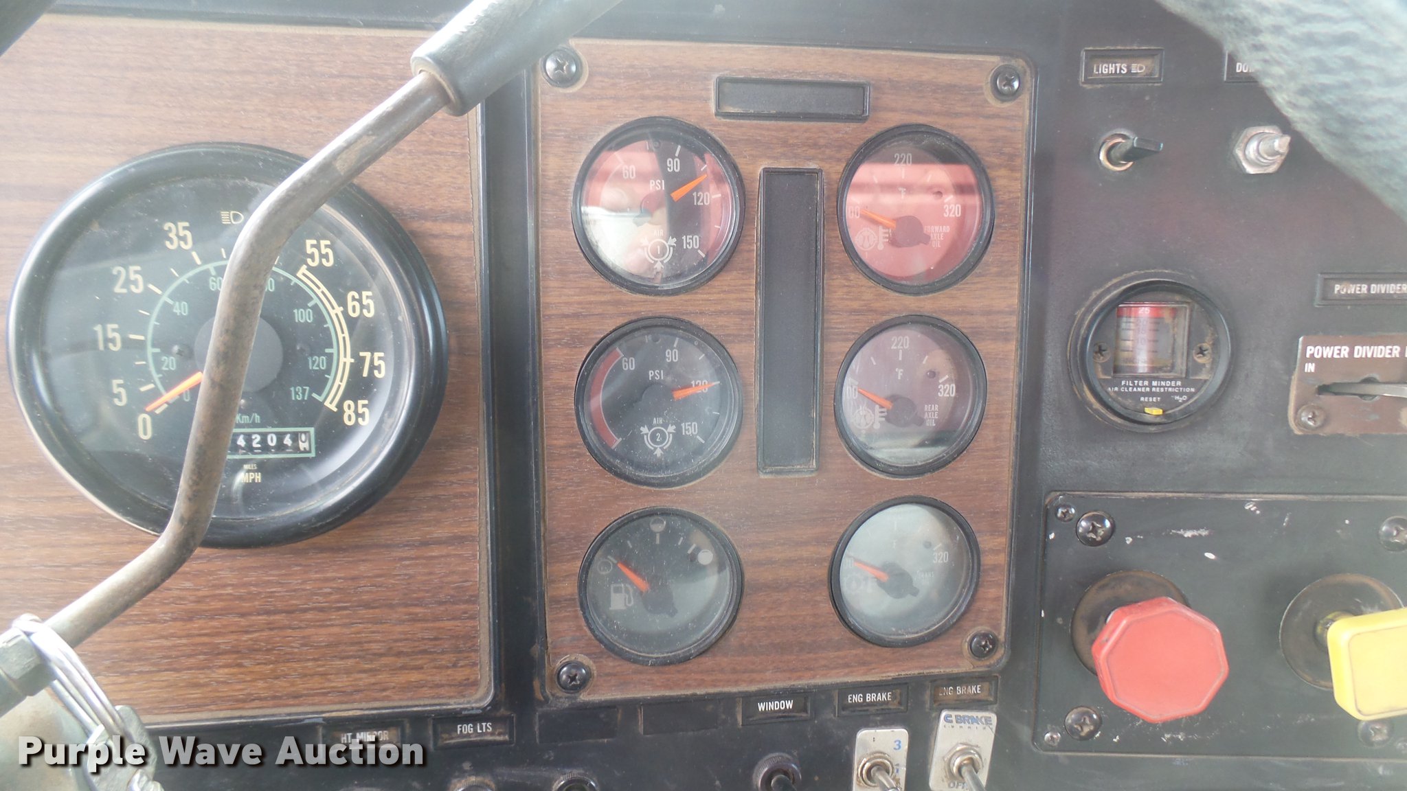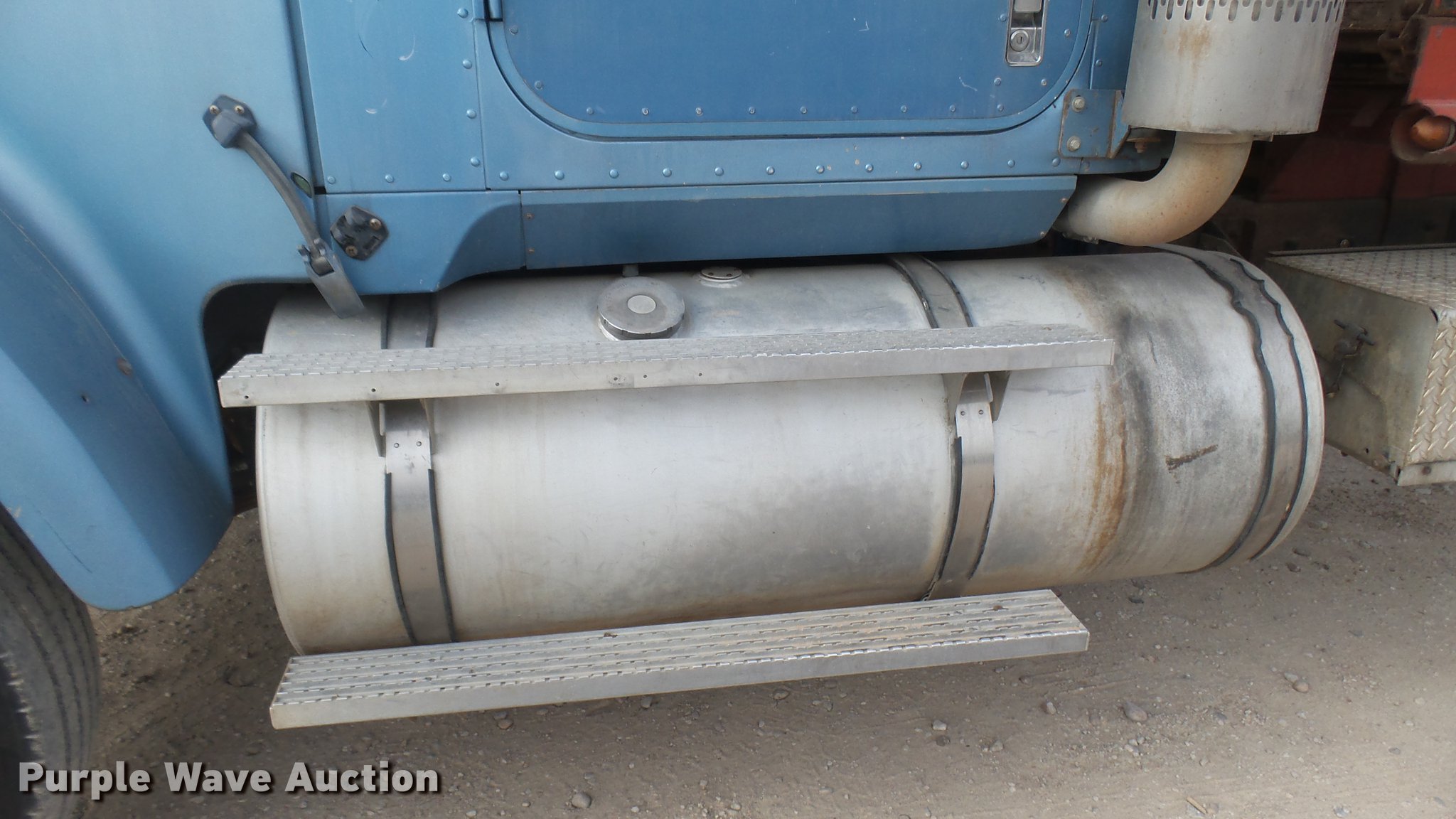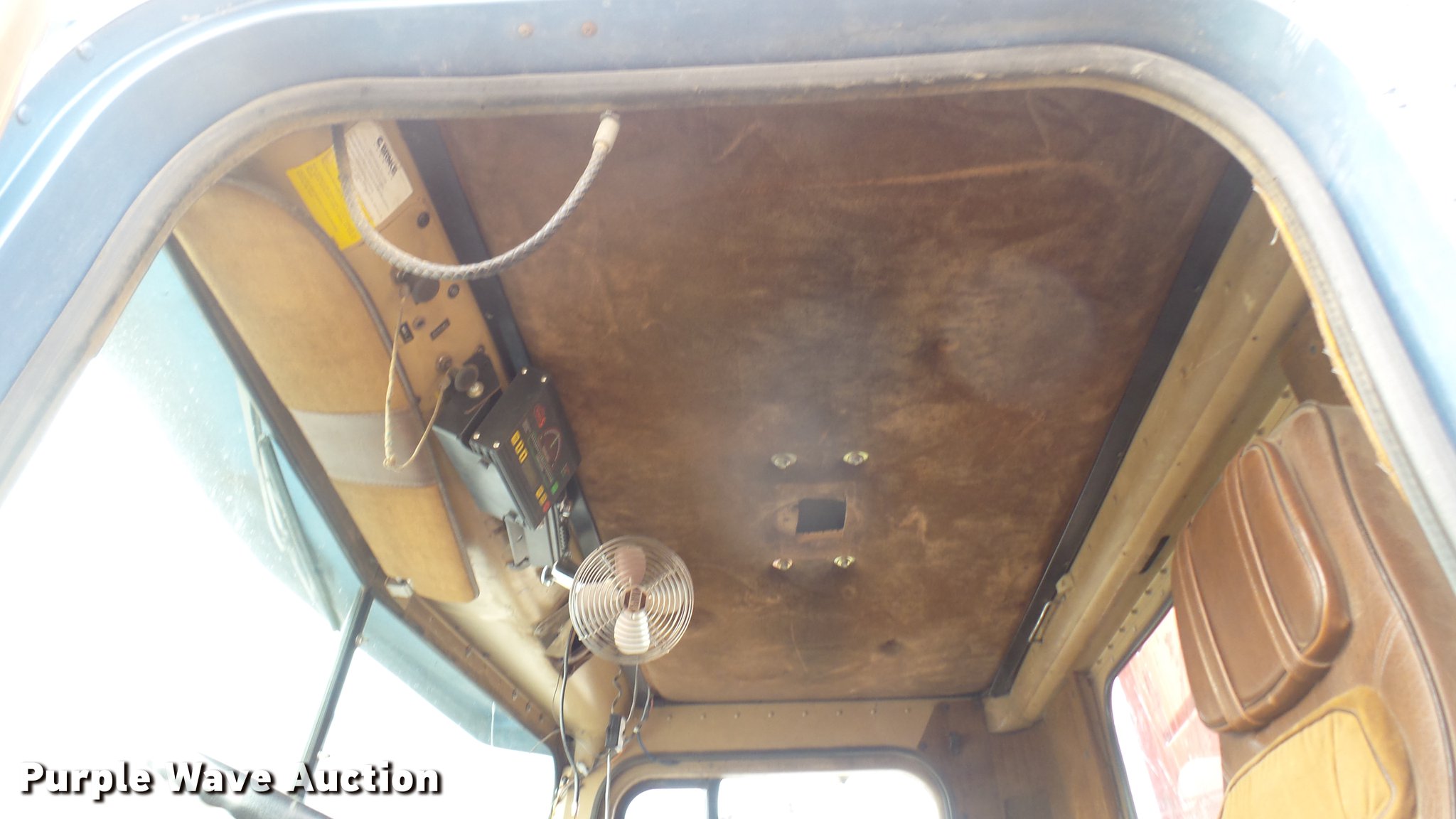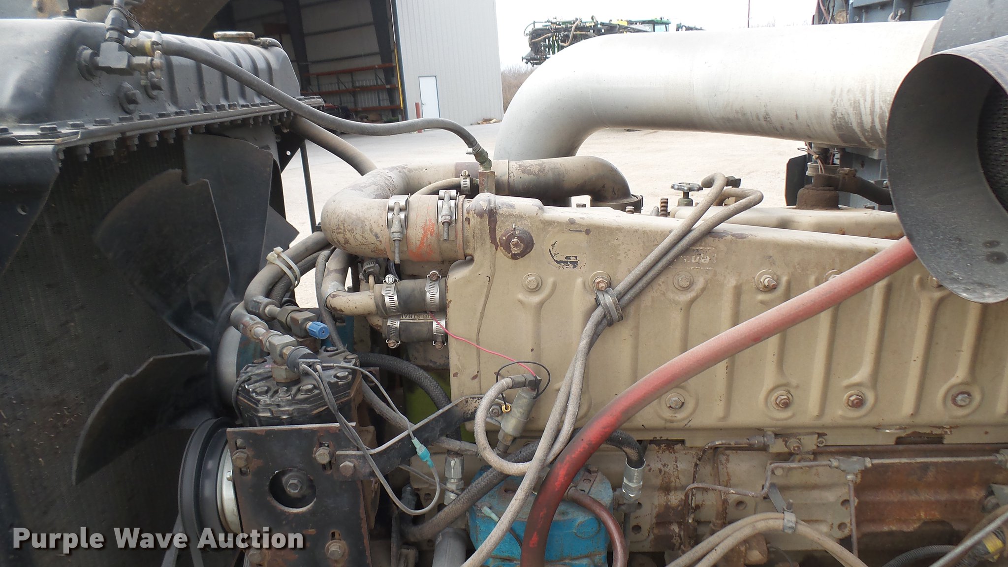 Purple Wave is selling a used Manure Spreader Truck in Kansas. This item is a 1986 International F9370 manure spreader truck with the following: 854,204 miles on odometer, 4,995 hours on meter, Hour meter has been replaced, Cummins NTC400 turbo diesel engine, 400 HP, Serial 11327459, Eaton Fuller Road Ranger 15 speed with deep reduction manual transmission, Tandem axle, Inter-axle differential lock, AC and heat, Red Dot AC power condensor, AM/FM/CD, Power passenger window, Air suspension seat, Outback steering guide controller, Block heater, PTO, Exterior visor, Front tow hook, Dual exhaust stack, Mohrlang XHD20 manure spreader box, 20'L, Horizontal beaters, Chain drive, Steel wall and floor, Serial 1614, Dual fuel tanks, Mud flaps, Double frame, Spring suspension, Air brakes, Engine brake, 11R24.5 tires, Passenger side fuel tank and step damage