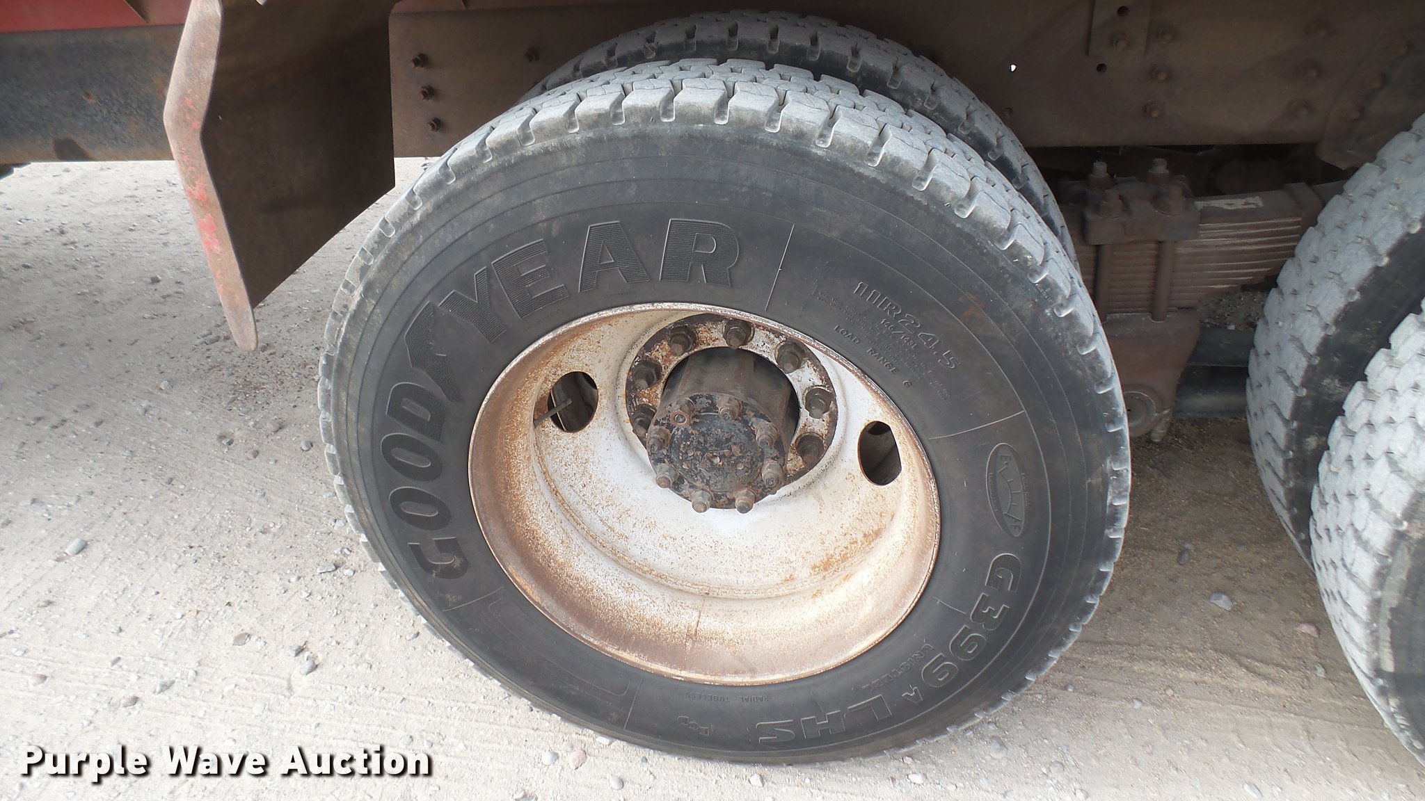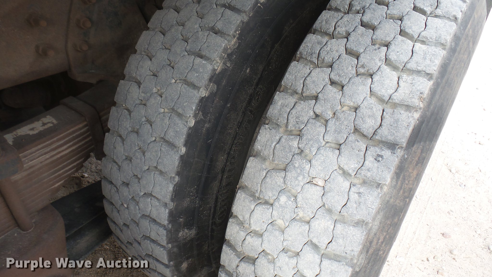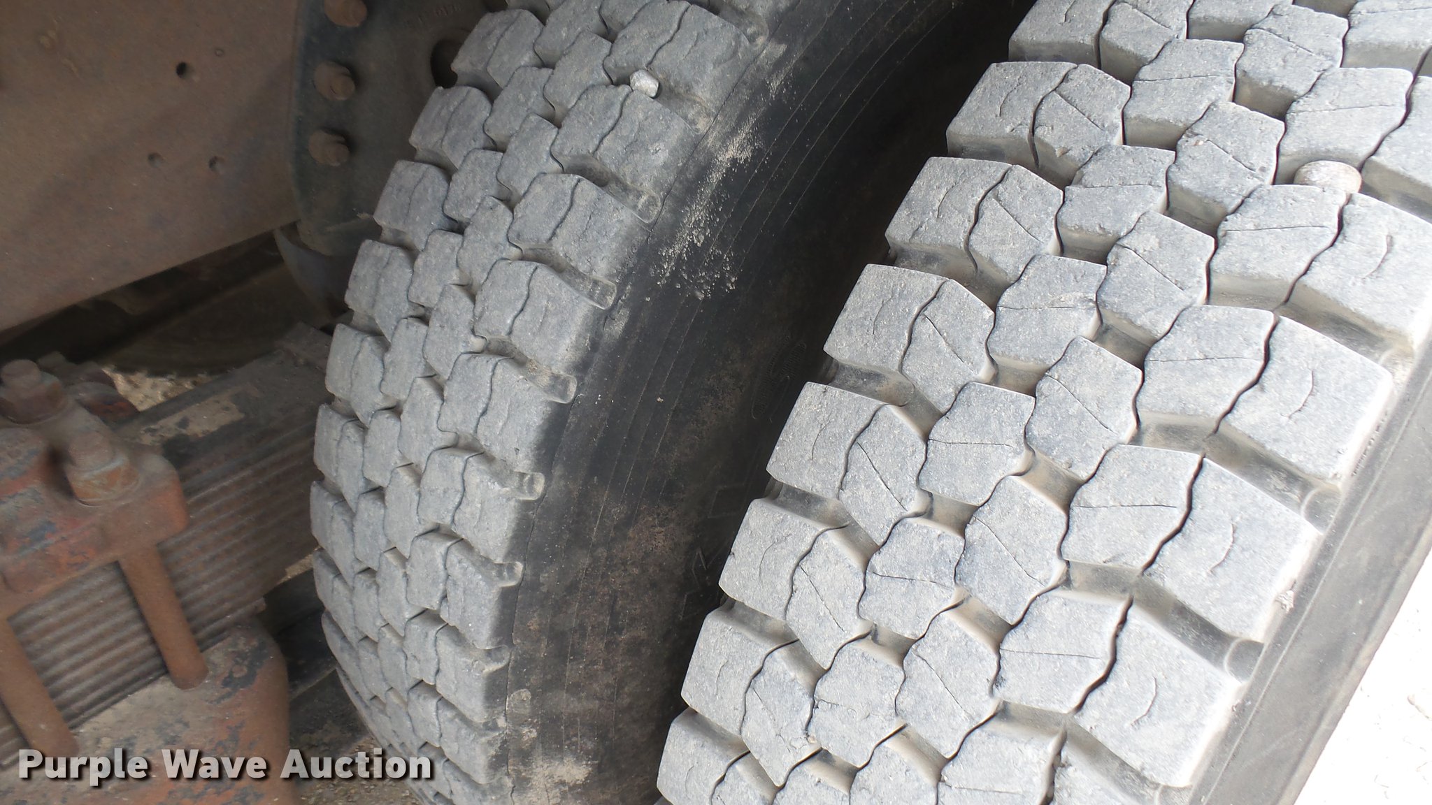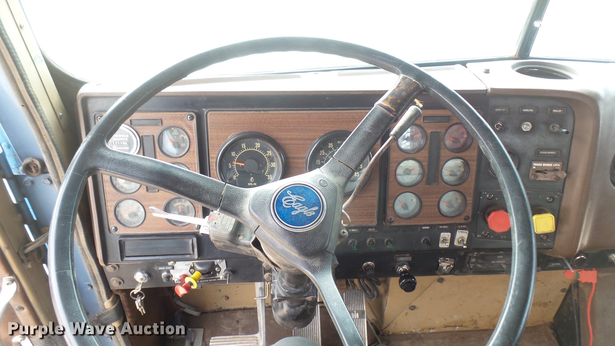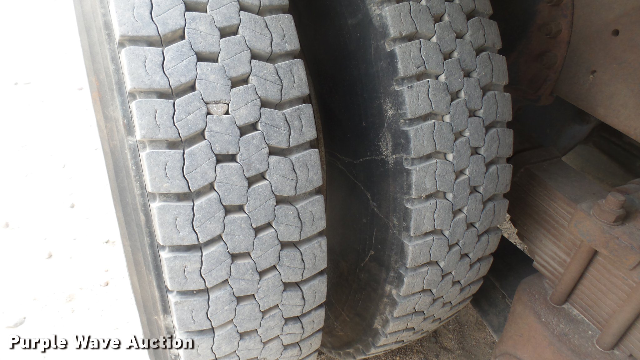 Purple Wave is selling a used Manure Spreader Truck in Kansas. This item is a 1986 International F9370 manure spreader truck with the following: 854,204 miles on odometer, 4,995 hours on meter, Hour meter has been replaced, Cummins NTC400 turbo diesel engine, 400 HP, Serial 11327459, Eaton Fuller Road Ranger 15 speed with deep reduction manual transmission, Tandem axle, Inter-axle differential lock, AC and heat, Red Dot AC power condensor, AM/FM/CD, Power passenger window, Air suspension seat, Outback steering guide controller, Block heater, PTO, Exterior visor, Front tow hook, Dual exhaust stack, Mohrlang XHD20 manure spreader box, 20'L, Horizontal beaters, Chain drive, Steel wall and floor, Serial 1614, Dual fuel tanks, Mud flaps, Double frame, Spring suspension, Air brakes, Engine brake, 11R24.5 tires, Passenger side fuel tank and step damage