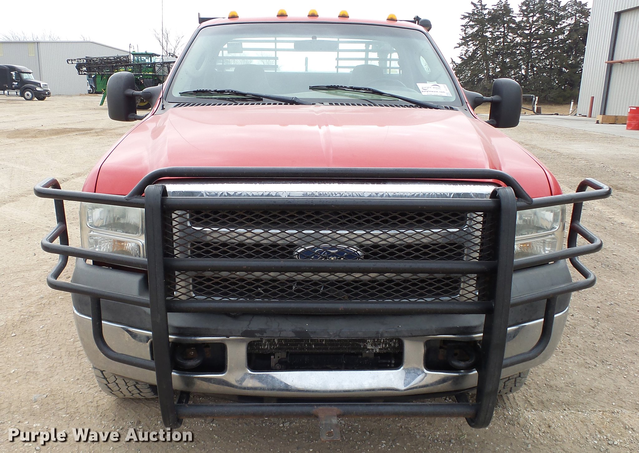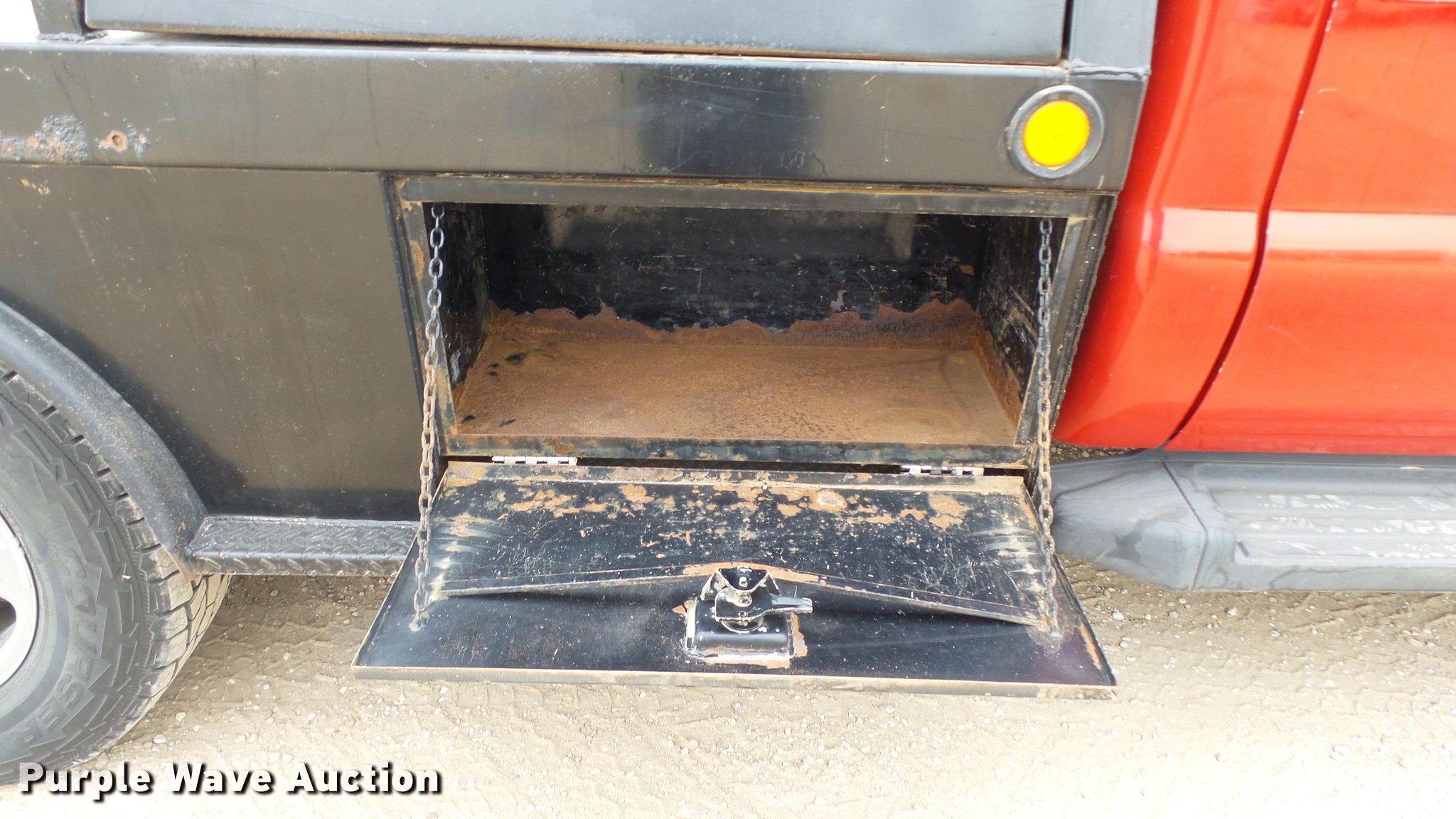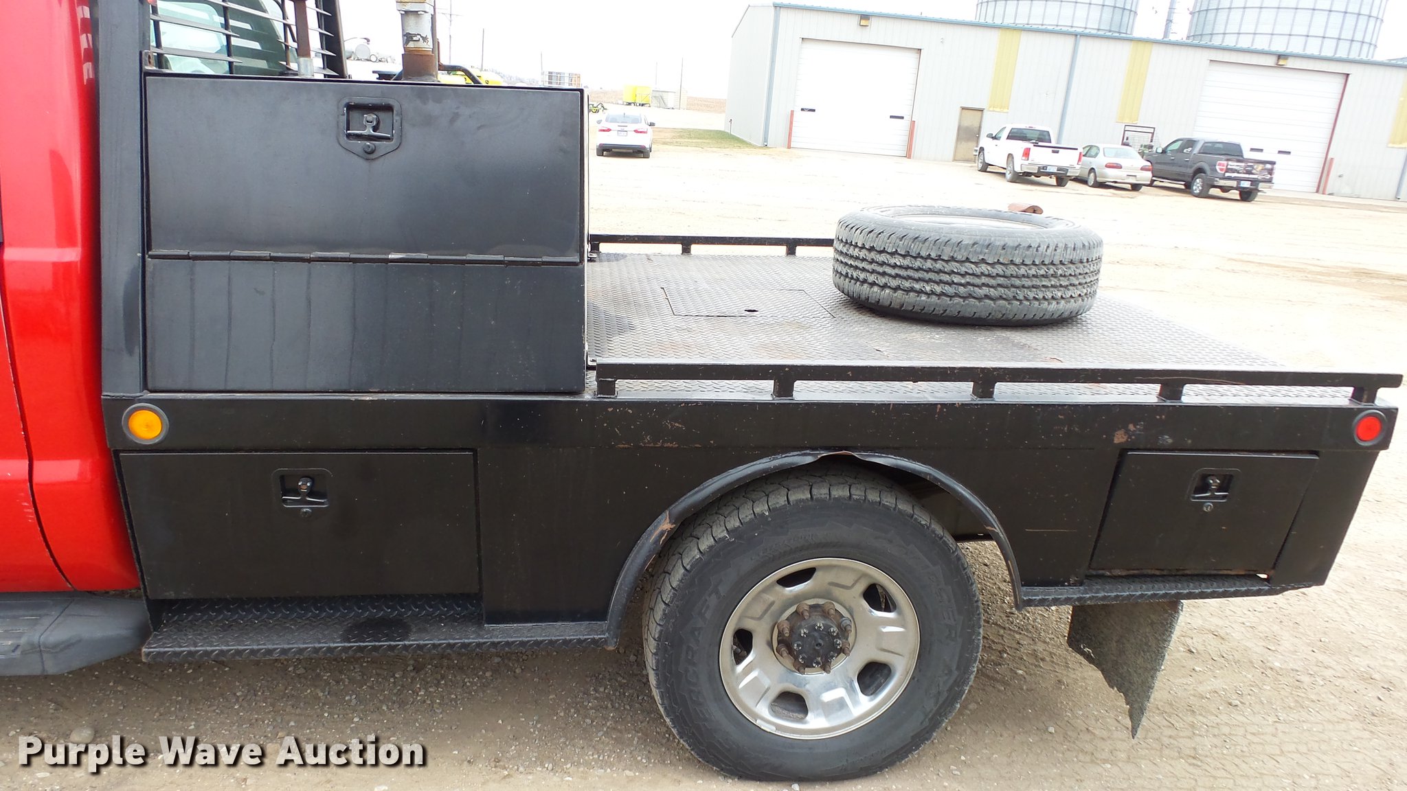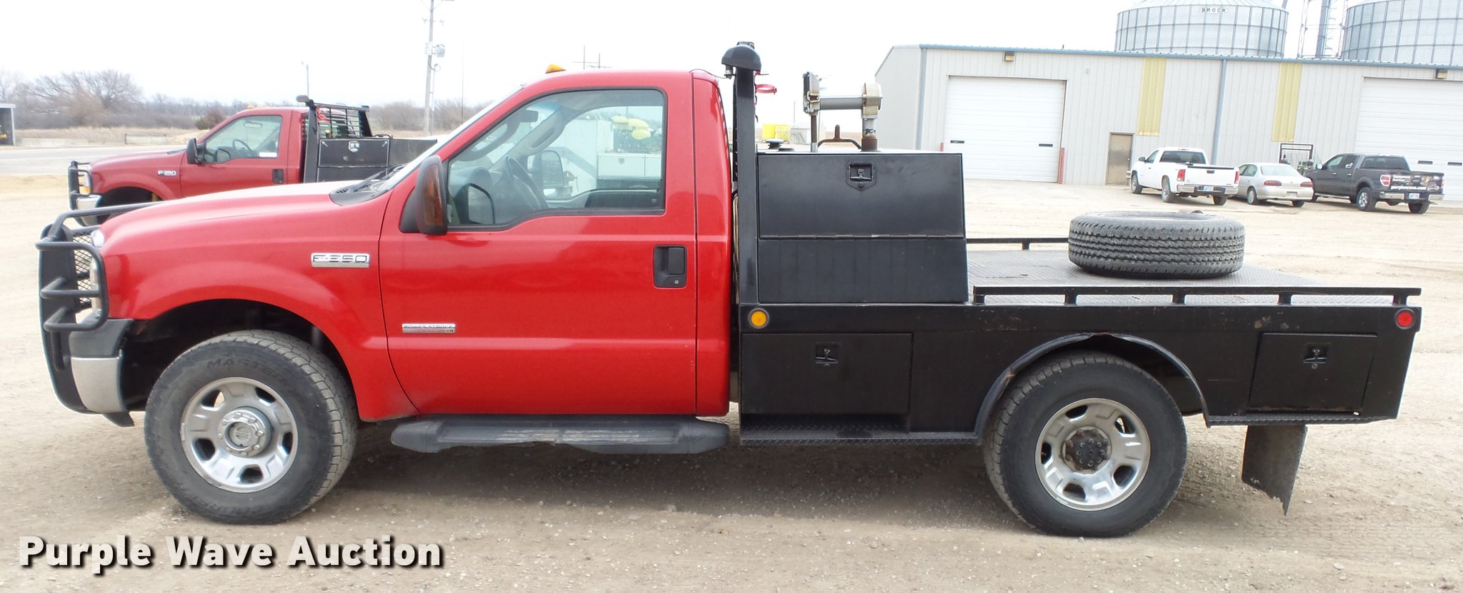 Purple Wave is selling a used 3/4 or 1 Ton Pickup or Van in Kansas. This item is a 2006 Ford F350 Super Duty XLT flatbed pickup truck with the following: 181,430 miles on odometer, 6.0L V8 OHV 32V turbo diesel engine, Automatic transmission, Four wheel drive, AC and heat, Tilt, Cruise, AM/FM/CD, Power windows, locks, and mirrors, Cloth interior, B&W flatbed, 9'3"L x 7'W, Toolbox, 6" vise, Auxiliary fuel tank, 12V fuel pump, Hose, Nozzle,, Grill guard, Front tow hook, Running boards, Gooseneck hitch, Bumper mounted ball hitch, Trailer wiring, LT275/70R16 tires, Check engine light on
