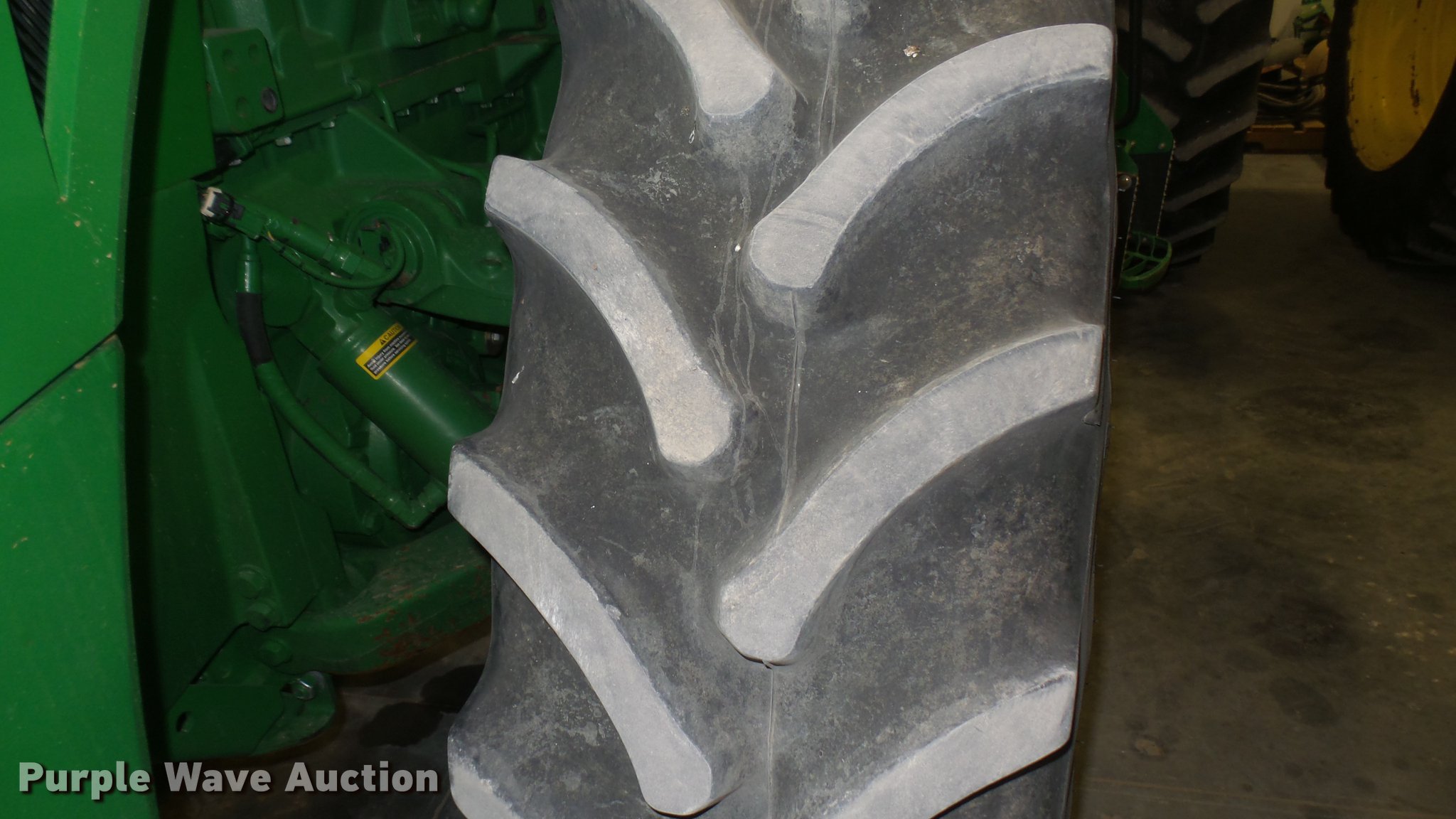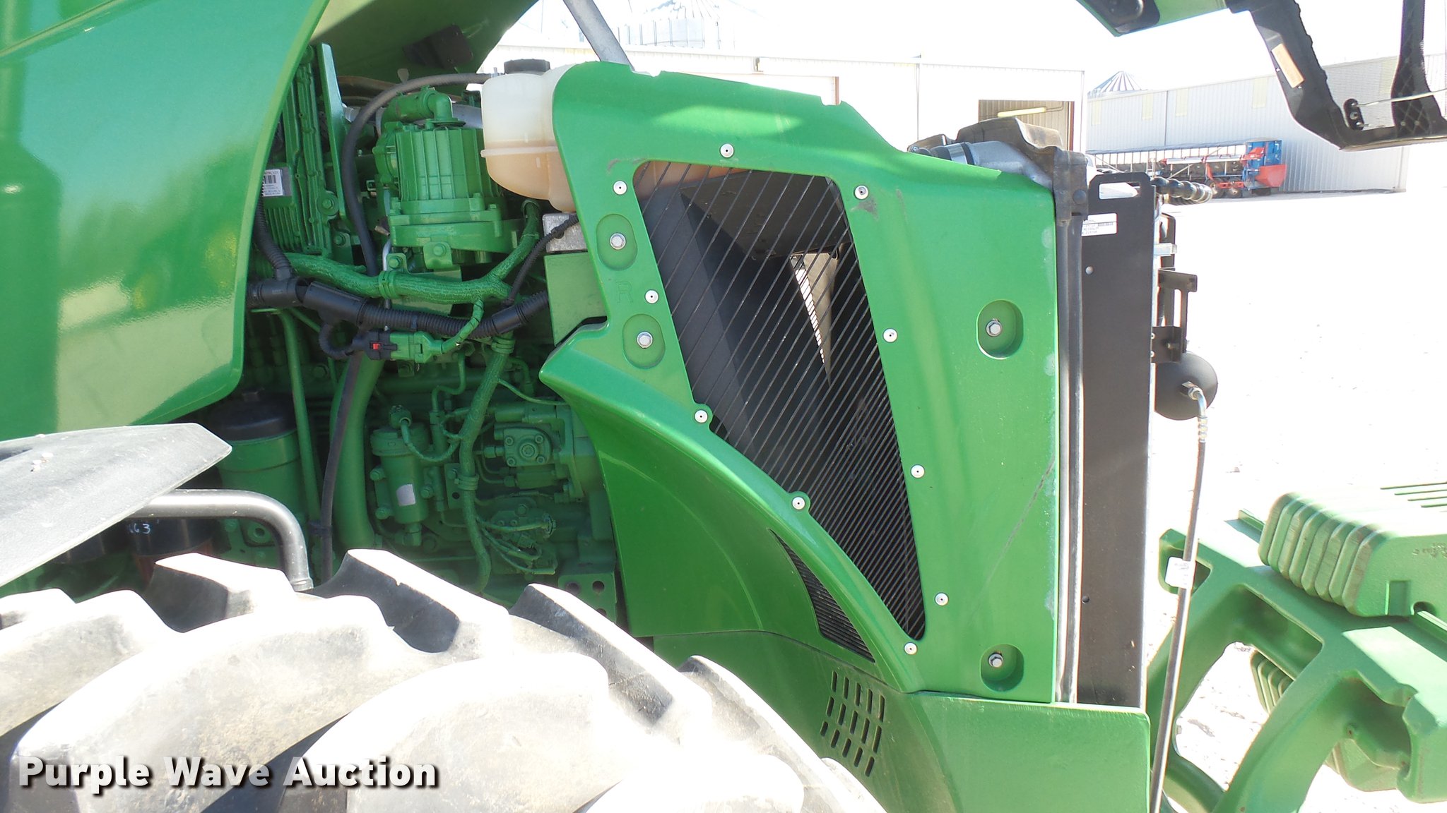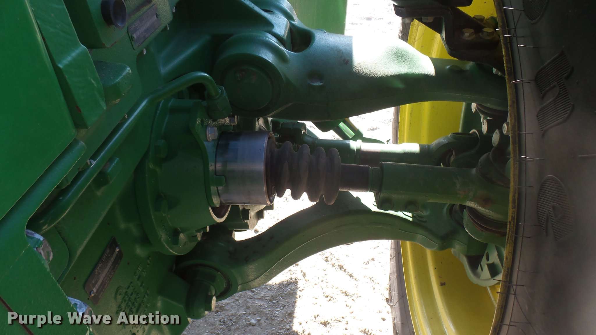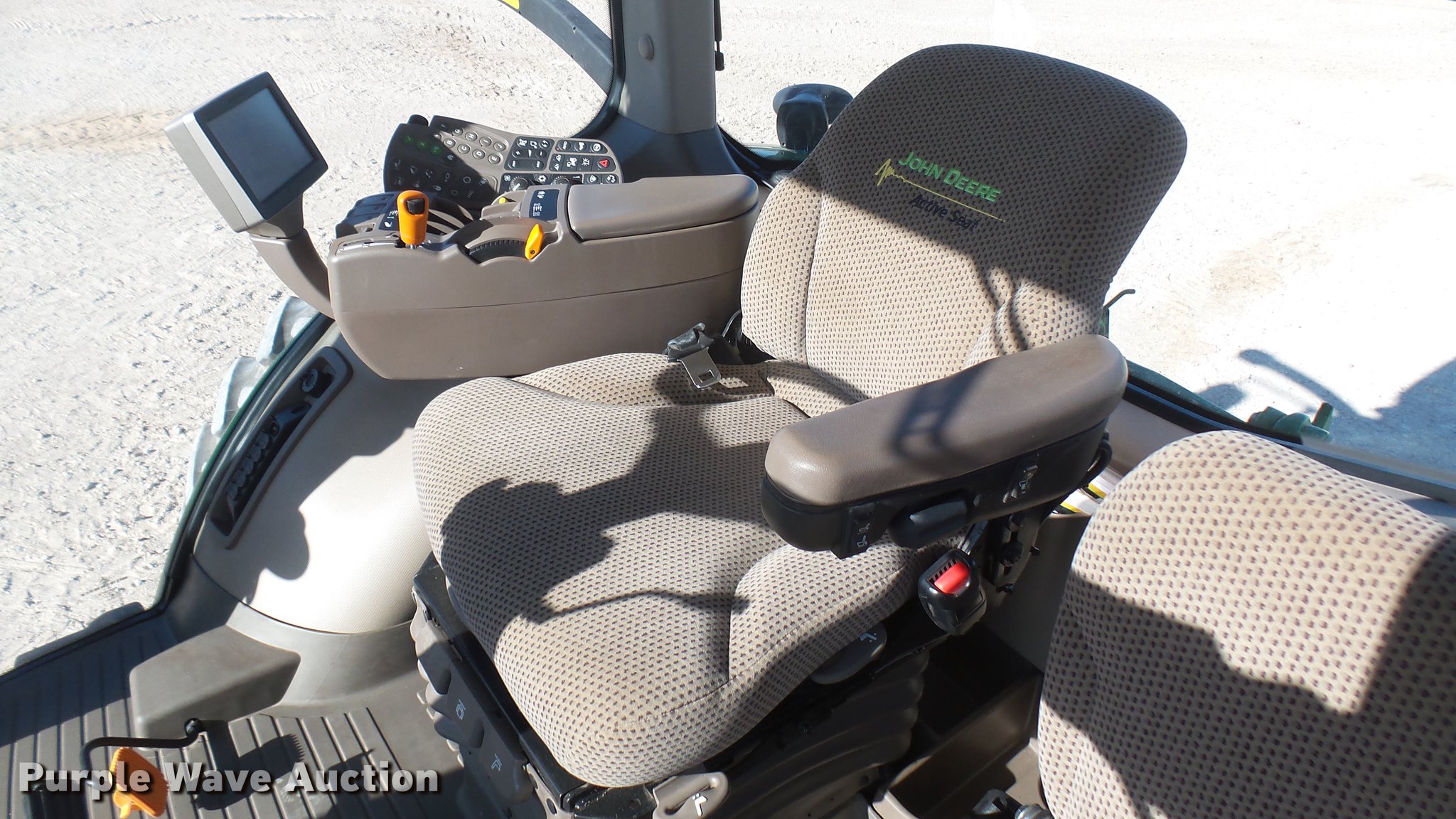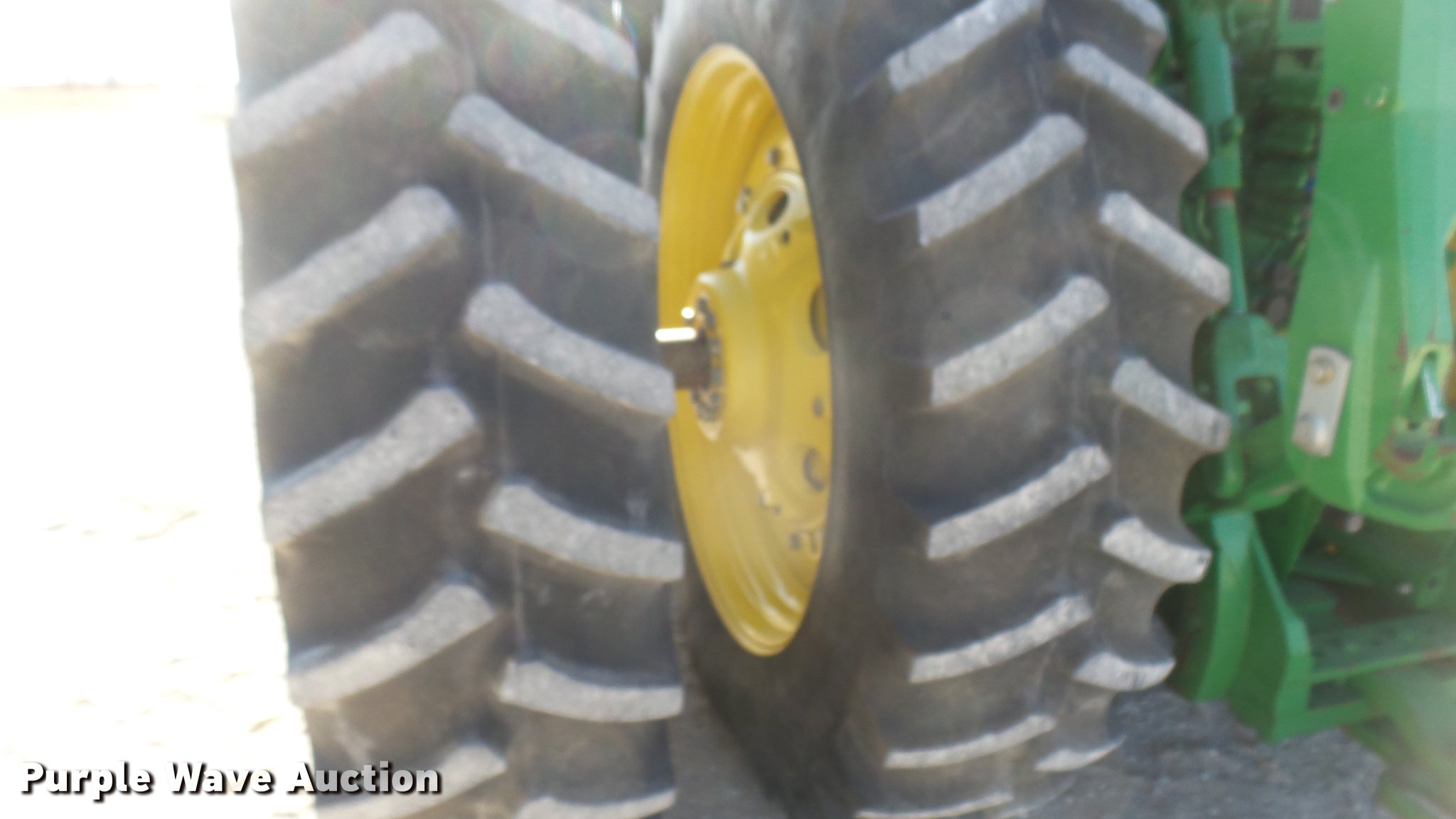 Purple Wave is selling a used Tractor in Kansas. This item is a 2013 John Deere 8235R MFWD tractor with the following: 2,197 hours on meter, John Deere 6090RW415 9.0L six cylinder turbo diesel engine, Serial RG6090R051798, John Deere Auto Power IVT transmission, Differential lock, AC and heat, Tilt steering wheel, AM/FM/CD, Power mirrors, Air suspension seat, Instructor's seat, Shades, GS3 Command Center 7" touchscreen color display, Three point, Top link, Quick attach, Large 1000 PTO, Seven pin outlet, ISO electrical outlet, (4) rear hydraulic remote sets, Power beyond hydraulics, (8) suitcase weights, (2) wheel weights, 420/85R34 front tires, 480/80R46 dual rear tires, Manuals, Serial 1RW8235RJDD073784