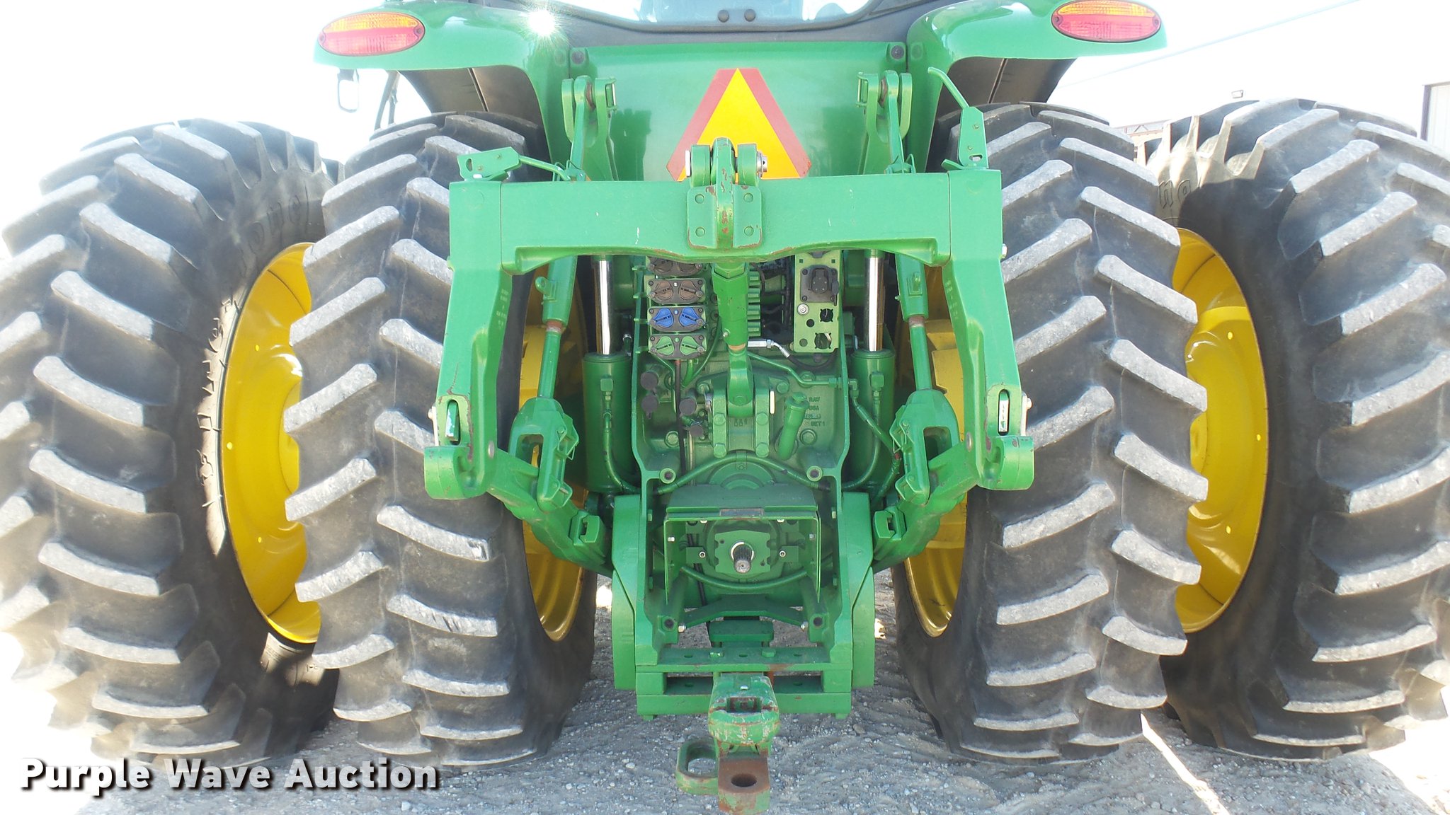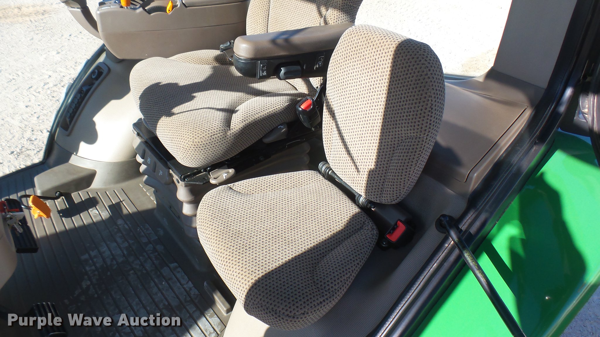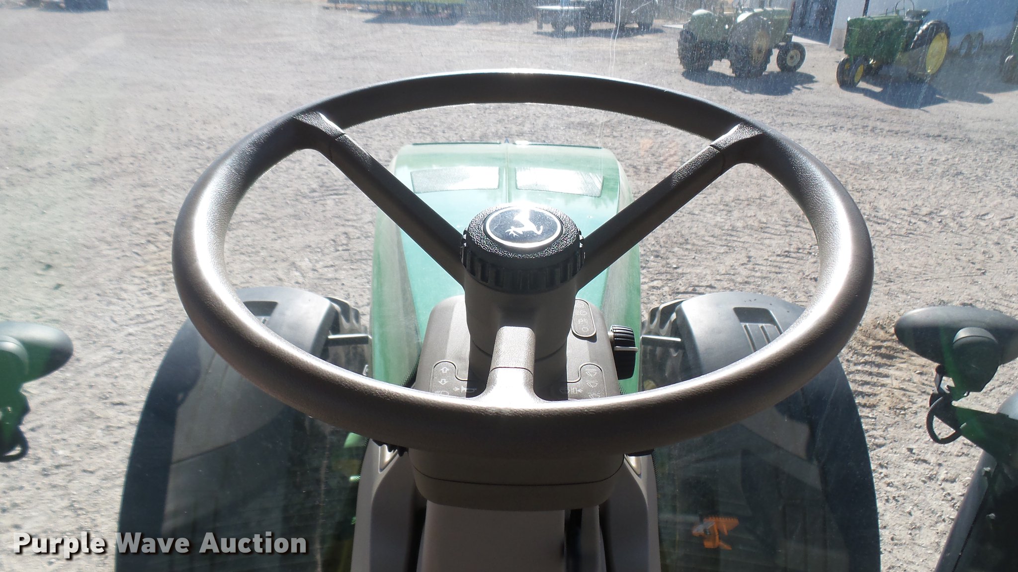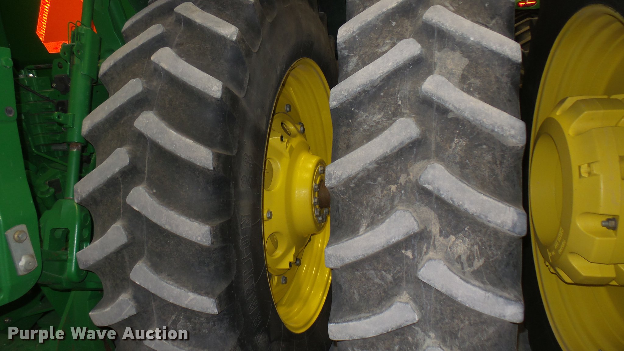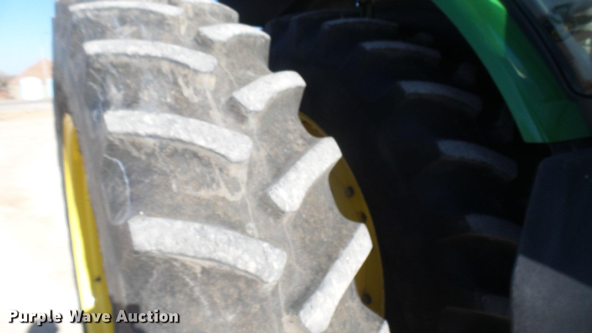 Purple Wave is selling a used Tractor in Kansas. This item is a 2013 John Deere 8235R MFWD tractor with the following: 2,197 hours on meter, John Deere 6090RW415 9.0L six cylinder turbo diesel engine, Serial RG6090R051798, John Deere Auto Power IVT transmission, Differential lock, AC and heat, Tilt steering wheel, AM/FM/CD, Power mirrors, Air suspension seat, Instructor's seat, Shades, GS3 Command Center 7" touchscreen color display, Three point, Top link, Quick attach, Large 1000 PTO, Seven pin outlet, ISO electrical outlet, (4) rear hydraulic remote sets, Power beyond hydraulics, (8) suitcase weights, (2) wheel weights, 420/85R34 front tires, 480/80R46 dual rear tires, Manuals, Serial 1RW8235RJDD073784
