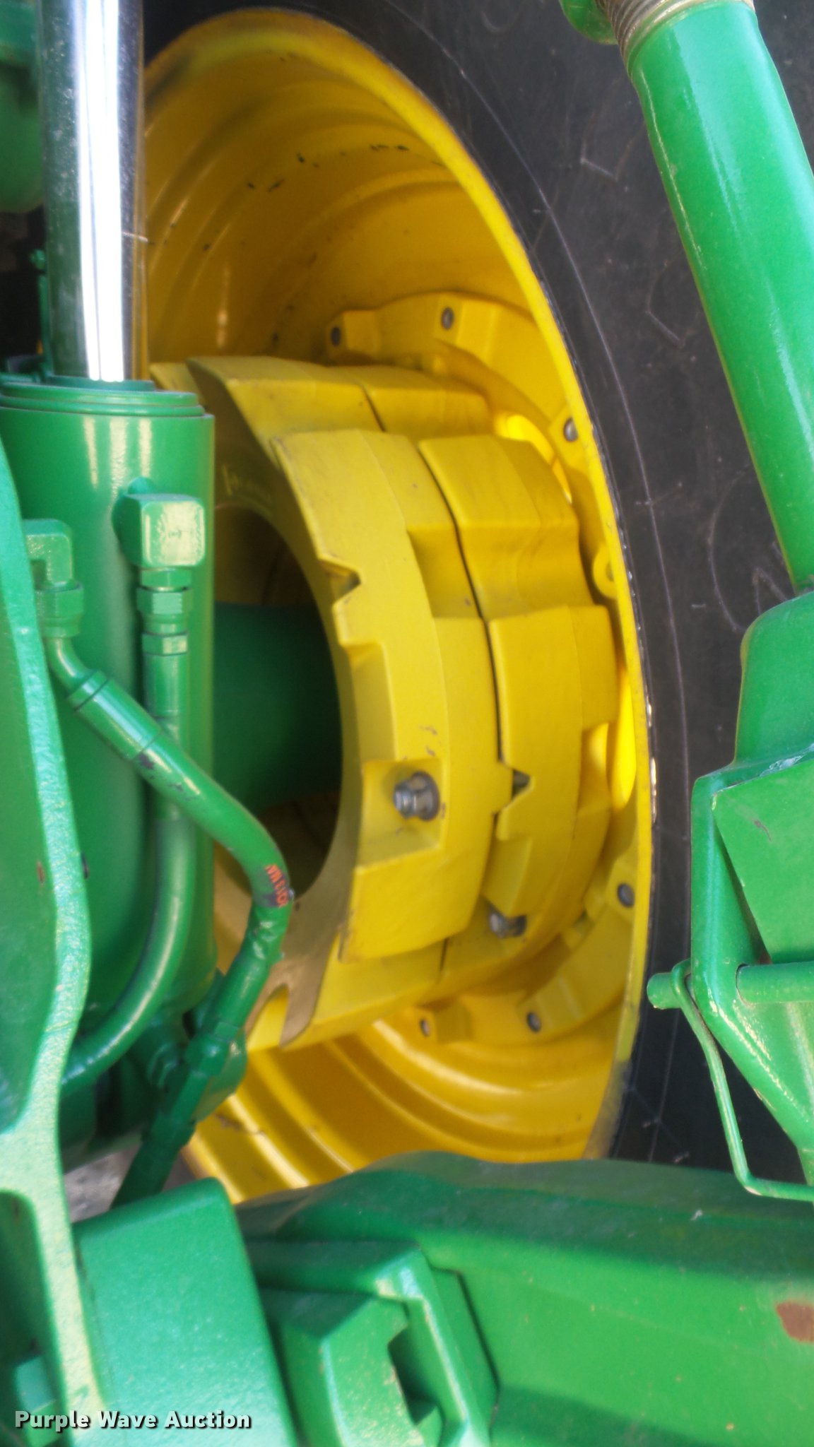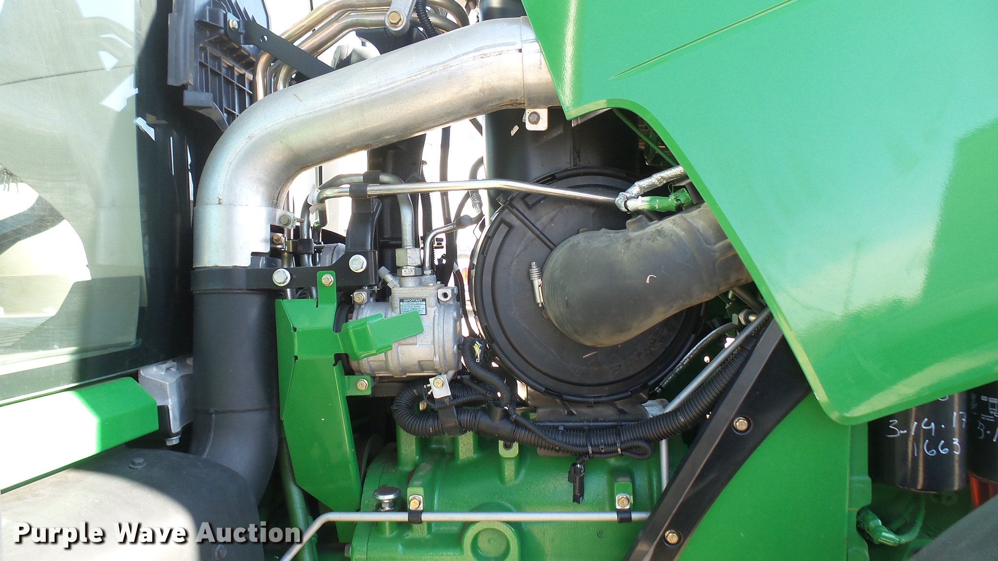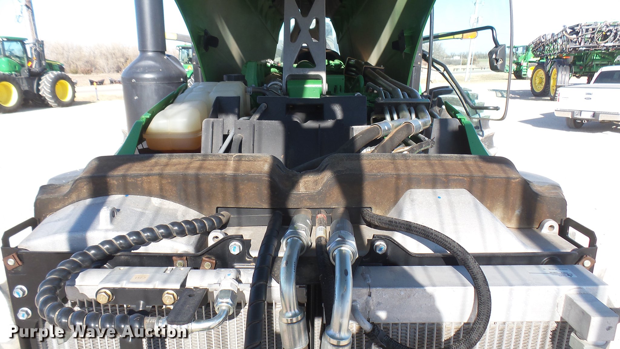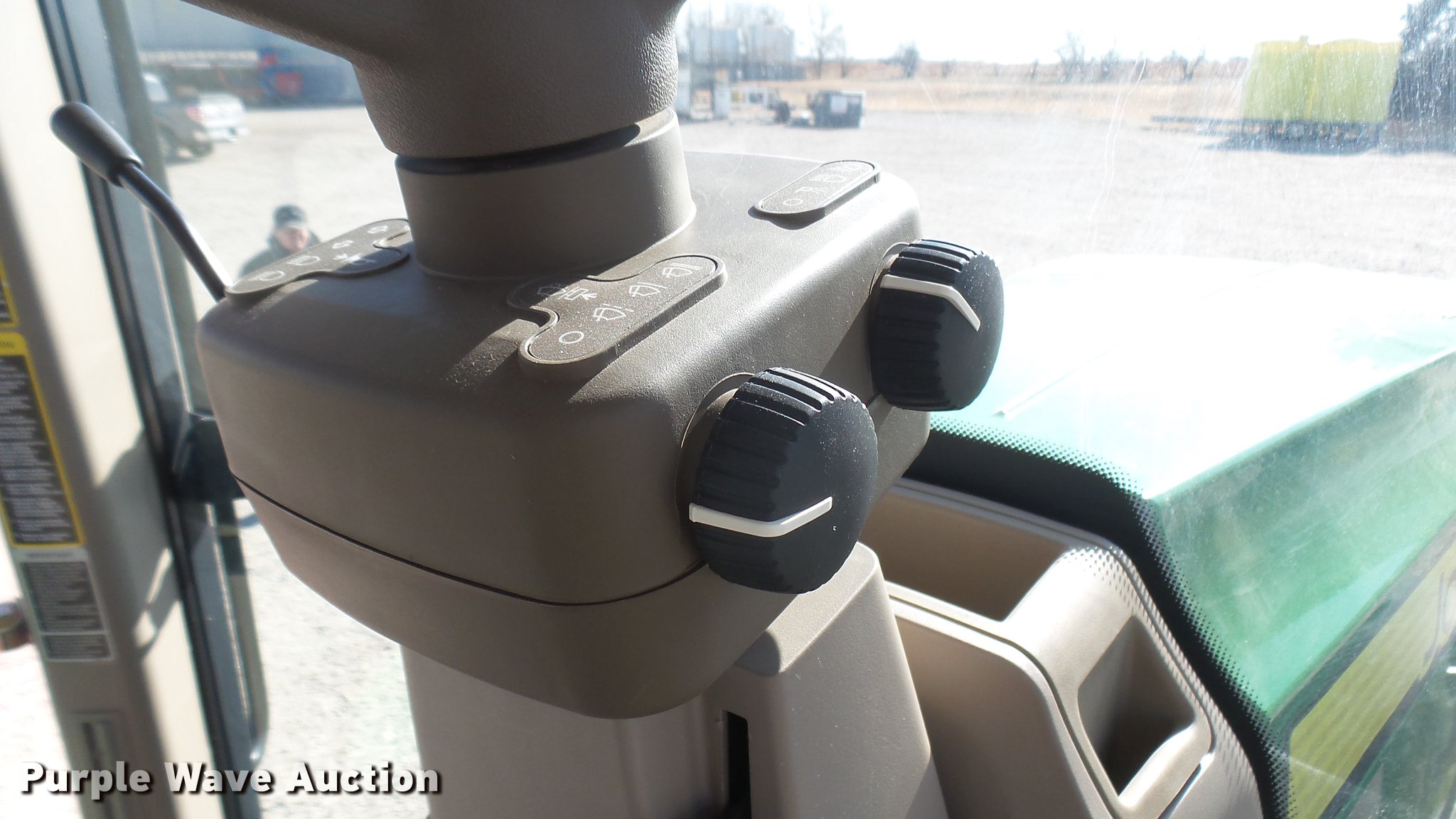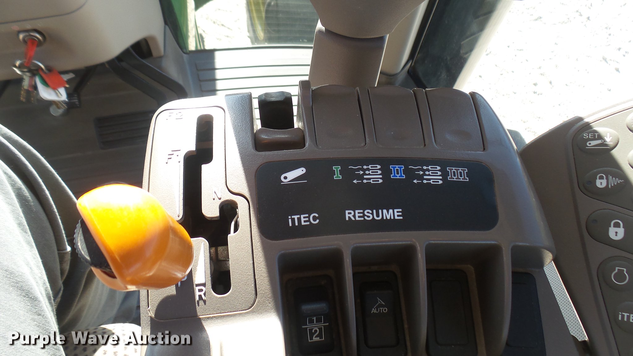 Purple Wave is selling a used Tractor in Kansas. This item is a 2013 John Deere 8235R MFWD tractor with the following: 2,197 hours on meter, John Deere 6090RW415 9.0L six cylinder turbo diesel engine, Serial RG6090R051798, John Deere Auto Power IVT transmission, Differential lock, AC and heat, Tilt steering wheel, AM/FM/CD, Power mirrors, Air suspension seat, Instructor's seat, Shades, GS3 Command Center 7" touchscreen color display, Three point, Top link, Quick attach, Large 1000 PTO, Seven pin outlet, ISO electrical outlet, (4) rear hydraulic remote sets, Power beyond hydraulics, (8) suitcase weights, (2) wheel weights, 420/85R34 front tires, 480/80R46 dual rear tires, Manuals, Serial 1RW8235RJDD073784