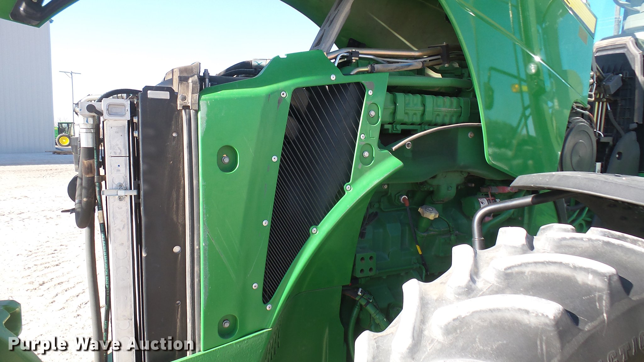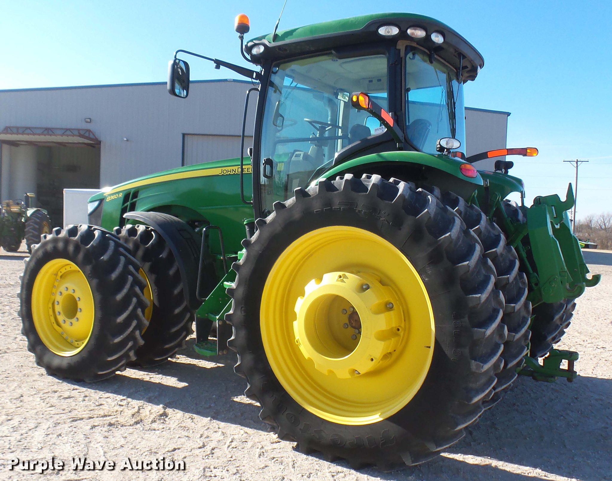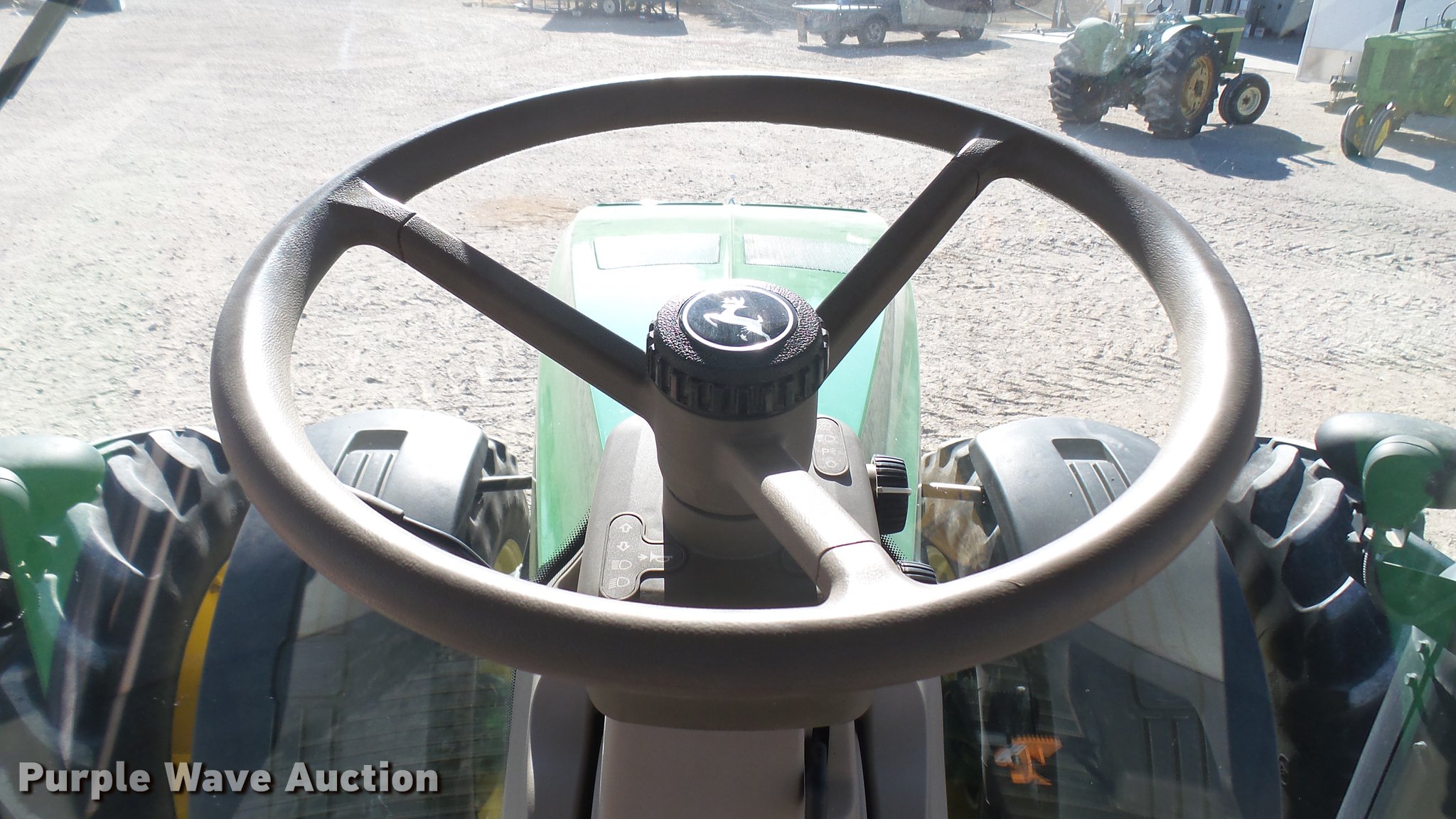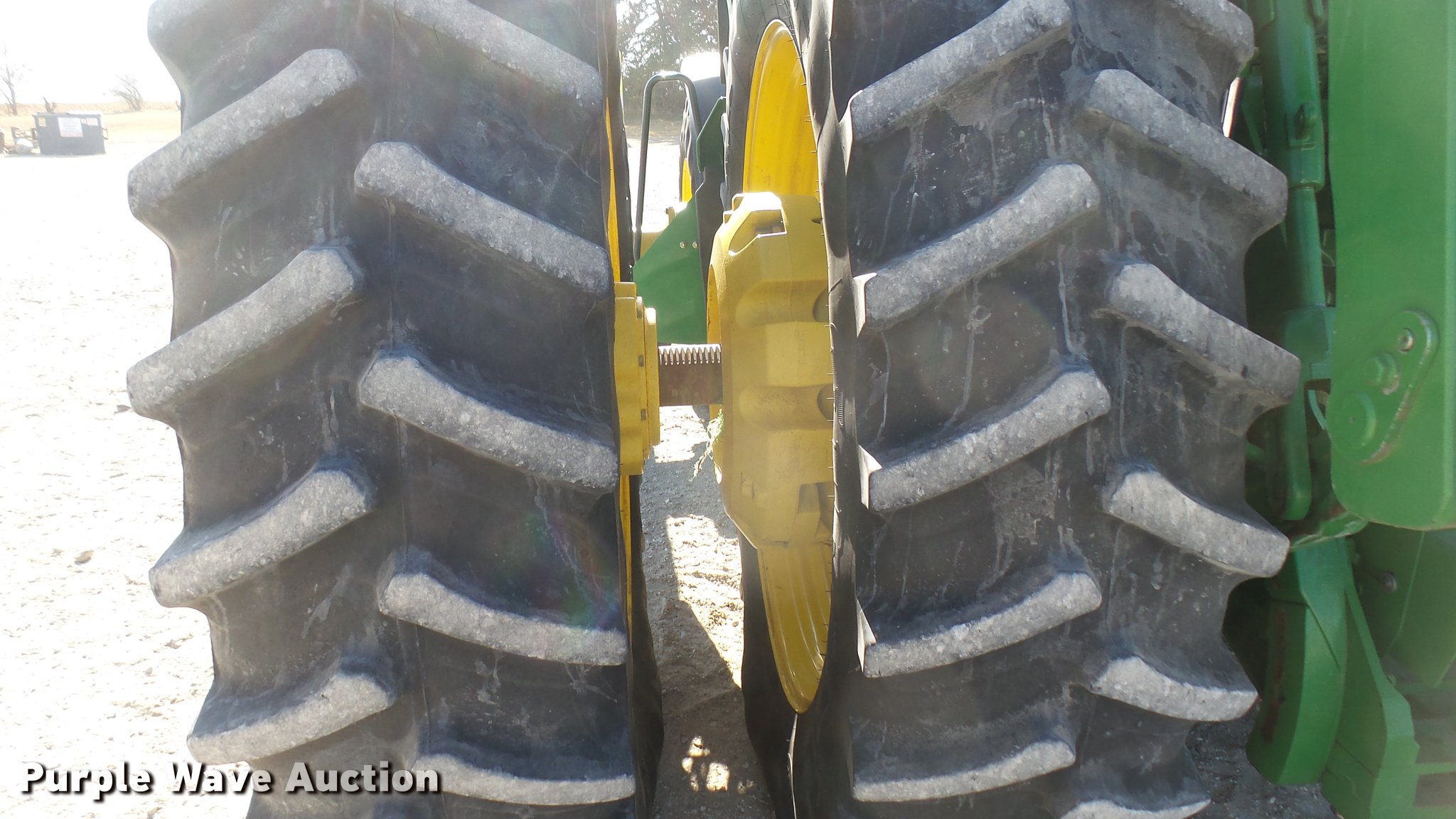 Purple Wave is selling a used Tractor in Kansas. This item is a 2013 John Deere 8360R MFWD tractor with the following: 3,036 hours on meter, John Deere 6090RW414 9.0L six cylinder turbo diesel engine, Serial RG6090R051325, John Deere Auto Power IVT transmission, Strike differential lock, AC and heat, AM/FM/CD, Power mirrors, Air suspension seat, Instructor's seat, Tilt steering wheel, Shades, Block heater, Three point, Top link, Quick attach, Large 1000 PTO, Seven pin outlet, ISO electrical outlet, (5) rear hydraulic remote sets, Power beyond hydraulics, (22) suitcase weights, (5) wheel weights, Firestone 420/85R34 dual front tires, Firestone 480/80R50 dual rear tires, Manuals, Serial 1RW8360RTDD073589