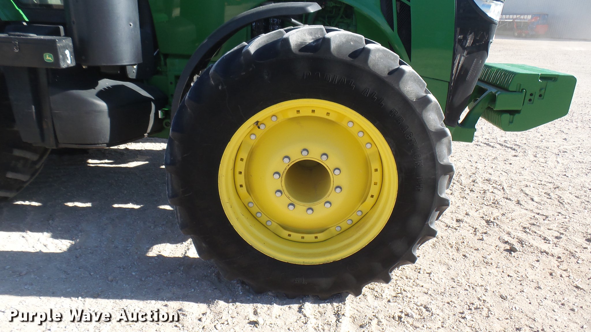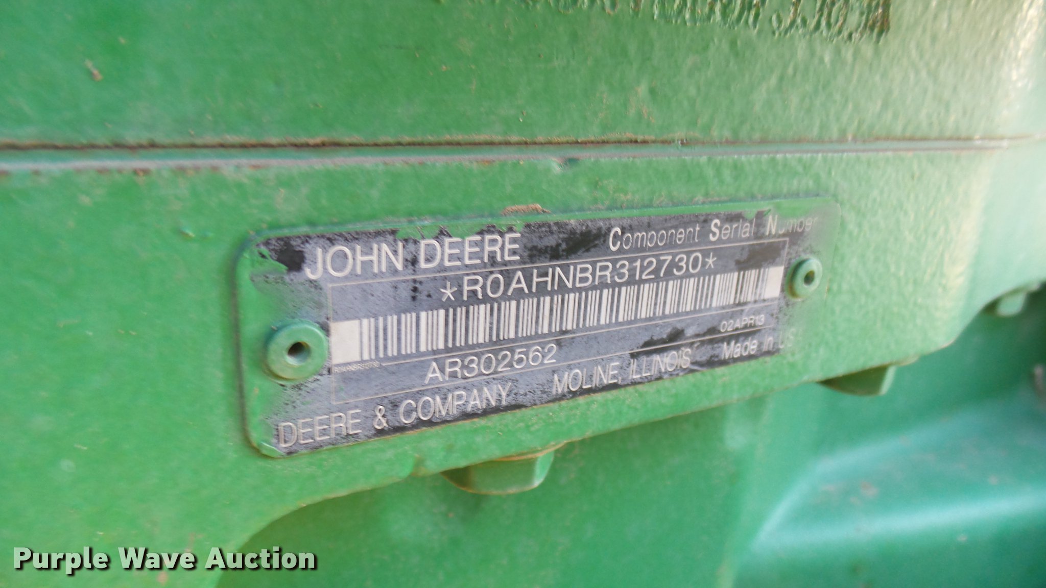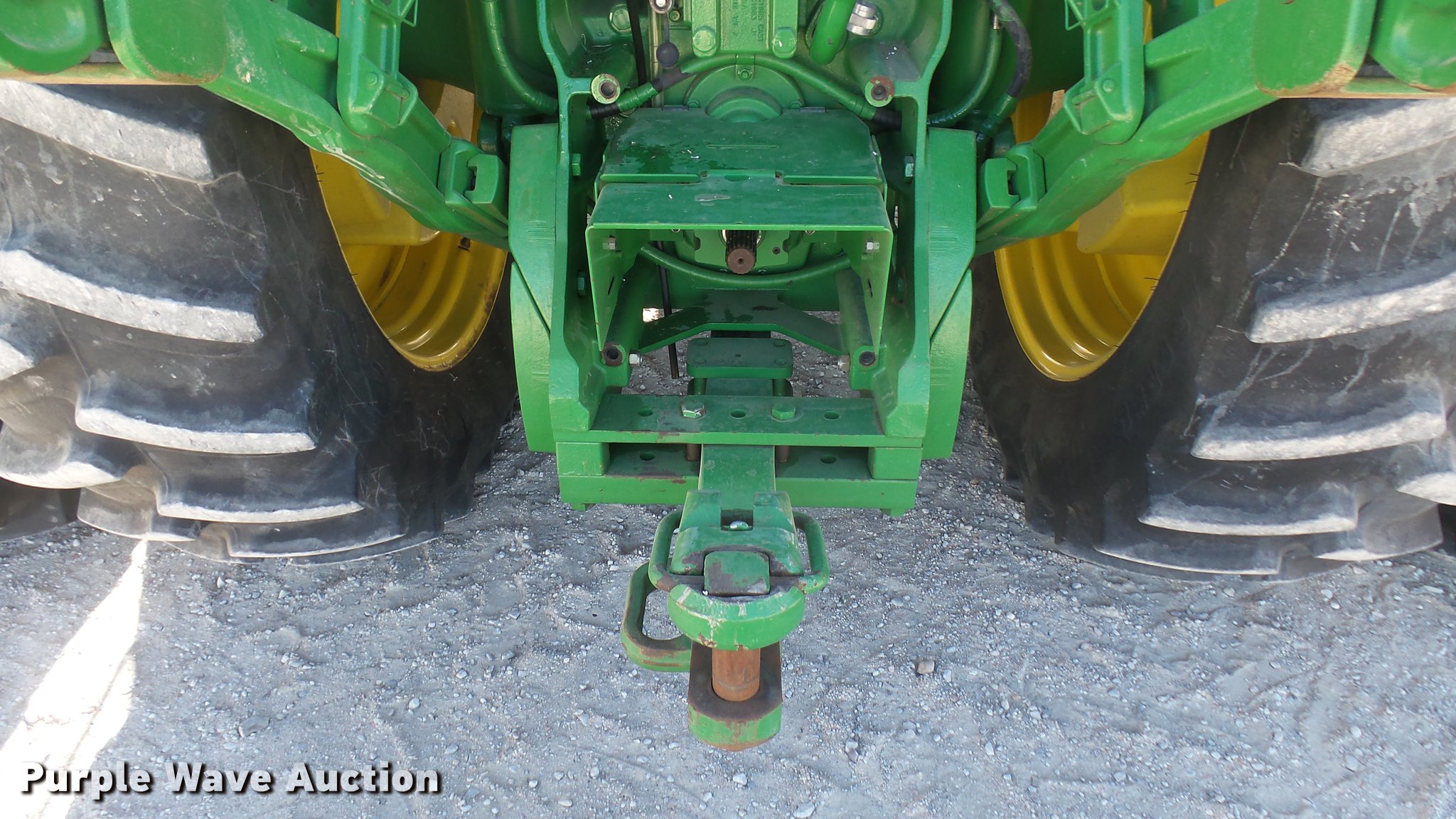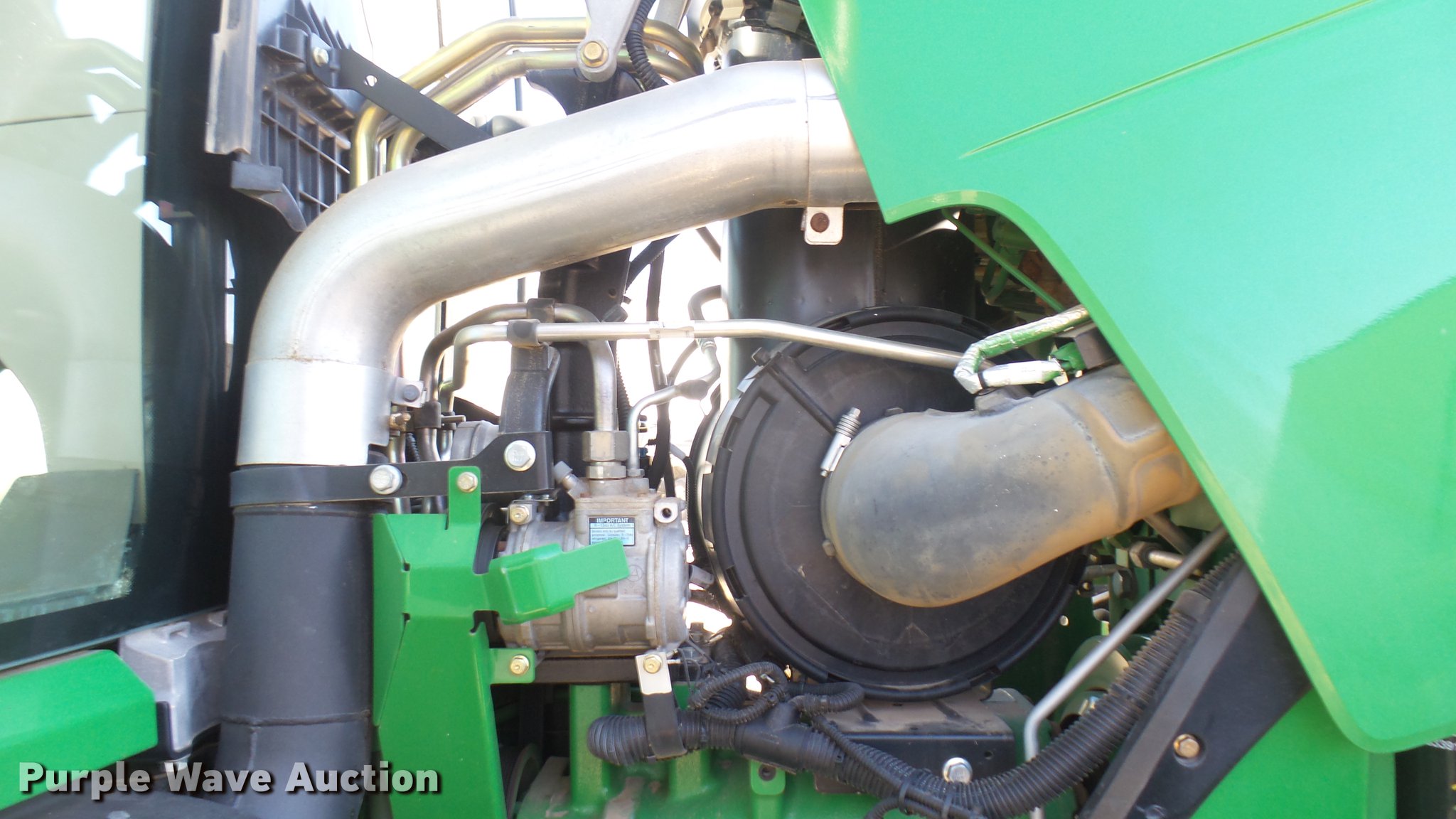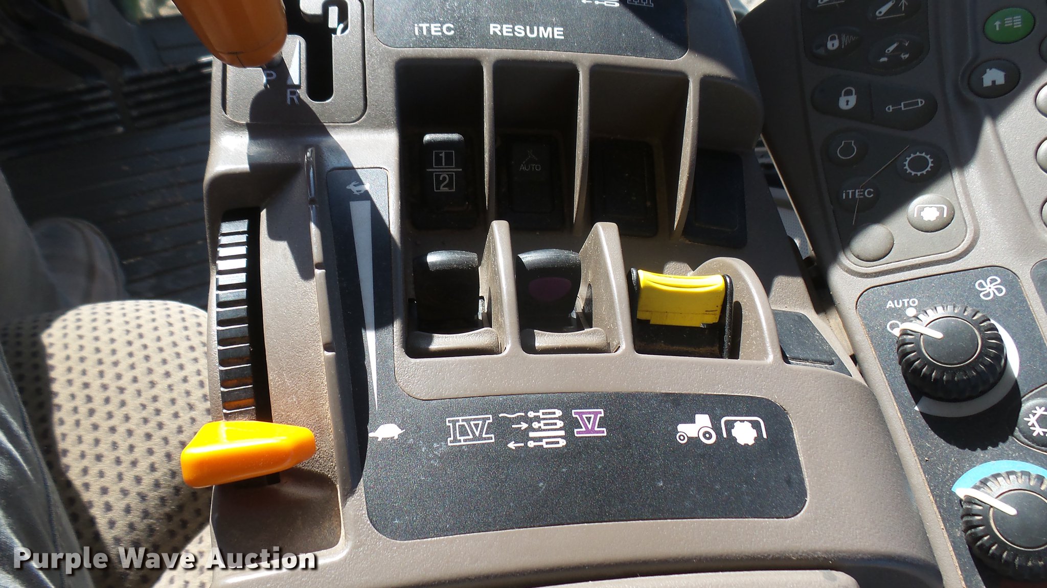Purple Wave is selling a used Tractor in Kansas. This item is a 2013 John Deere 8360R MFWD tractor with the following: 3,036 hours on meter, John Deere 6090RW414 9.0L six cylinder turbo diesel engine, Serial RG6090R051325, John Deere Auto Power IVT transmission, Strike differential lock, AC and heat, AM/FM/CD, Power mirrors, Air suspension seat, Instructor's seat, Tilt steering wheel, Shades, Block heater, Three point, Top link, Quick attach, Large 1000 PTO, Seven pin outlet, ISO electrical outlet, (5) rear hydraulic remote sets, Power beyond hydraulics, (22) suitcase weights, (5) wheel weights, Firestone 420/85R34 dual front tires, Firestone 480/80R50 dual rear tires, Manuals, Serial 1RW8360RTDD073589