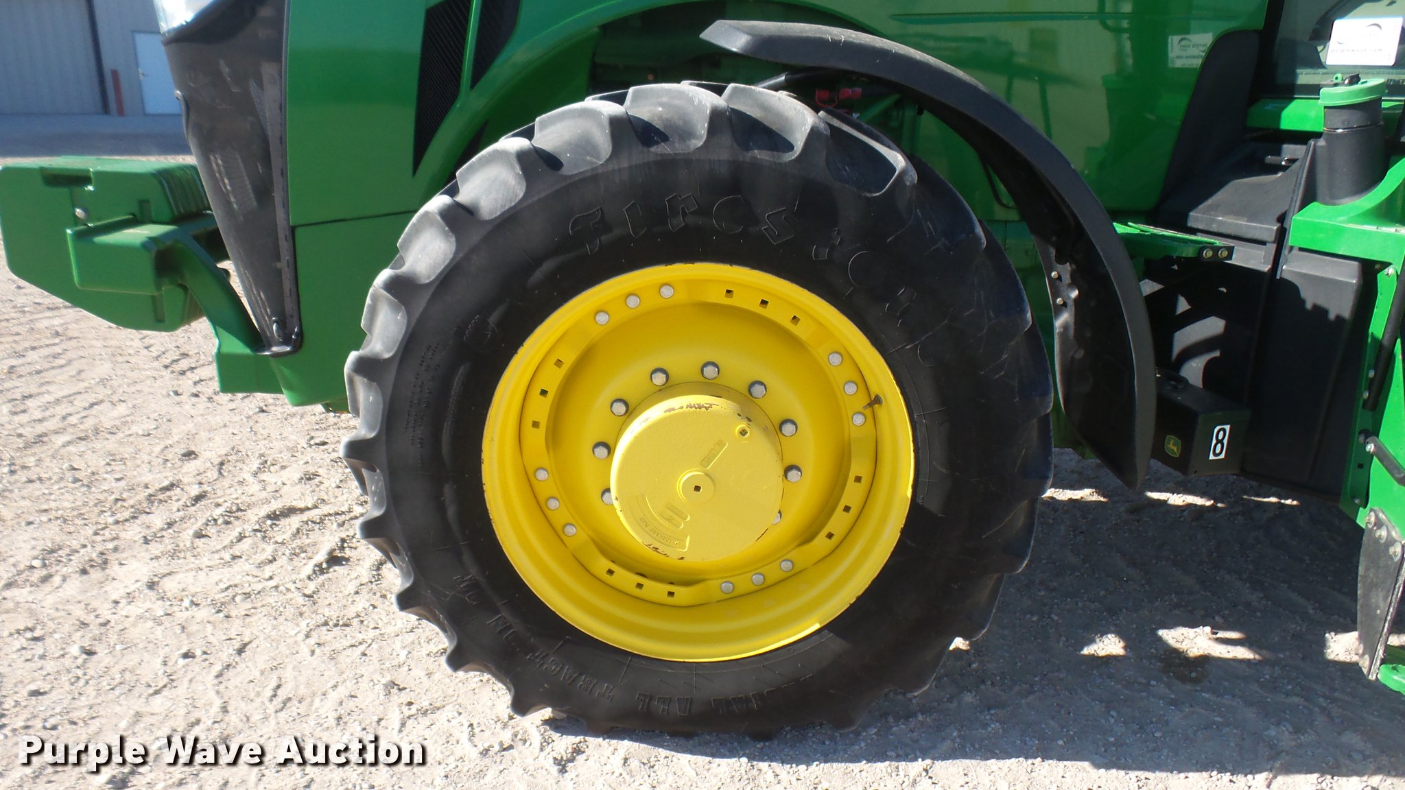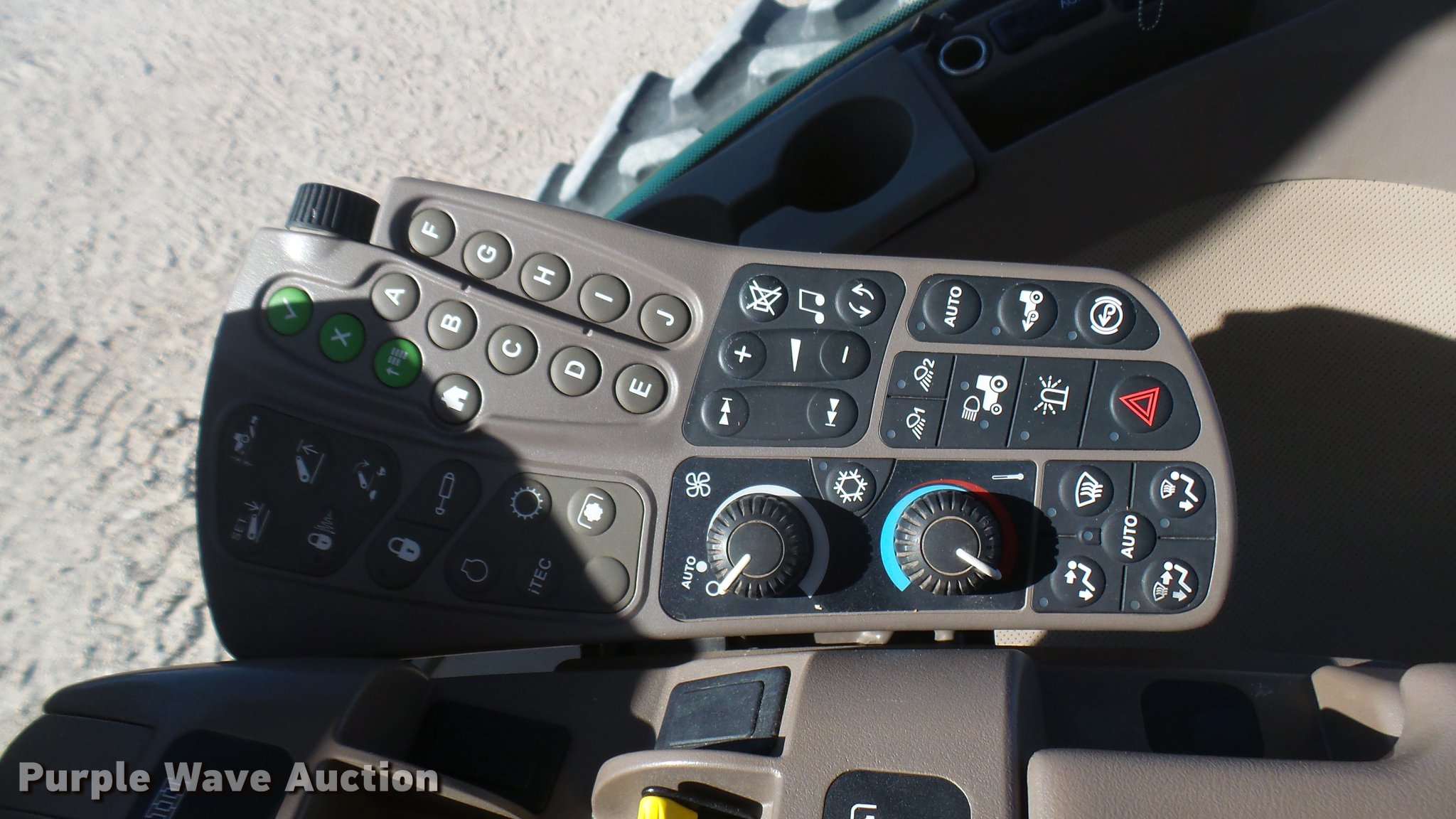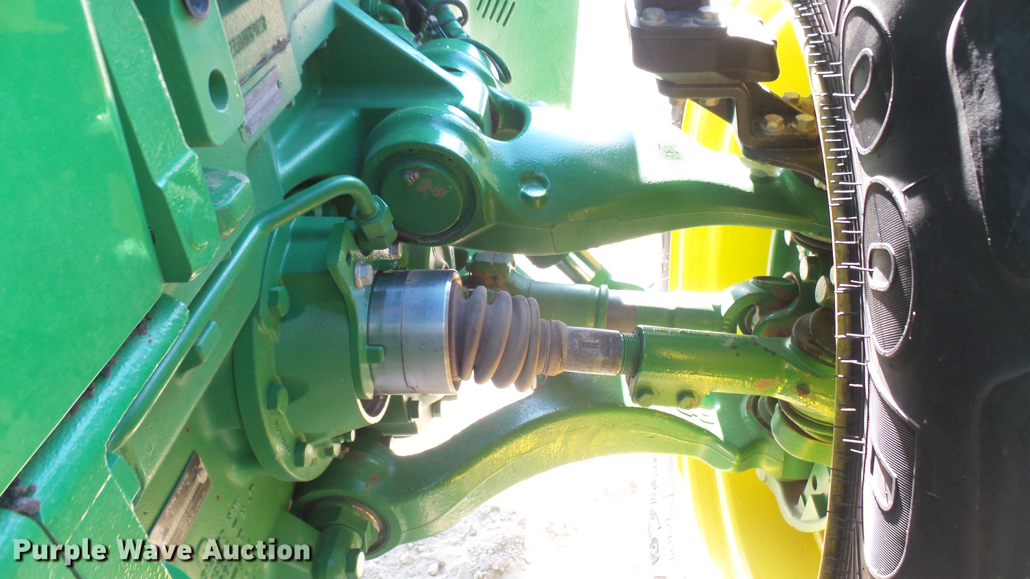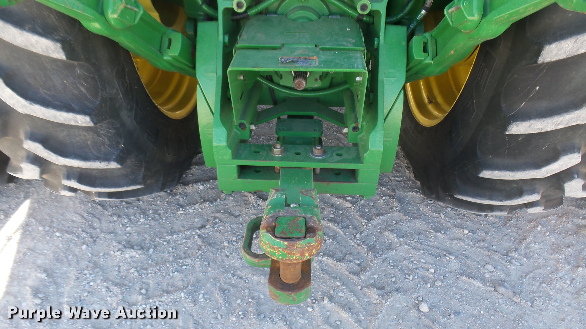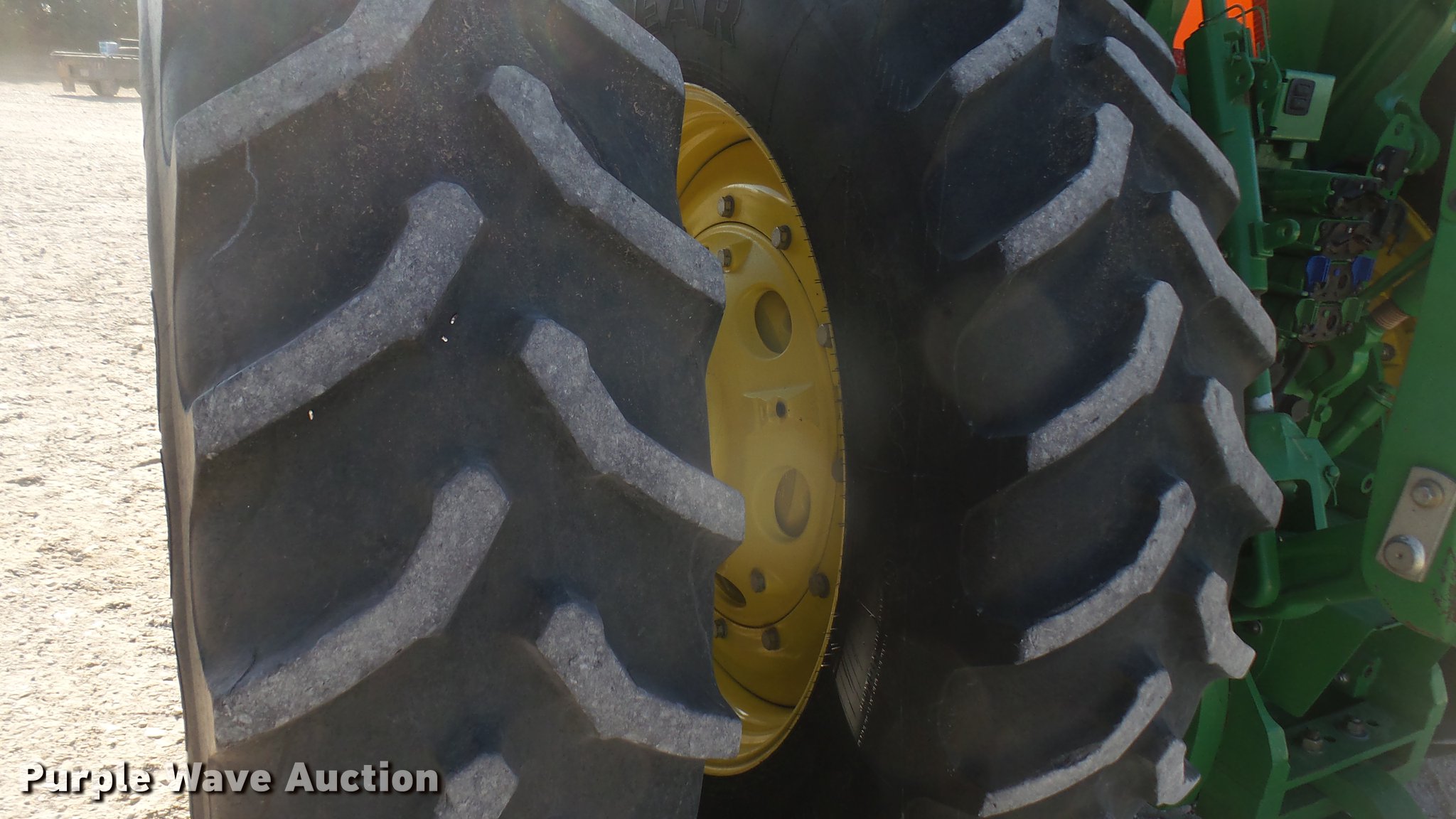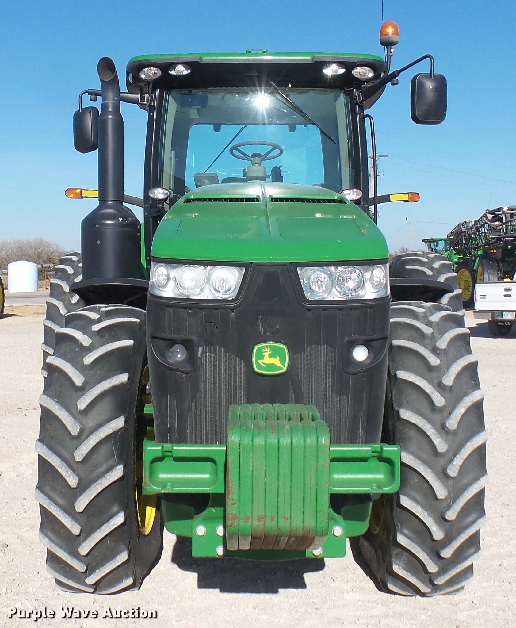 Purple Wave is selling a used Tractor in Kansas. This item is a 2013 John Deere 8235R MFWD tractor with the following: 2,267 hours on meter, John Deere 6090RW415 9.0L six cylinder turbo diesel engine, Serial RG6090R052548, John Deere Auto Power IVT transmission, Differential lock, AC and heat, Tilt steering wheel, AM/FM/CD, Power mirrors, Air suspension seat, Instructor's seat, Shades, GS3 Command Center 7" touchscreen color display, Three point, Top link, Quick attach, Large 1000 PTO, Seven pin outlet, ISO electrical outlet, (4) rear hydraulic remote sets, Power beyond hydraulics, (8) suitcase weights, (2) wheel weights, 420/85R34 front tires, 480/80R46 rear tires, Manuals, Serial 1RW8235RVDD074095