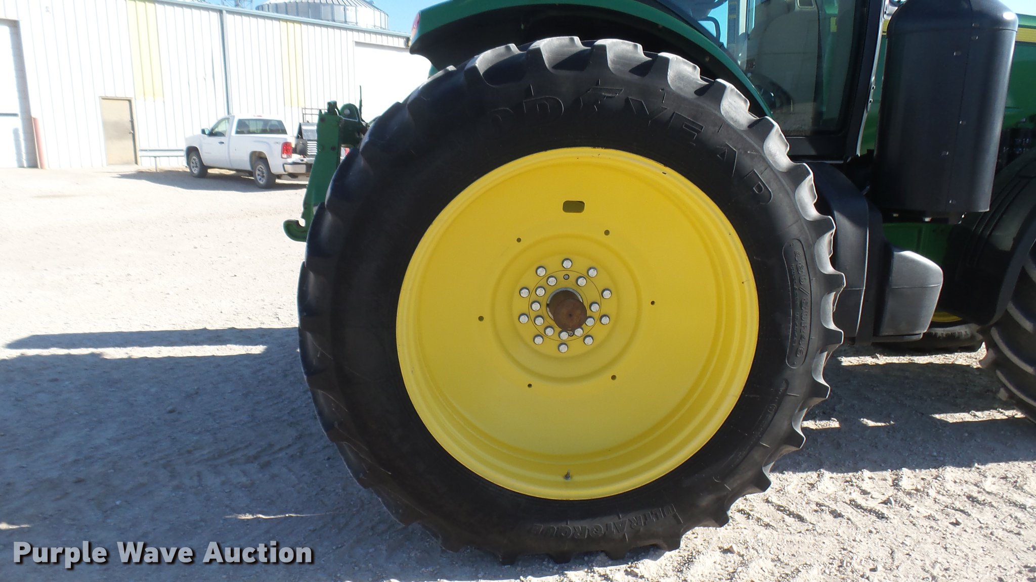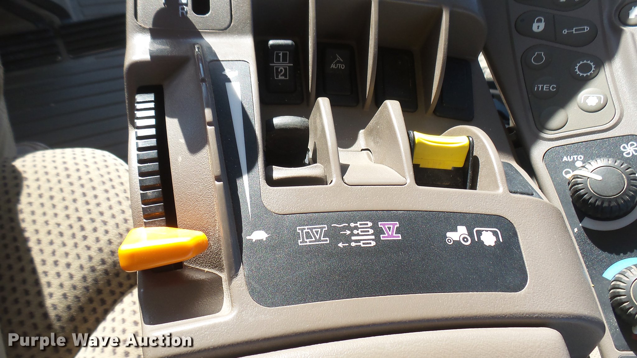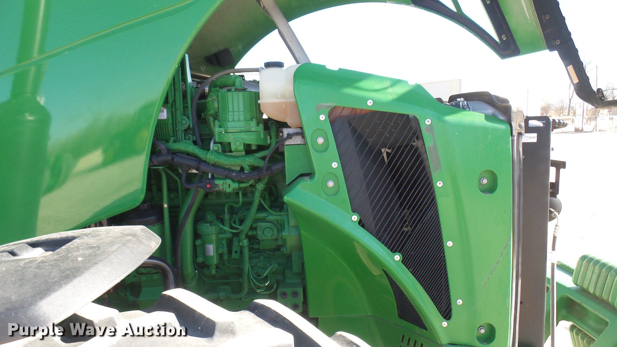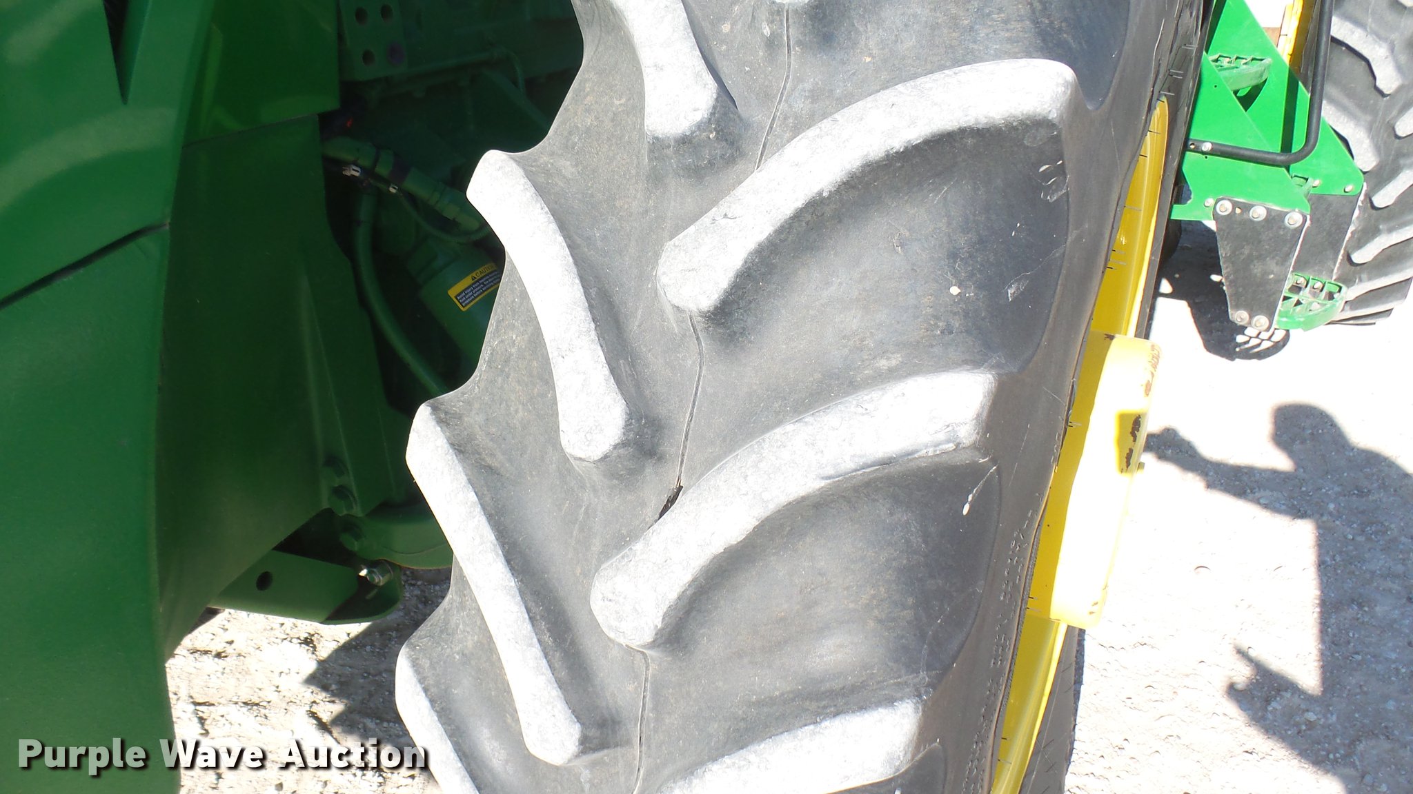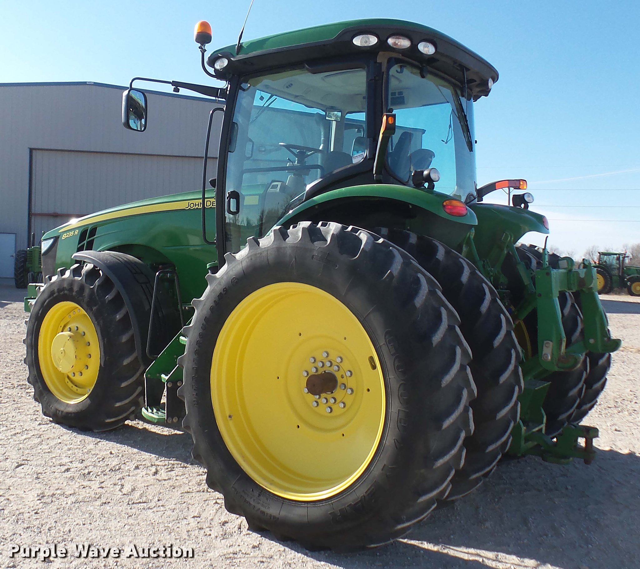 Purple Wave is selling a used Tractor in Kansas. This item is a 2013 John Deere 8235R MFWD tractor with the following: 2,267 hours on meter, John Deere 6090RW415 9.0L six cylinder turbo diesel engine, Serial RG6090R052548, John Deere Auto Power IVT transmission, Differential lock, AC and heat, Tilt steering wheel, AM/FM/CD, Power mirrors, Air suspension seat, Instructor's seat, Shades, GS3 Command Center 7" touchscreen color display, Three point, Top link, Quick attach, Large 1000 PTO, Seven pin outlet, ISO electrical outlet, (4) rear hydraulic remote sets, Power beyond hydraulics, (8) suitcase weights, (2) wheel weights, 420/85R34 front tires, 480/80R46 rear tires, Manuals, Serial 1RW8235RVDD074095