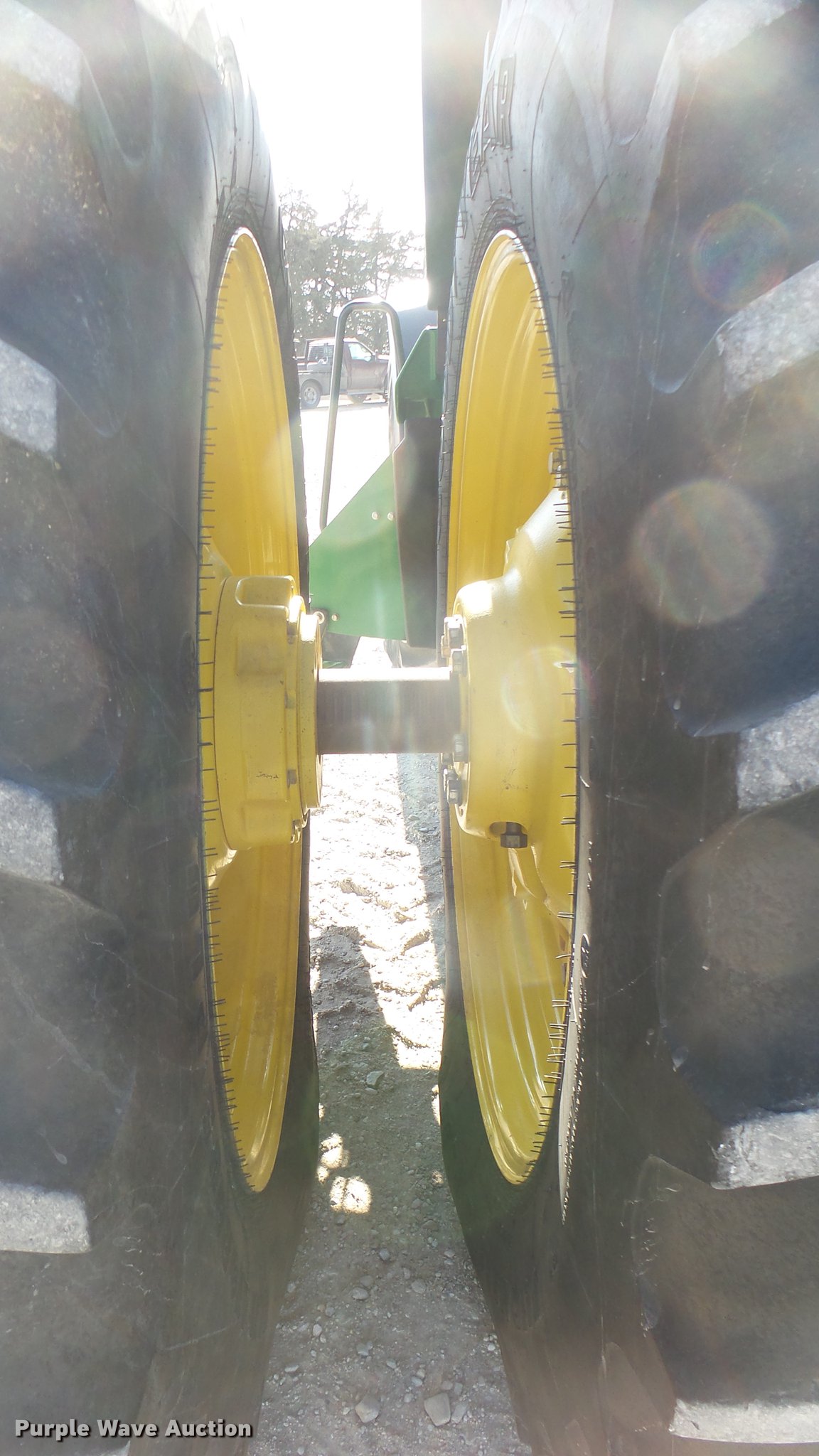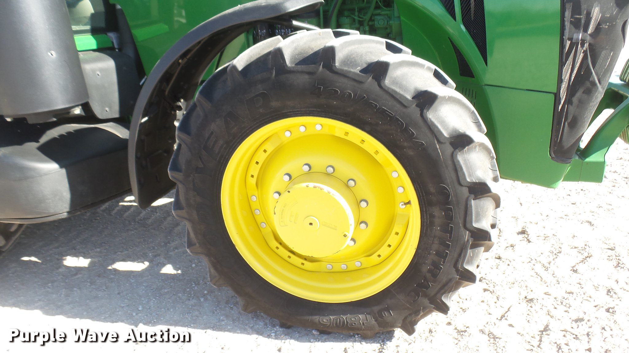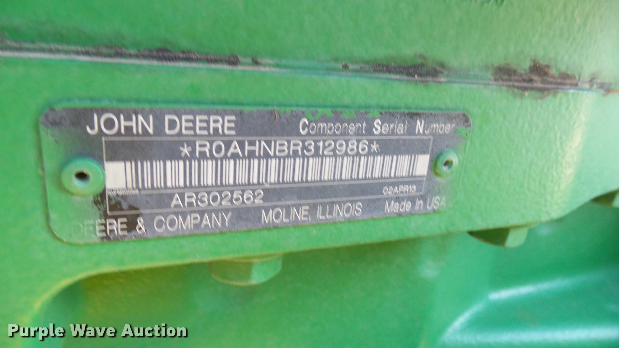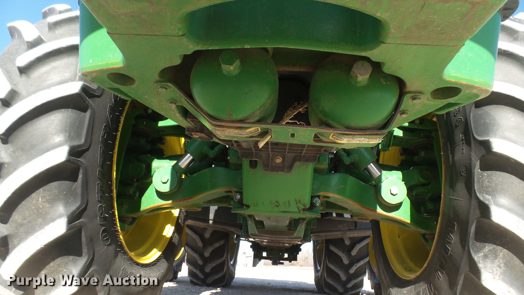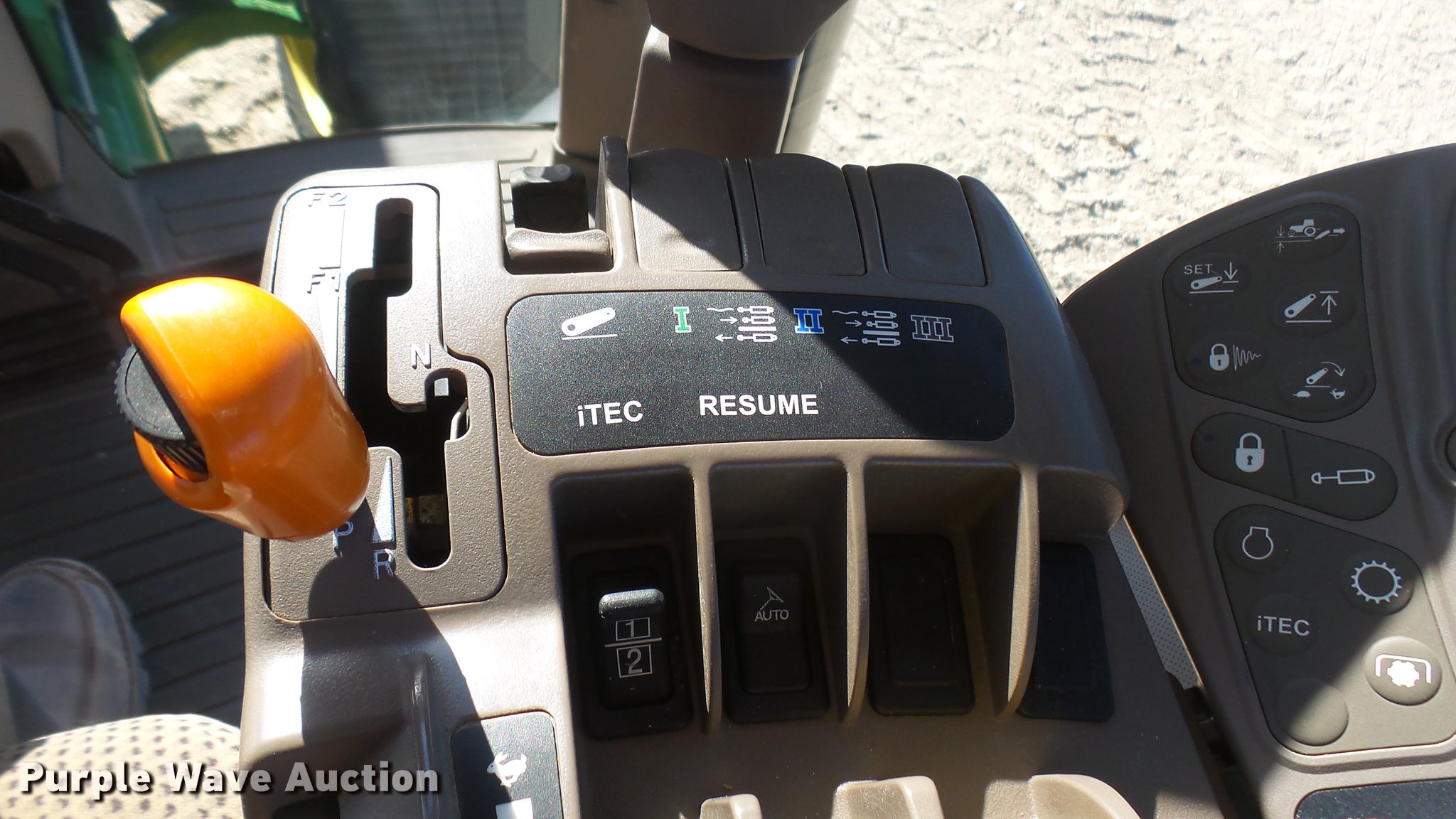 Purple Wave is selling a used Tractor in Kansas. This item is a 2013 John Deere 8235R MFWD tractor with the following: 2,267 hours on meter, John Deere 6090RW415 9.0L six cylinder turbo diesel engine, Serial RG6090R052548, John Deere Auto Power IVT transmission, Differential lock, AC and heat, Tilt steering wheel, AM/FM/CD, Power mirrors, Air suspension seat, Instructor's seat, Shades, GS3 Command Center 7" touchscreen color display, Three point, Top link, Quick attach, Large 1000 PTO, Seven pin outlet, ISO electrical outlet, (4) rear hydraulic remote sets, Power beyond hydraulics, (8) suitcase weights, (2) wheel weights, 420/85R34 front tires, 480/80R46 rear tires, Manuals, Serial 1RW8235RVDD074095