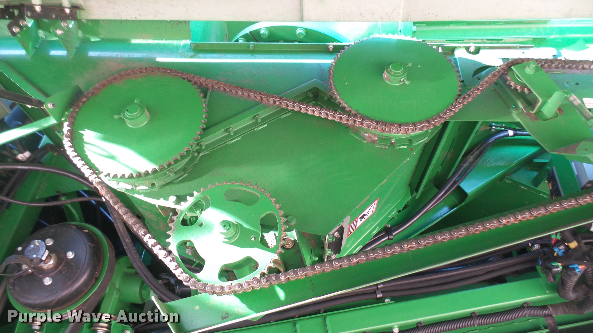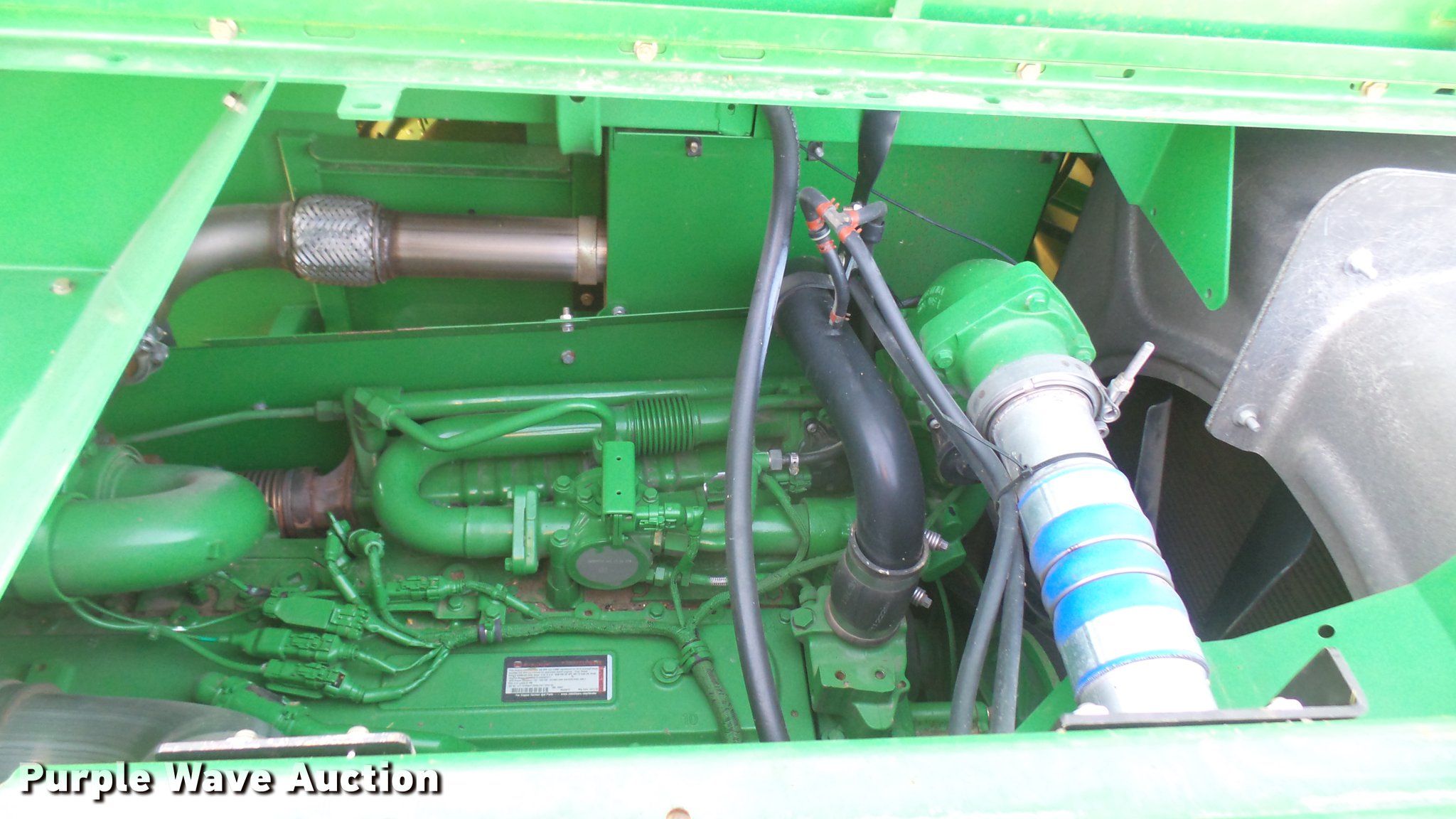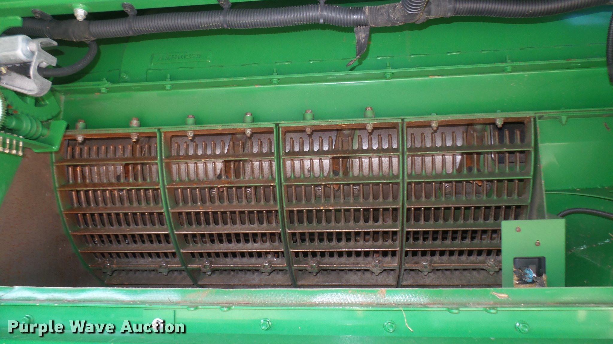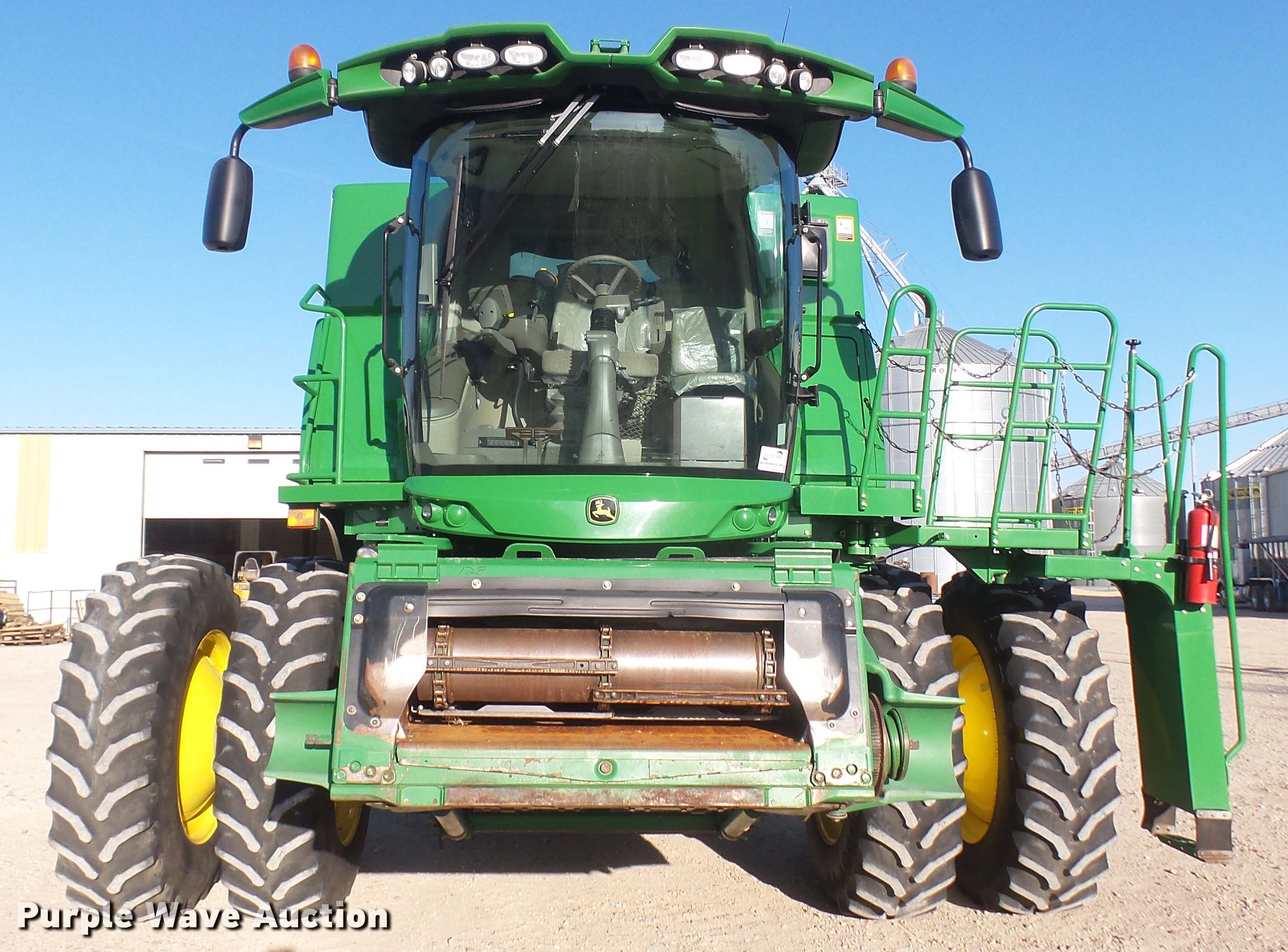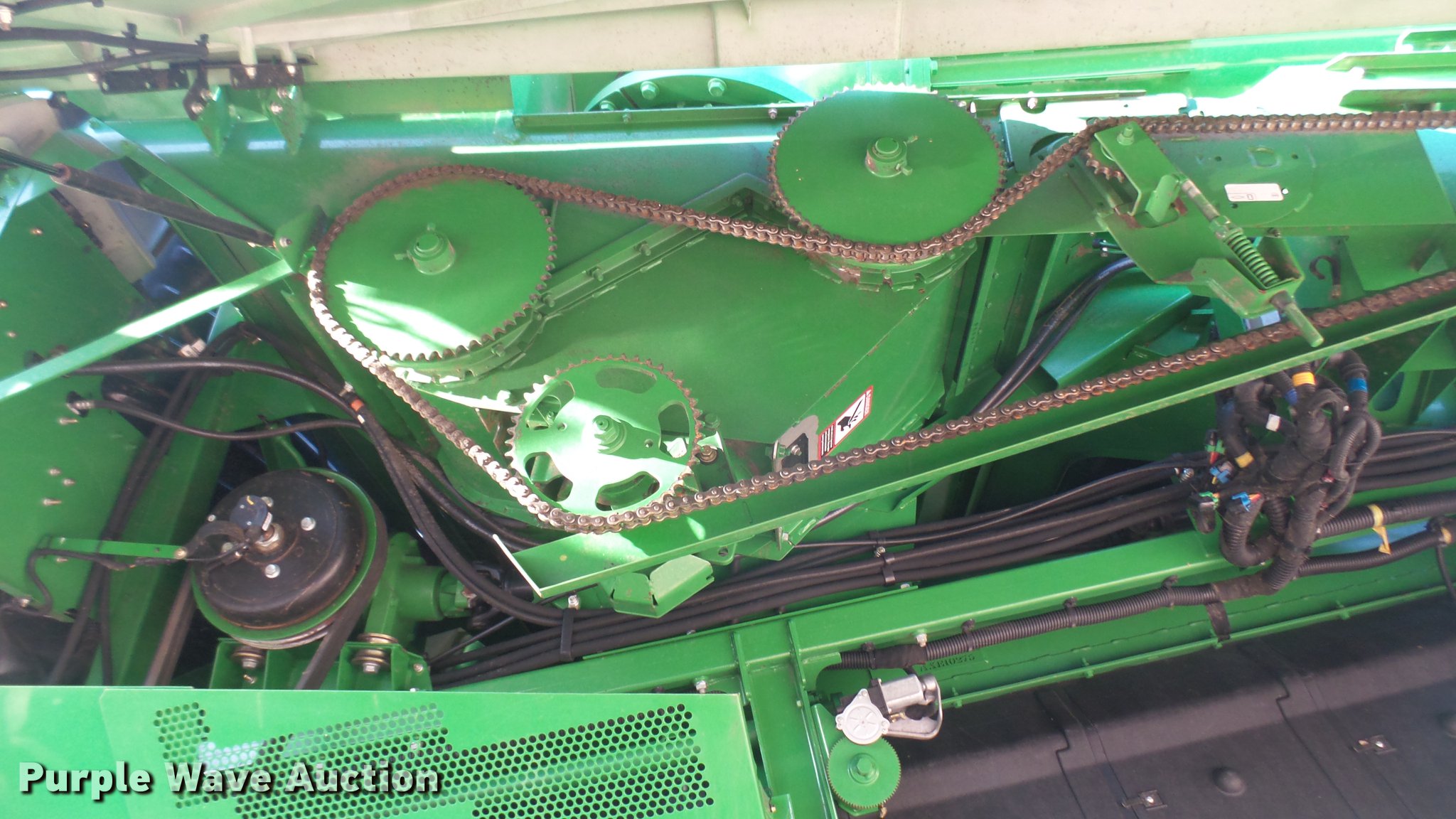 Purple Wave is selling a used Combine in Kansas. This item is a 2013 John Deere S670 STS combine with the following: 1,611 engine hours on meter, 1,217 separator hours on meter, John Deere 6090HH015 9.0L six cylinder turbo diesel engine, Serial RG6090R046510, Push-button shift transmission, 3F-1R gears, Feederhouse, Lateral tilt, Variable speed, Reverser, Single point header coupler, Custom cutter extended wear package, AC and heat, Tilt steering wheel, AM/FM/CD, Power and heated mirrors, Air suspension seat, AutoTrac ready with harvest monitor, Contour Master auto header height, GS3 Command Center 7" touchscreen color display, Shades, Work lights, Small wire concaves with every other wire removed, Straw chopper, Manual folding bin extensions, 26'L unloading auger, GreenStar ready, Goodyear 520/85R42 dual front tires, Goodyear 600/65R28 rear tires, Serial 1H0S670STD0756333, Unit# 1