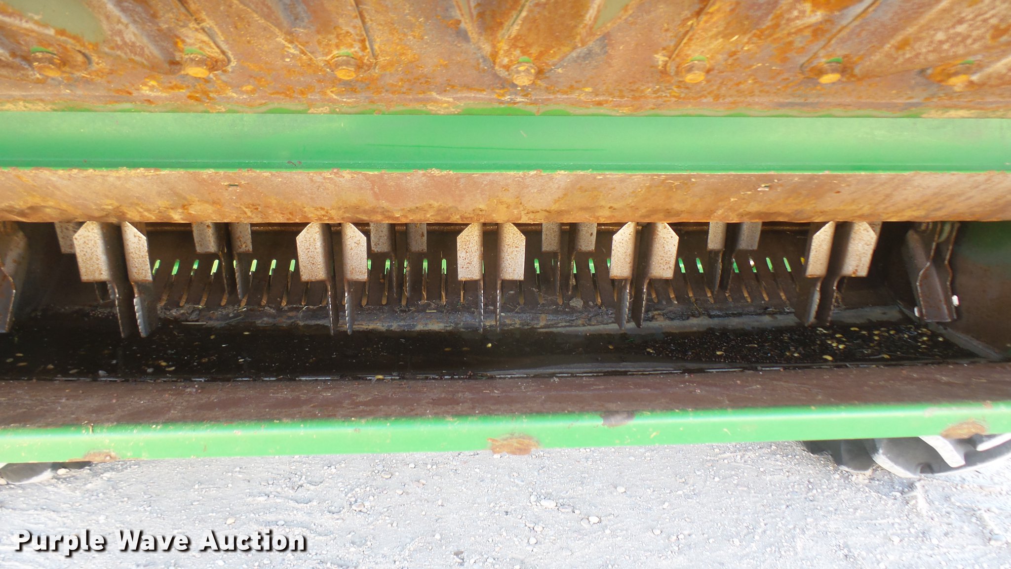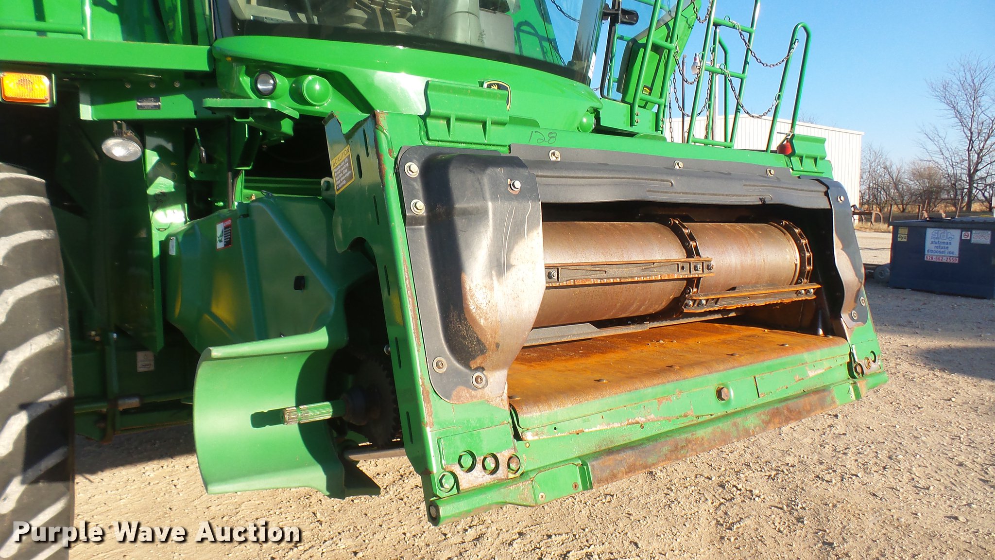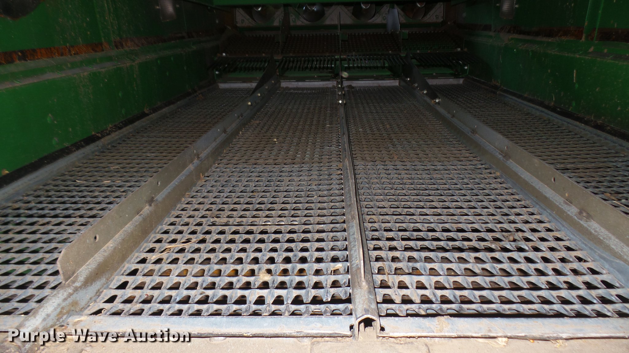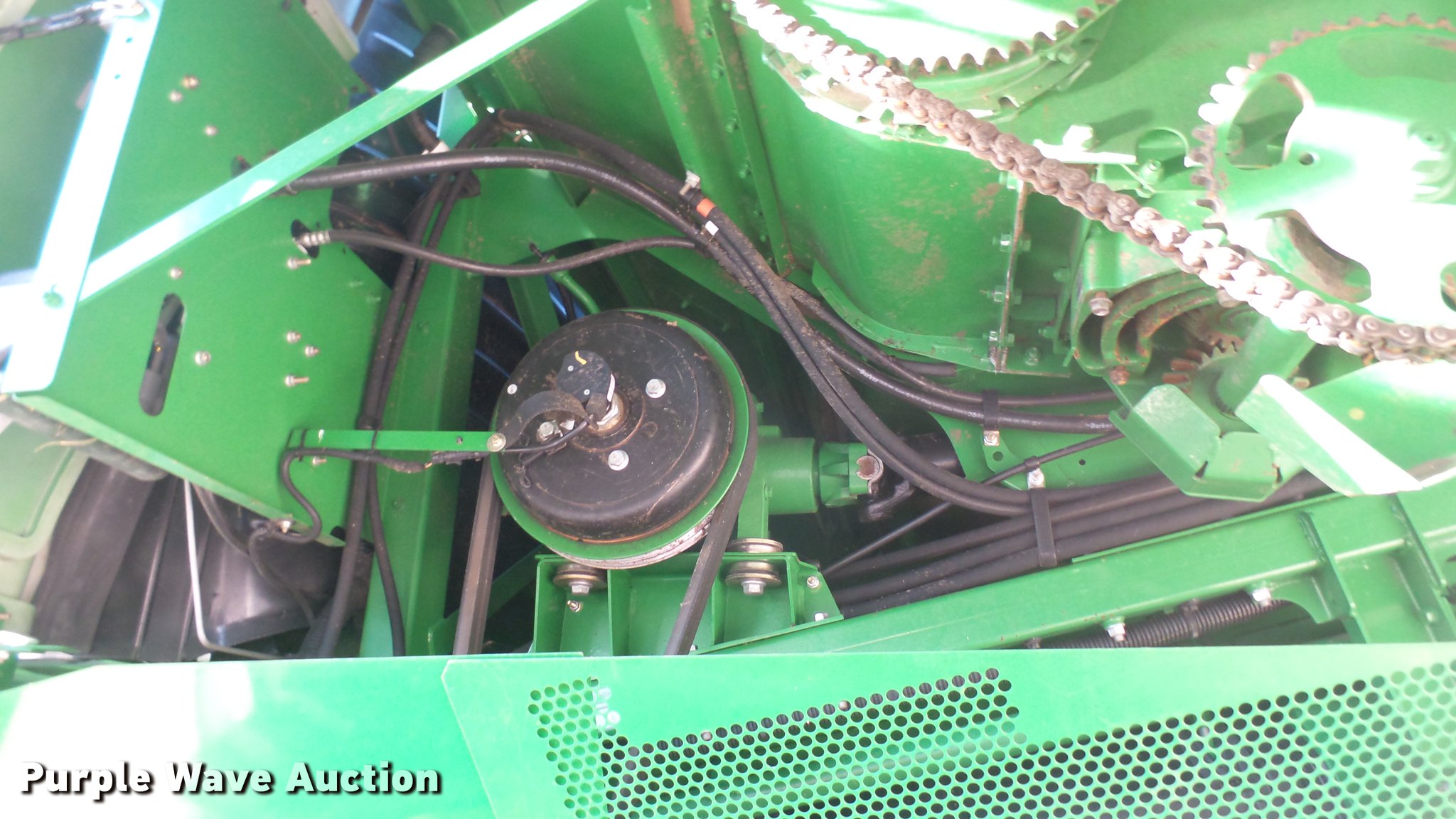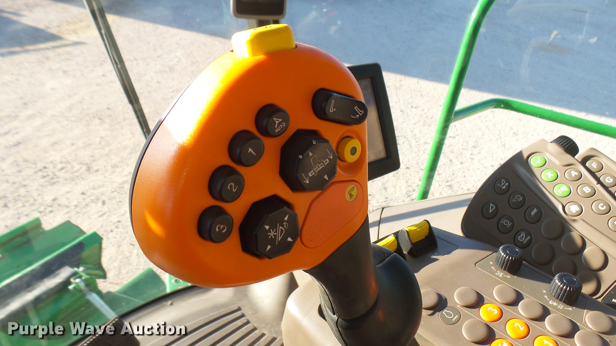 Purple Wave is selling a used Combine in Kansas. This item is a 2013 John Deere S670 STS combine with the following: 1,611 engine hours on meter, 1,217 separator hours on meter, John Deere 6090HH015 9.0L six cylinder turbo diesel engine, Serial RG6090R046510, Push-button shift transmission, 3F-1R gears, Feederhouse, Lateral tilt, Variable speed, Reverser, Single point header coupler, Custom cutter extended wear package, AC and heat, Tilt steering wheel, AM/FM/CD, Power and heated mirrors, Air suspension seat, AutoTrac ready with harvest monitor, Contour Master auto header height, GS3 Command Center 7" touchscreen color display, Shades, Work lights, Small wire concaves with every other wire removed, Straw chopper, Manual folding bin extensions, 26'L unloading auger, GreenStar ready, Goodyear 520/85R42 dual front tires, Goodyear 600/65R28 rear tires, Serial 1H0S670STD0756333, Unit# 1