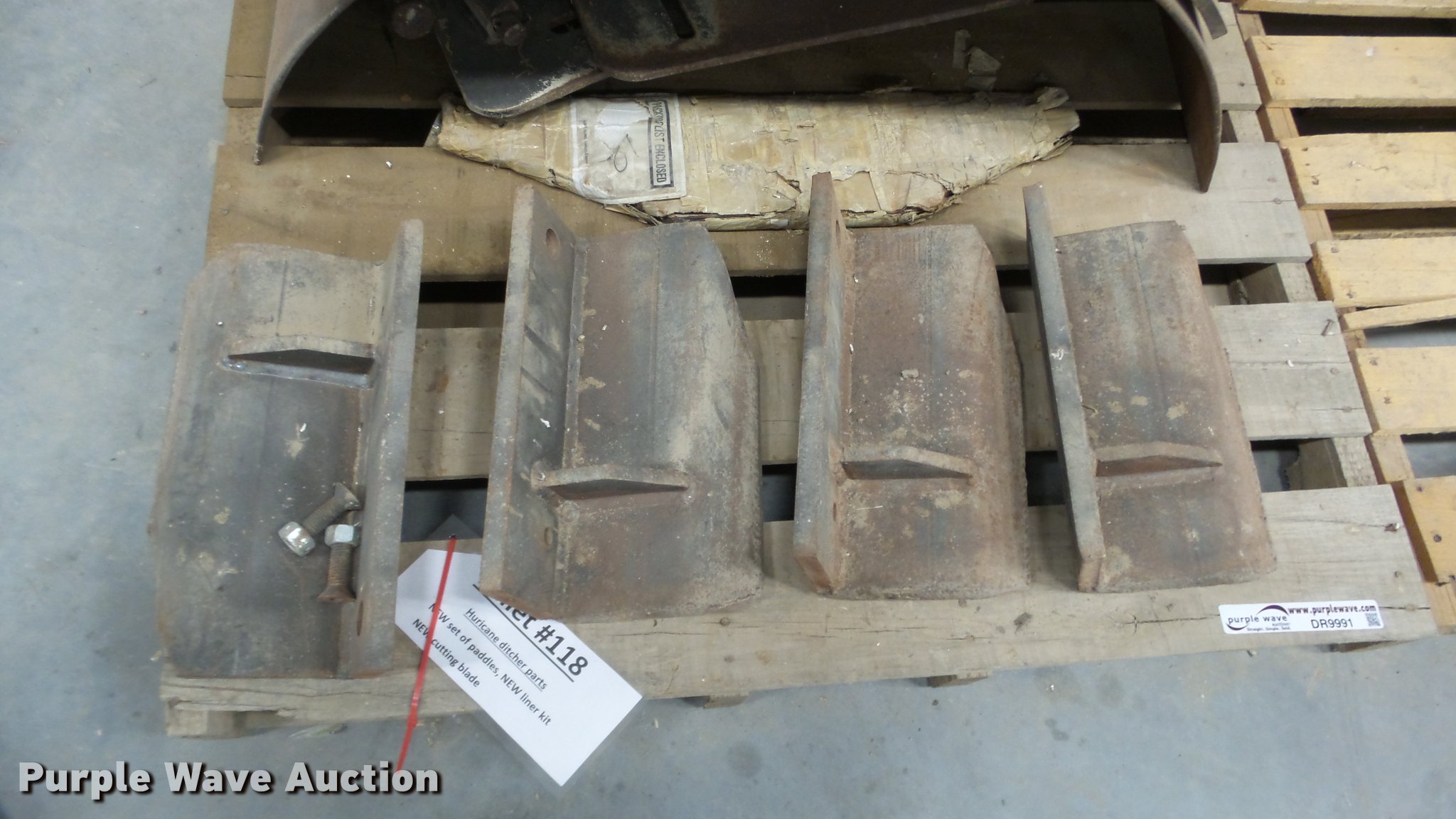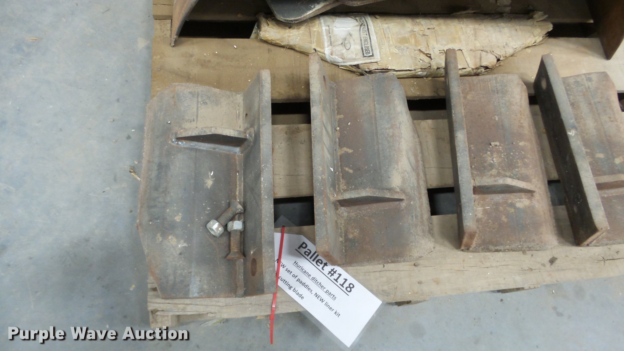 Purple Wave is selling a used Tillage Other in Kansas. This item is a Hurricane ditcher parts with the following: Paddle set, Liner kit, Cutting blade, Unused