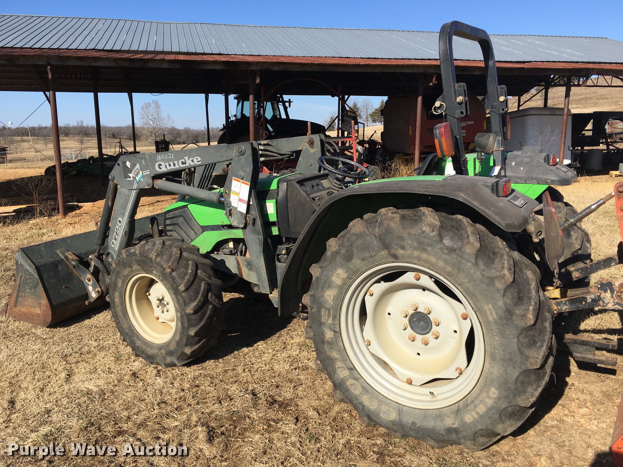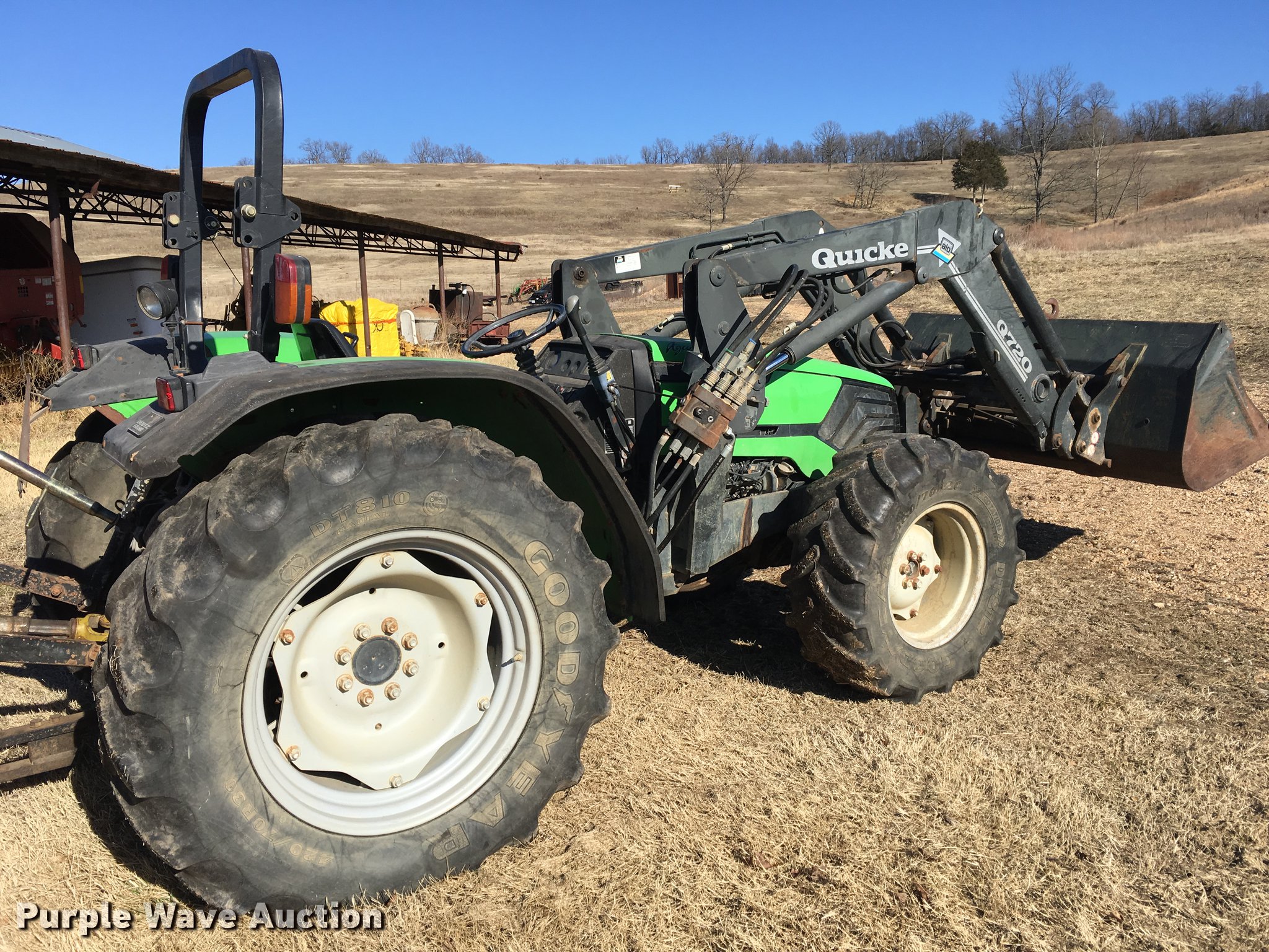 Purple Wave is selling a used Tractor in Arkansas. This item is a 2001 Deutz Fahr Agrolux 70 MFWD tractor with the following: 2,966 hours on meter, Deutz 4.1L four cylinder diesel engine, 70 HP, Synchro split tranmsission, 20F-10R gears, Quicke Q720 loader, 6'W bucket, Euro style quick attach, Three point, Econo 540 PTO, Draw bar, (3) rear hydraulic remotes, 360/70R20 front tires, 420/70R30 rear tires, Serial 15010021