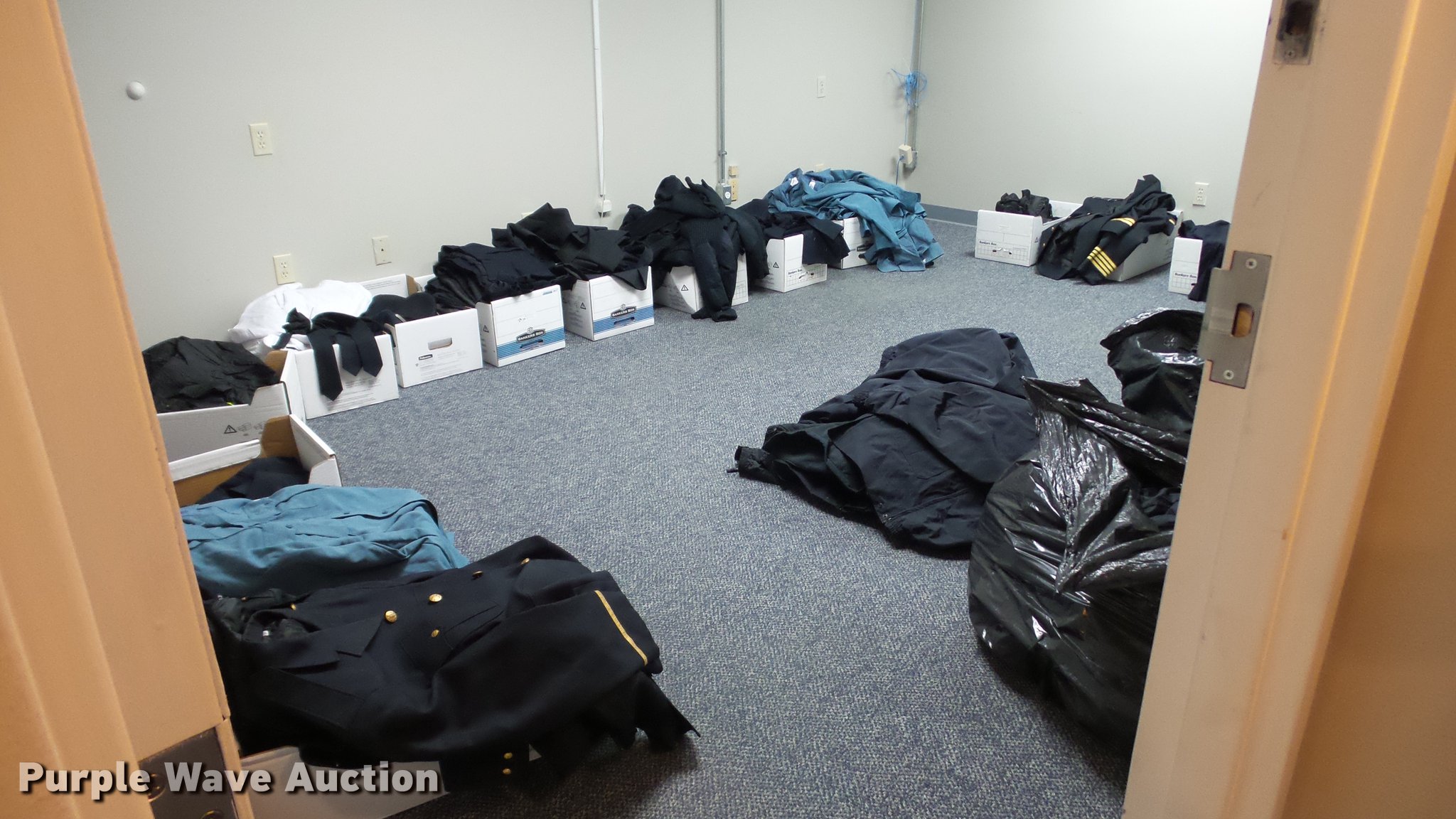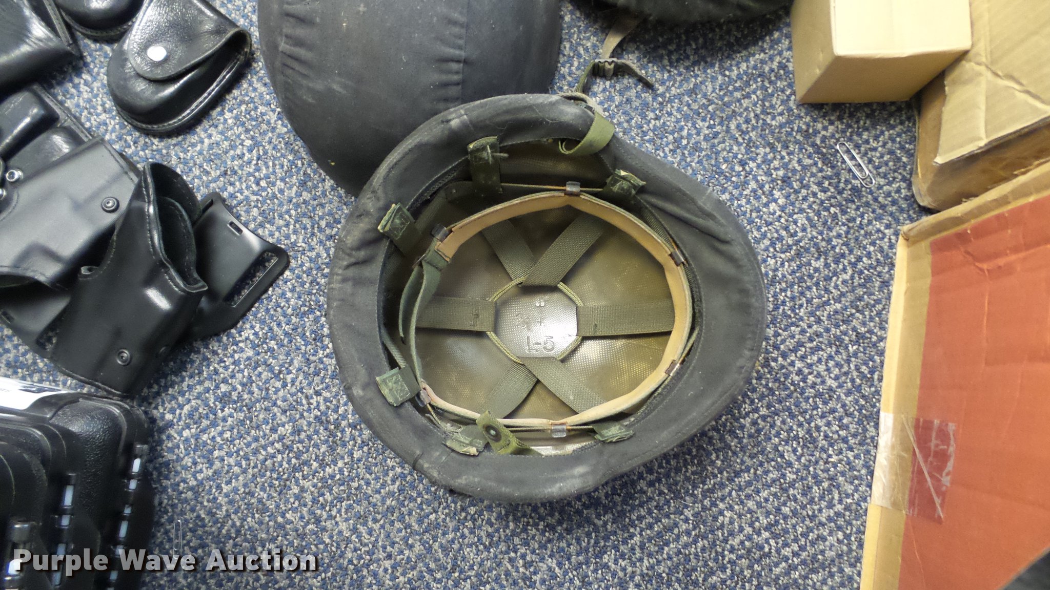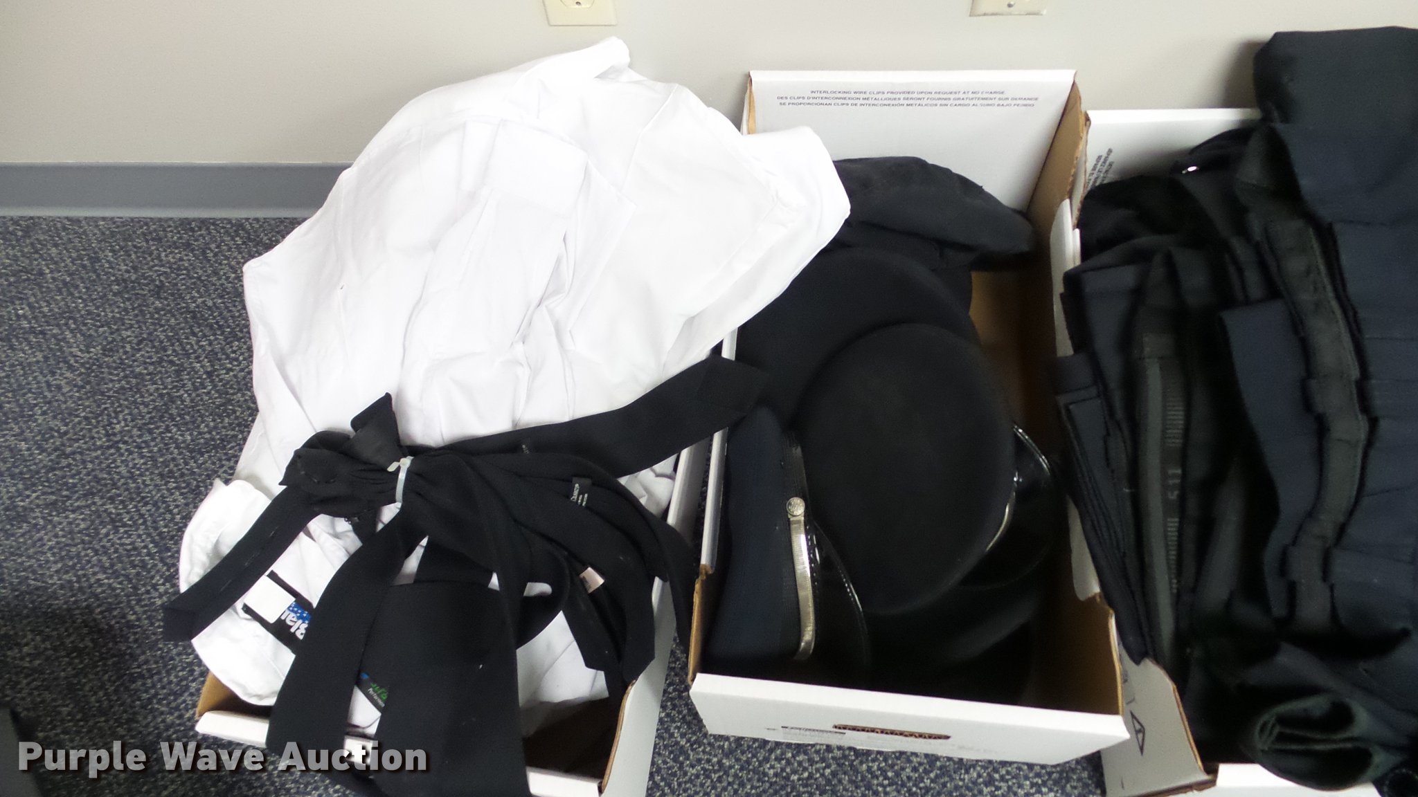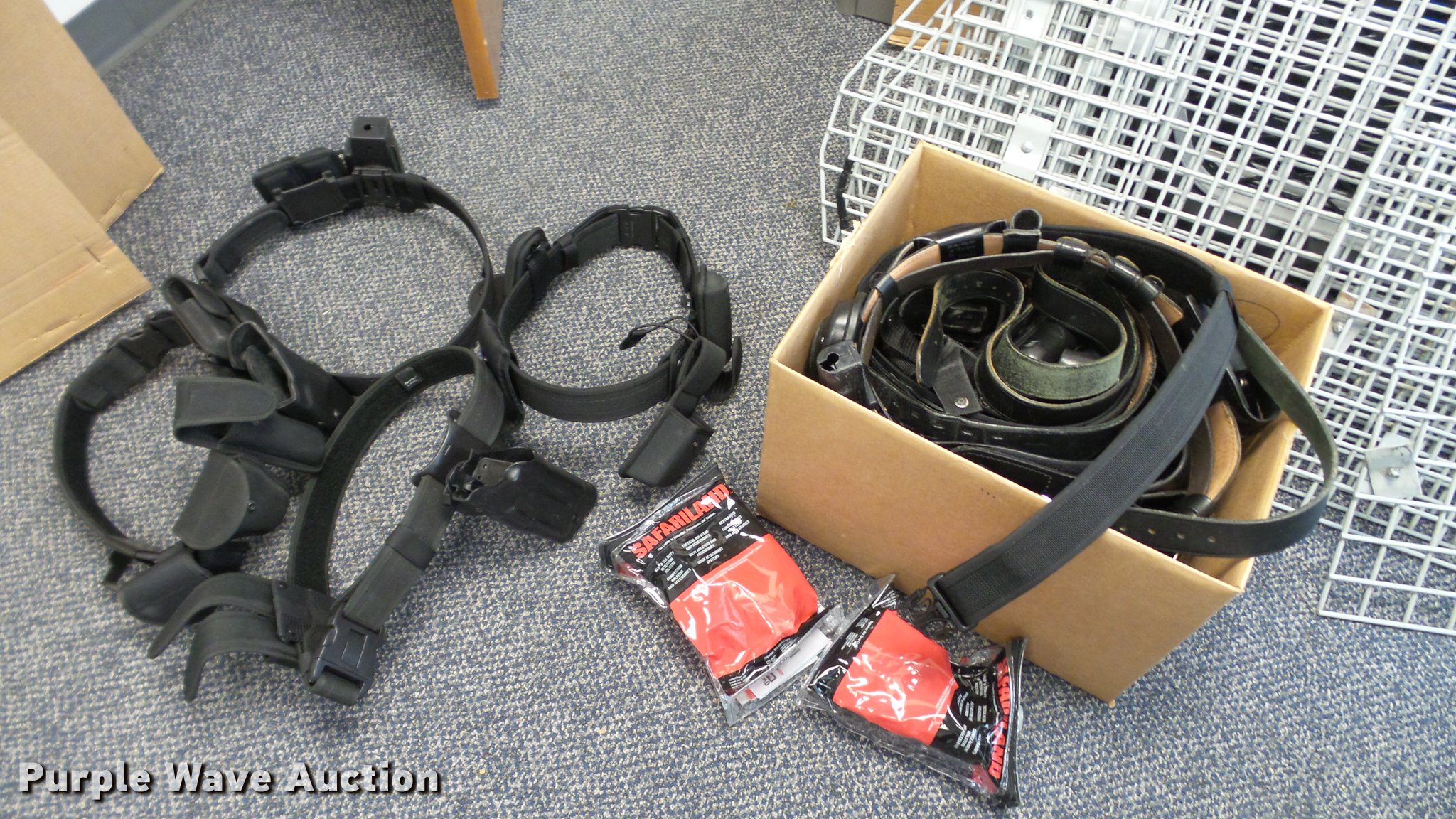 Purple Wave is selling a used All Other Household Items in Missouri. This item is a Police equipment with the following: (4) police vehicle prisoner cages, Metal car slide-out trays, Gun storage locks, Motorola radios, Chargers, Office supplies, (8) gun cases, Gun belts, Gun holsters, Magazine holsters, Handcuff holsters, (4) emergency light bars, Emergency weather siren activator control box, Whelen central alarm control station, (8) Code 3 light bars, Clothing, Night vision binoculars, Carbine handguards, Approx. 14 dress jackets, Approx. 47 uniform shirts, Approx. 7 dress pants, Approx. 11 work shoes, Approx. 3 dress tall boots, Approx. 48 uniform pants, Approx. 16 double lined winter coats, Approx. 13 sweaters, Approx. 6 dress caps, Approx. 7 dress ties, Approx. 12 dress shirts, Approx. 5 helmets