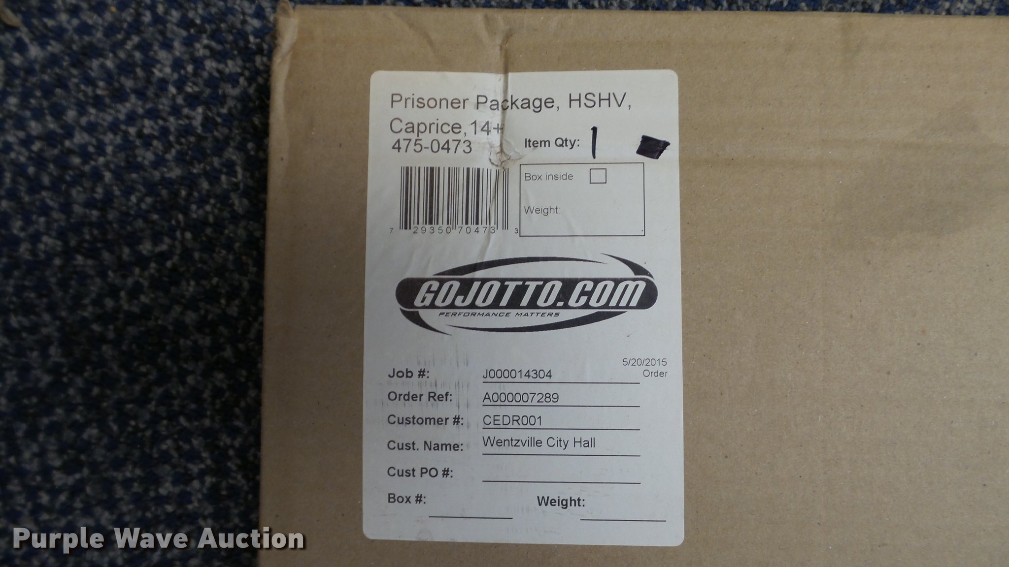 Police equipment. (4) police vehicle prisoner cages, Metal car slide-out trays, Gun storage locks, Motorola radios Chargers, Office supplies, (8) gun cases, Gun belts, Gun holsters, Magazine holsters, Handcuff holsters, (4) emergency light bars, Emergency weather siren activator control box, Whelen central alarm control station, (8) Code 3 light bars, Clothing, Night vision binoculars, Carbine handguards, Approx. 14 dress jackets, Approx. 47 uniform shirts, Approx. 7 dress pants, Approx. 11 work shoes, Approx. 3 dress tall boots, Approx. 48 uniform pants, Approx. 16 double lined winter coats, Approx. 13 sweaters, Approx. 6 dress caps, Approx. 7 dress ties, Approx. 12 dress shirts, Approx. 5 helmets. City of Wentzville. Wentzville, MO 63385