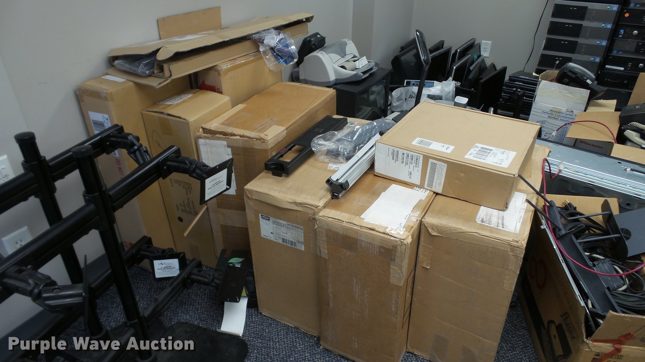 Purple Wave is selling a used Electronics in Missouri. This item is a Electronics with the following: CPUs, Laptops, Monitors, HP DesignJet 1050c printer, Printers, Fax machine, Phones, Calculators, Computer cases, Security cameras, Keyboards, Mice, Laptop docking stations, Monitor wall mounts, AM/FM, Cassette player, Assorted power cables, Server rack, Motorola radio control box with filters, Spool of cable, Battery backups, Minolta microfilm reader, Hard drives have been removed, Unknown operating conditions