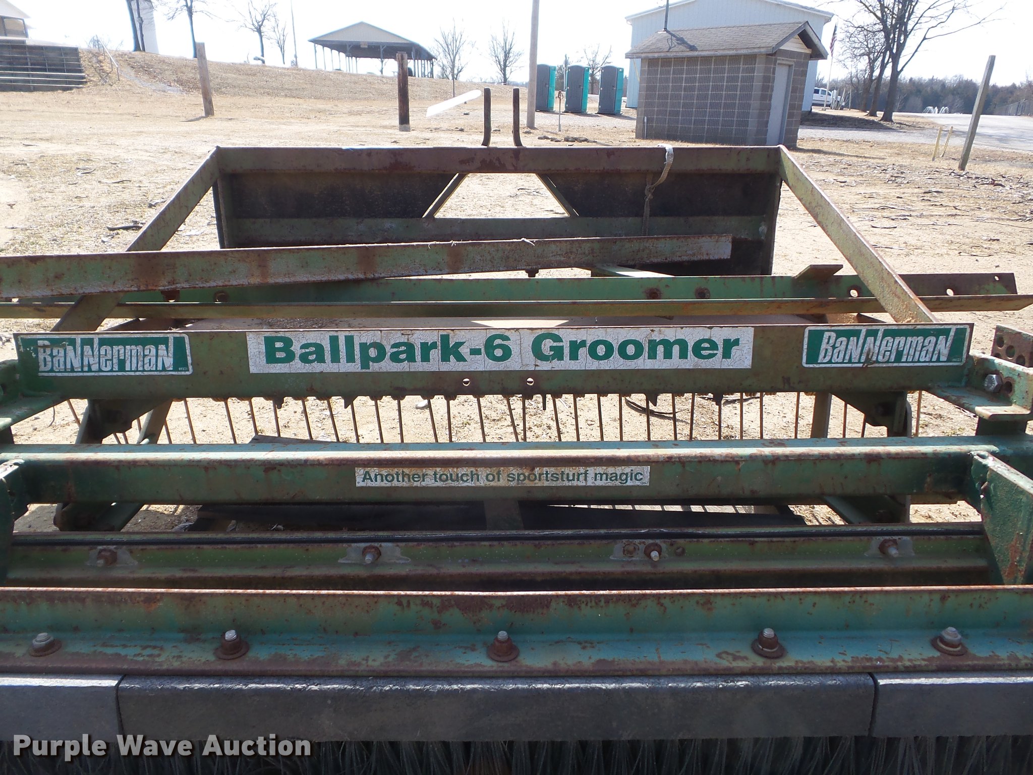 Purple Wave is selling a used Lawn and Garden in Missouri. This item is a Lawn and garden equipment with the following: Bannerman Ballpark-6 groomer, 6'W roller, 8'W brush, Three point, Greens Worldwide groomer, 6'W, Bristled brushes, 12V actuator raises/lowers axle for transport, Pin hitch, 16x6.50-8 tires, Ariens 895803 lawn sweeper, 36" sweeping width, 17 cu. ft. capacity, Pin hitch, Brushes damaged, Serial 001195, Fieldmaster infield groomer, 6'W, Three point