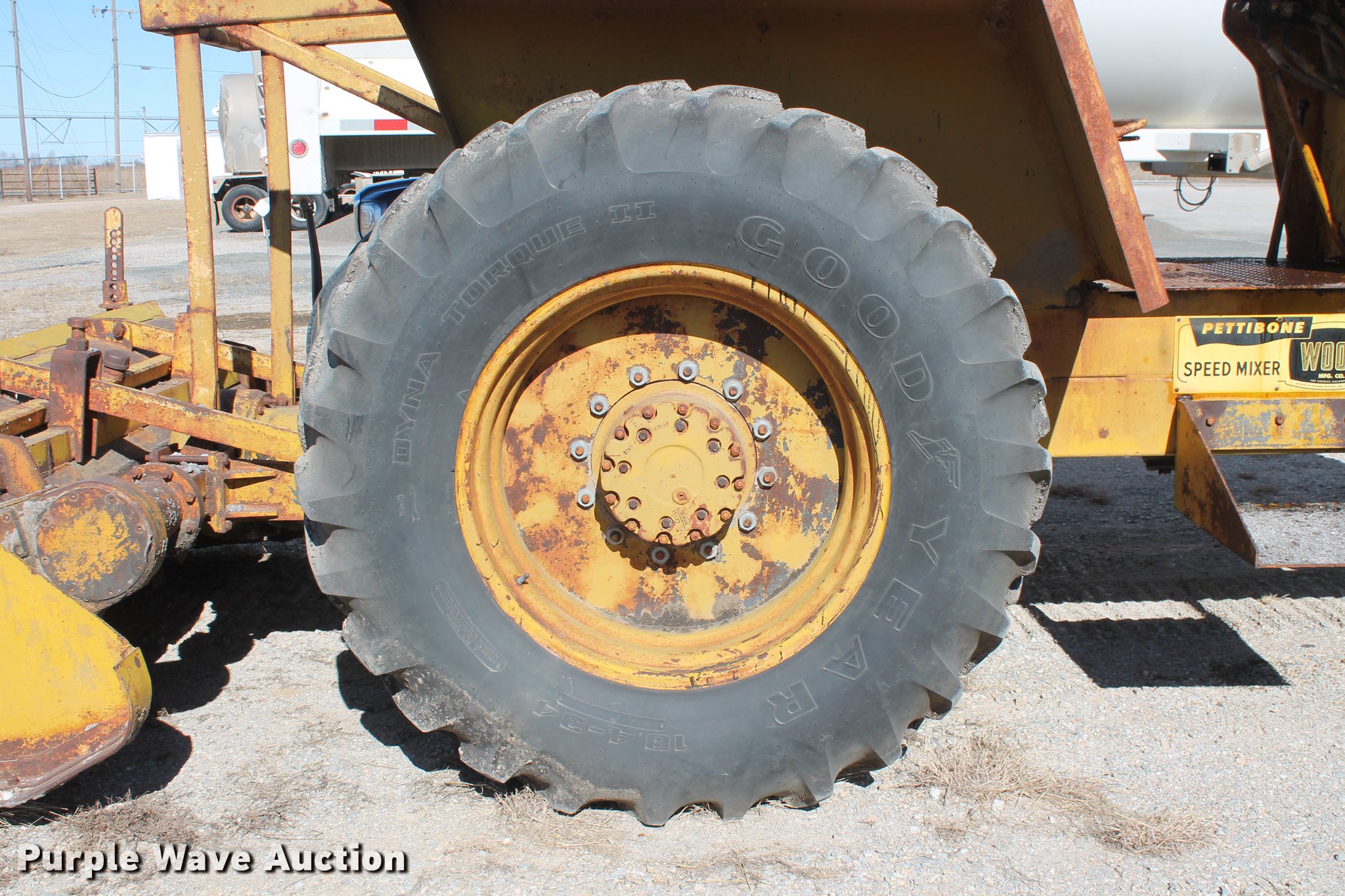Pettibone SM-710B speed mixer. 1,514 hours on meter, Detroit Diesel 4057-E four cylinder diesel engine Serial 4A-124744, Hydrostatic transmission, Canopy, 76"W cutting capacity, Hydraulic operation, 9.00-24 front tires, 18.4R34 rear tires, Serial 3198, Unit# 304-004. Garvin County District 3. 50270 E County Road 1520. Stratford, OK 74872