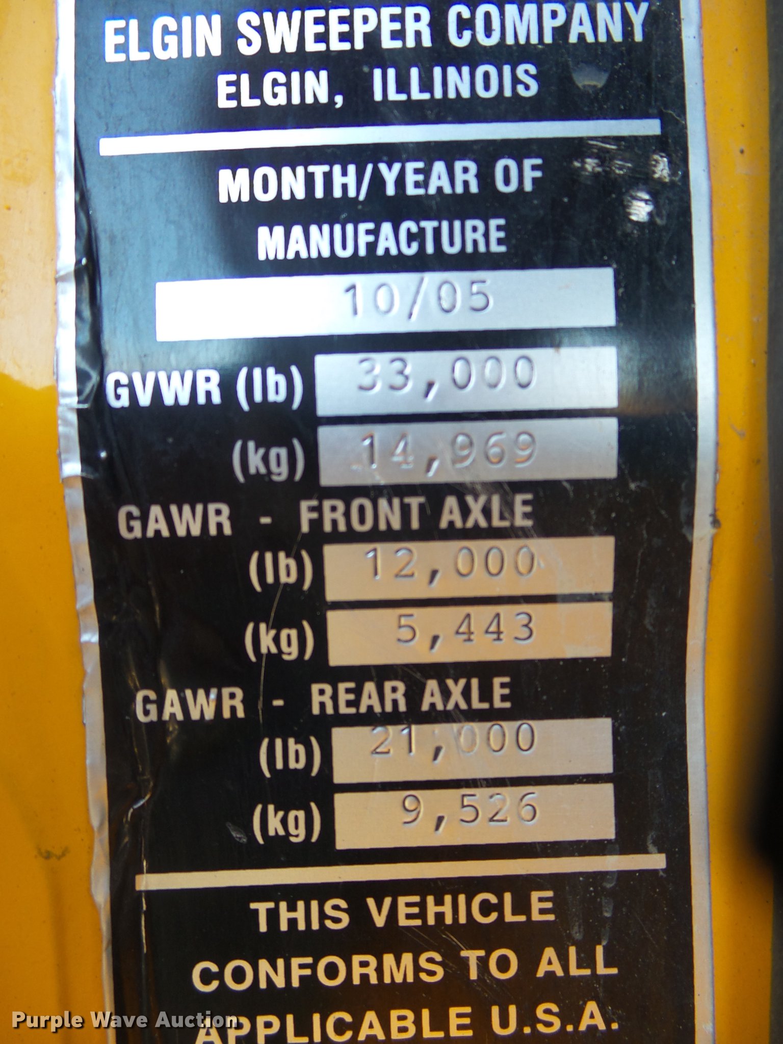 Purple Wave is selling a used Street Sweeper Truck in Missouri. This item is a 2005 Sterling SC8000 Cargo street sweeper truck with the following: 2,440 miles on odometer, 79,973 km on odometer, Cummins ISB 5.9L L6 turbo diesel engine, Automatic transmission, Dual operator stations, AC and heat, Air suspension seat, Elgin Geovac sweeper unit, 5,337 hours on meter, Vacuum, Eight cu.yd. hopper, Serial Y0551D, 11R22.5 tires, GVWR 33,000 lbs, MODOT ID G9172