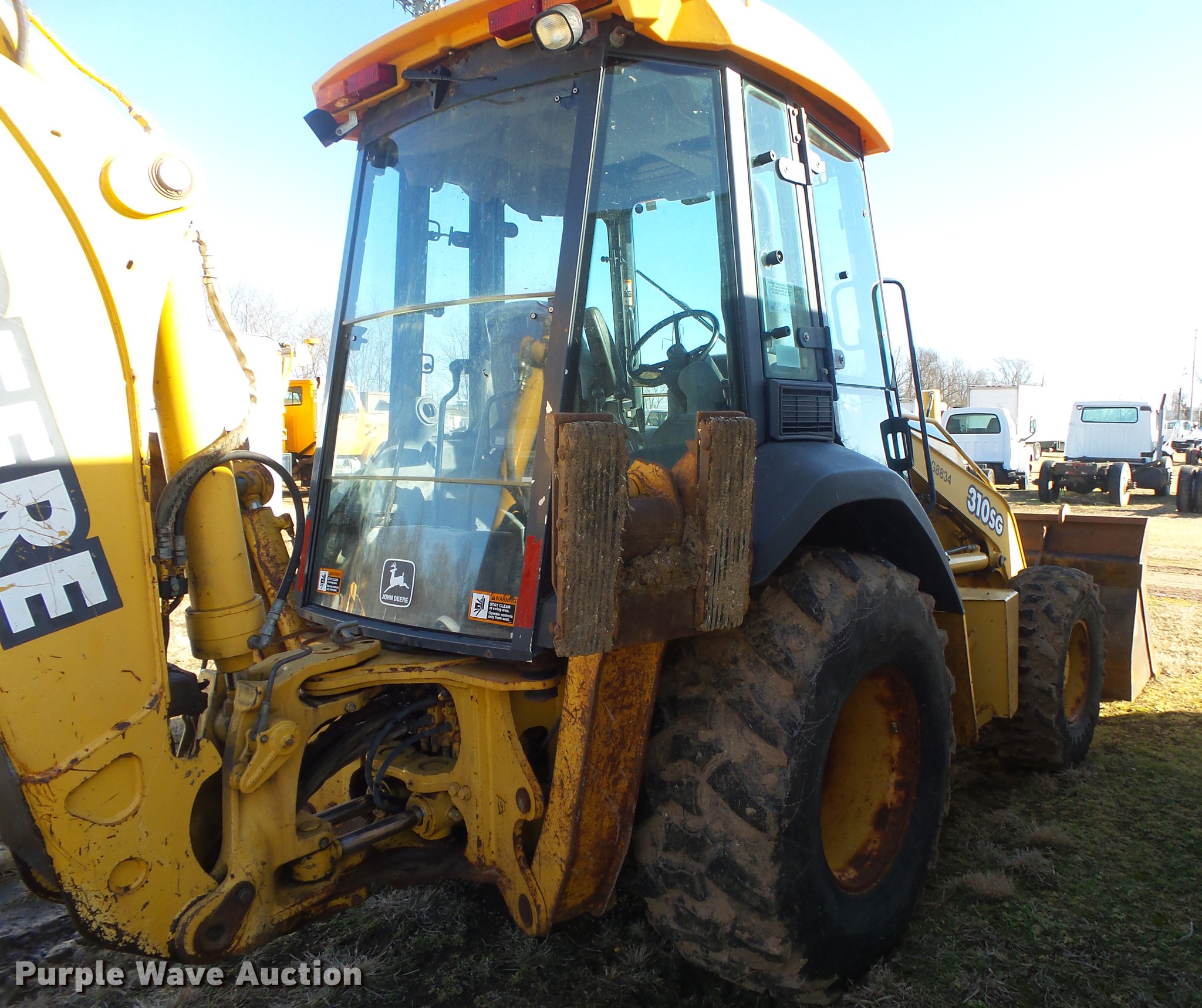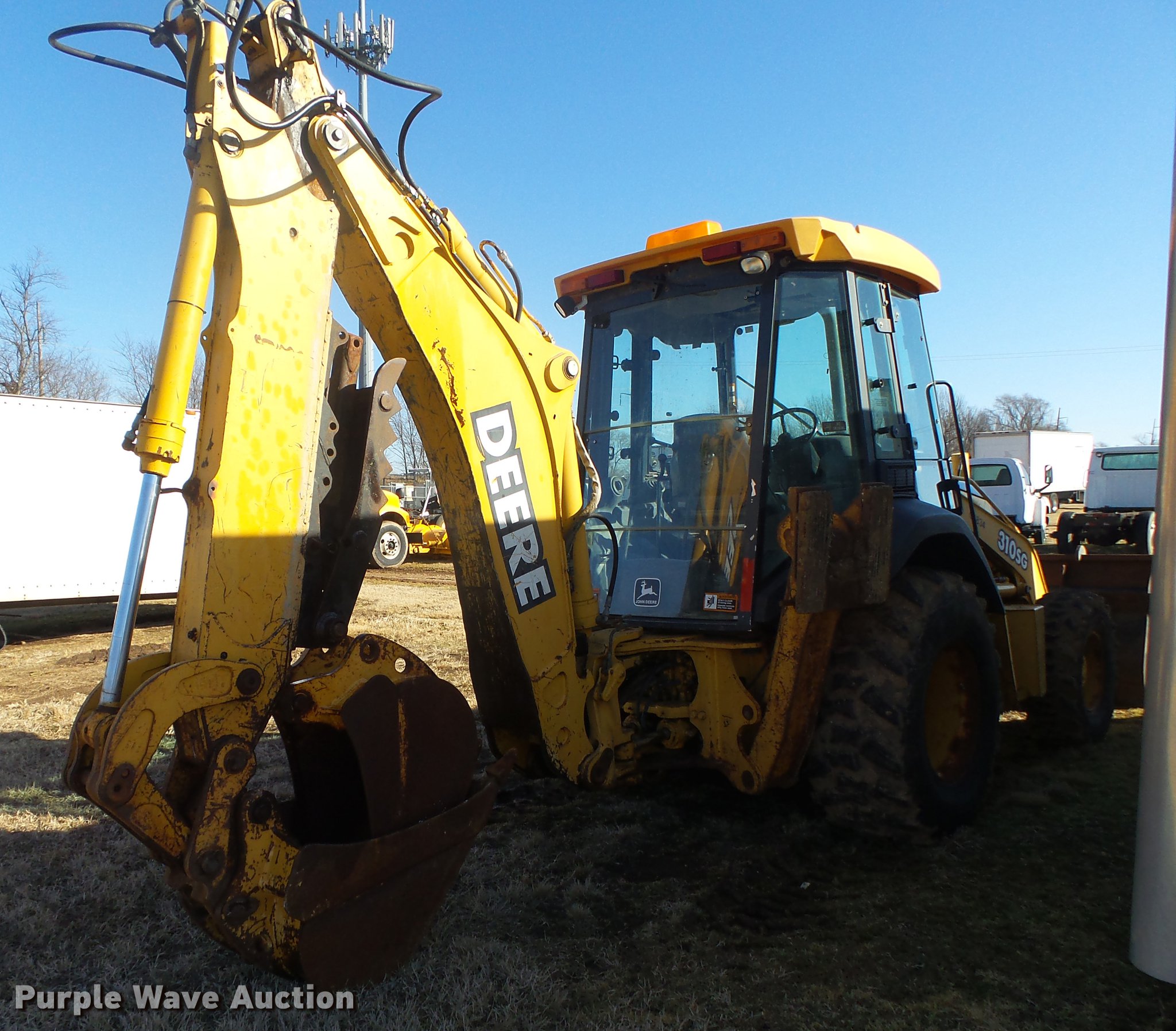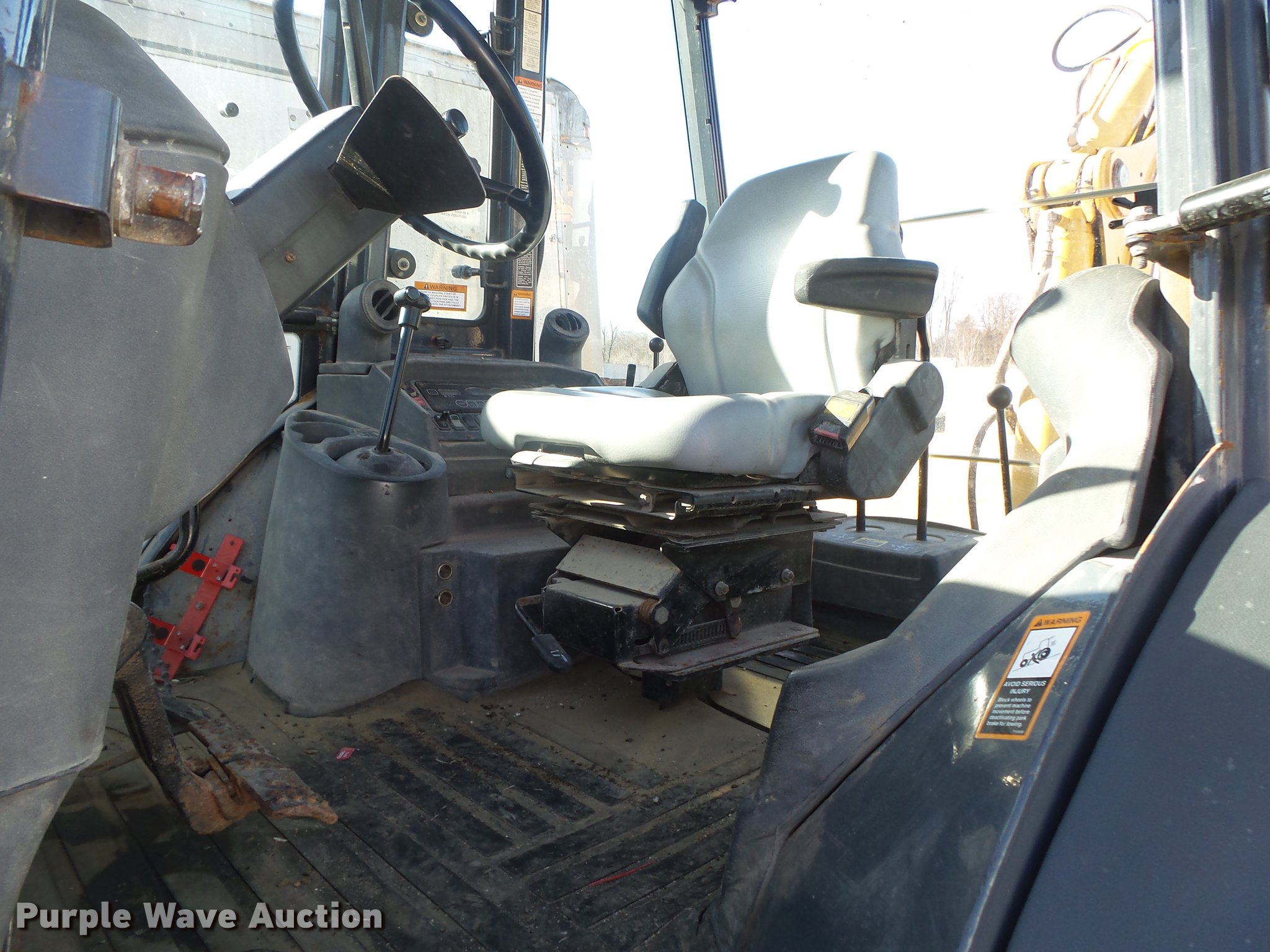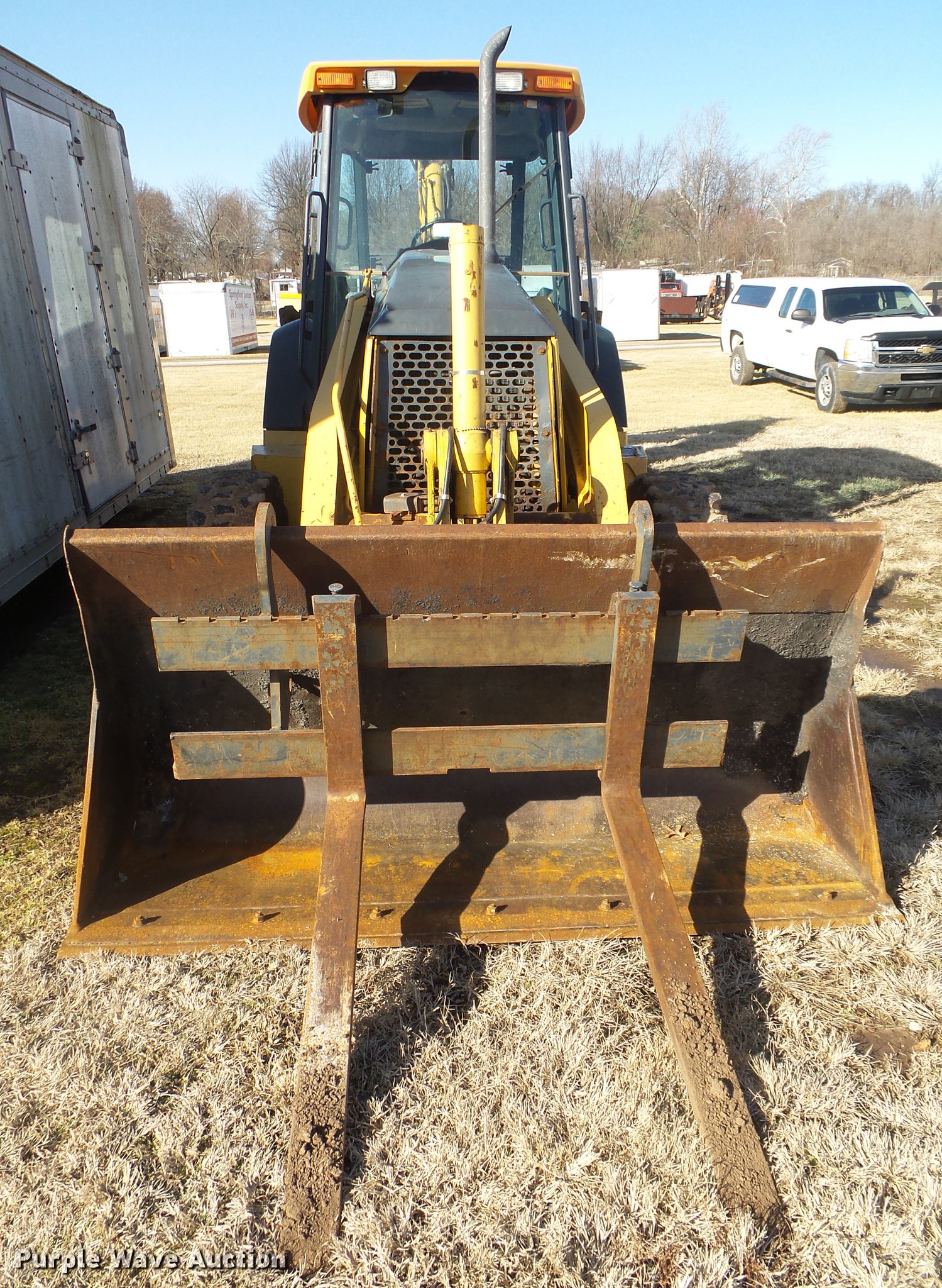 Purple Wave is selling a used Tractor Loader Backhoe in Missouri. This item is a 2002 John Deere 310 SG backhoe with the following: 5,852 hours on meter, John Deere 4045T1084 four cylinder turbo diesel engine, Shuttle shift transmission, 4F-4R gears, Four wheel drive, Locking differential, EROPS, Suspension seat, Wobble stick backhoe controls, Wipers, 86"W loader bucket, Weld-on cutting edge, Hydraulic quick coupler, Pallet forks, E-stick, John Deere 18"W backhoe bucket, Weld-on cutting edge, (4) teeth, 48" thumb, John Deere 24"W bucket, (4) teeth, Manual quick coupler, 620/80R18 front tire, 12.5/80-18 front tire, 500/70R24 rear tire, 19.5LR24 rear tire, AC removed, Transmission/hydraulic cooler removed, Wipers missing, Serial T0310SG907061, MODOT ID G8834