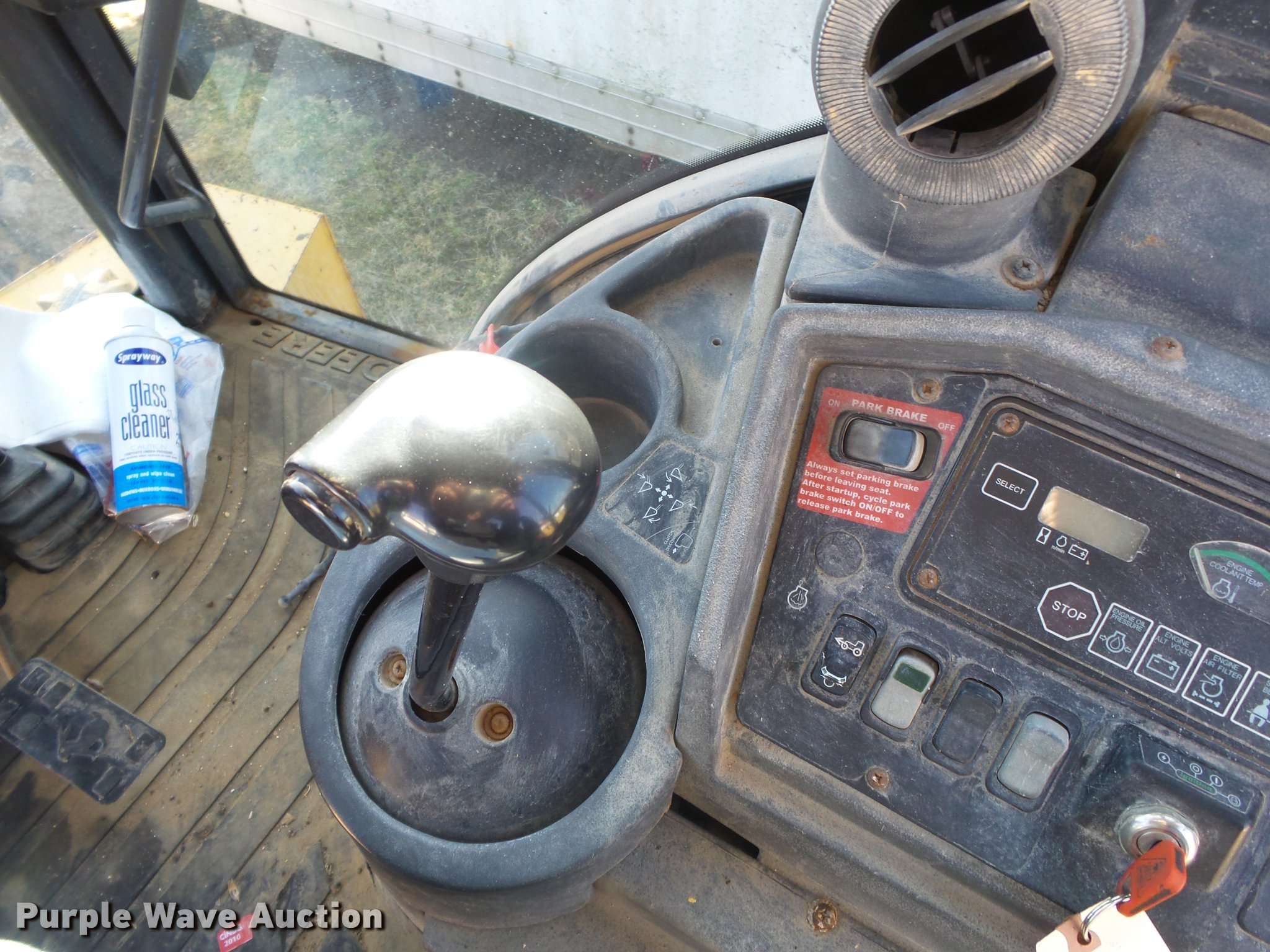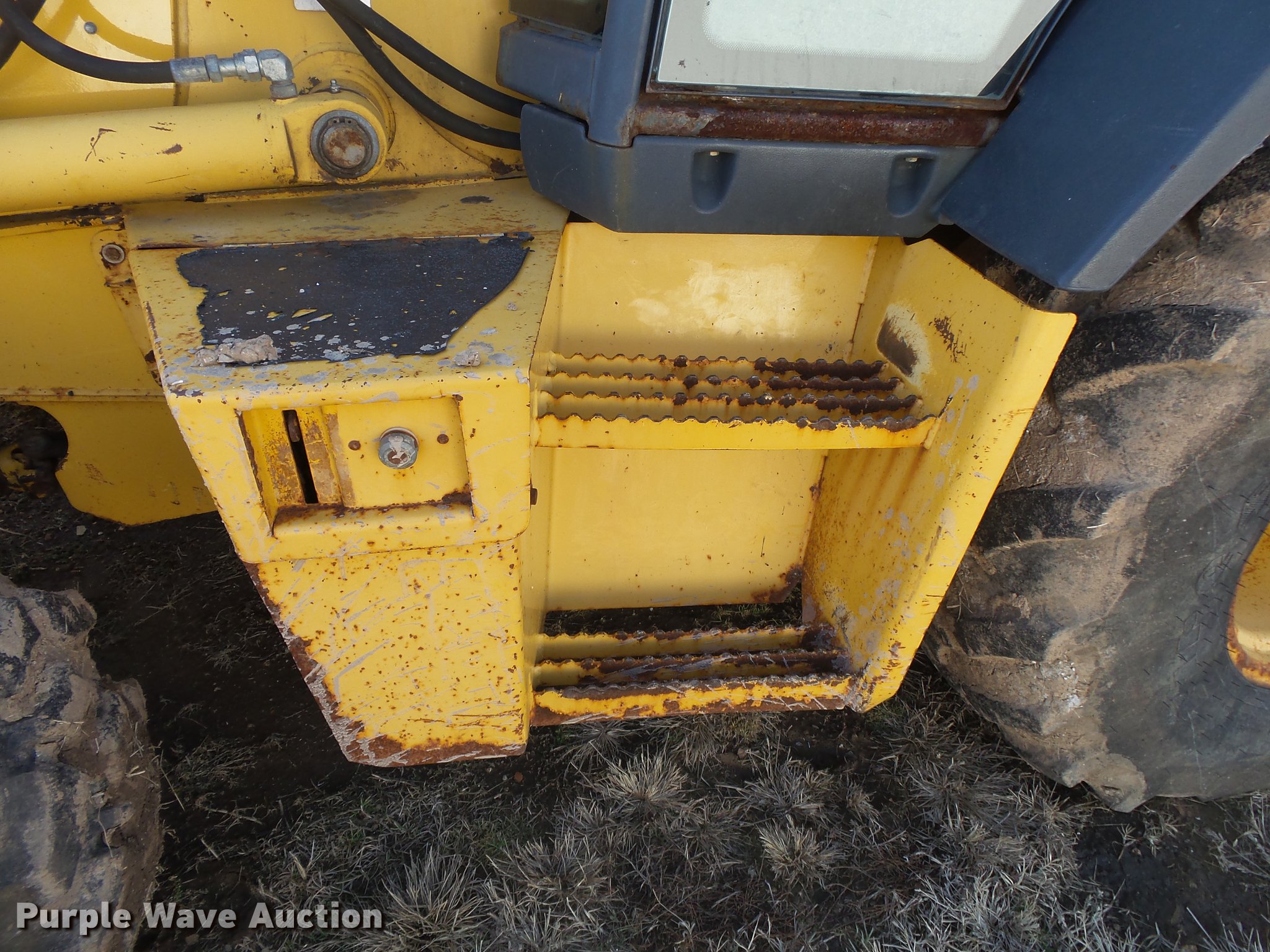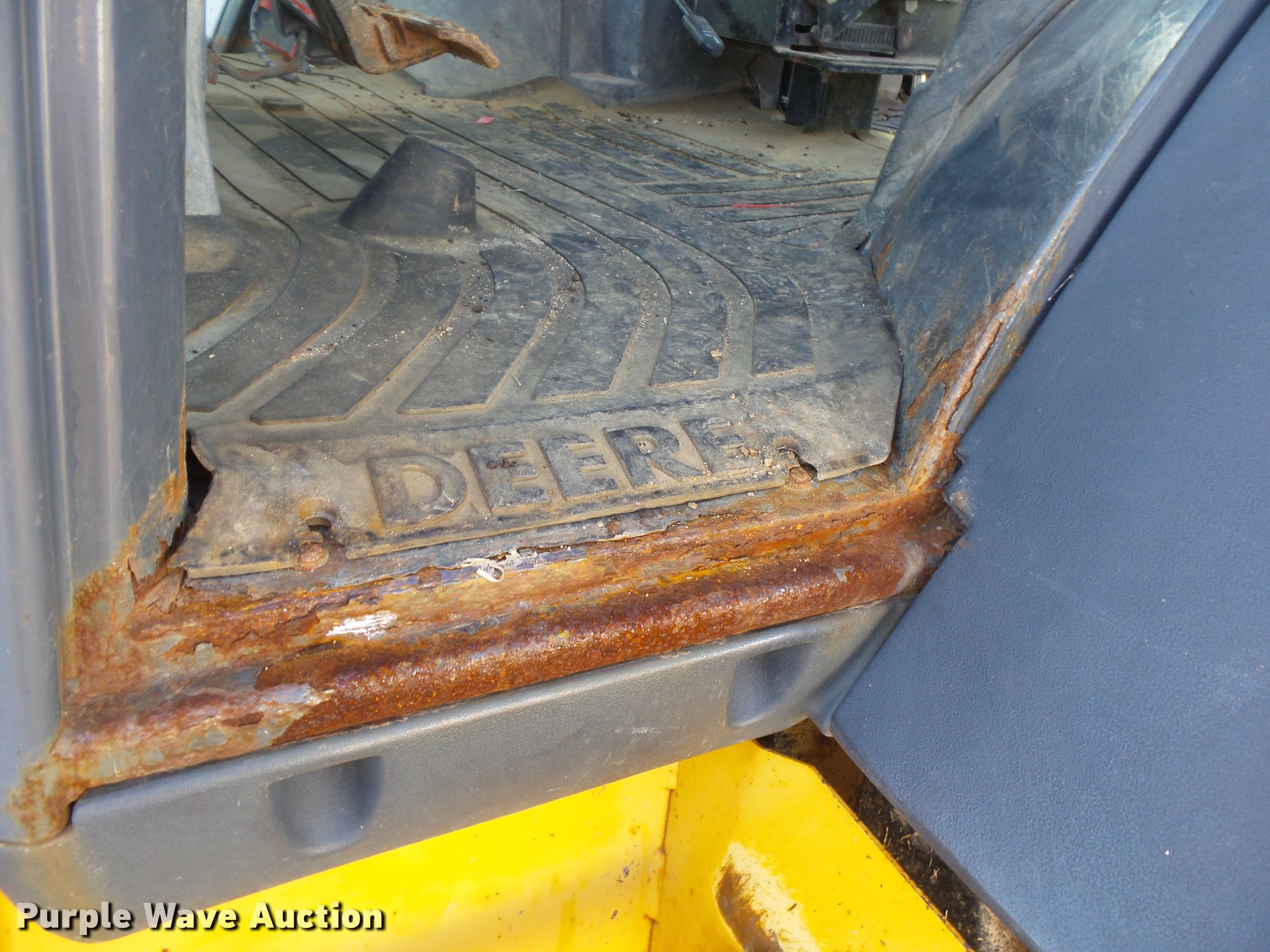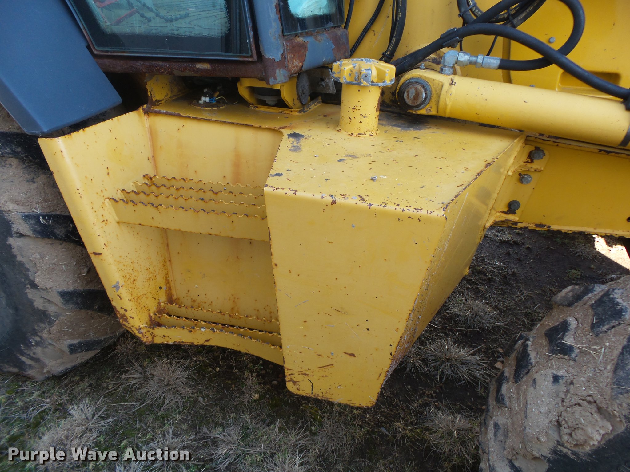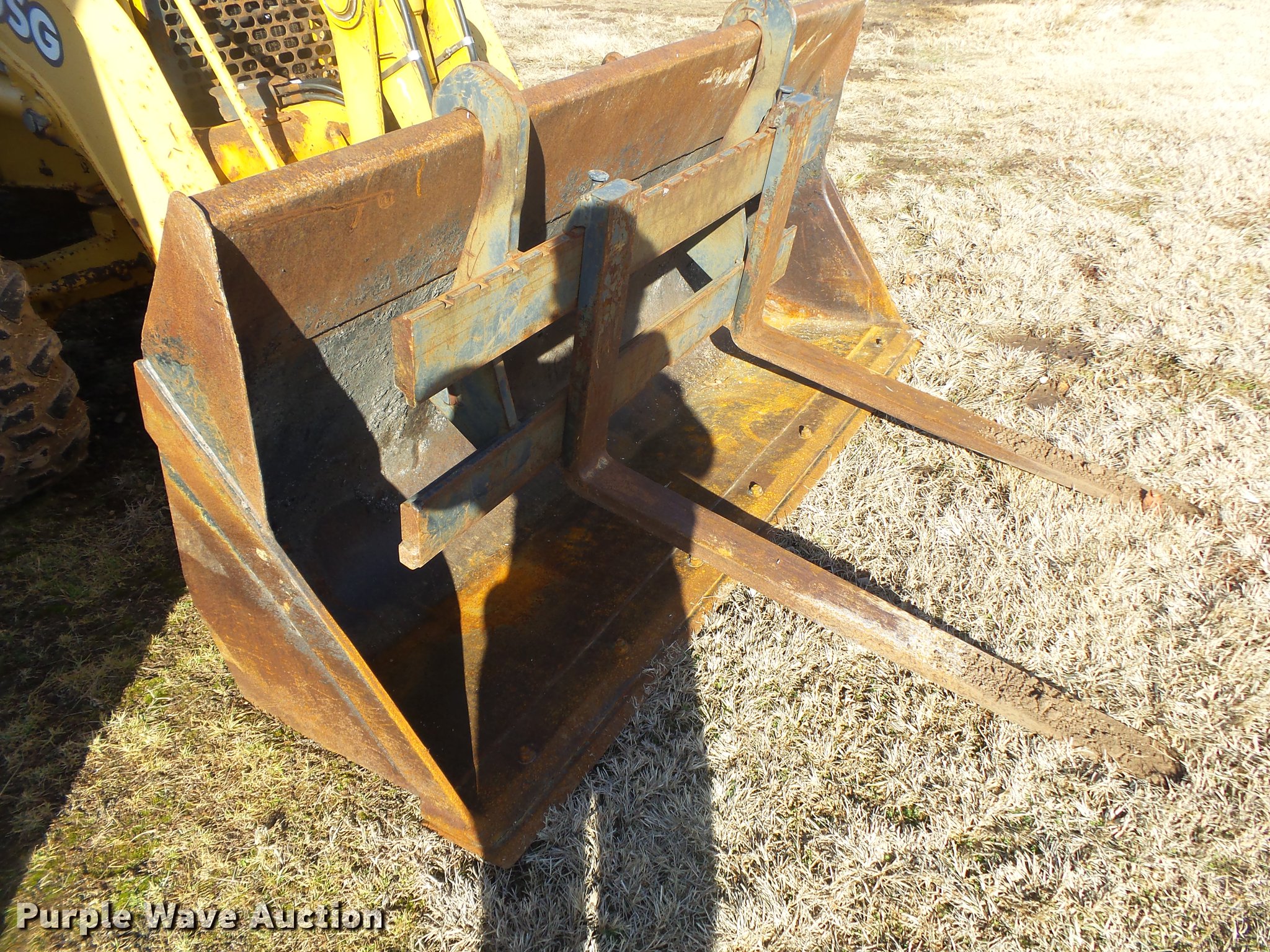Purple Wave is selling a used Tractor Loader Backhoe in Missouri. This item is a 2002 John Deere 310 SG backhoe with the following: 5,852 hours on meter, John Deere 4045T1084 four cylinder turbo diesel engine, Shuttle shift transmission, 4F-4R gears, Four wheel drive, Locking differential, EROPS, Suspension seat, Wobble stick backhoe controls, Wipers, 86"W loader bucket, Weld-on cutting edge, Hydraulic quick coupler, Pallet forks, E-stick, John Deere 18"W backhoe bucket, Weld-on cutting edge, (4) teeth, 48" thumb, John Deere 24"W bucket, (4) teeth, Manual quick coupler, 620/80R18 front tire, 12.5/80-18 front tire, 500/70R24 rear tire, 19.5LR24 rear tire, AC removed, Transmission/hydraulic cooler removed, Wipers missing, Serial T0310SG907061, MODOT ID G8834