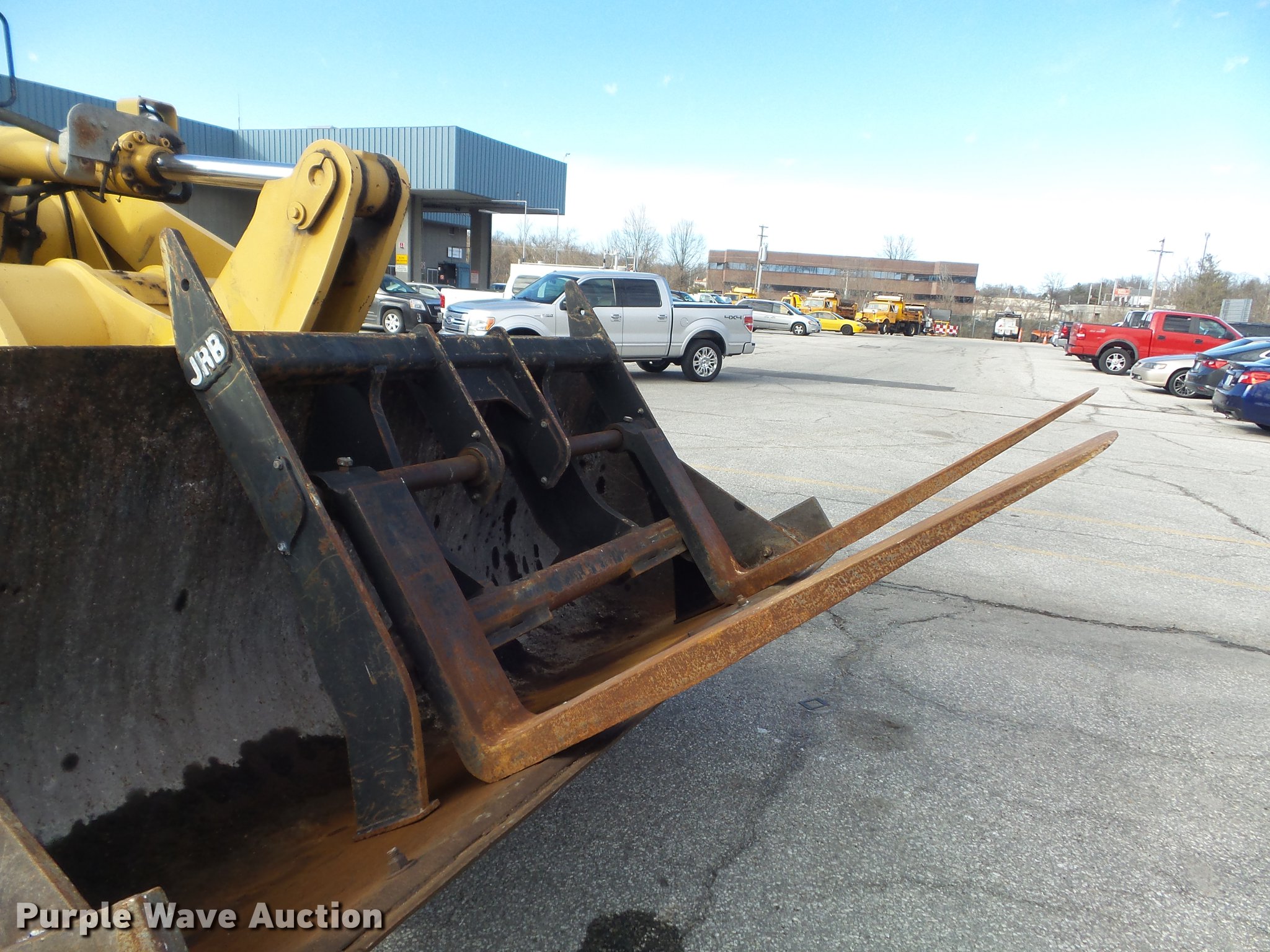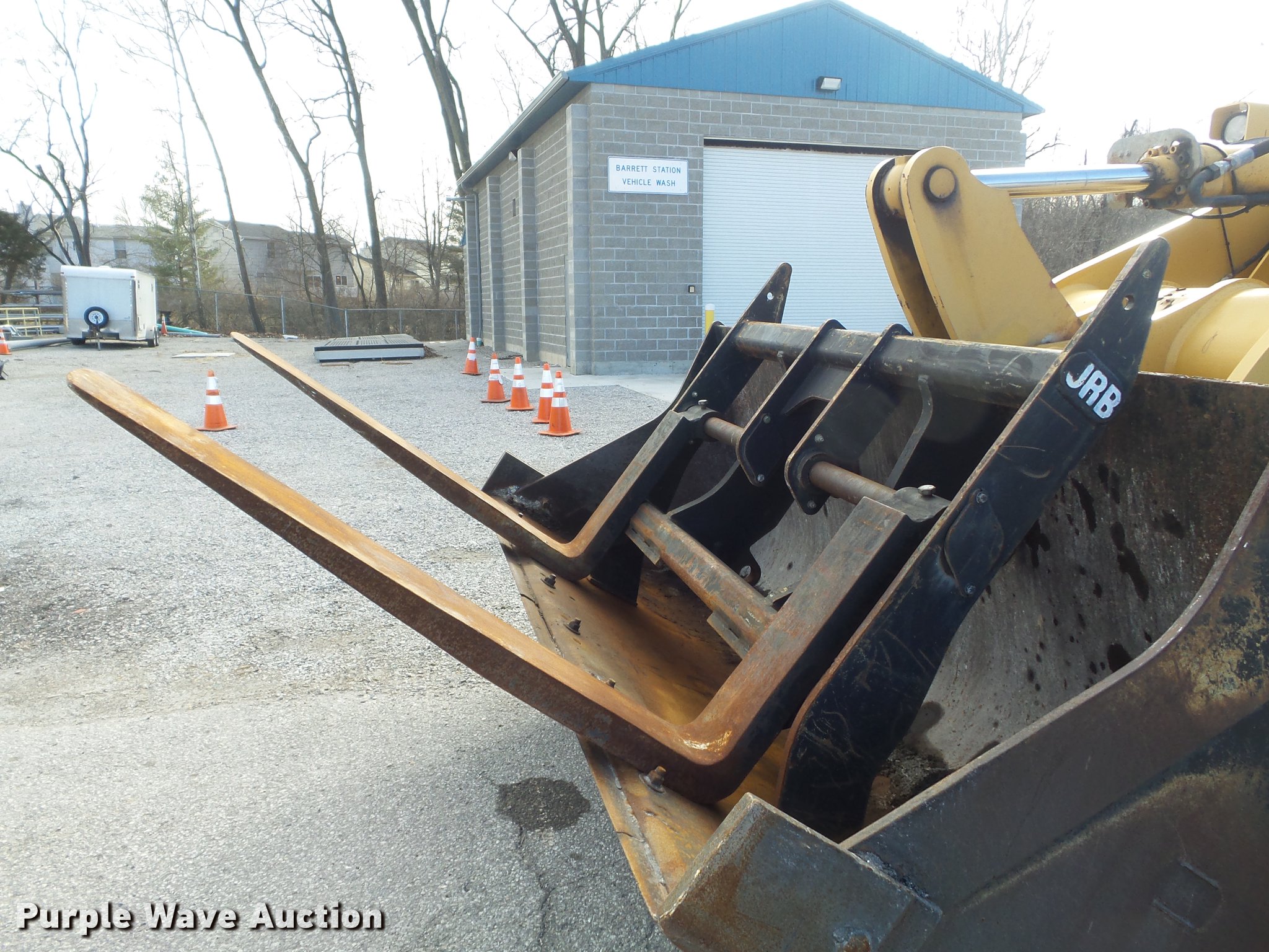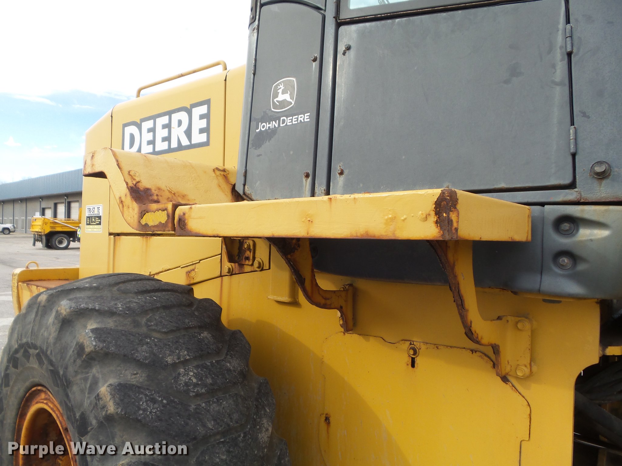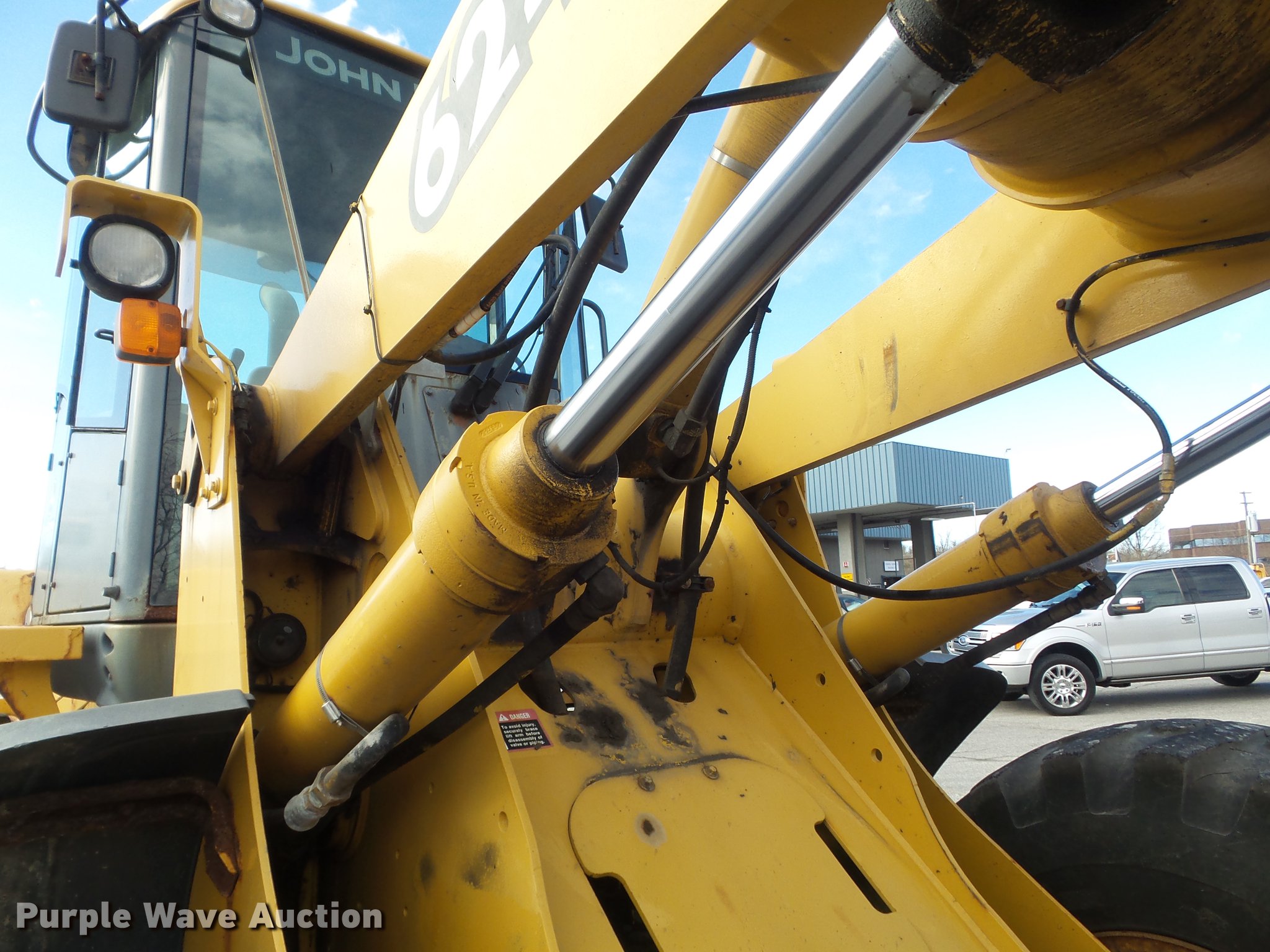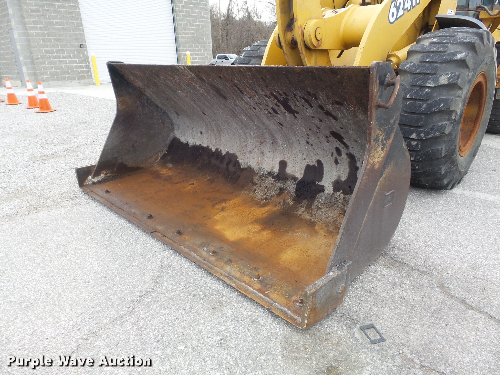 Purple Wave is selling a used Wheel Loader in Missouri. This item is a 2003 John Deere 624H wheel loader with the following: 6,792 hours on meter, John Deere 6068H 6.8L six cylinder turbo diesel engine, 160 HP, Serial PE6068H295309, Powershift transmission, 4F-3R gears, Differential lock, Enclosed cab, Heat, Tilt steering wheel, Suspension seat, Joystick bucket controls, Front and rear work lights, Wipers, Block heater, Ether start, JRB 624H 108"W general purpose bucket, Bolt-on cutting edge, Three cu. yd. capacity, JRB 624H pallet forks, 48"L, Hydraulic quick coupler, Counterweights, 20.5-25 tires, Non-operational parking brake, Possible bearing and seal issues, Front drive shafts removed due to brake issue, Non-operational return to dig function, Serial DW624HX589025
