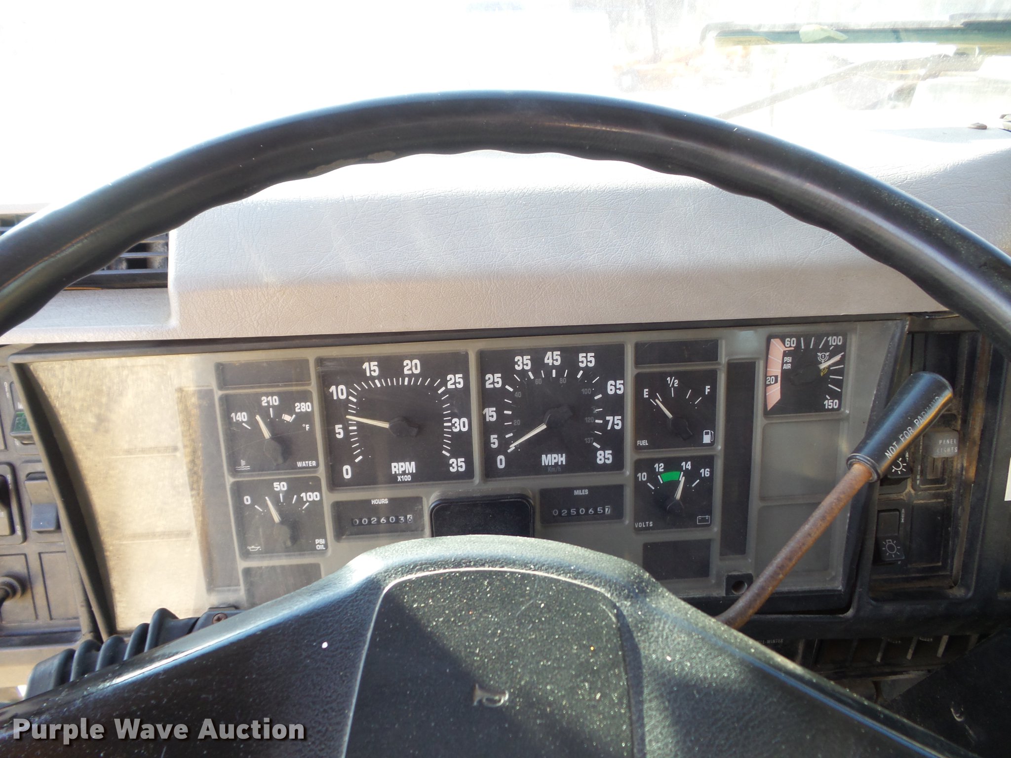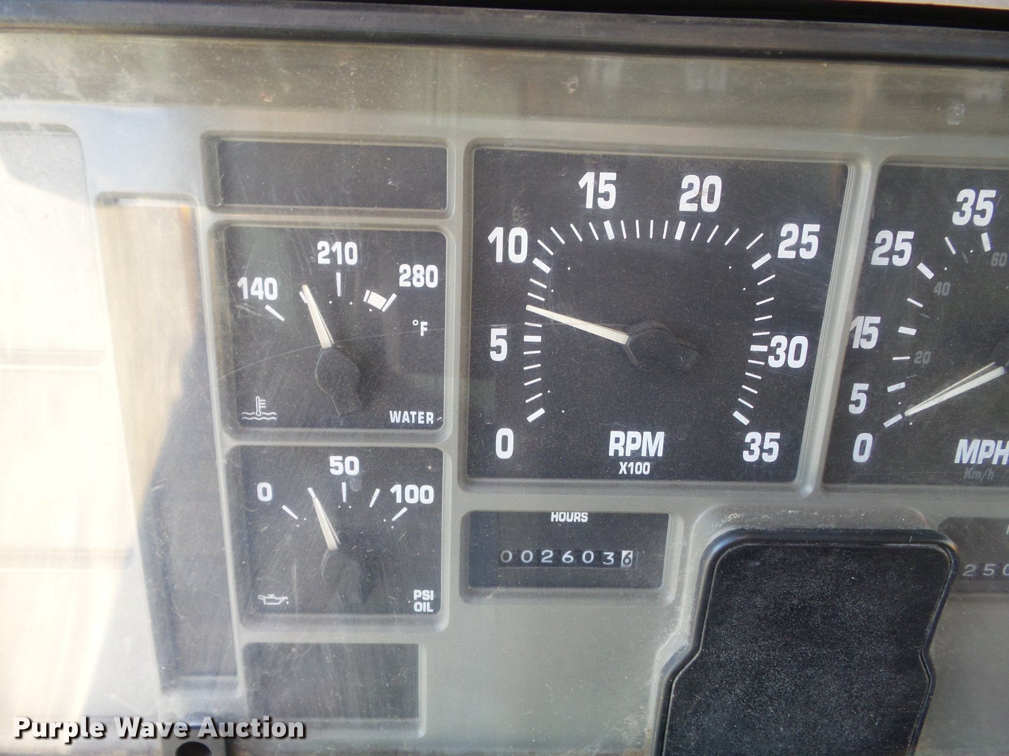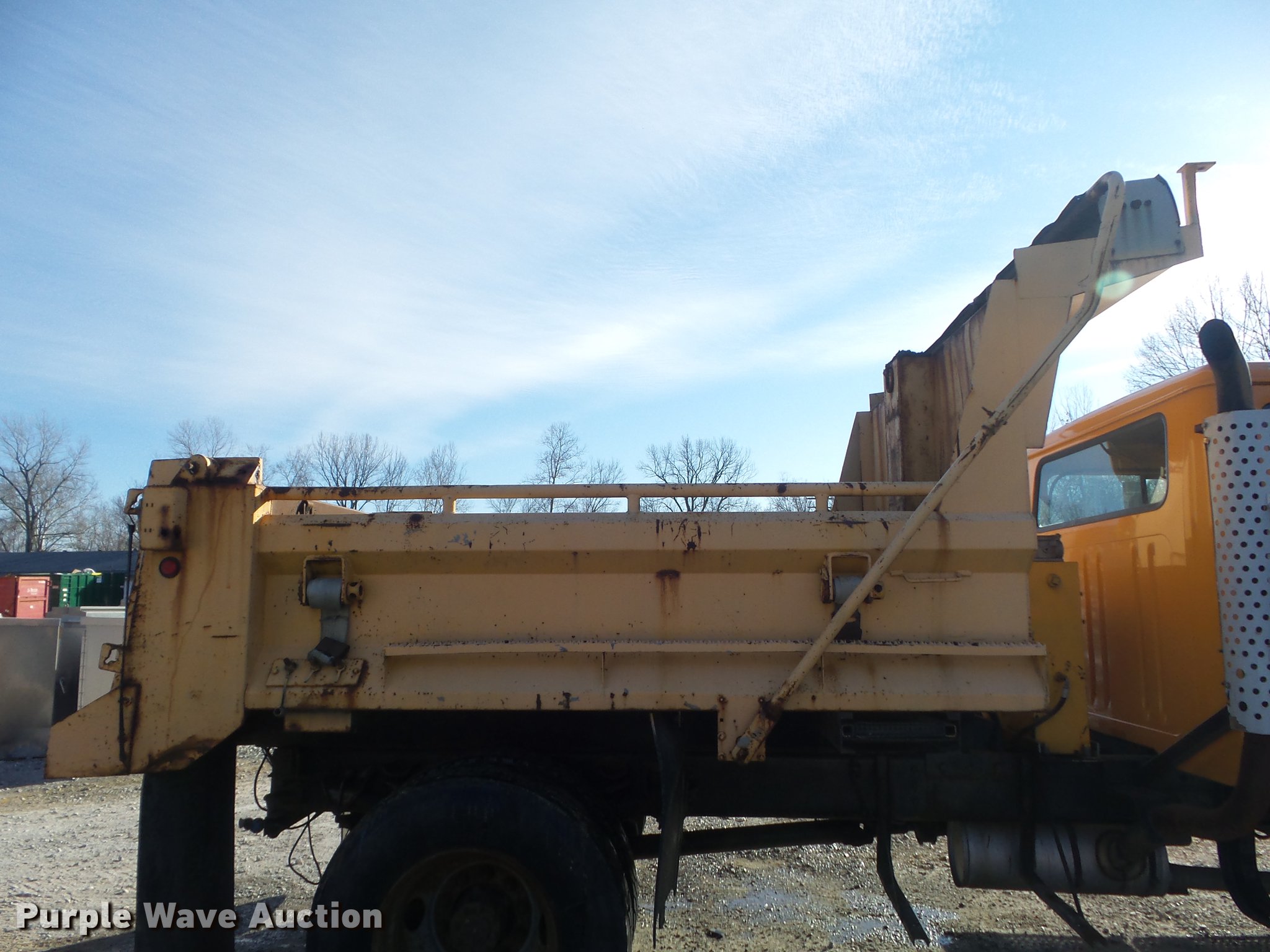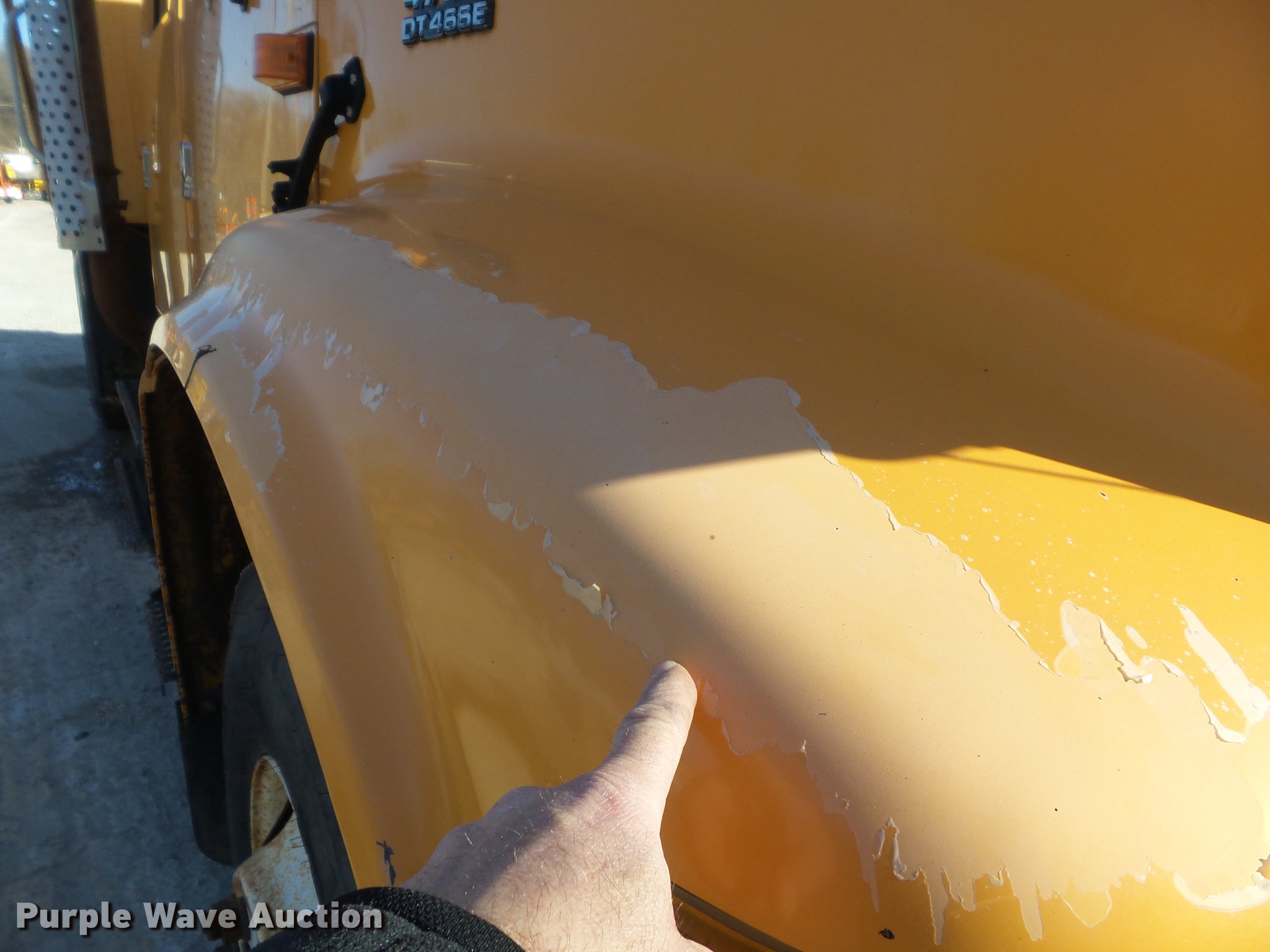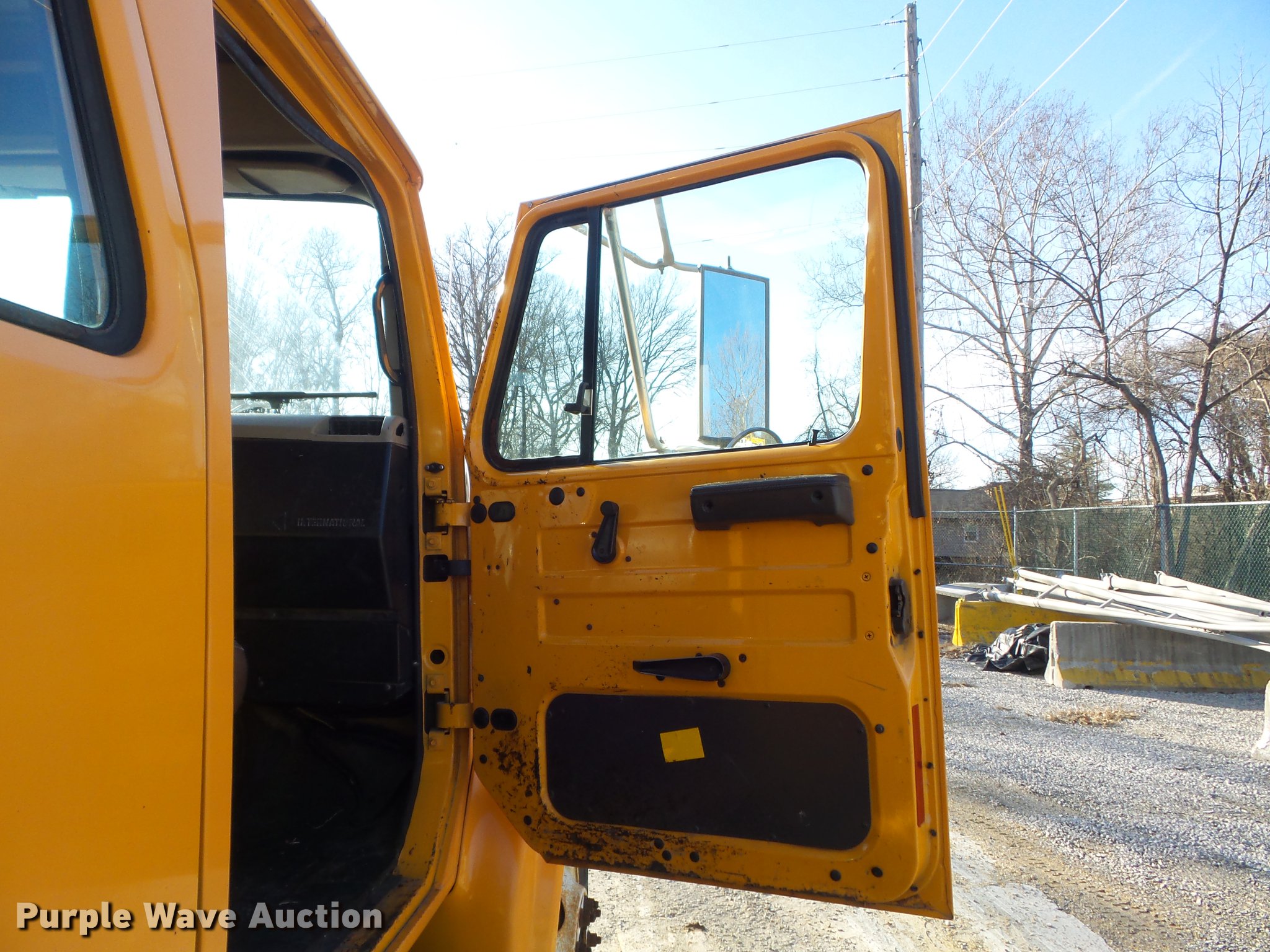Purple Wave is selling a used Construction Dump Truck in Missouri. This item is a 2001 International 4900 dump truck with the following: 25,065 miles on odometer, 2,603 hours on meter, International DT466 7.6L L6 turbo diesel engine, Allison automatic transmission, Single axle, Heat, Cruise, AM/FM/weatherband, Heated mirrors, Air suspension seat, Front mount PTO, Block heater, 10'L x 96"W steel dump bed, 24" side height, Single ram hoist, Air operated end gate, Roll tarp, Single fuel tank, 206" wheelbase, Pintle hitch, Trailer wiring, Spring suspension, Air brakes, 11R22.5 tires, GVWR 34,220 lbs, FAWR 13,220 lbs, RAWR 21,000 lbs, Windshield chipped, MODOT ID 6420